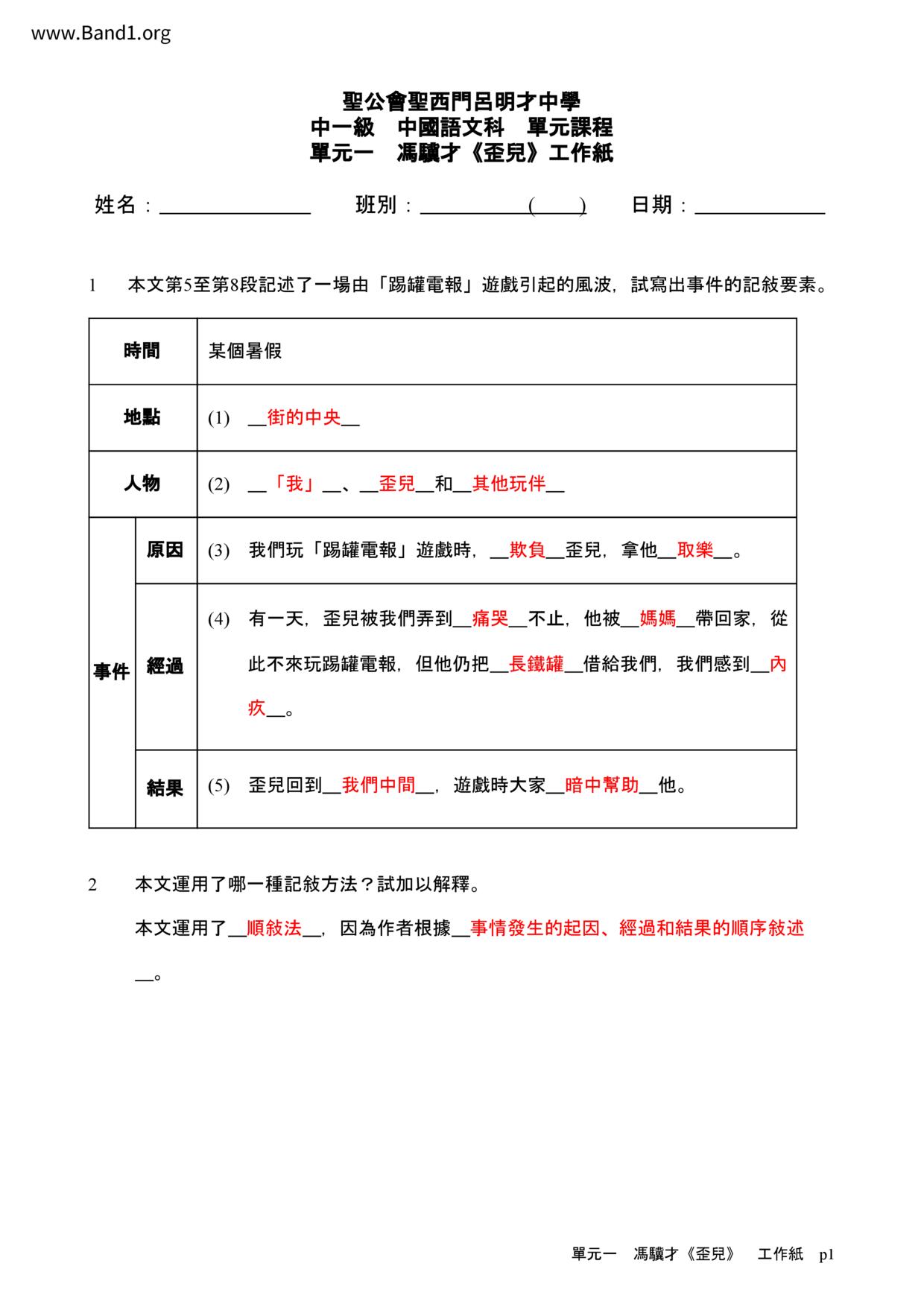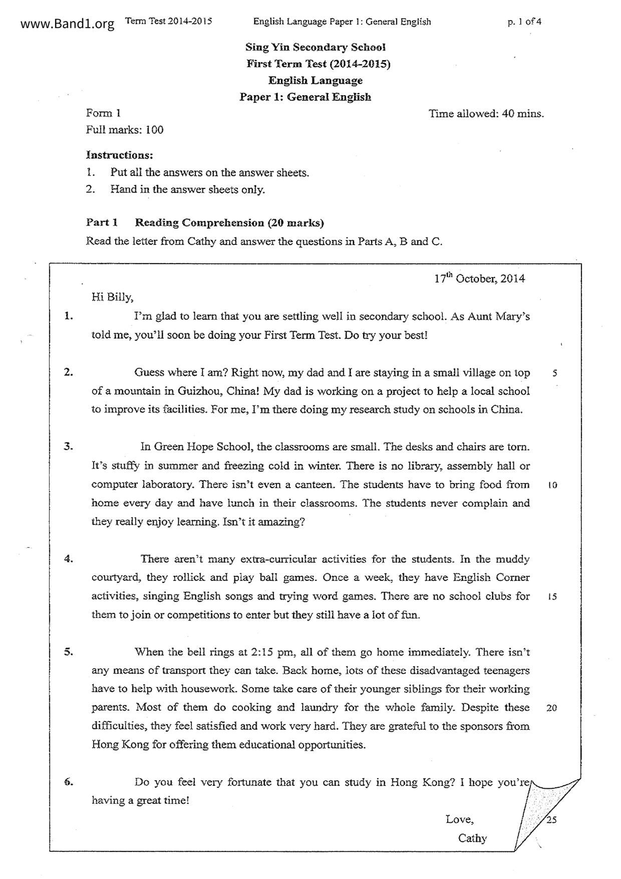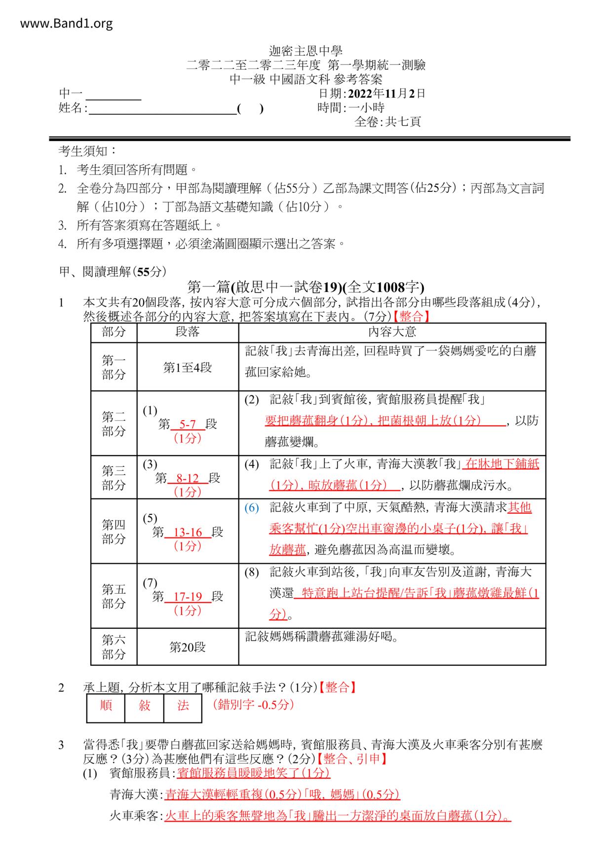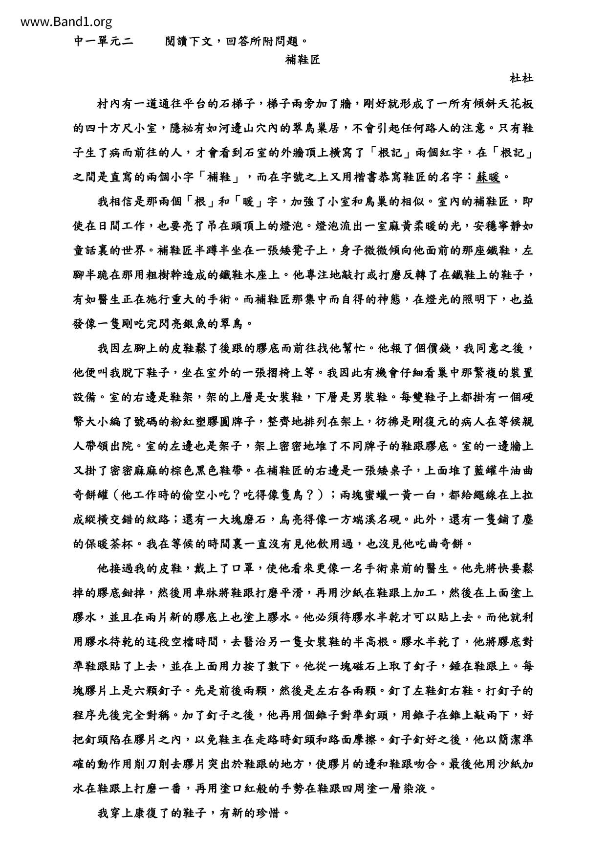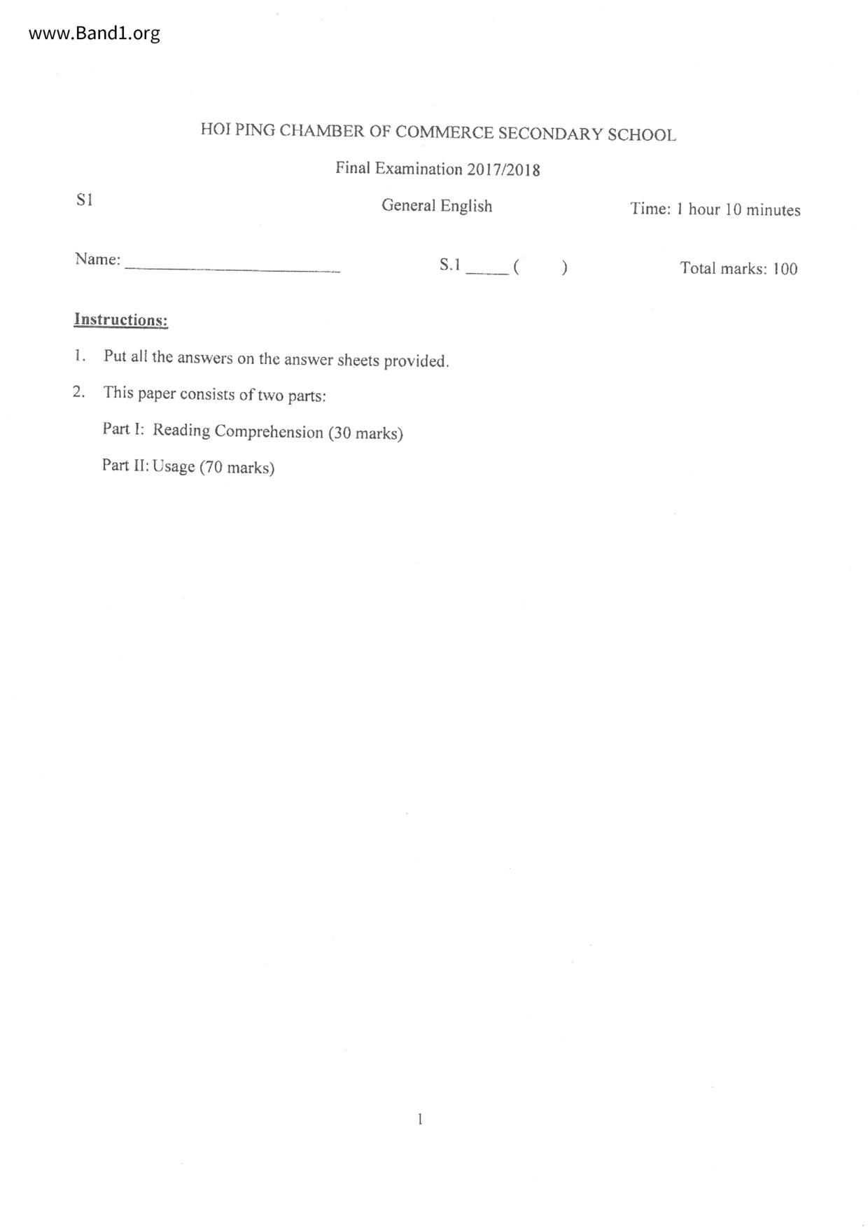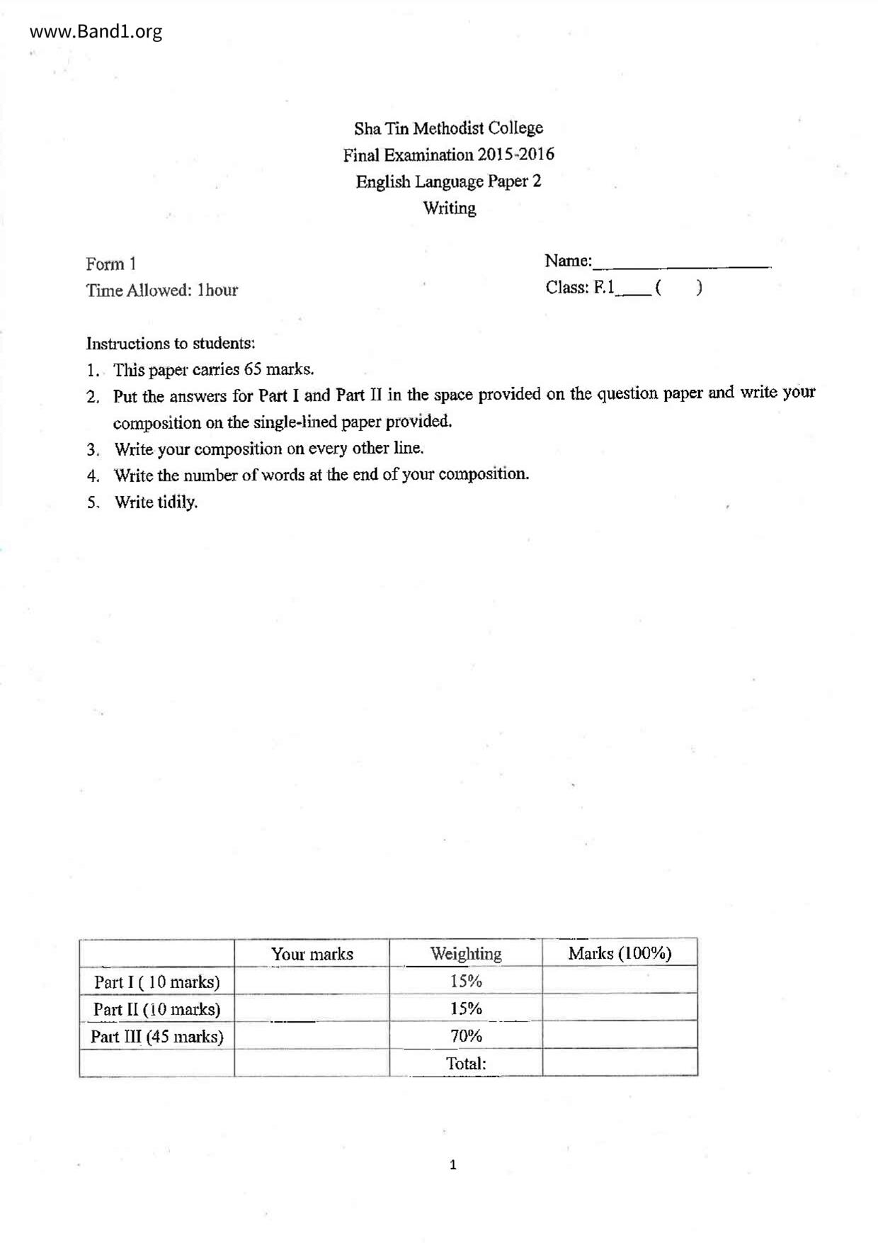 中一 英文 博愛醫院八十週年鄧英喜中學