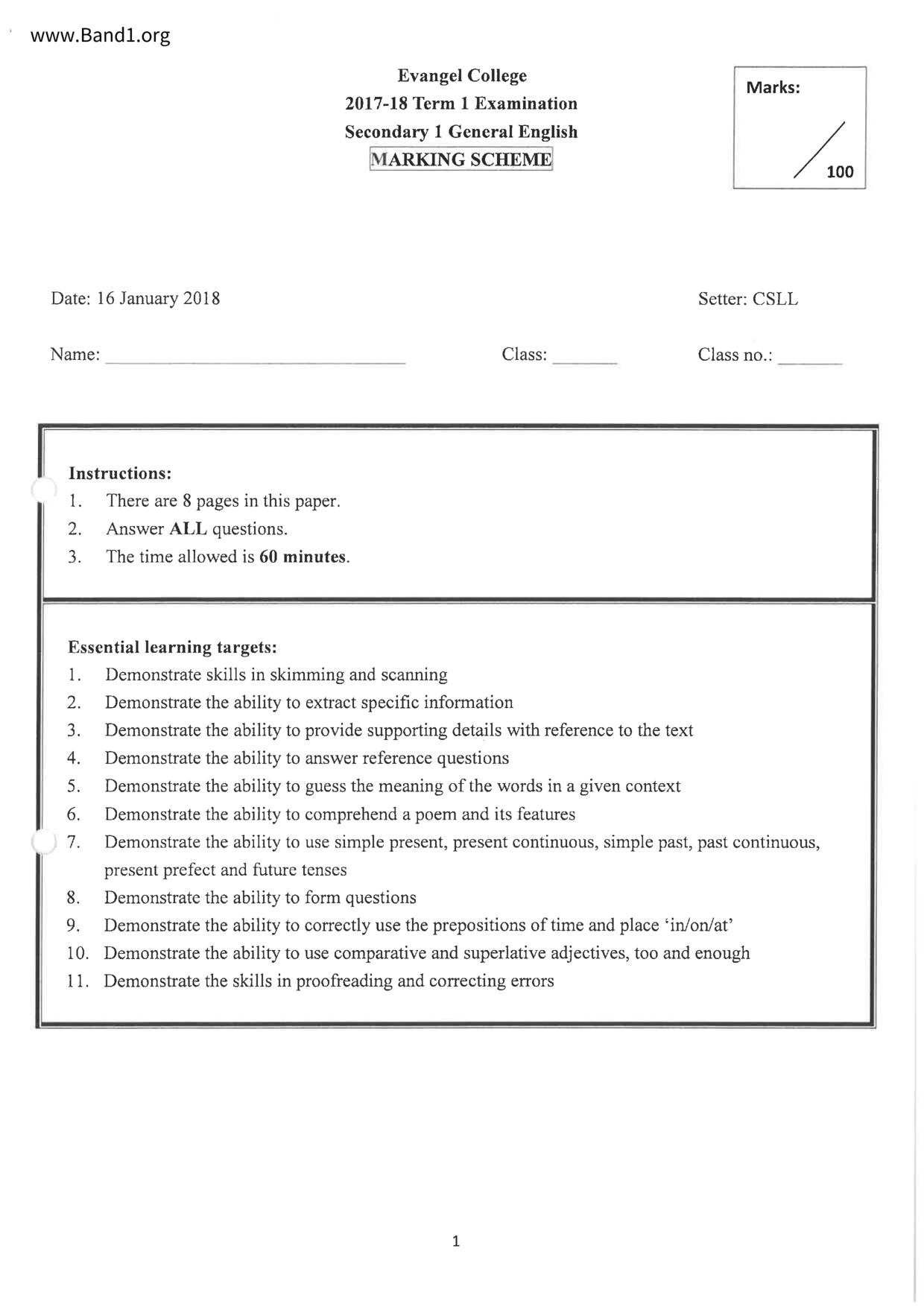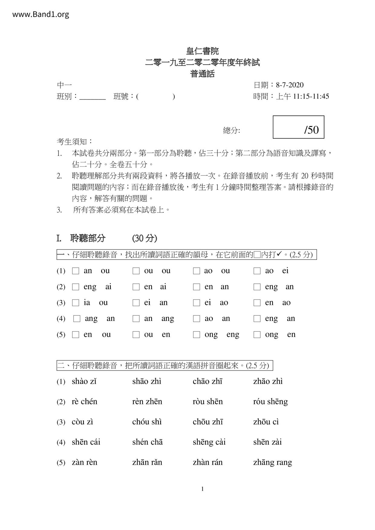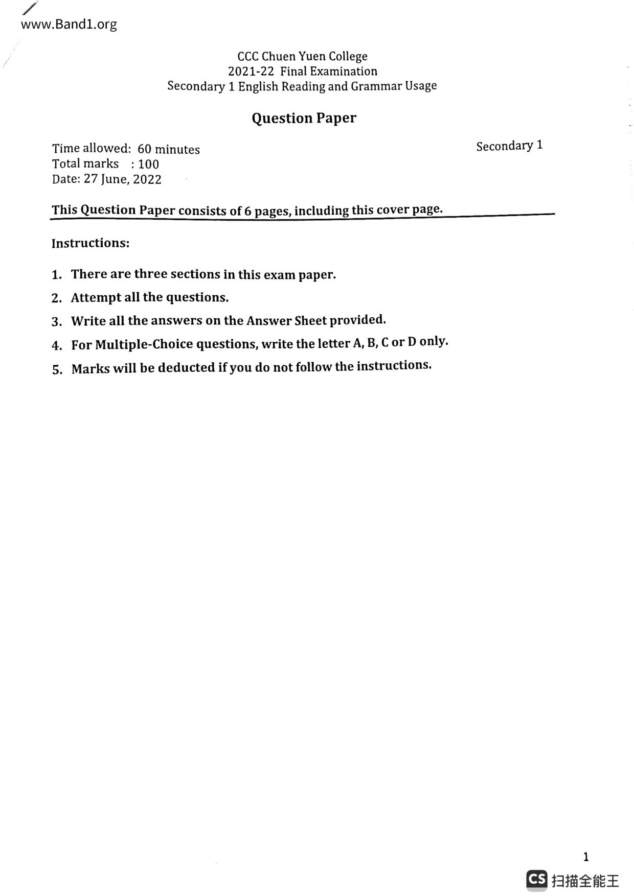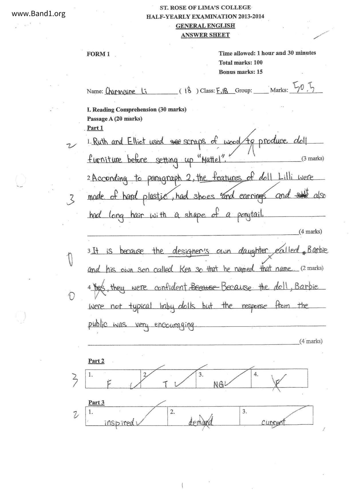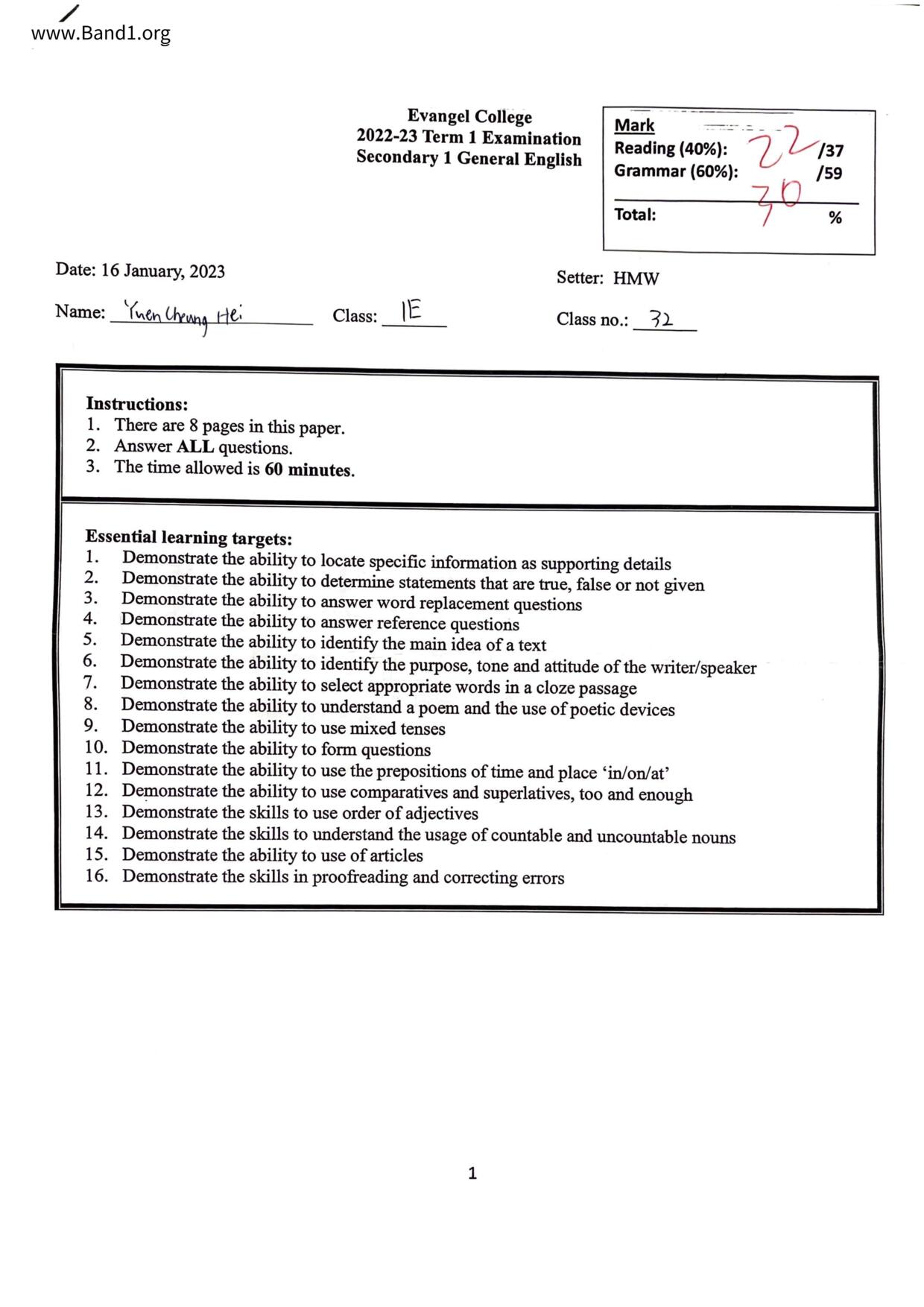 中一 英文 博愛醫院八十週年鄧英喜中學
