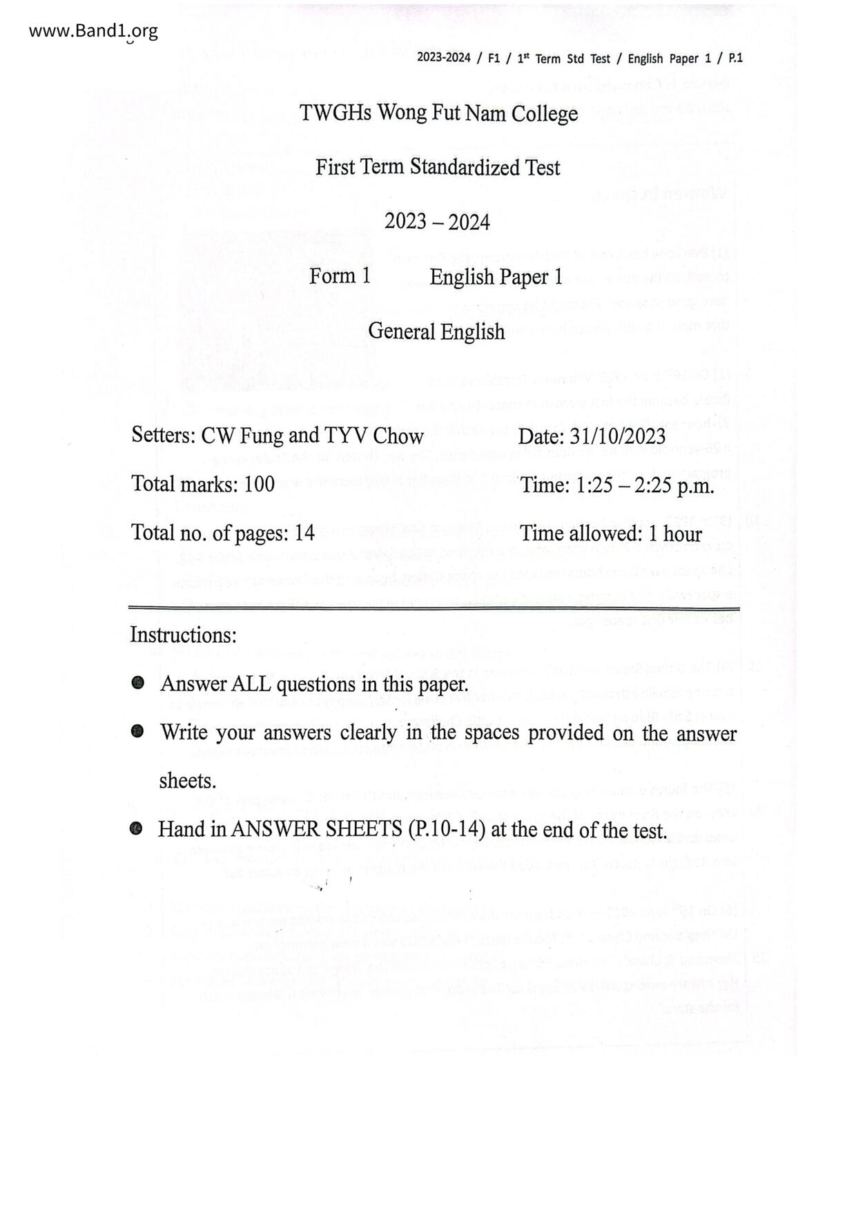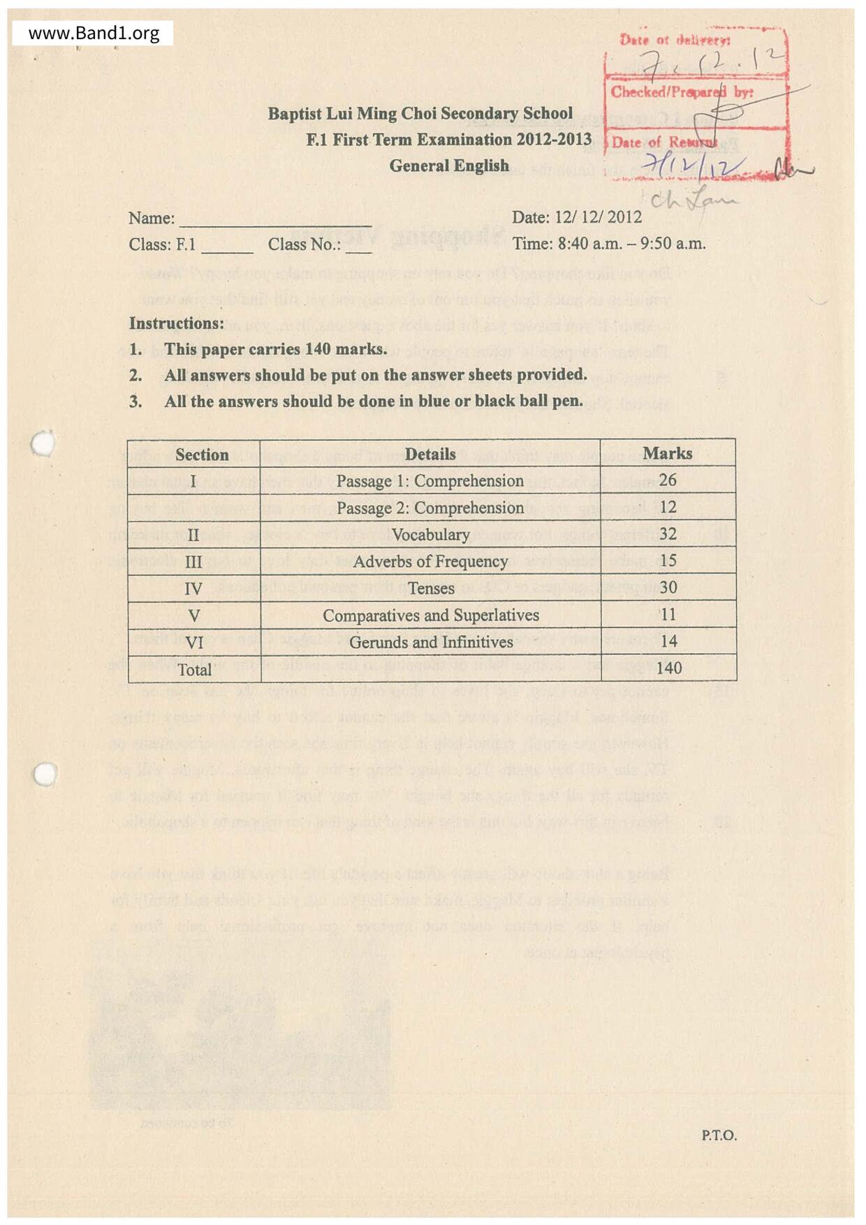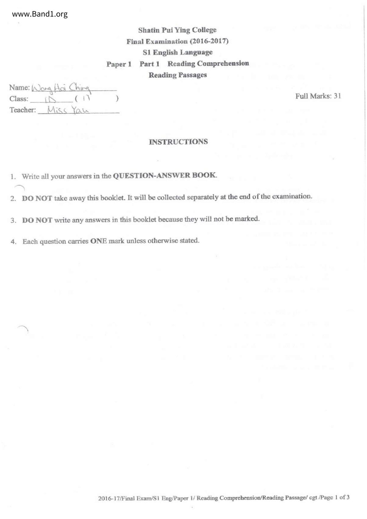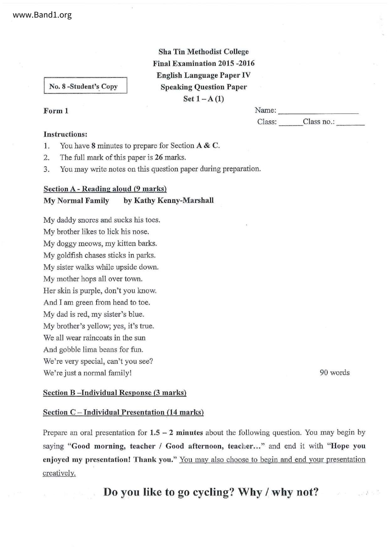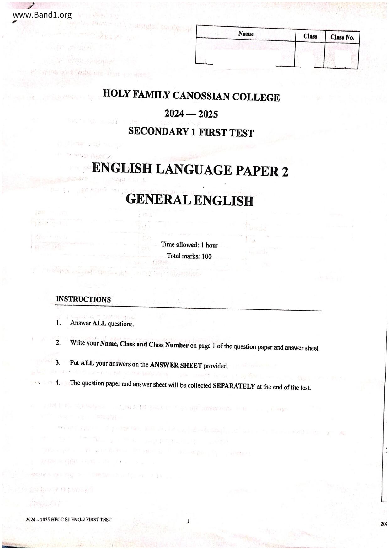 中一 英文 博愛醫院八十週年鄧英喜中學
