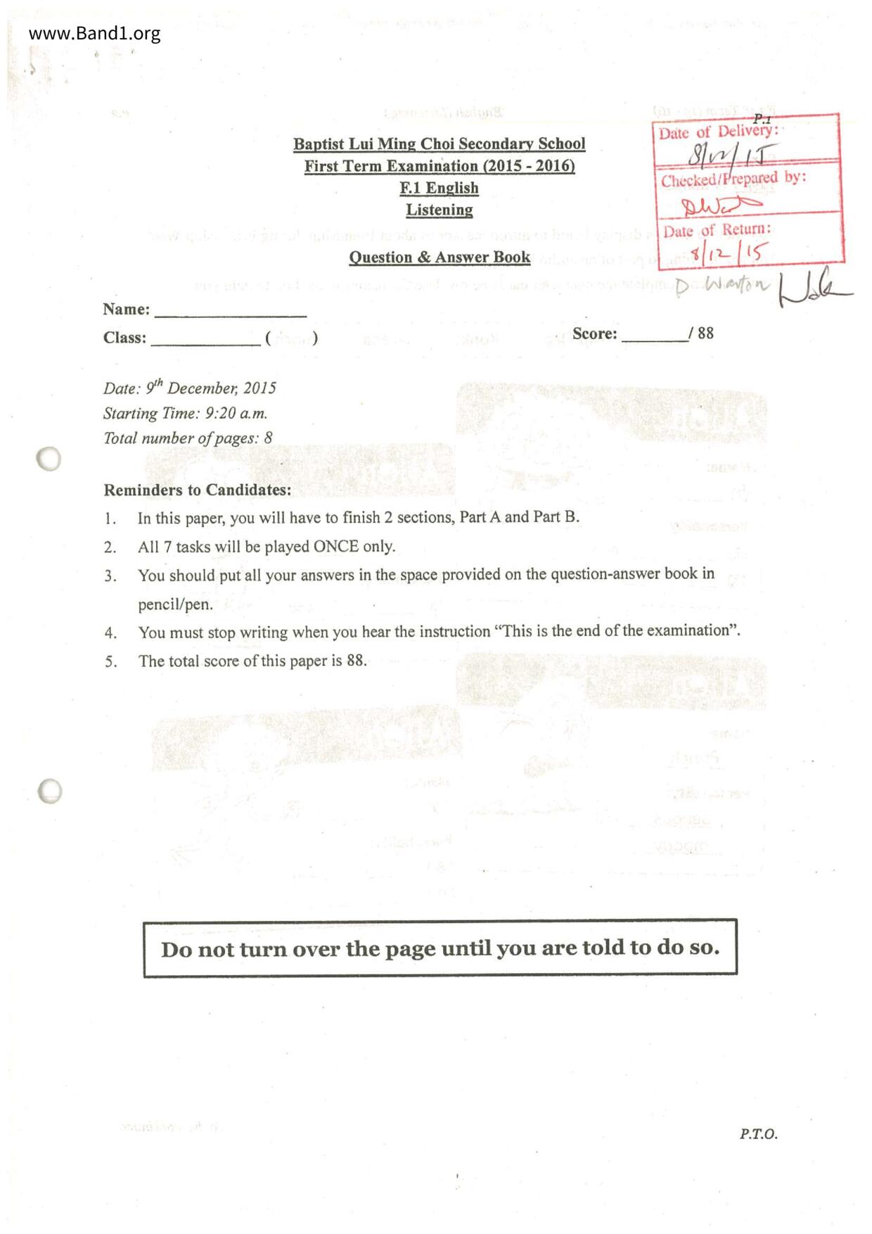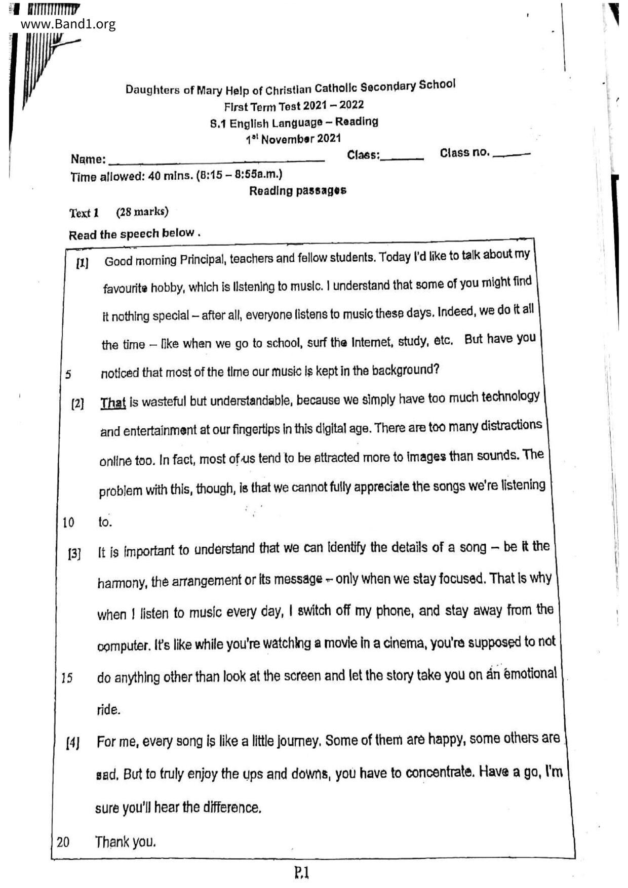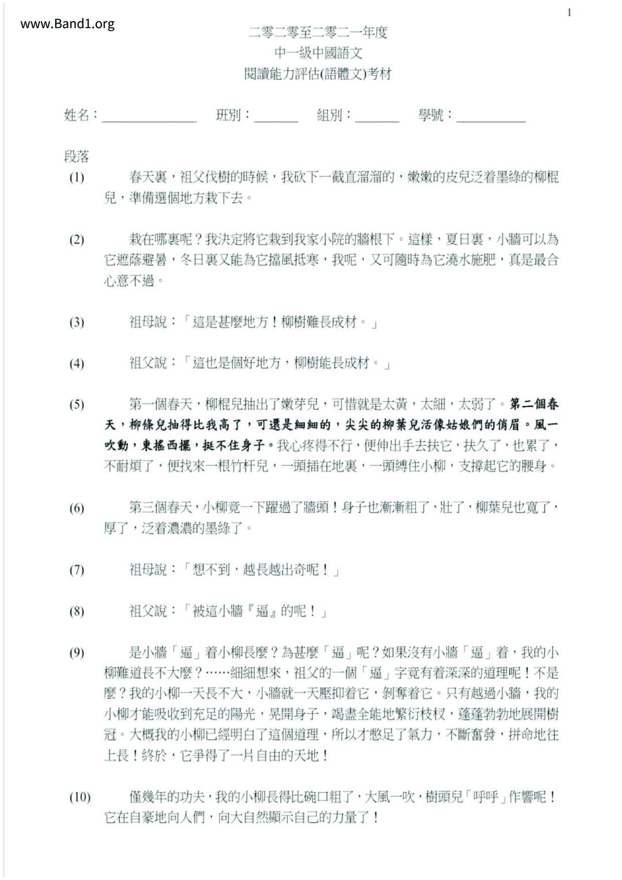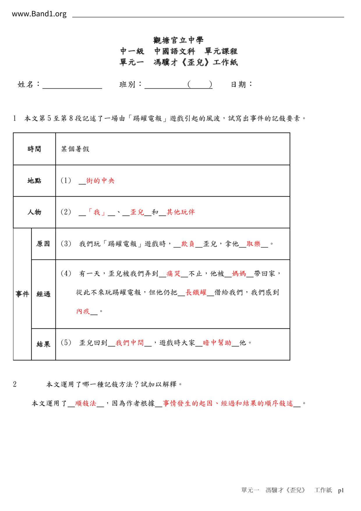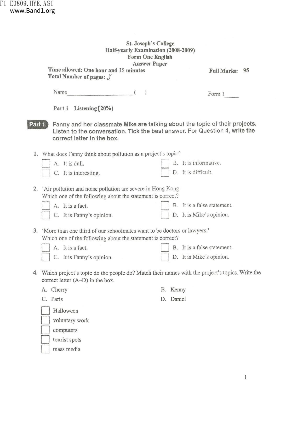 中一 英文 博愛醫院八十週年鄧英喜中學