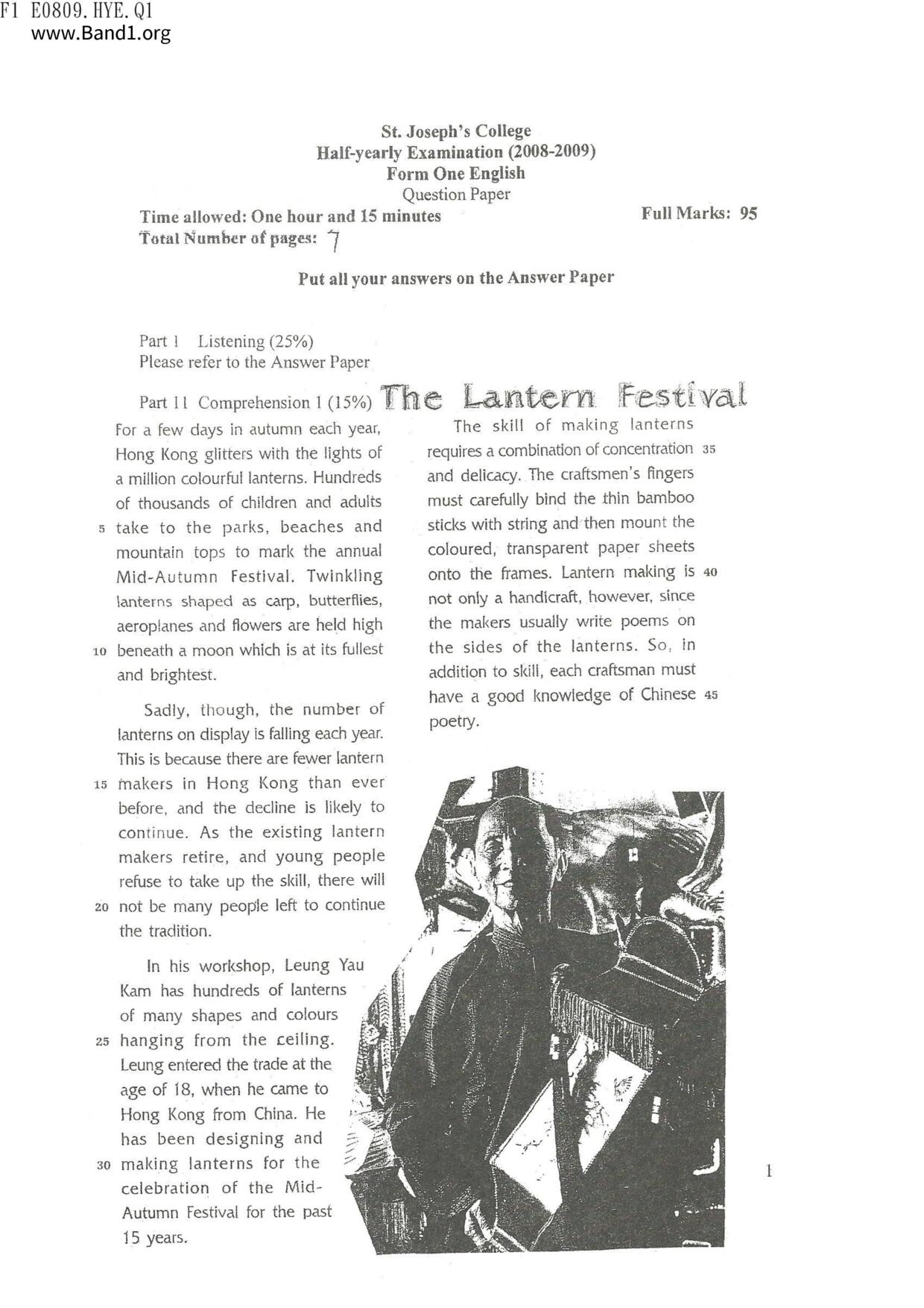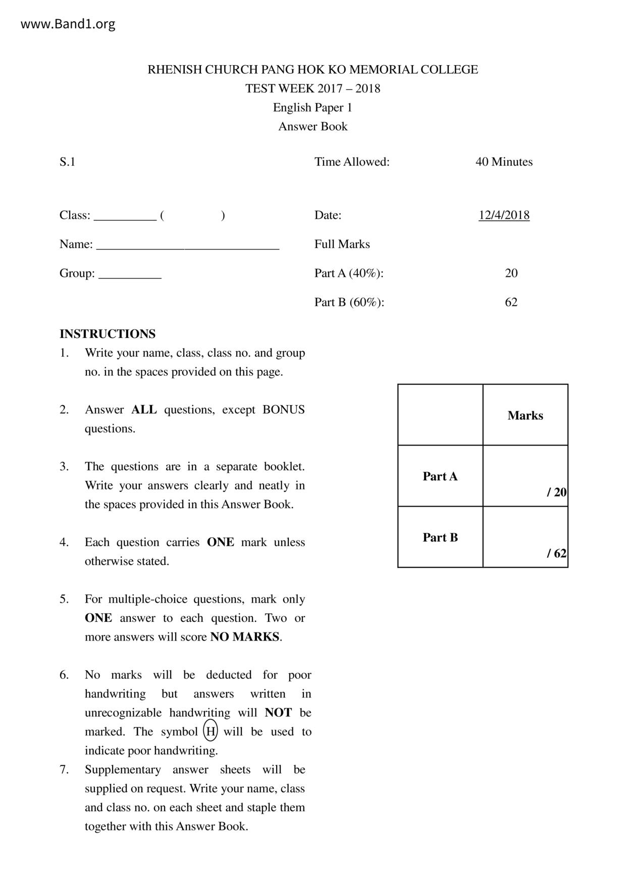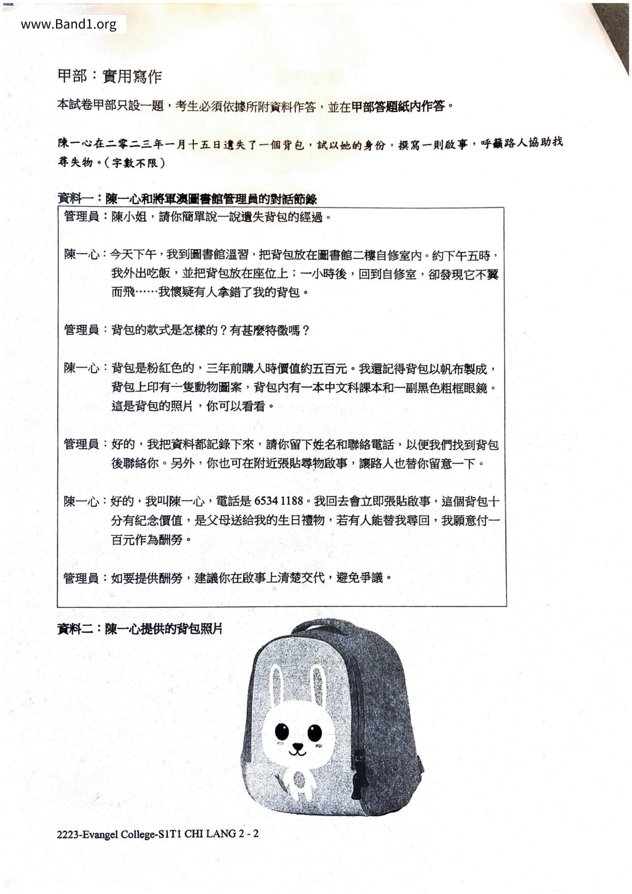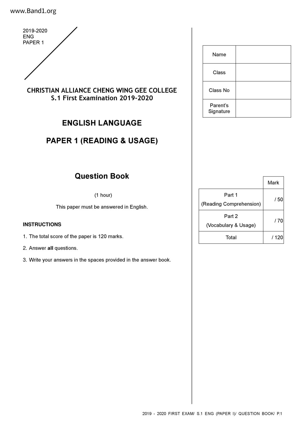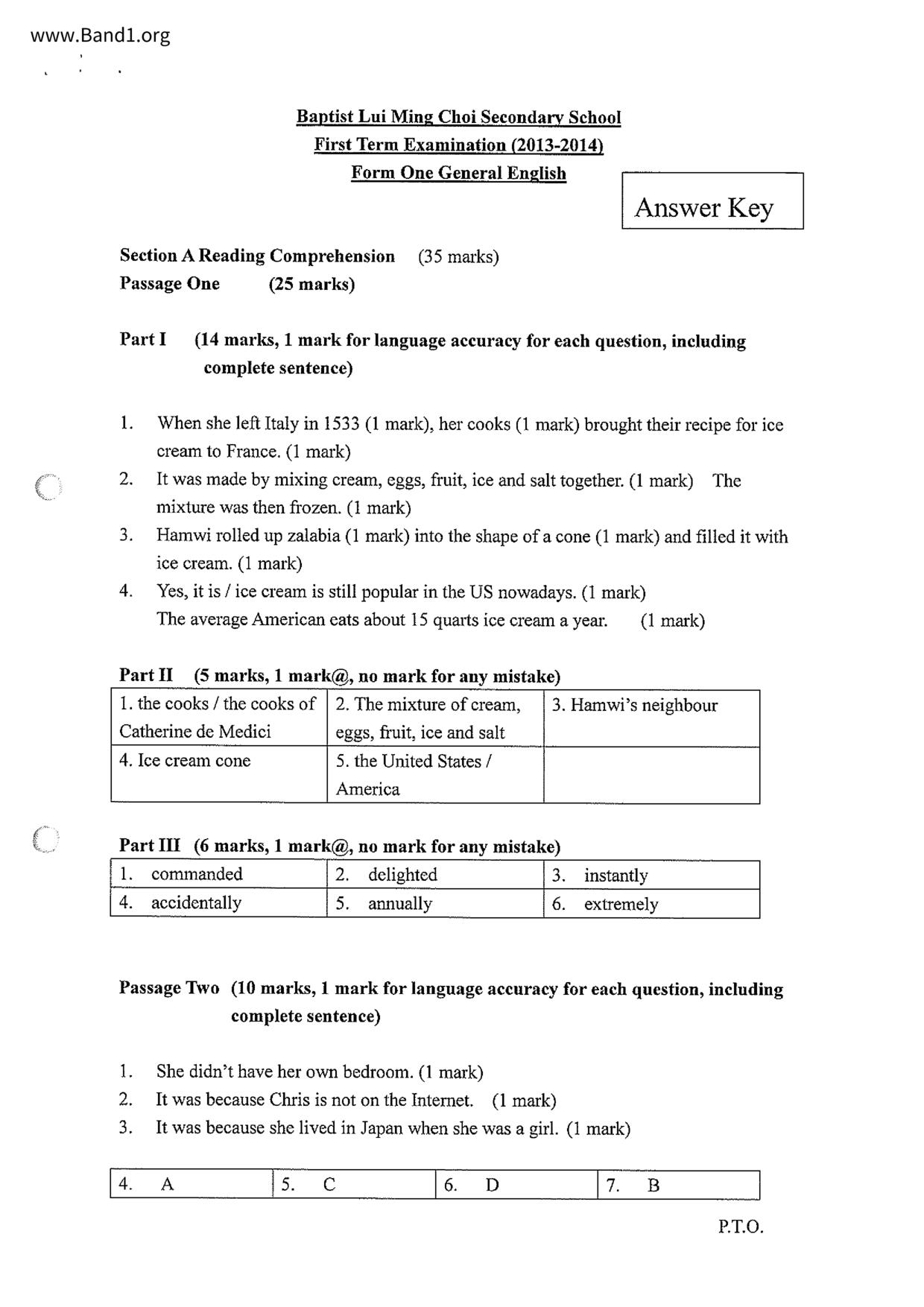 中一 英文 博愛醫院八十週年鄧英喜中學