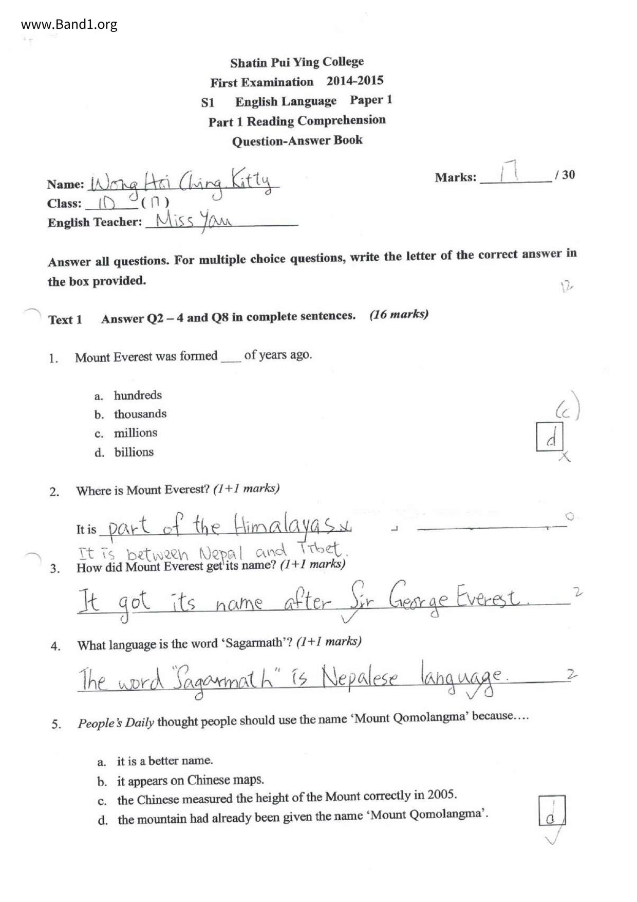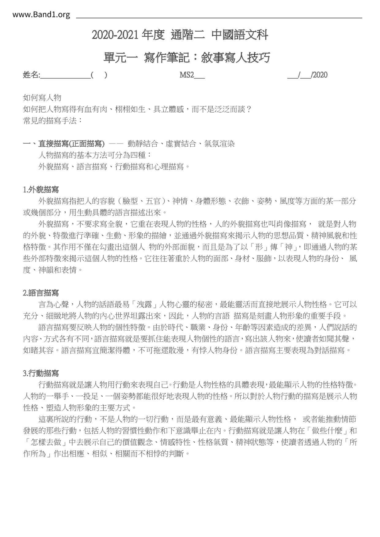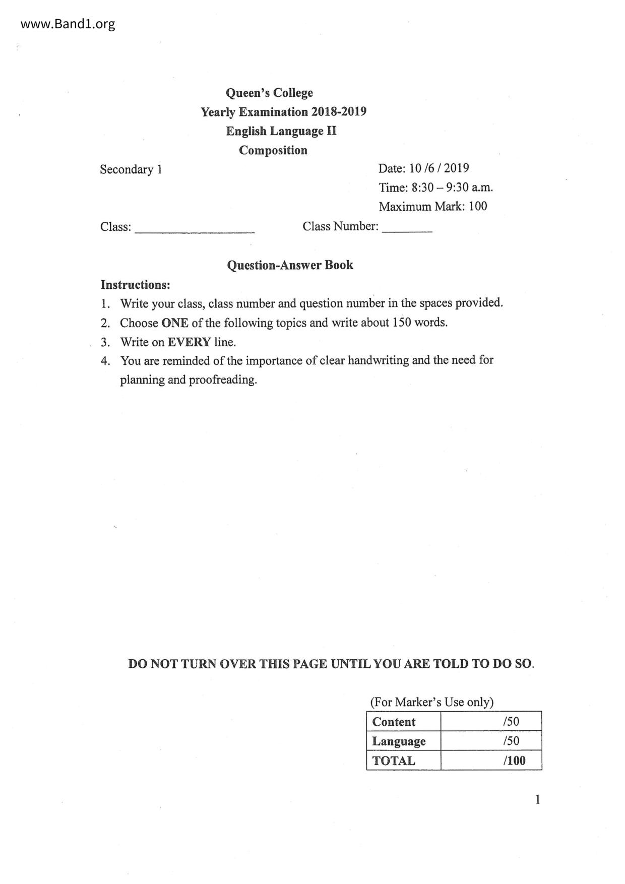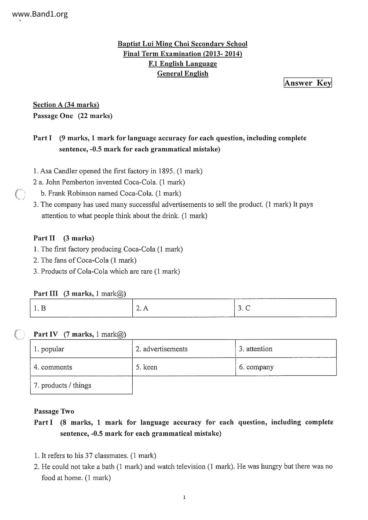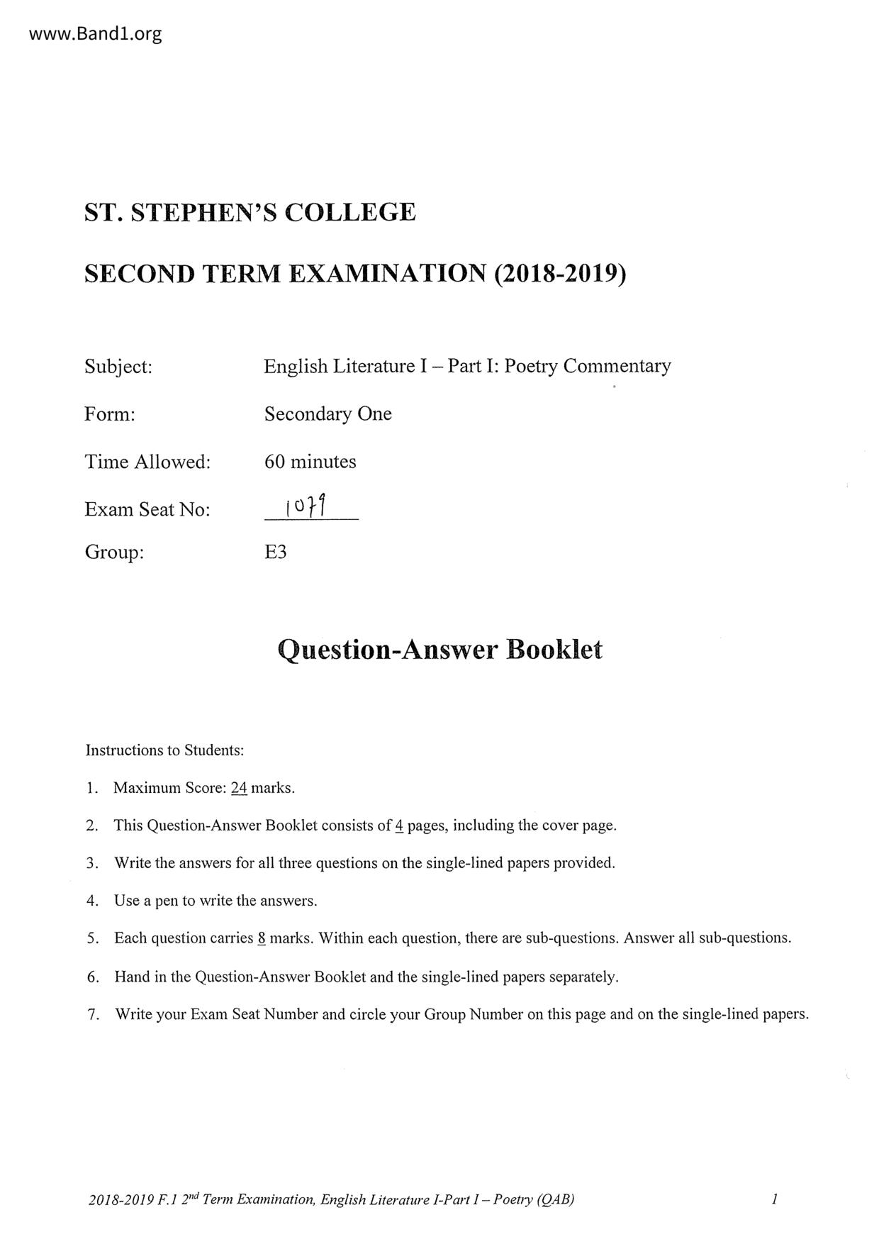 中一 英文 博愛醫院八十週年鄧英喜中學