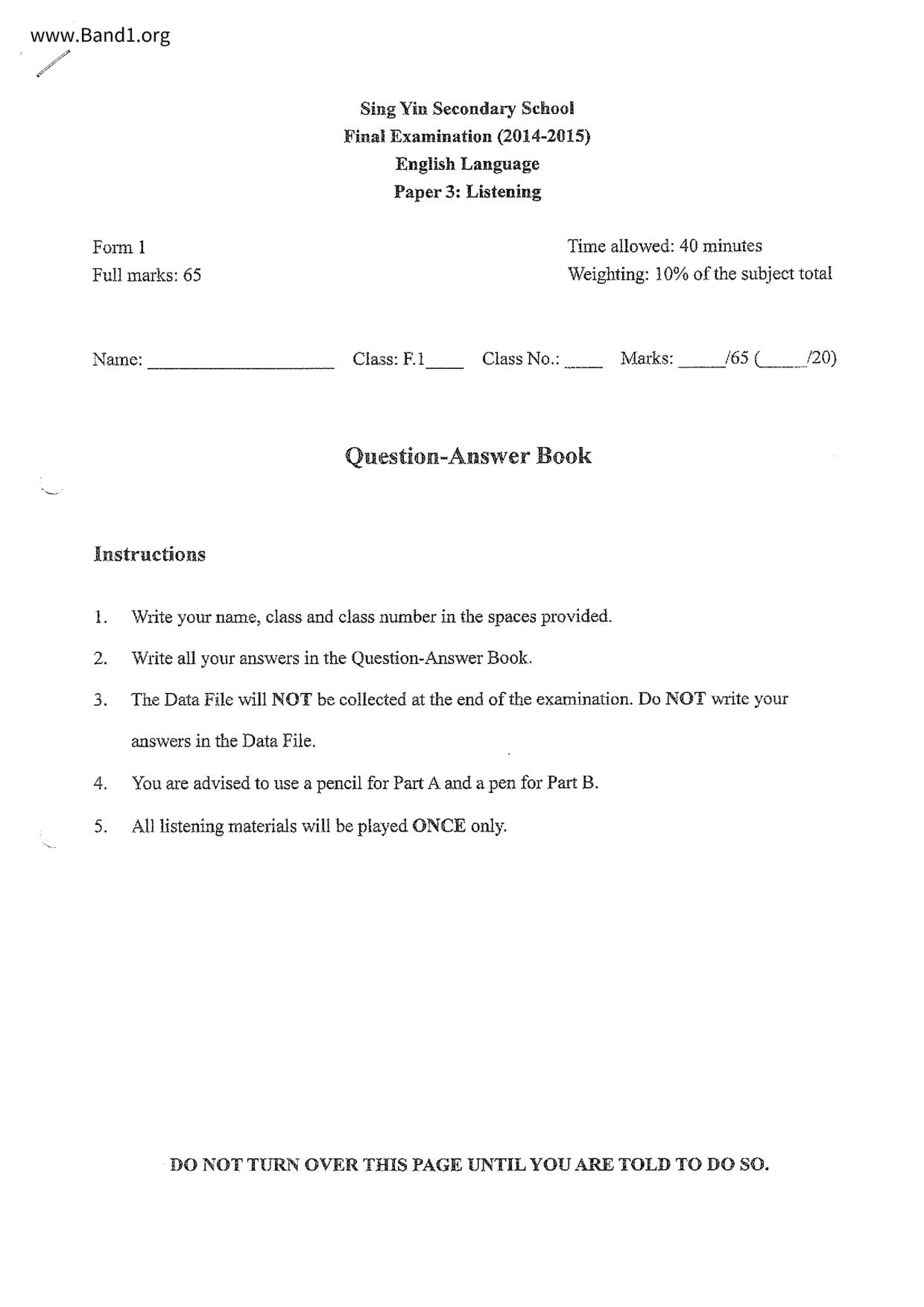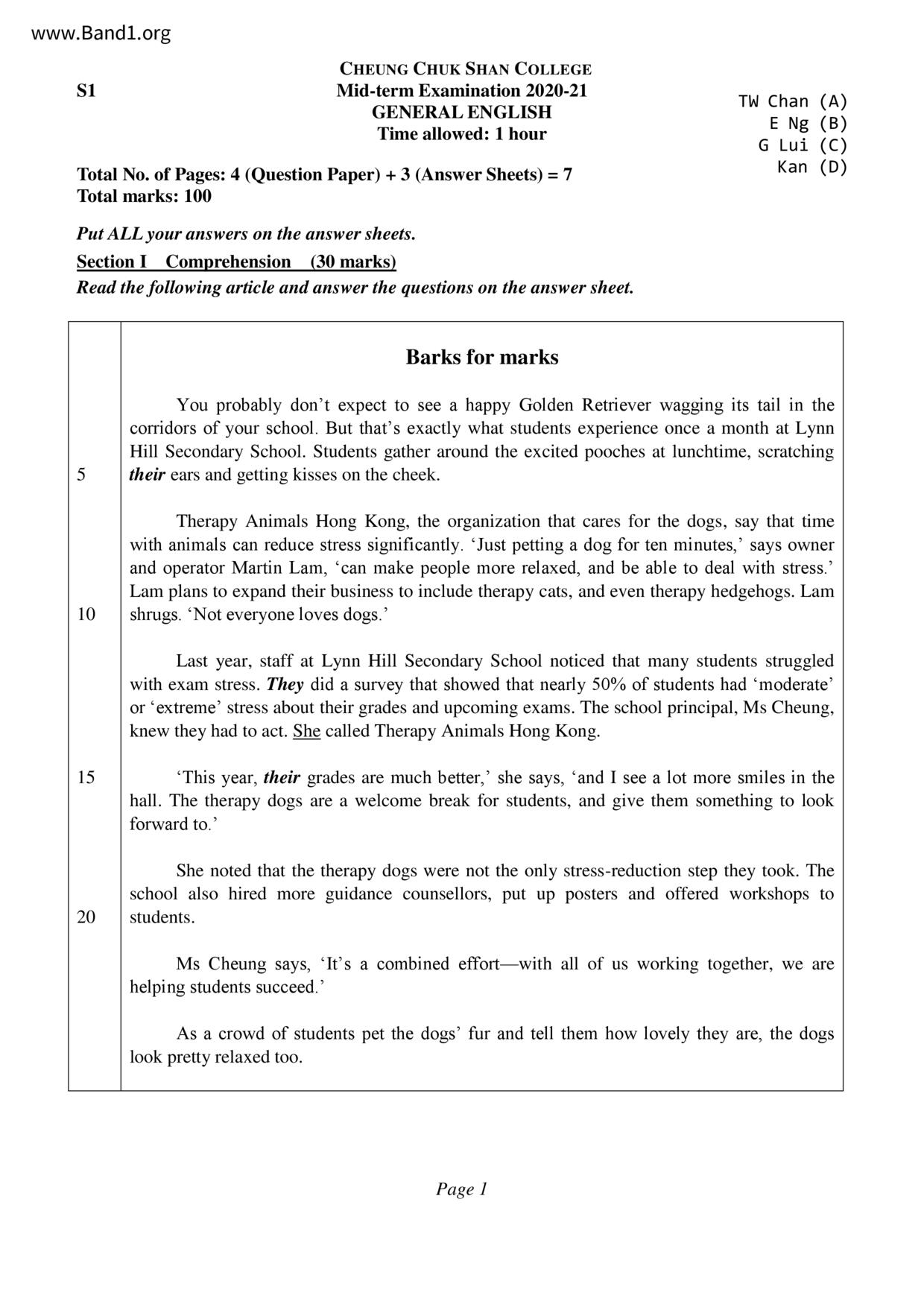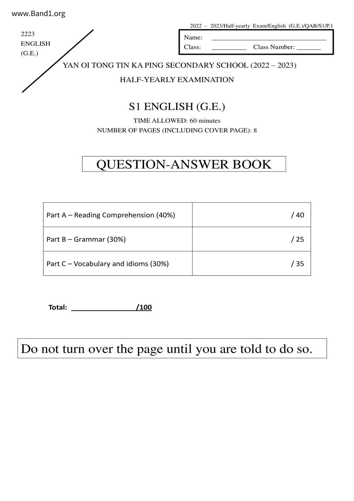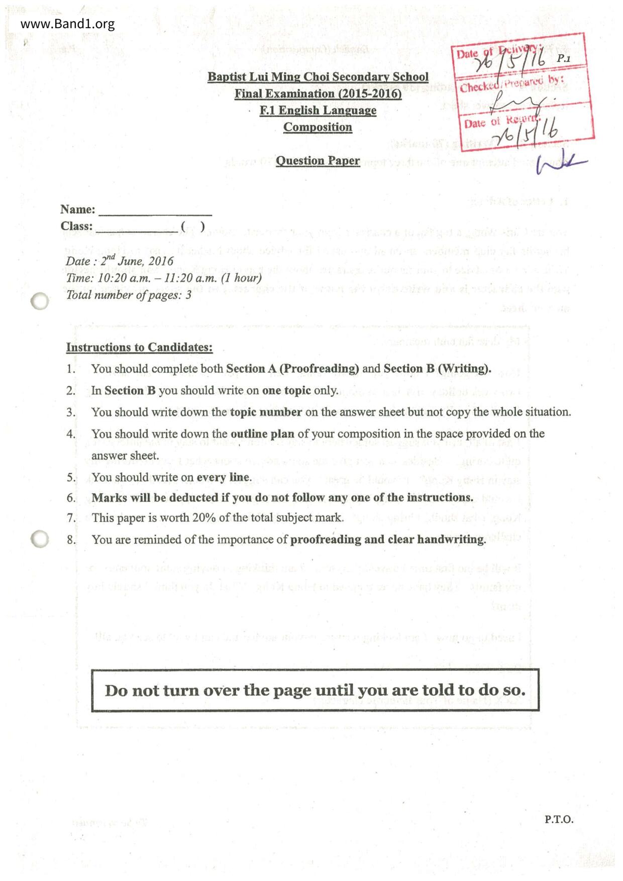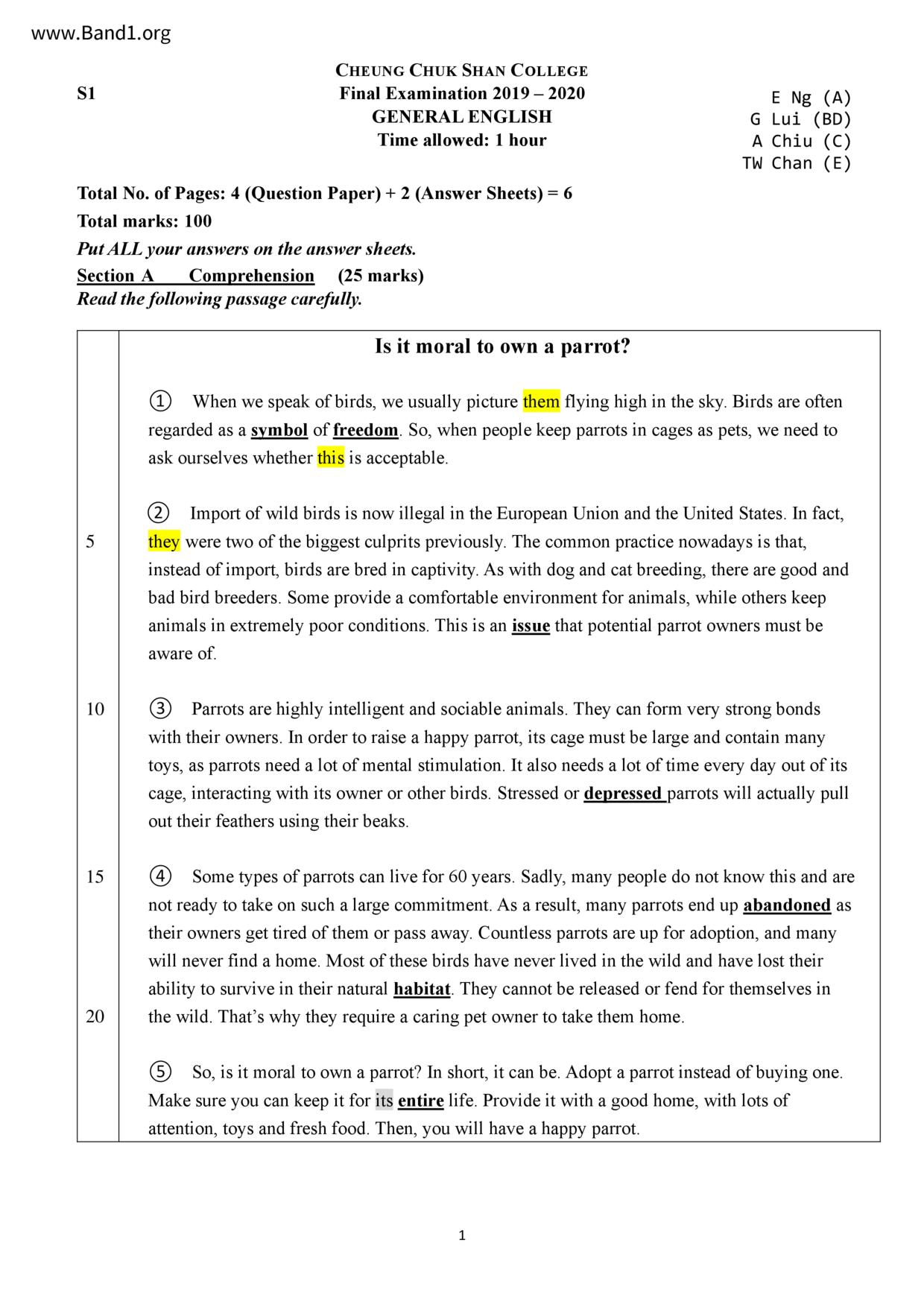 中一 英文 博愛醫院八十週年鄧英喜中學