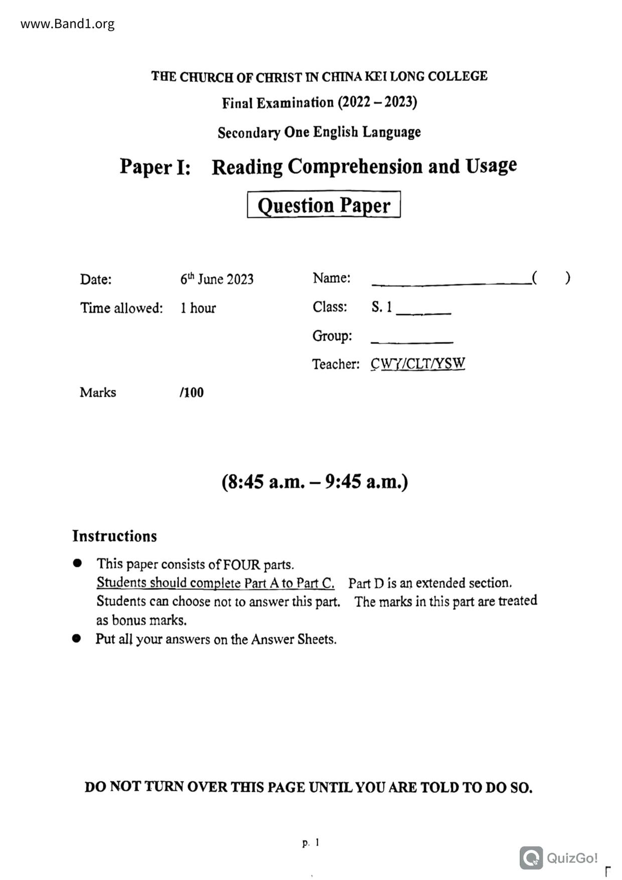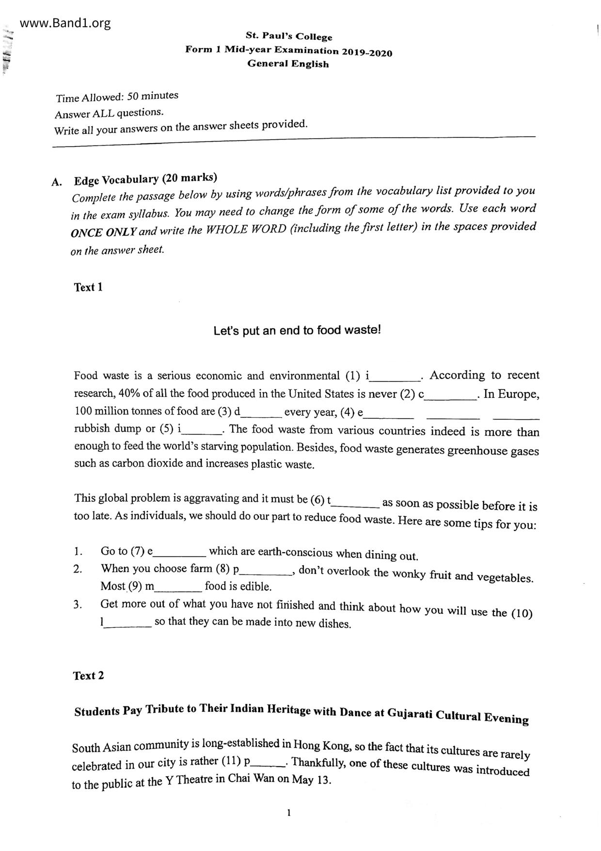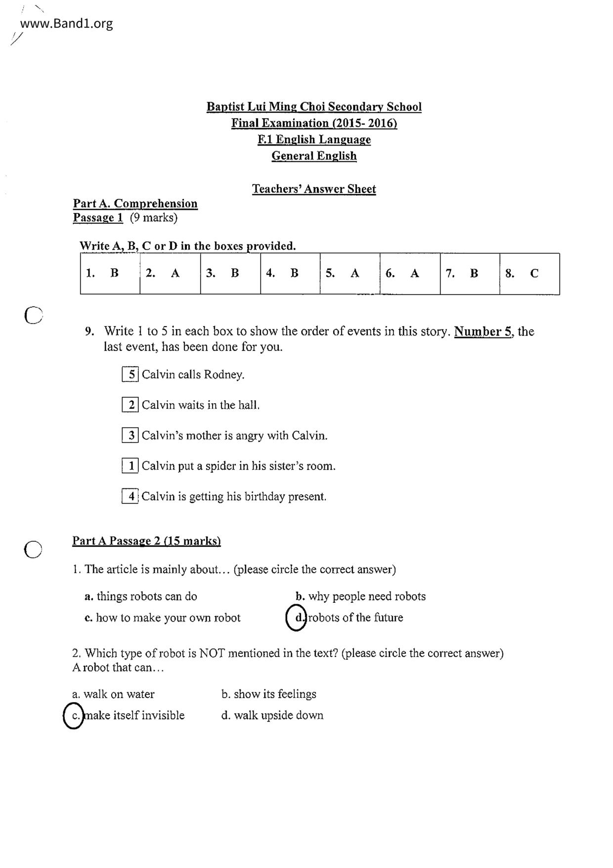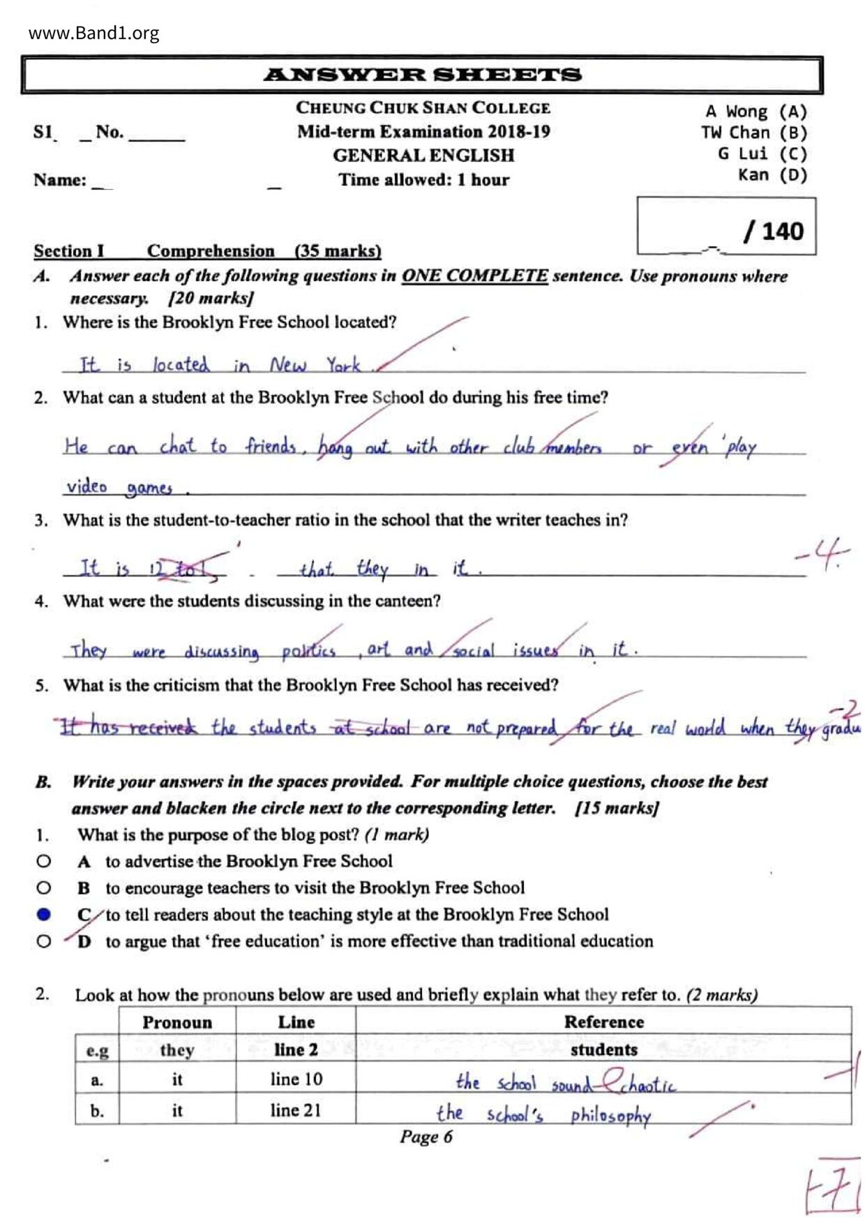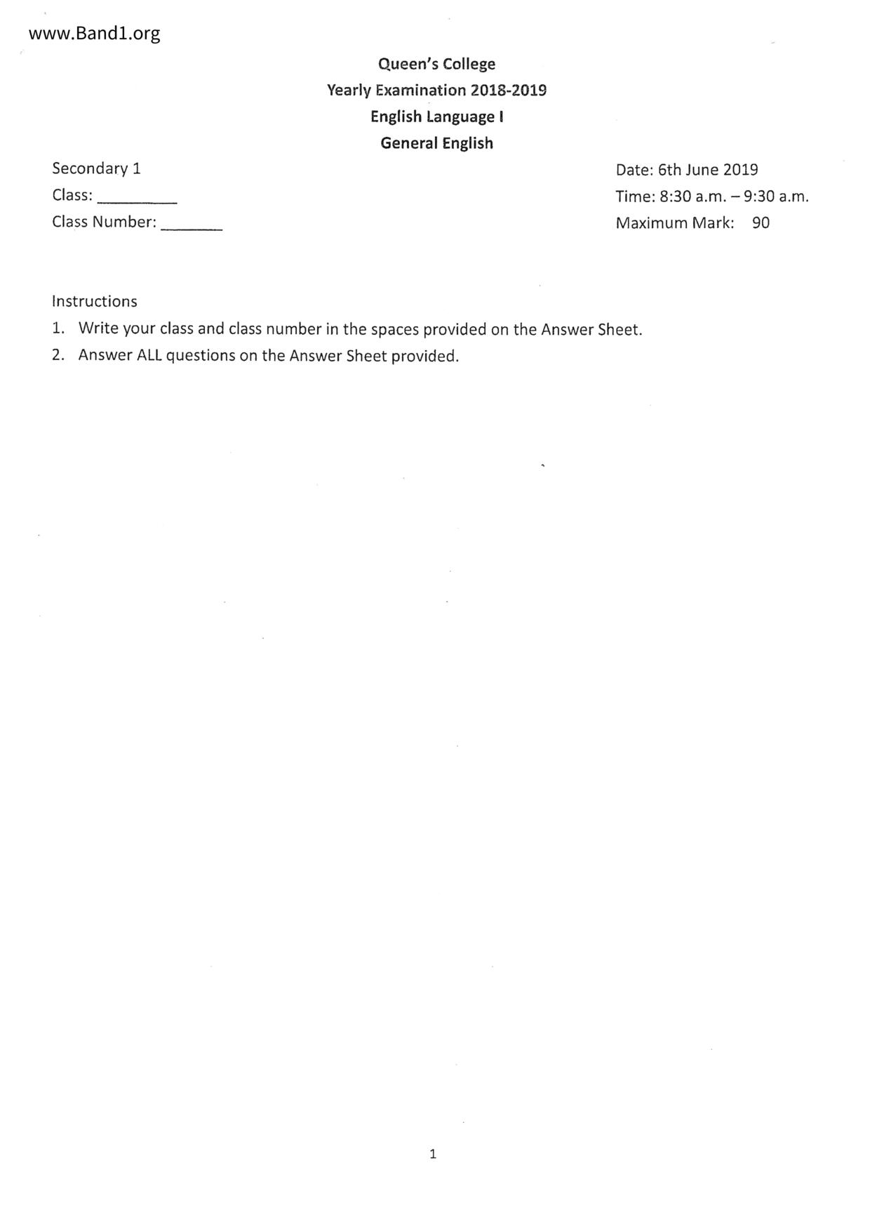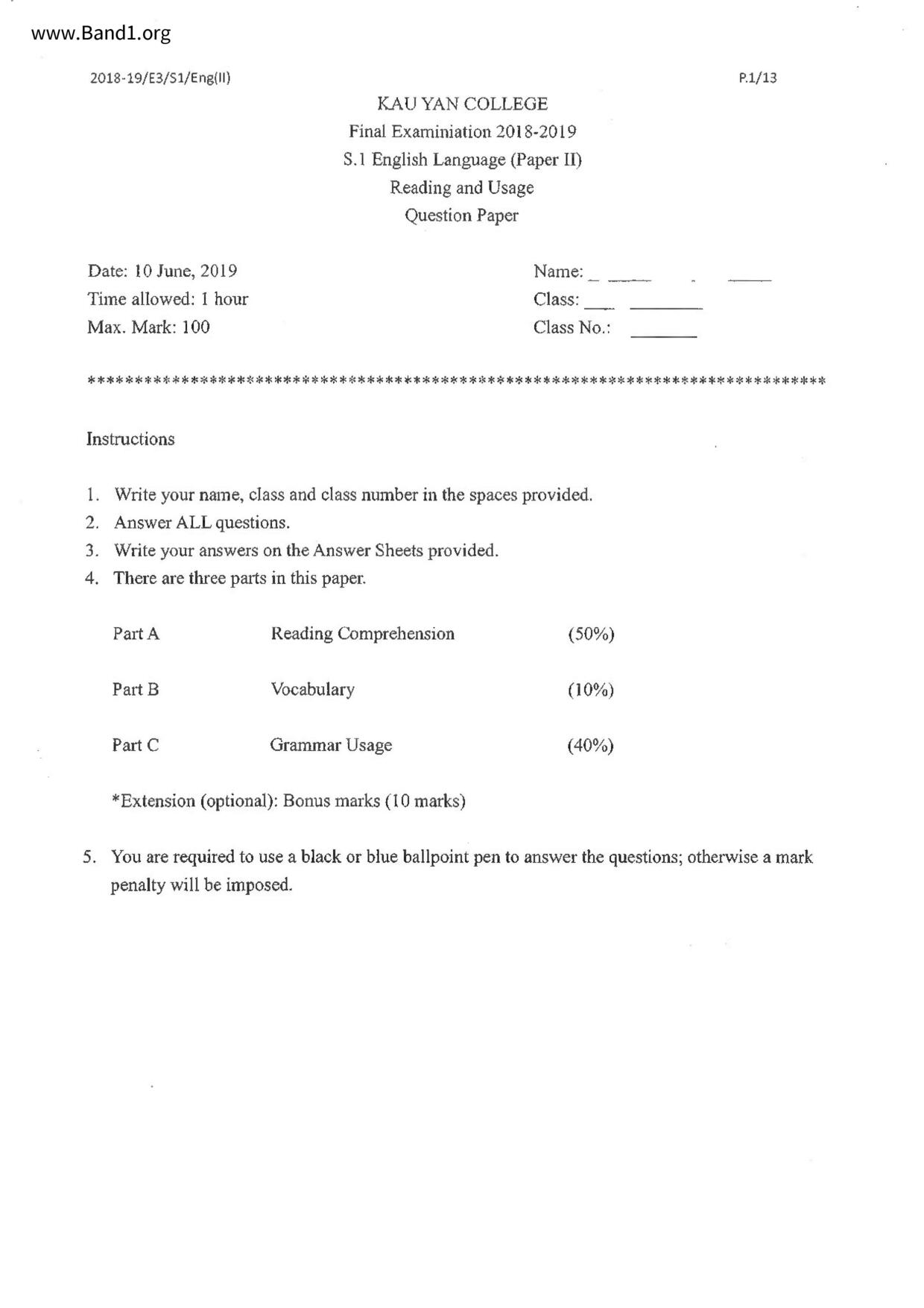 中一 英文 博愛醫院八十週年鄧英喜中學
