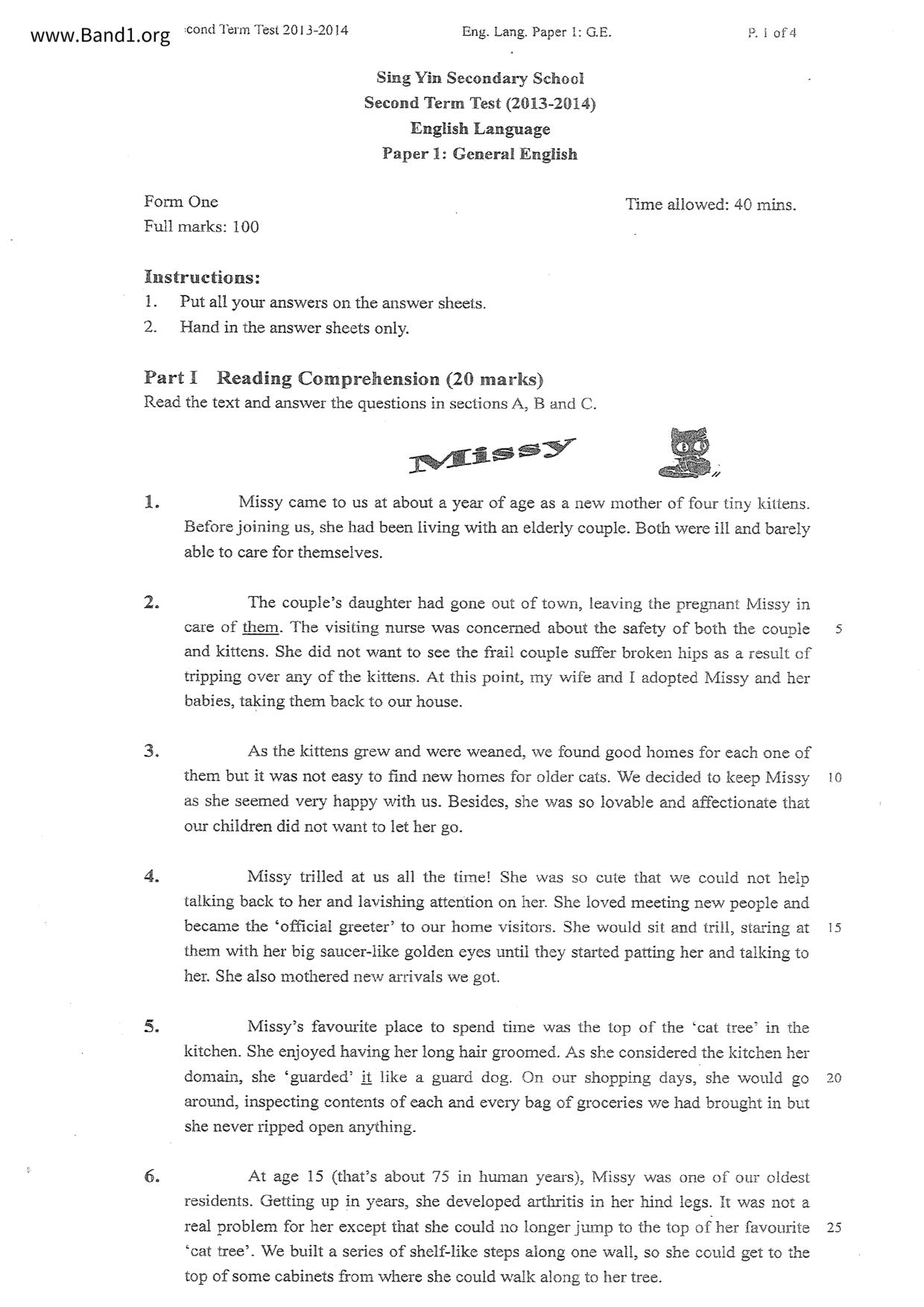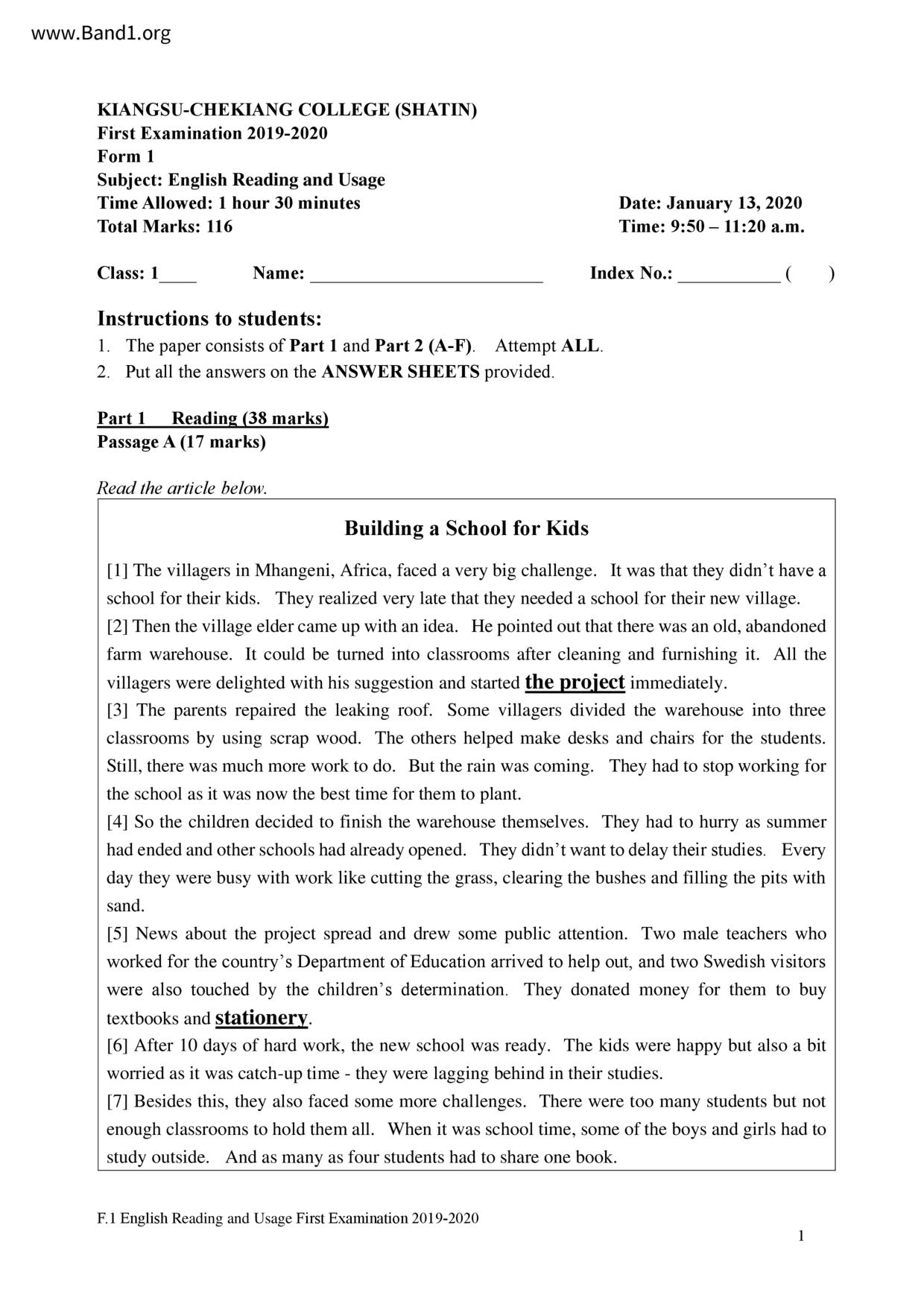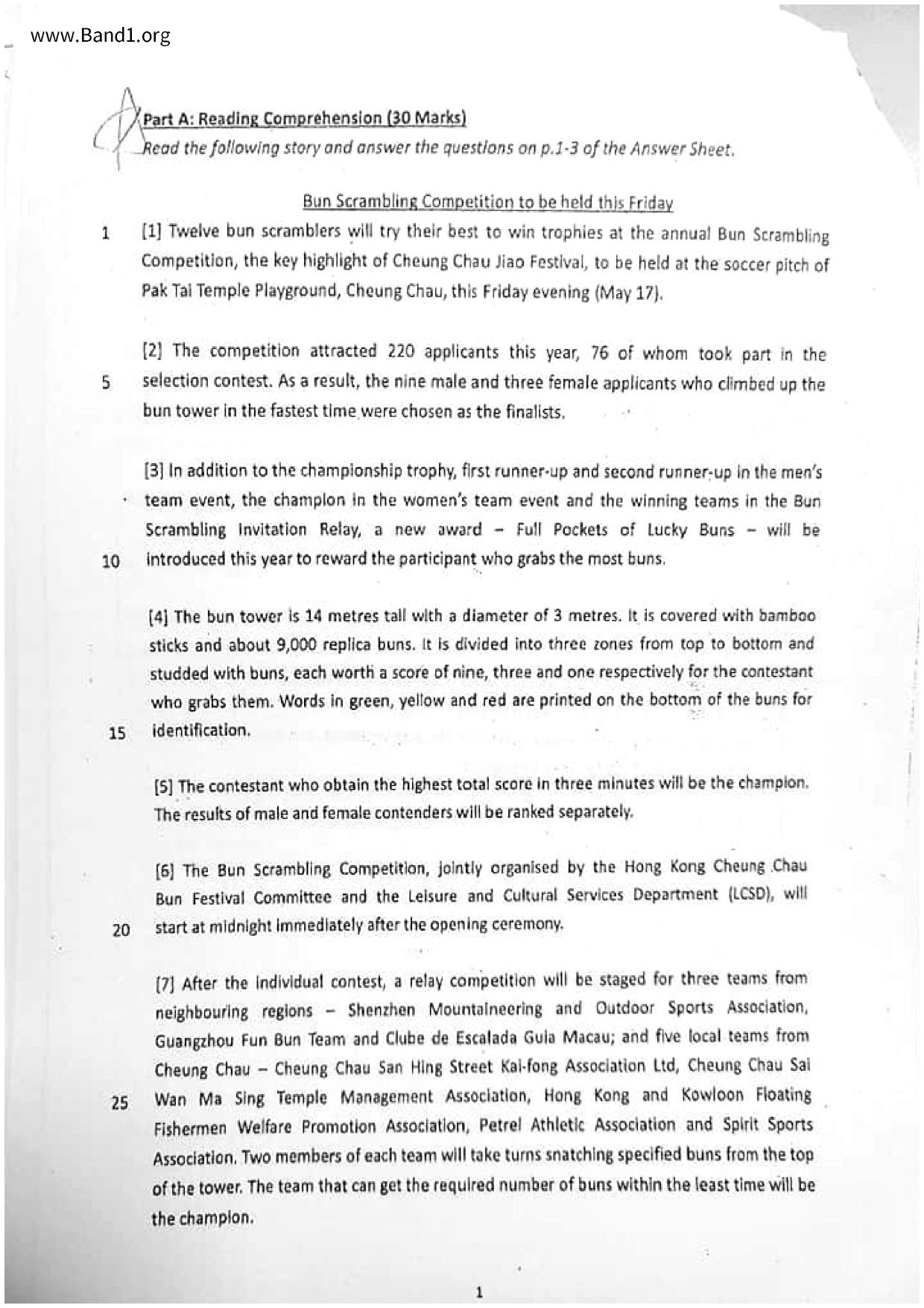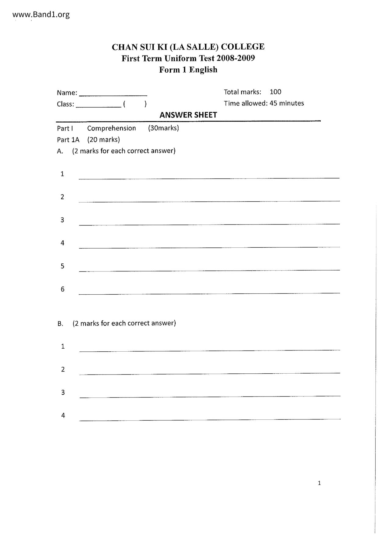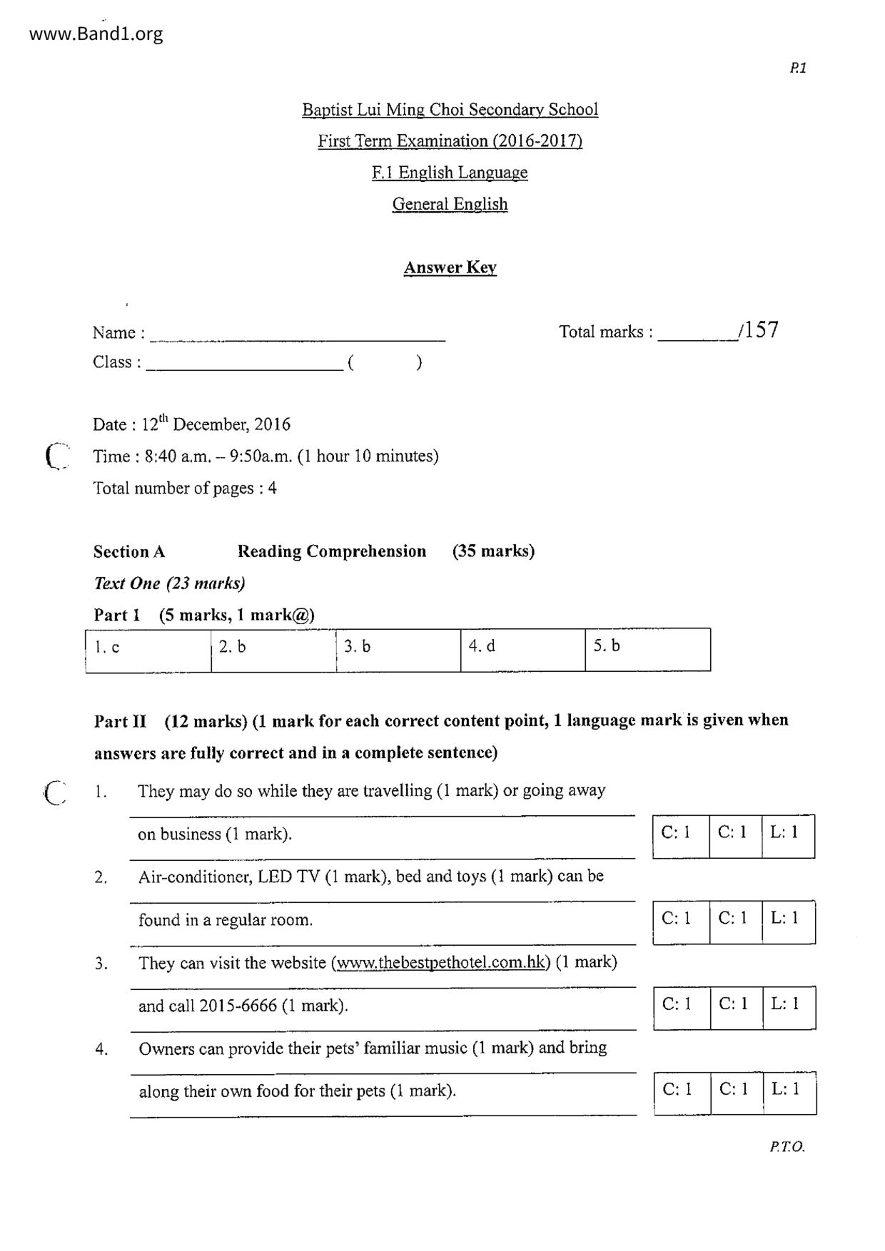中一 英文 博愛醫院八十週年鄧英喜中學