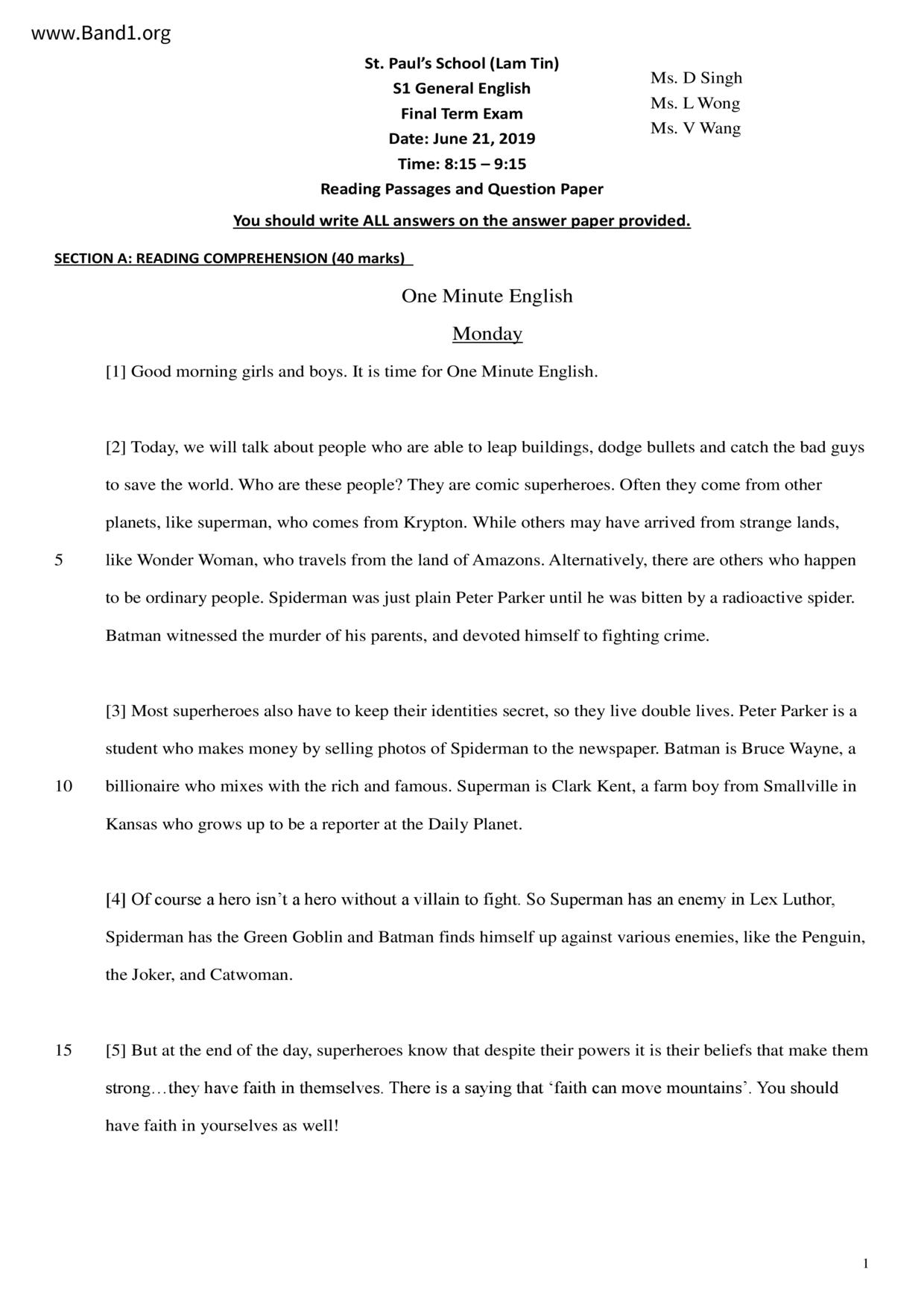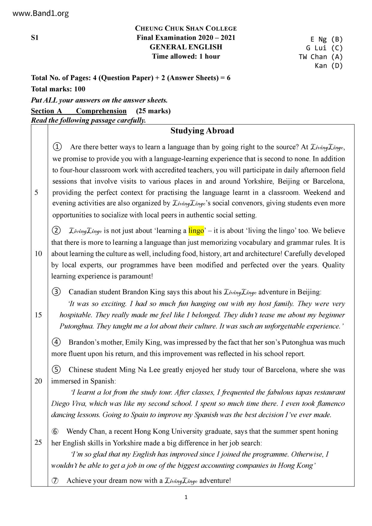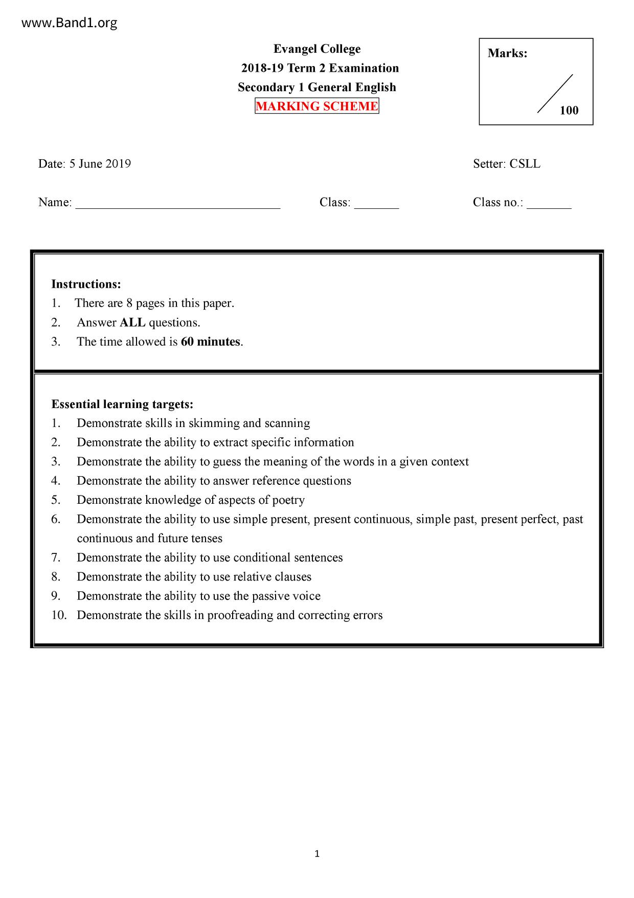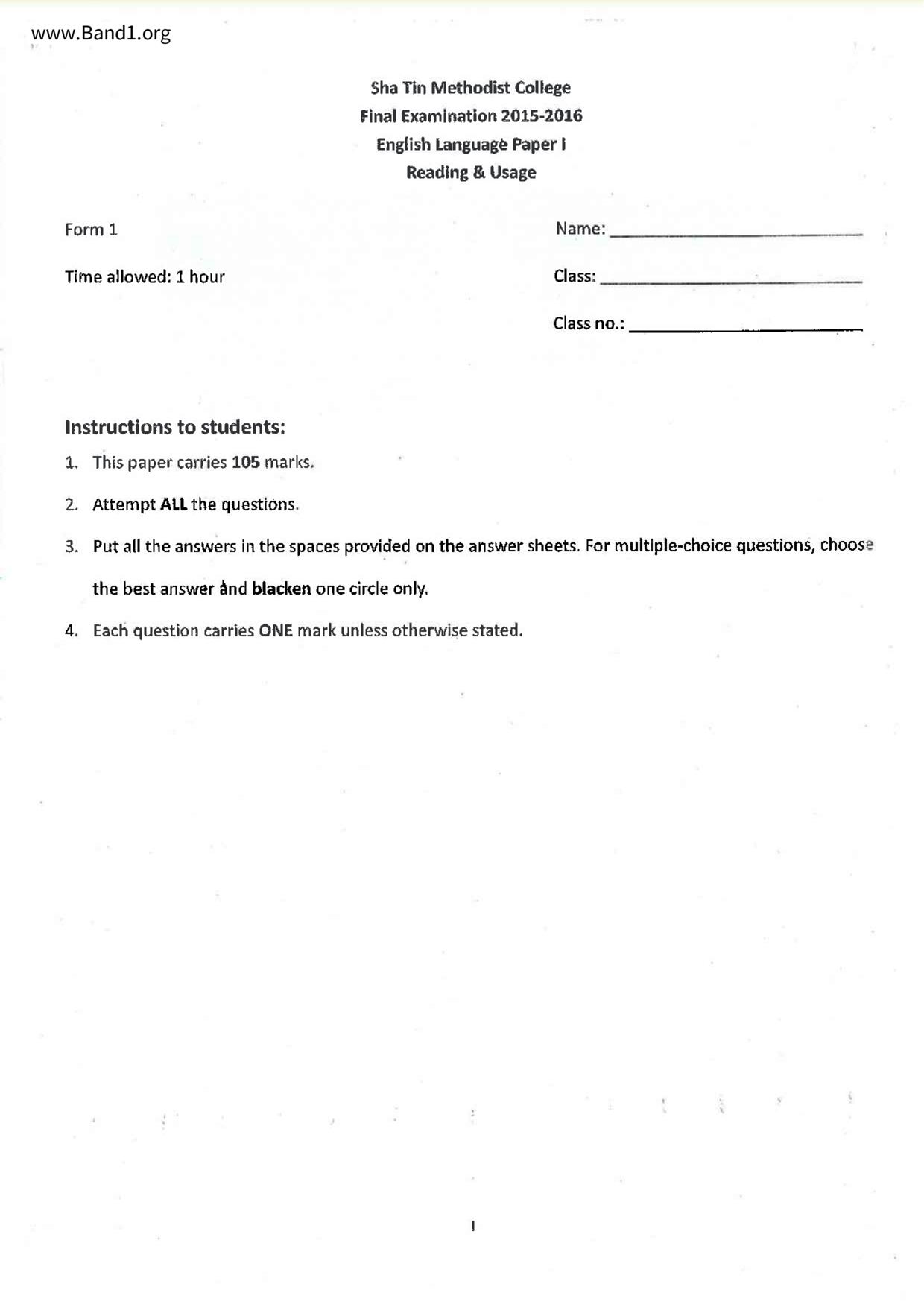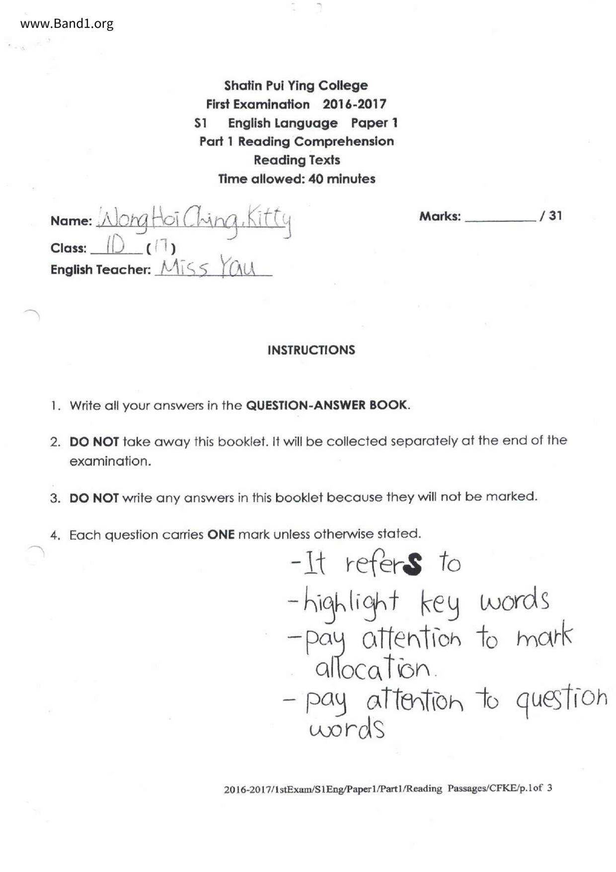 中一 英文 博愛醫院八十週年鄧英喜中學