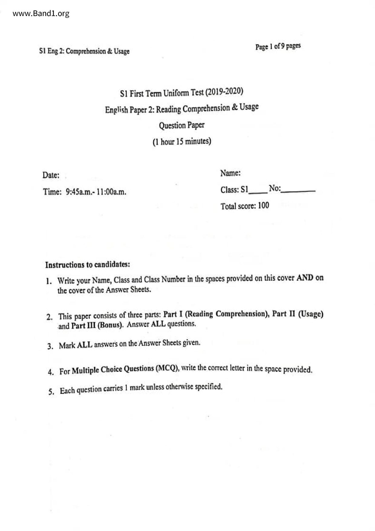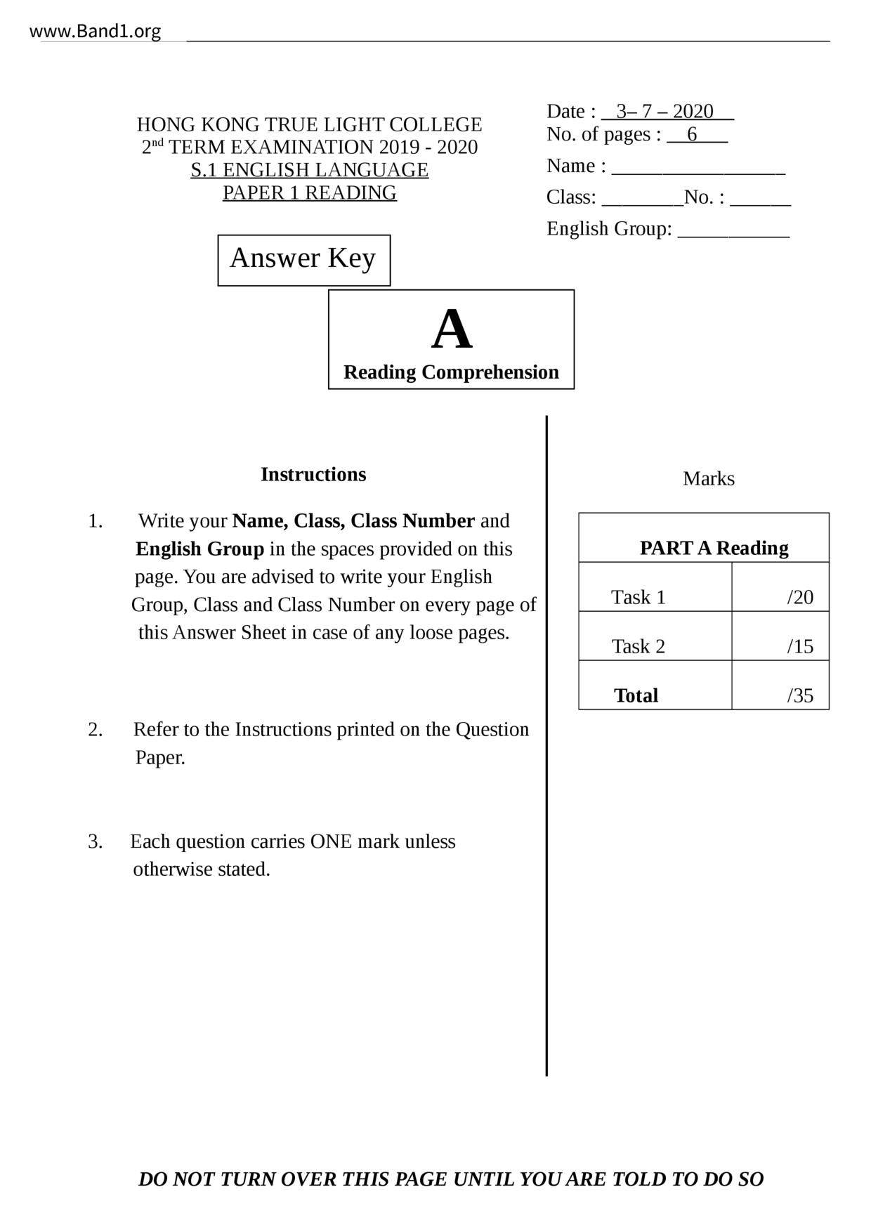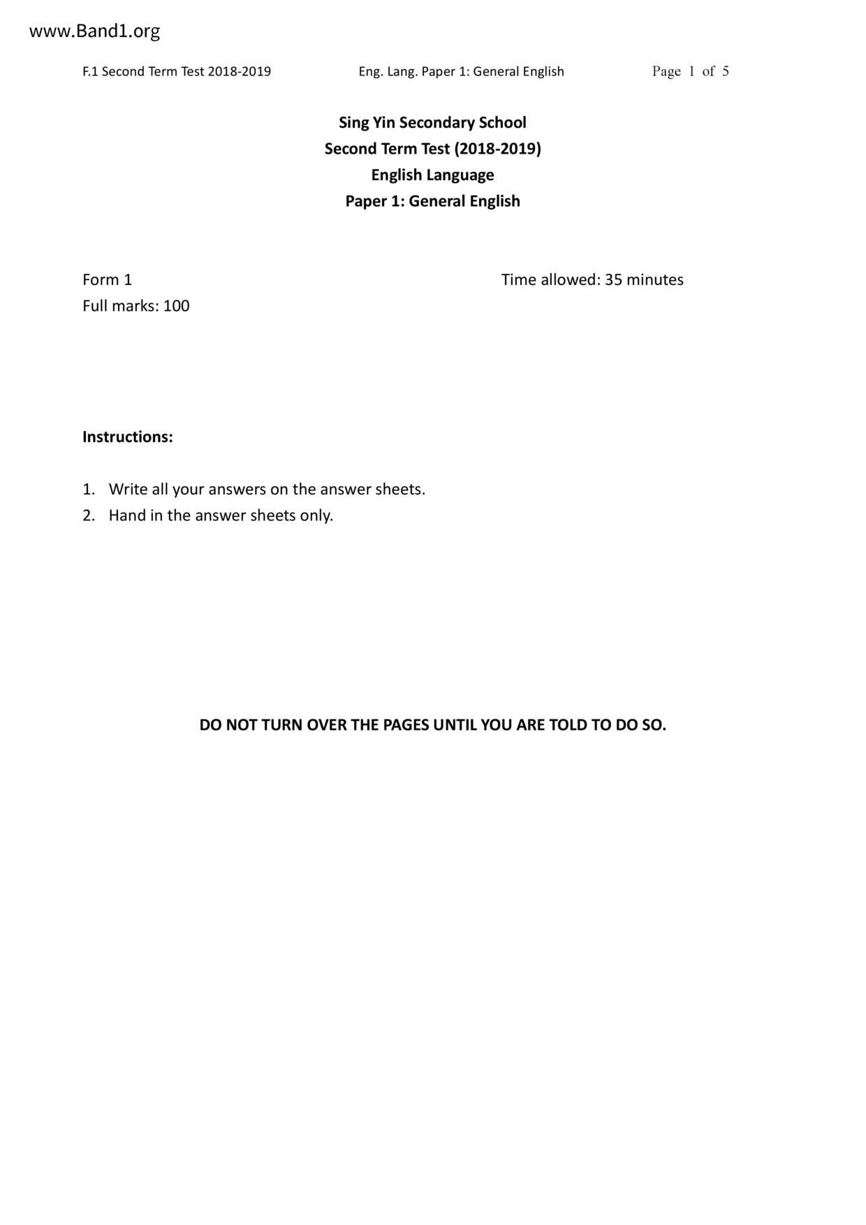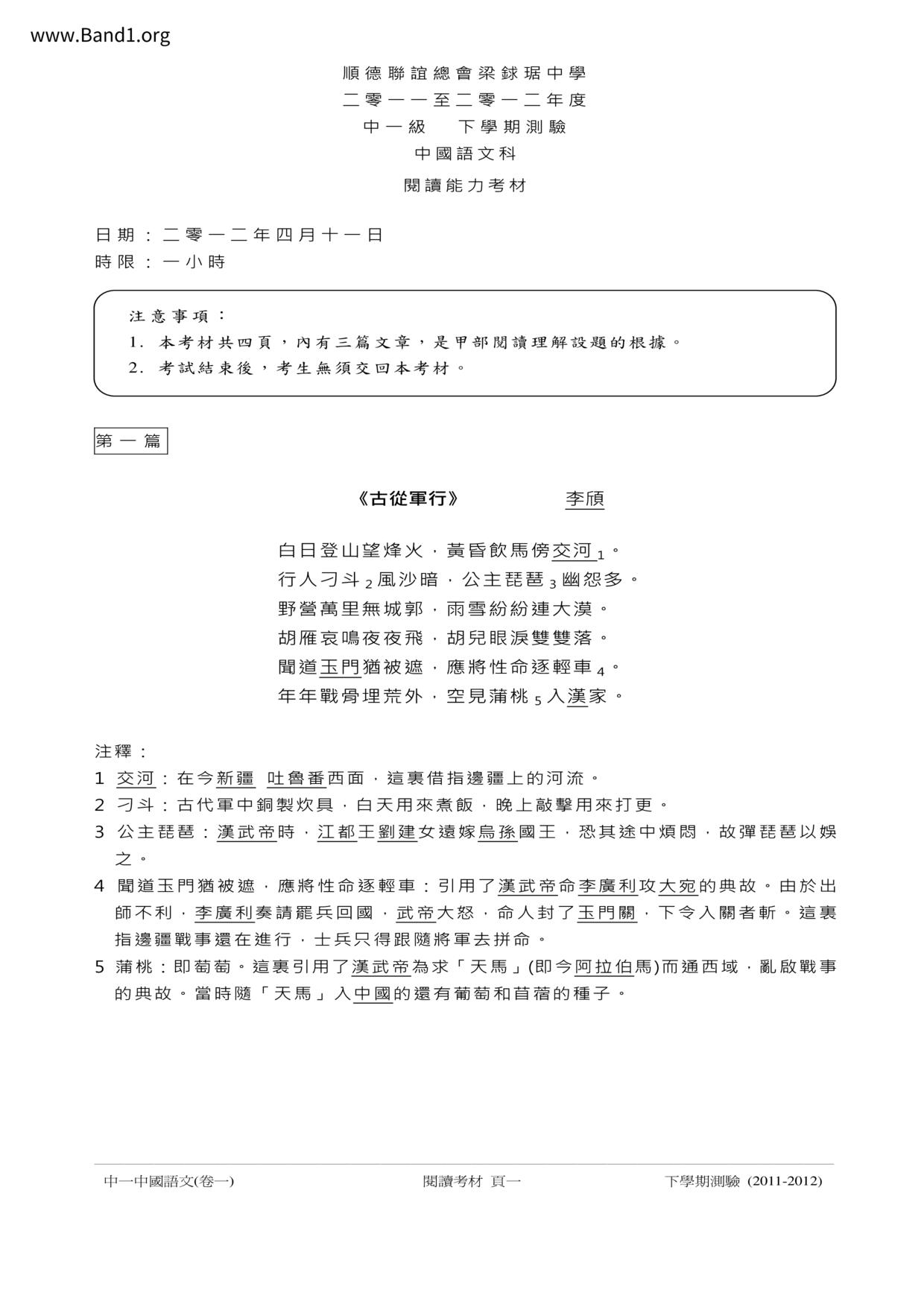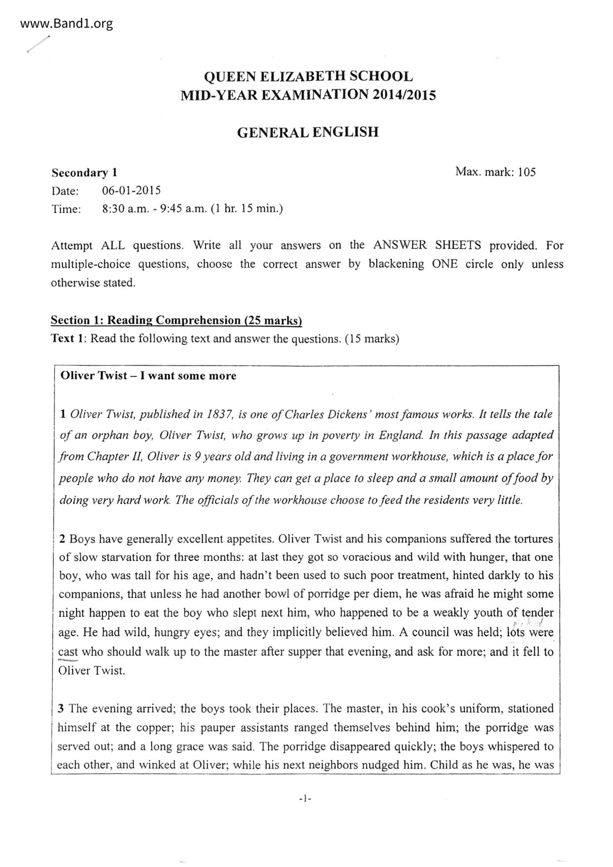 中一 英文 博愛醫院八十週年鄧英喜中學
