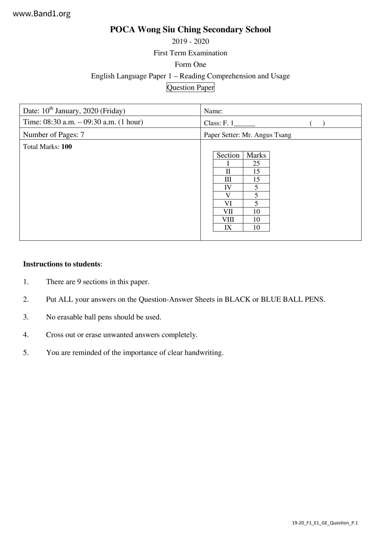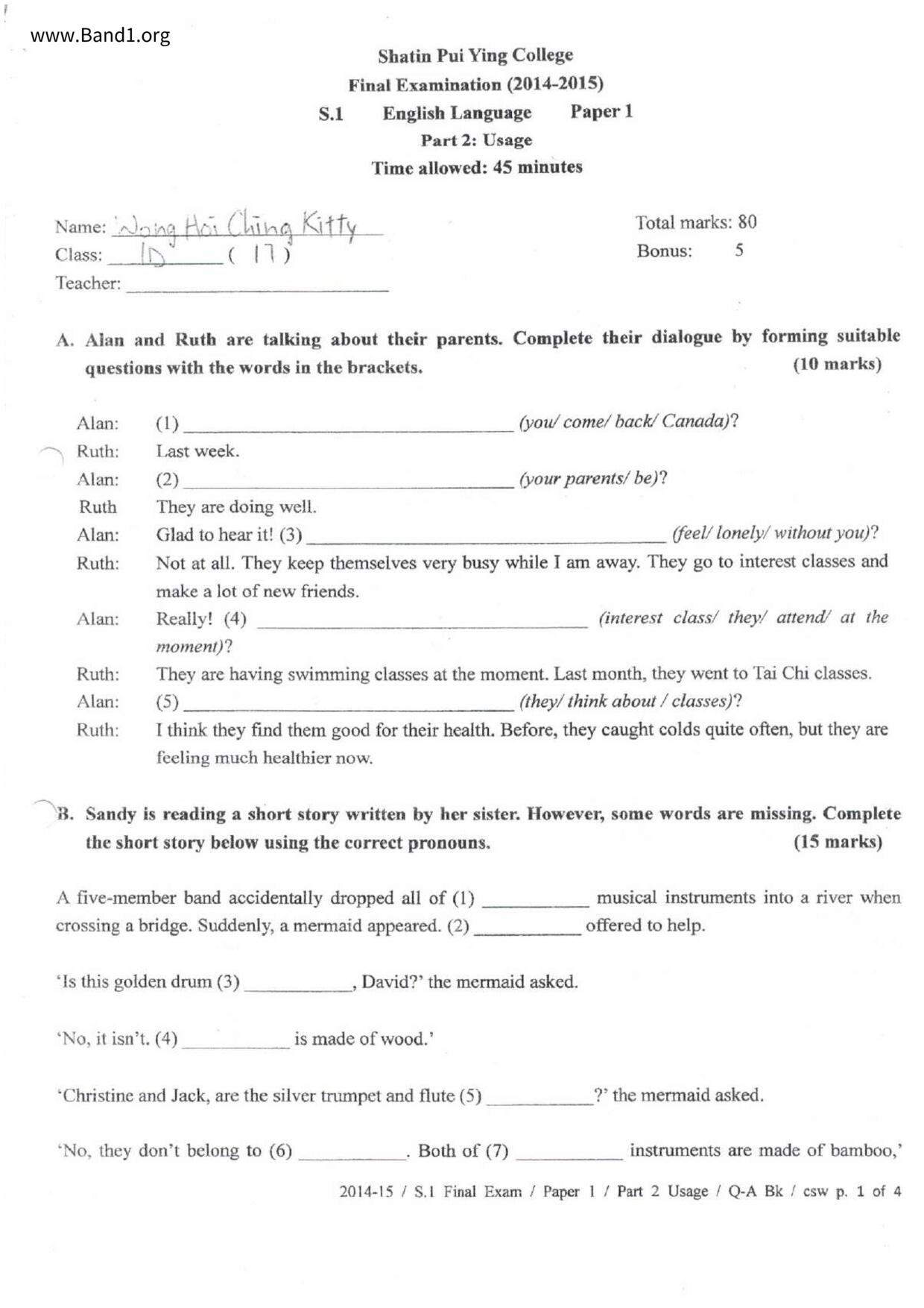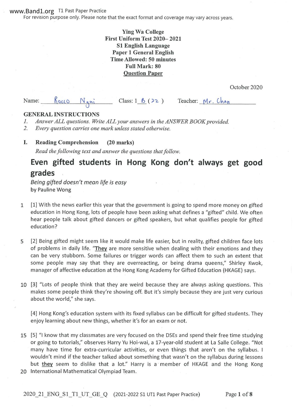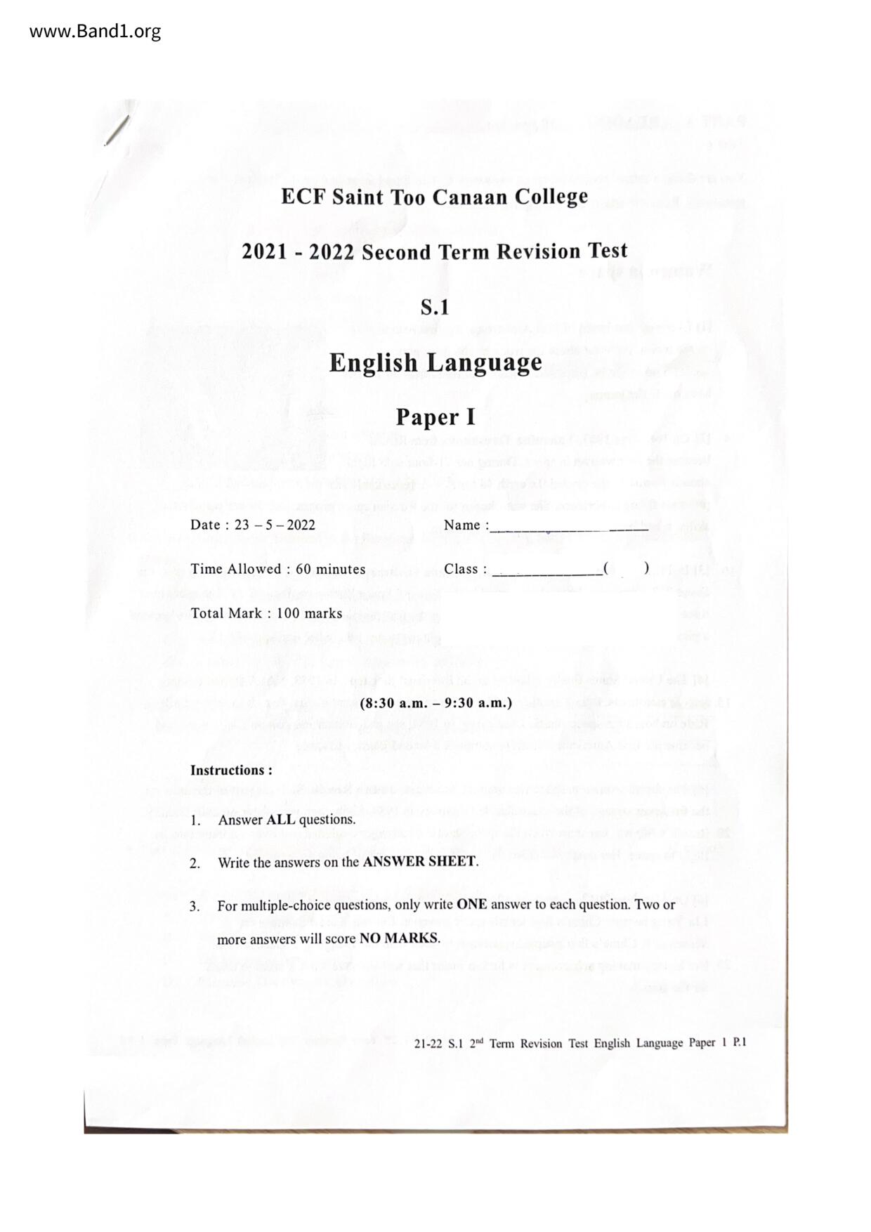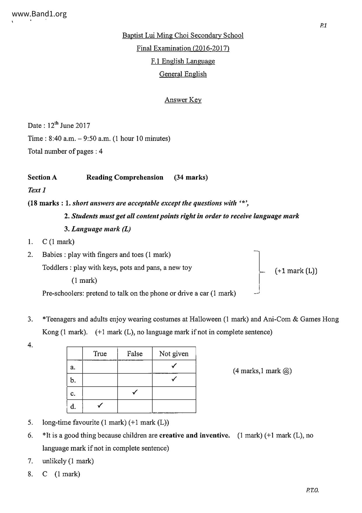 中一 英文 博愛醫院八十週年鄧英喜中學