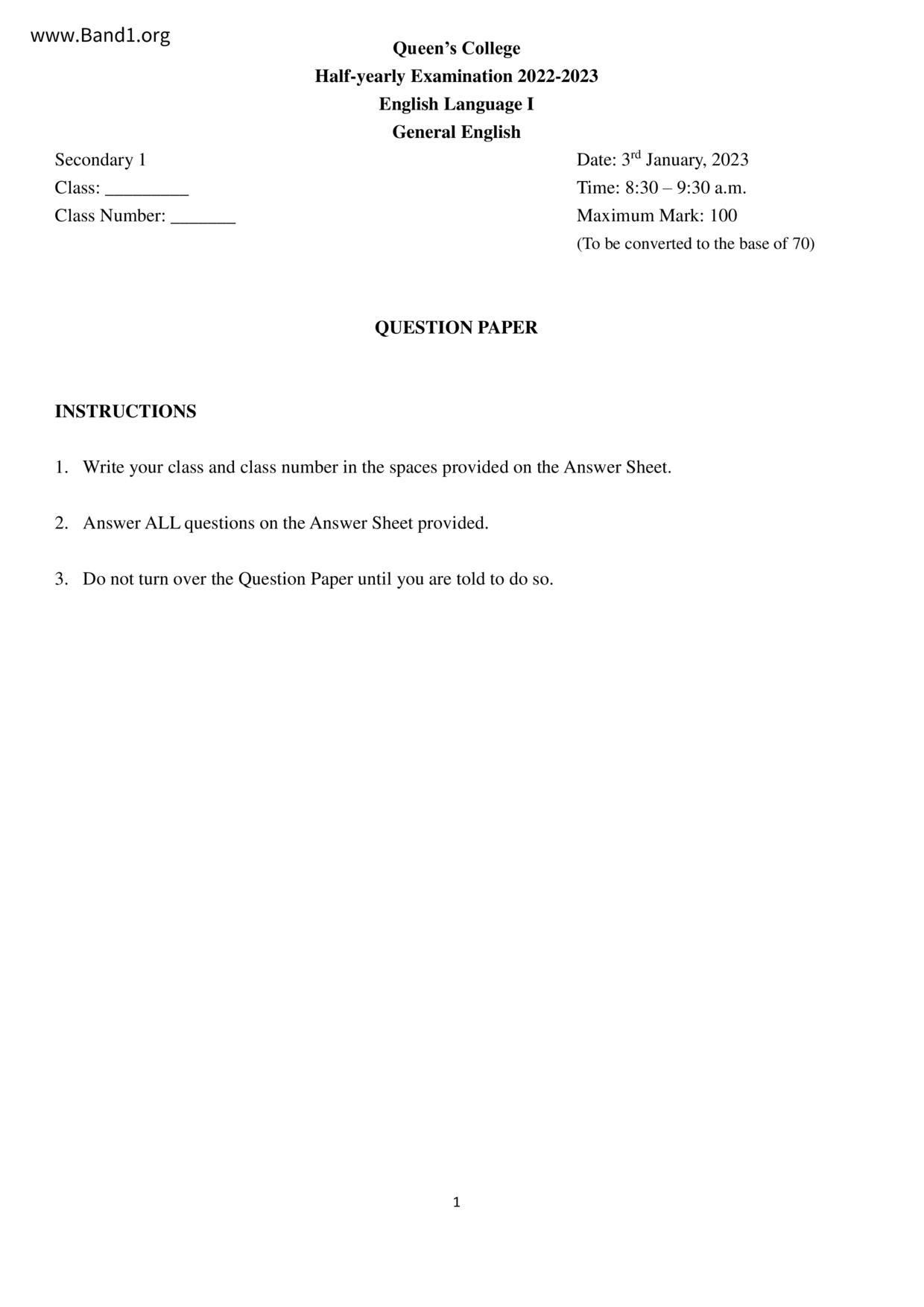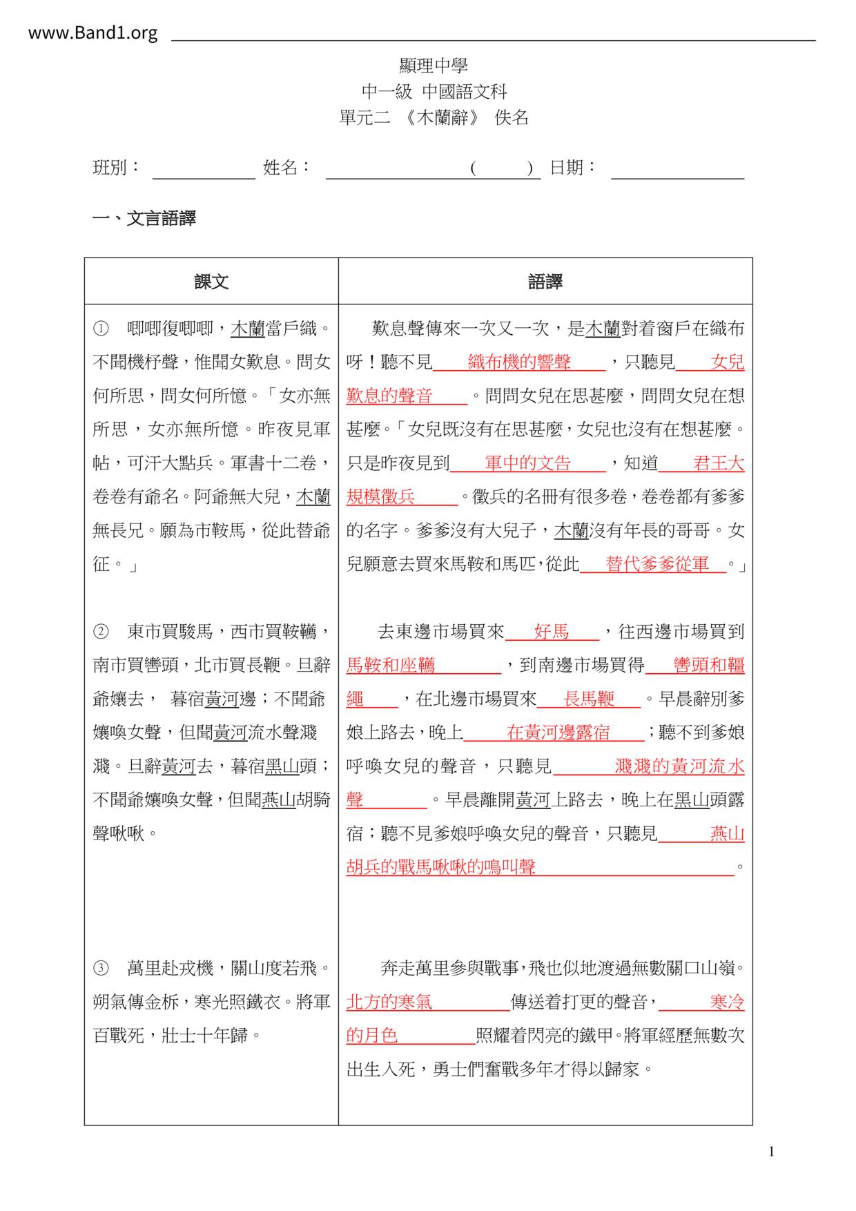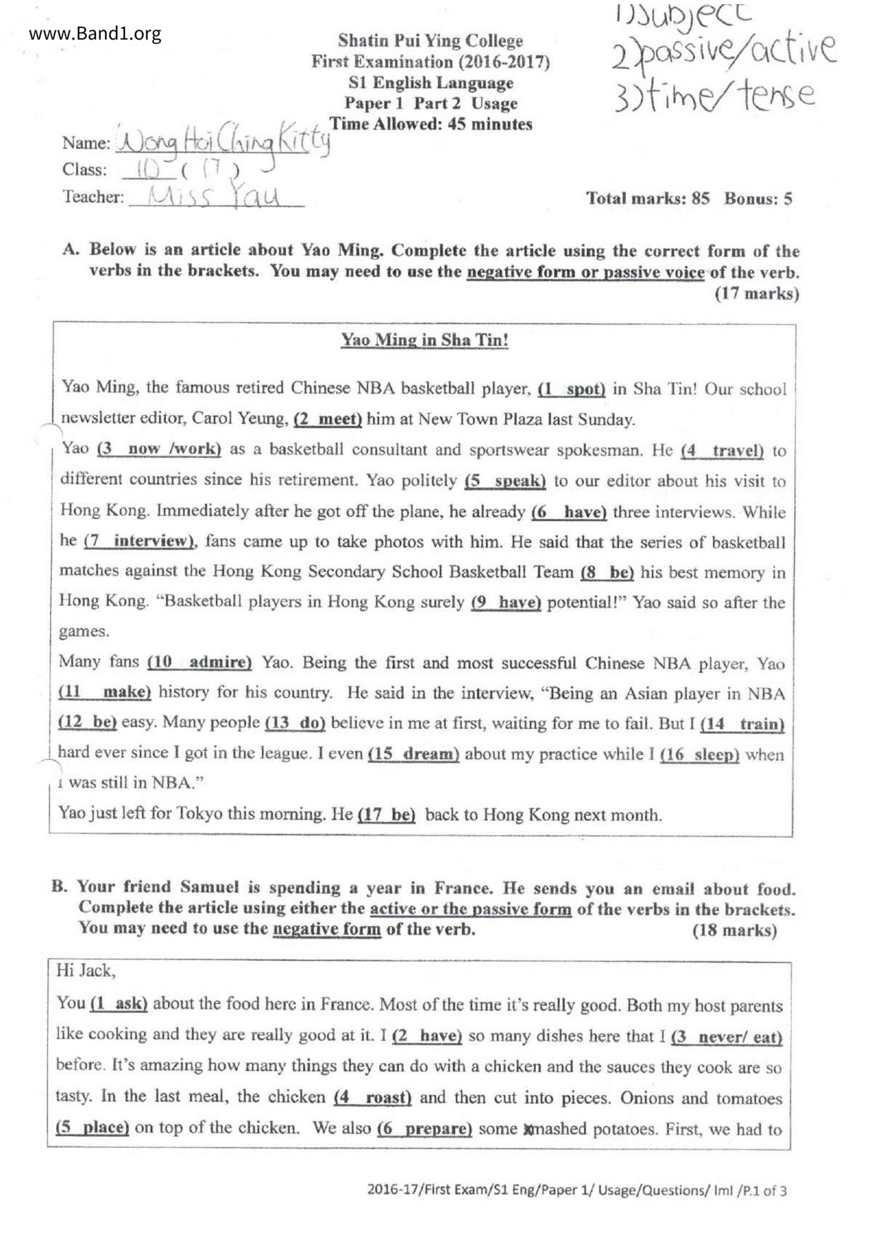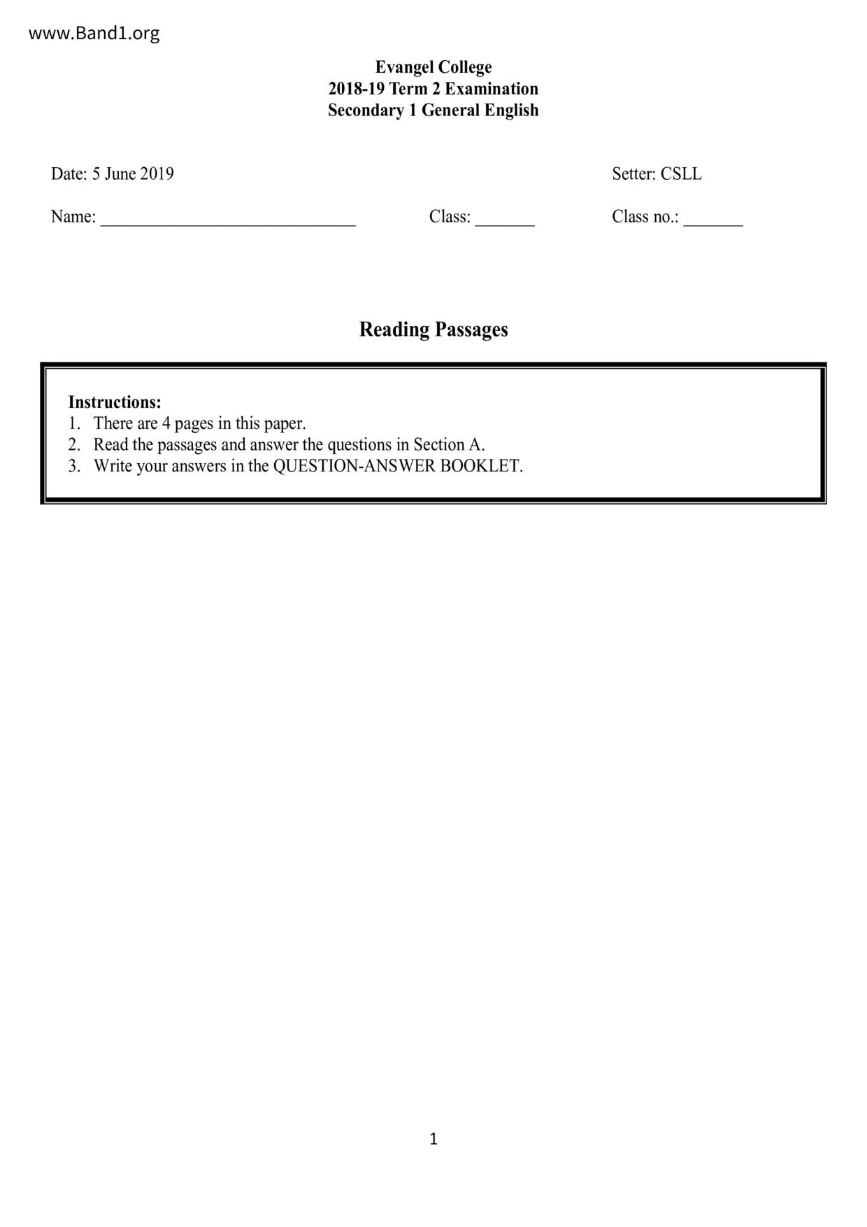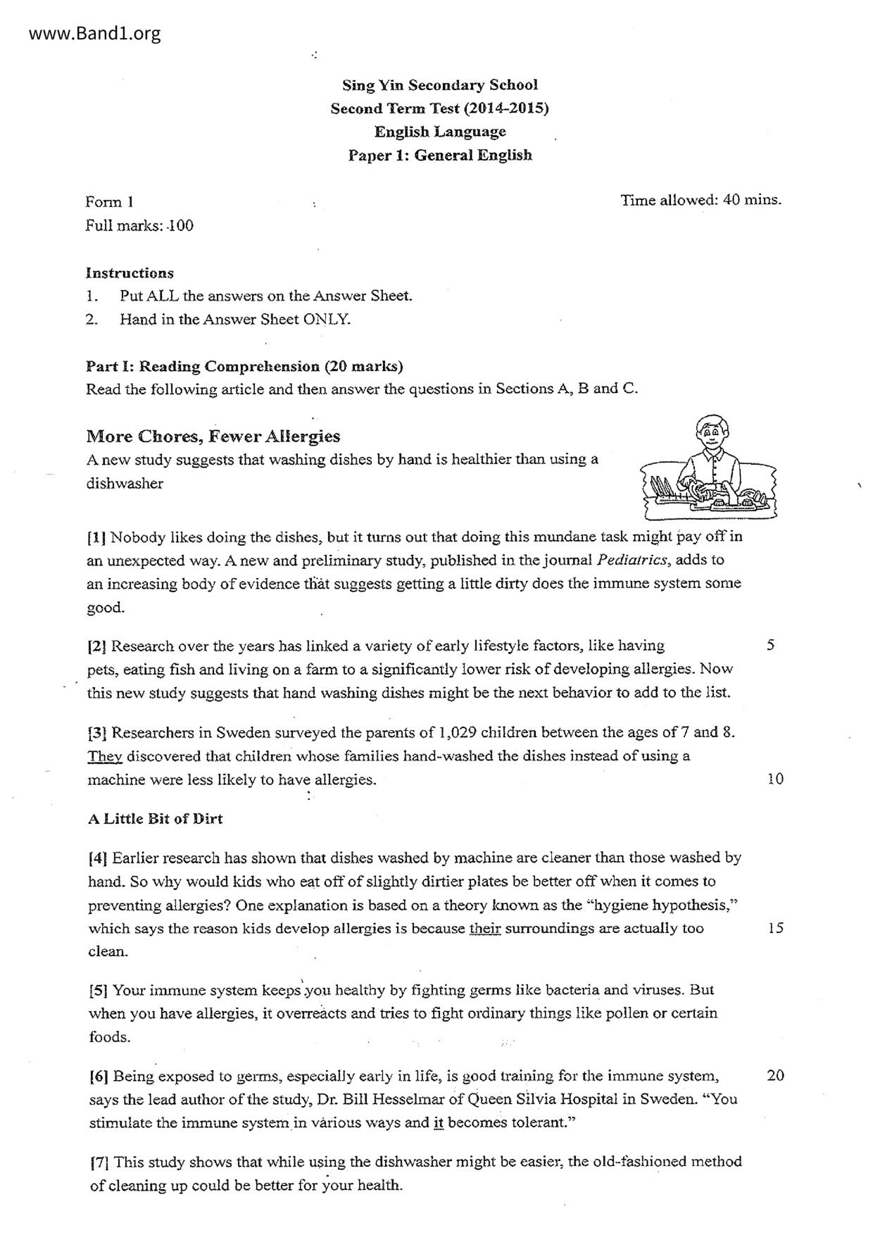 中一 英文 博愛醫院八十週年鄧英喜中學