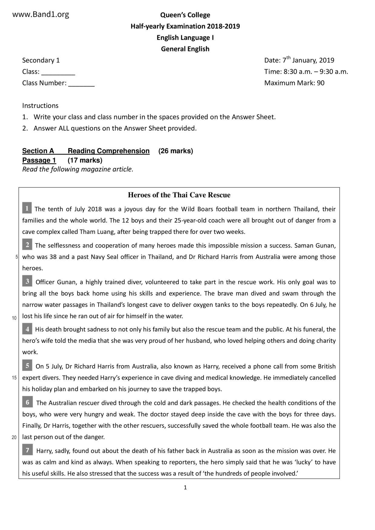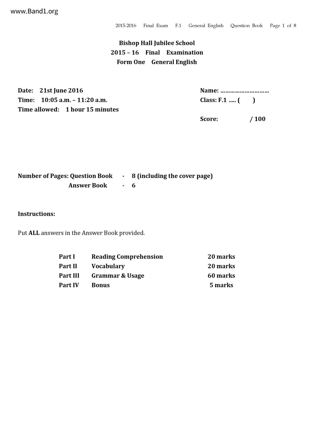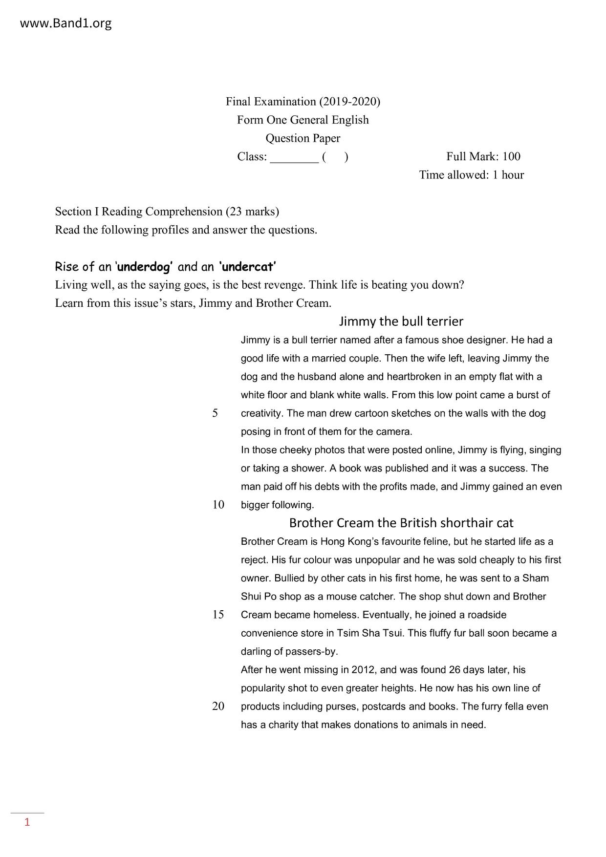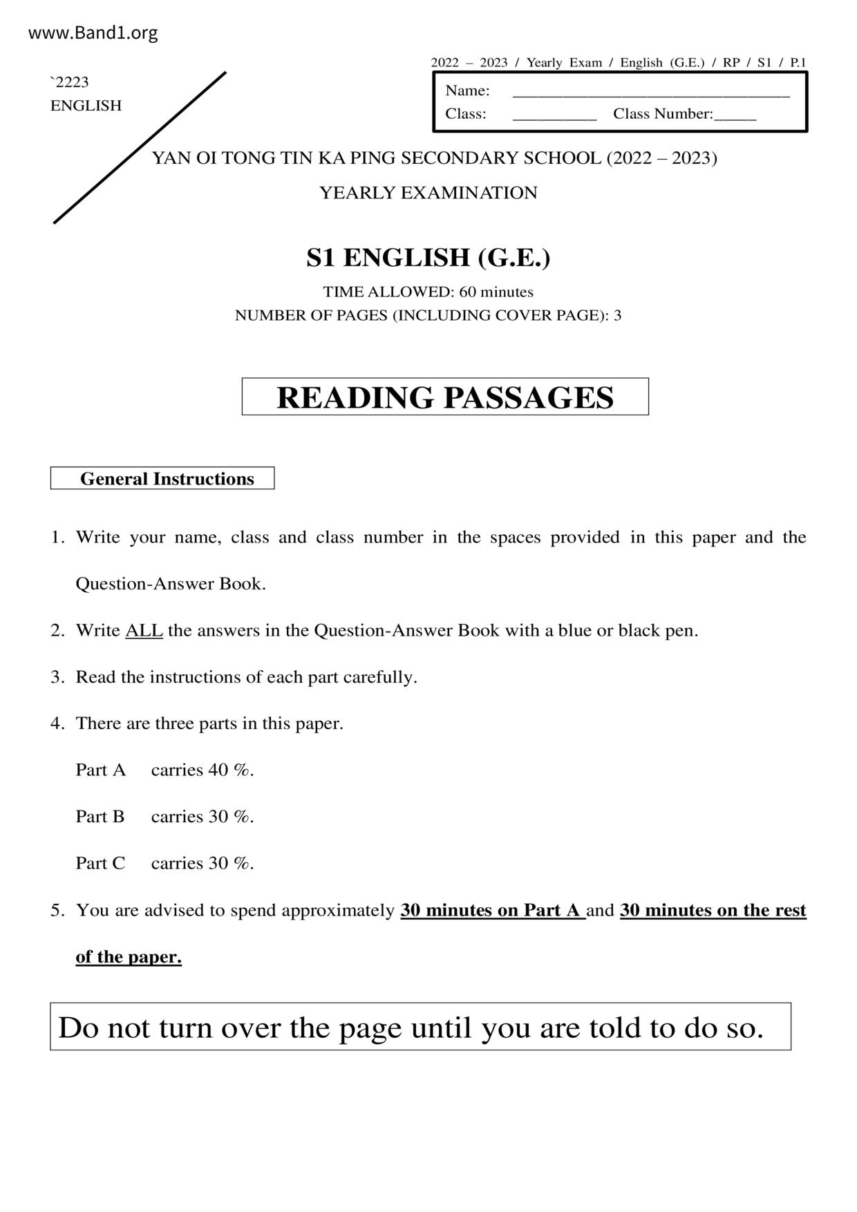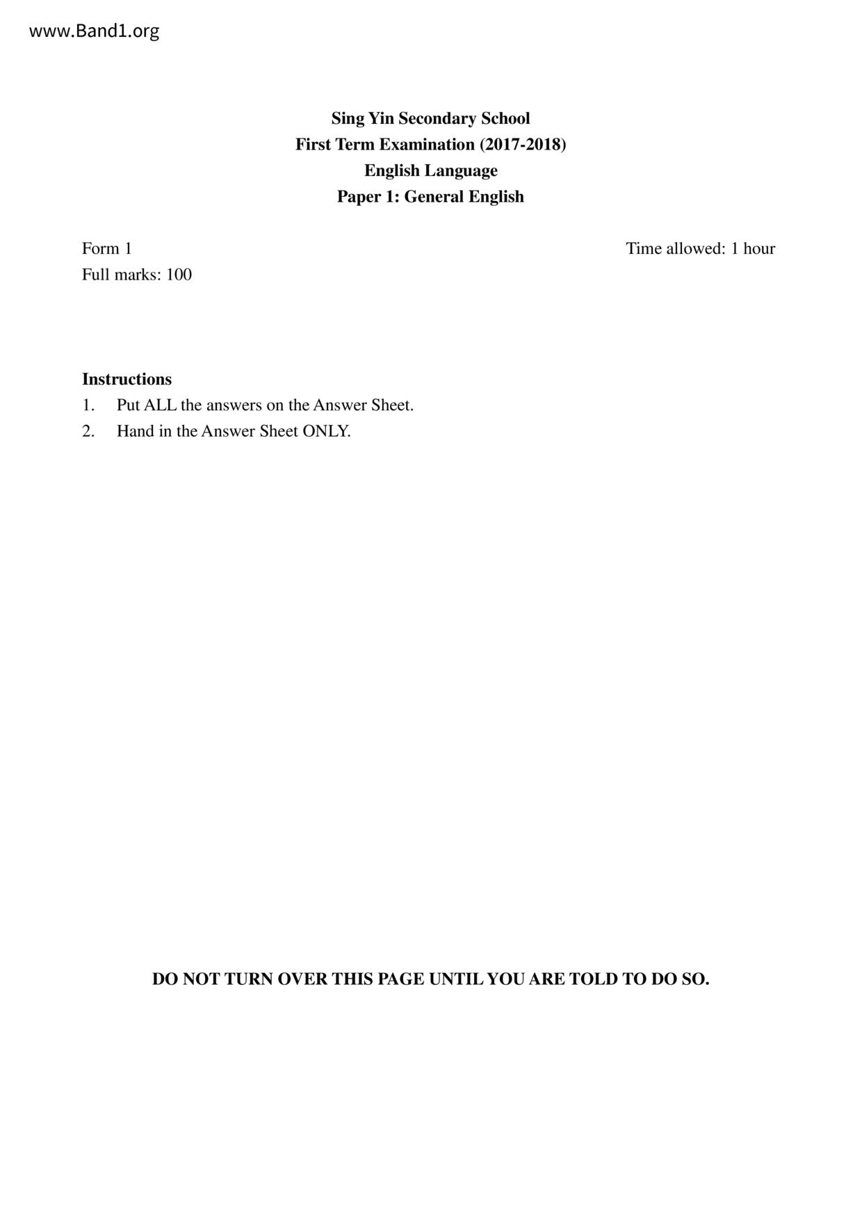 中一 英文 博愛醫院八十週年鄧英喜中學