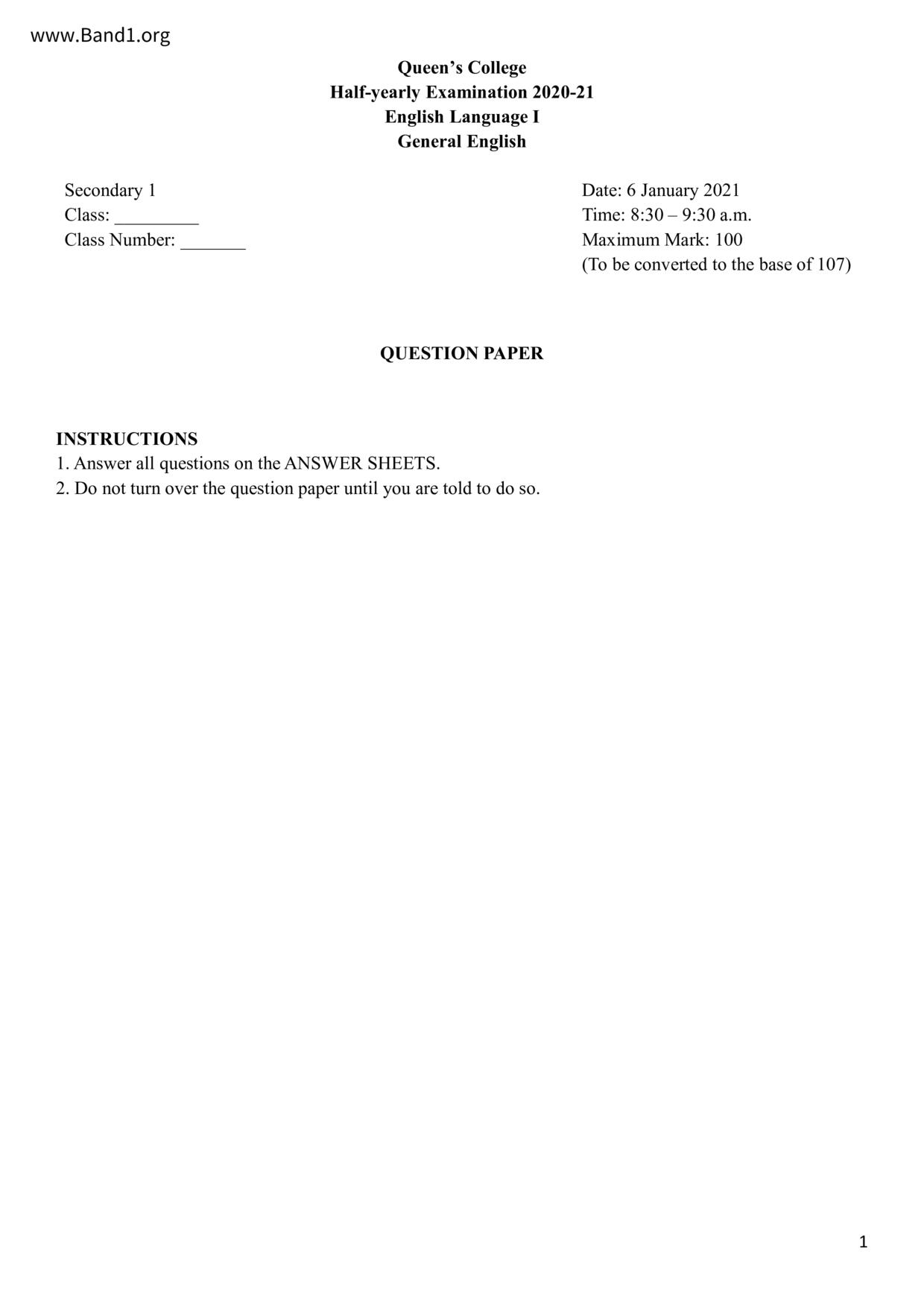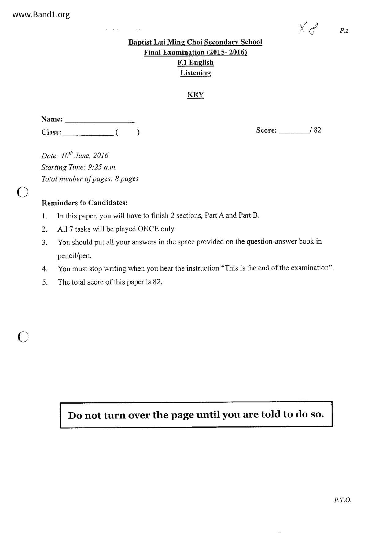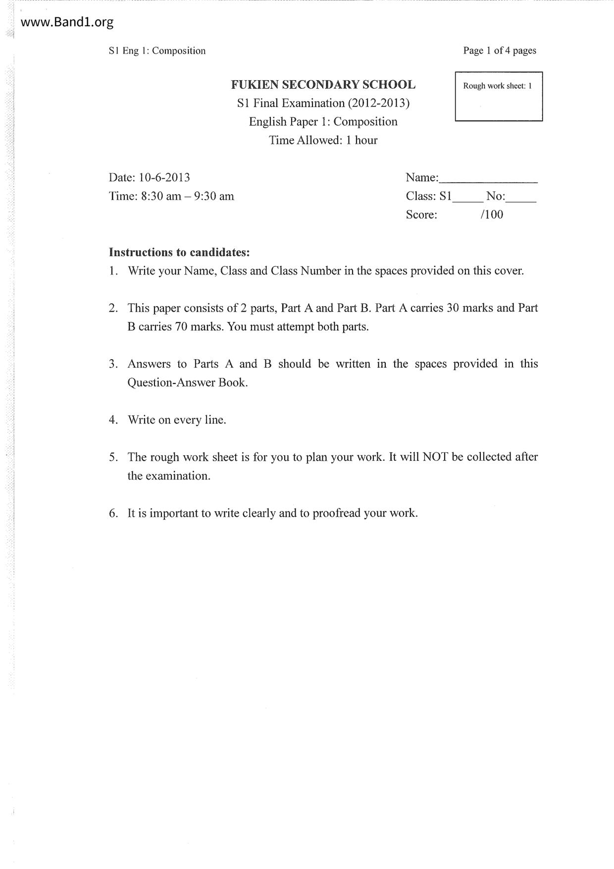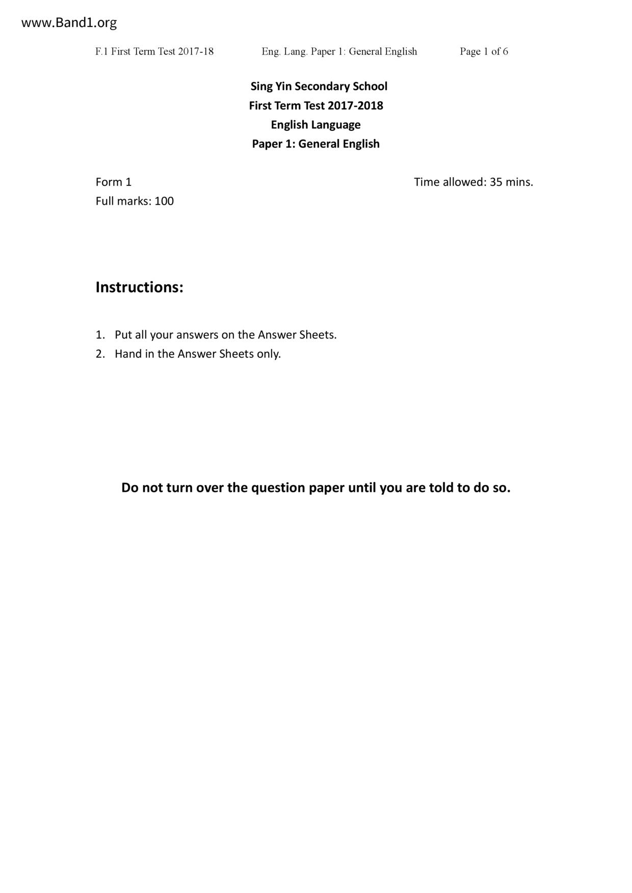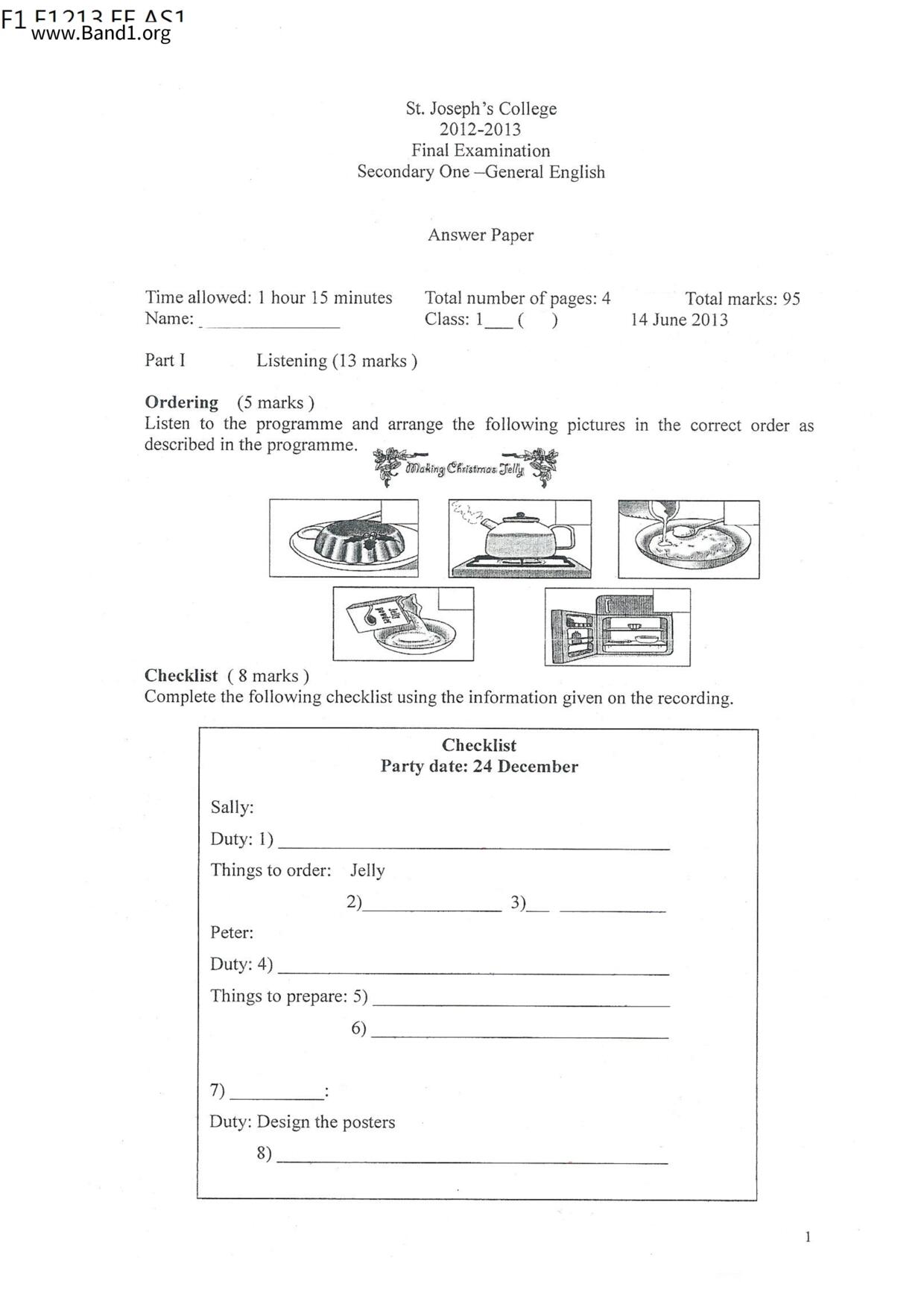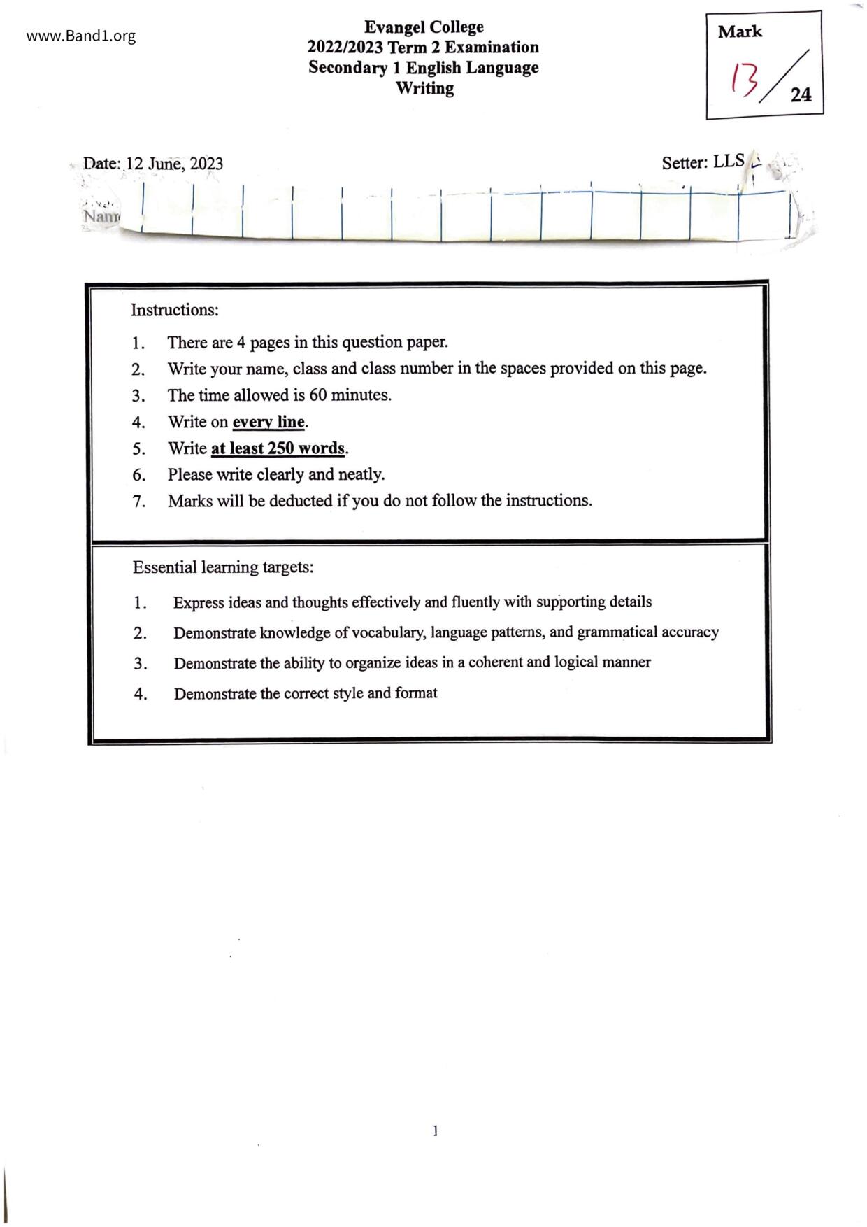 中一 英文 博愛醫院八十週年鄧英喜中學