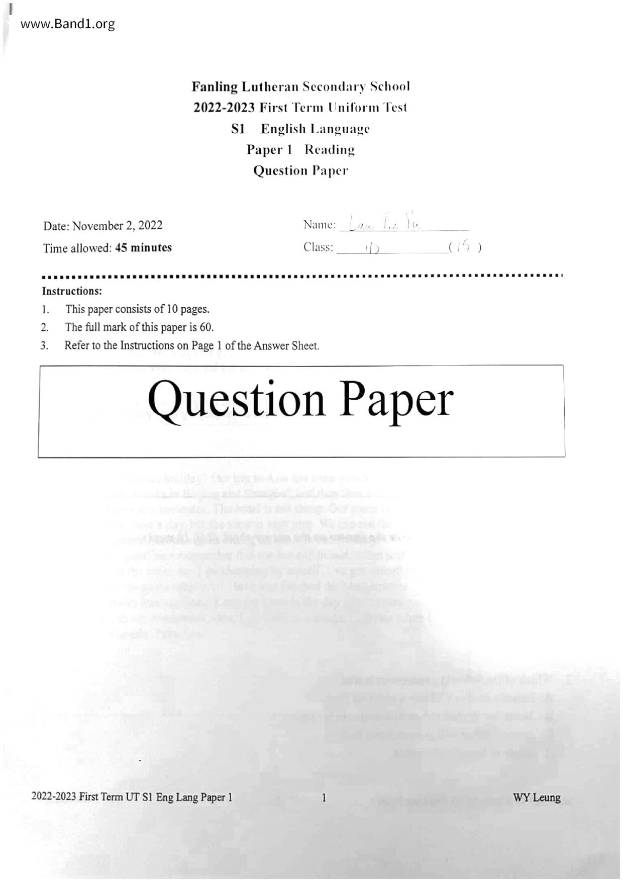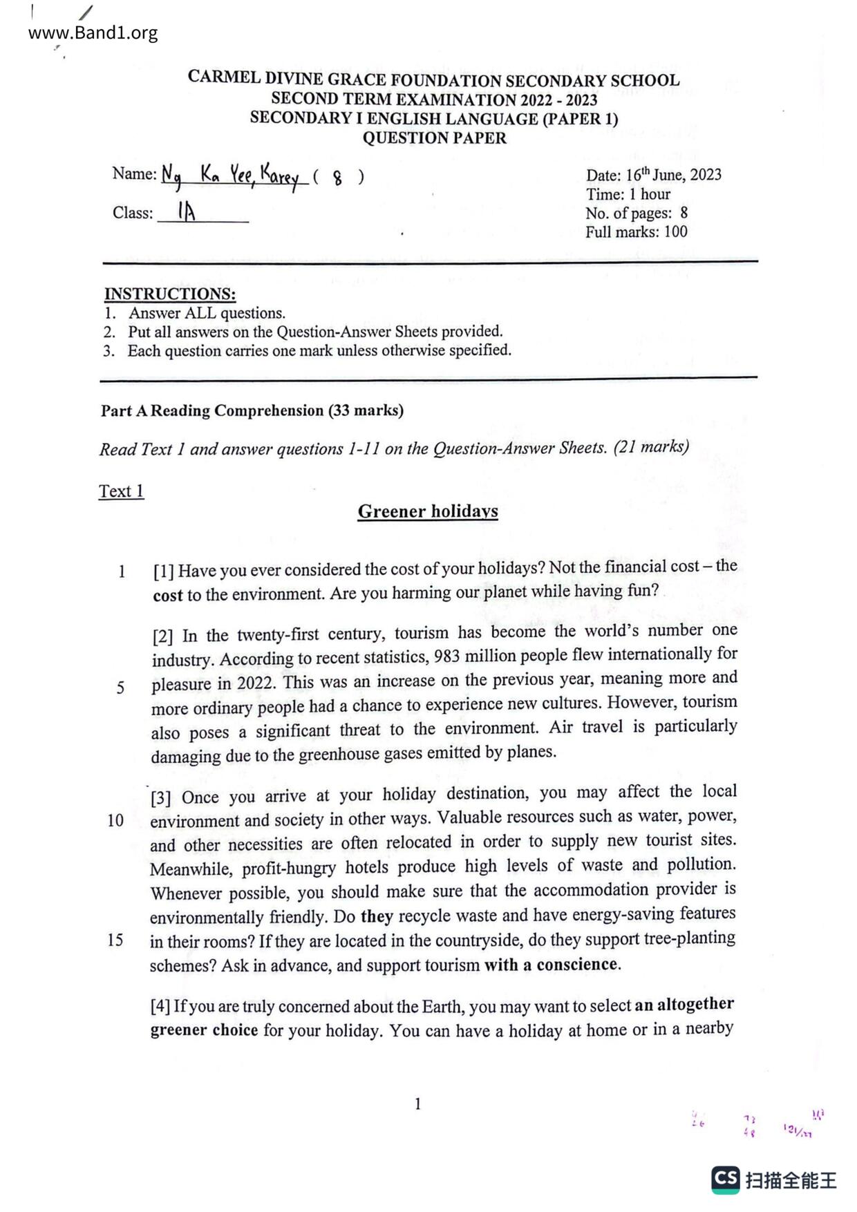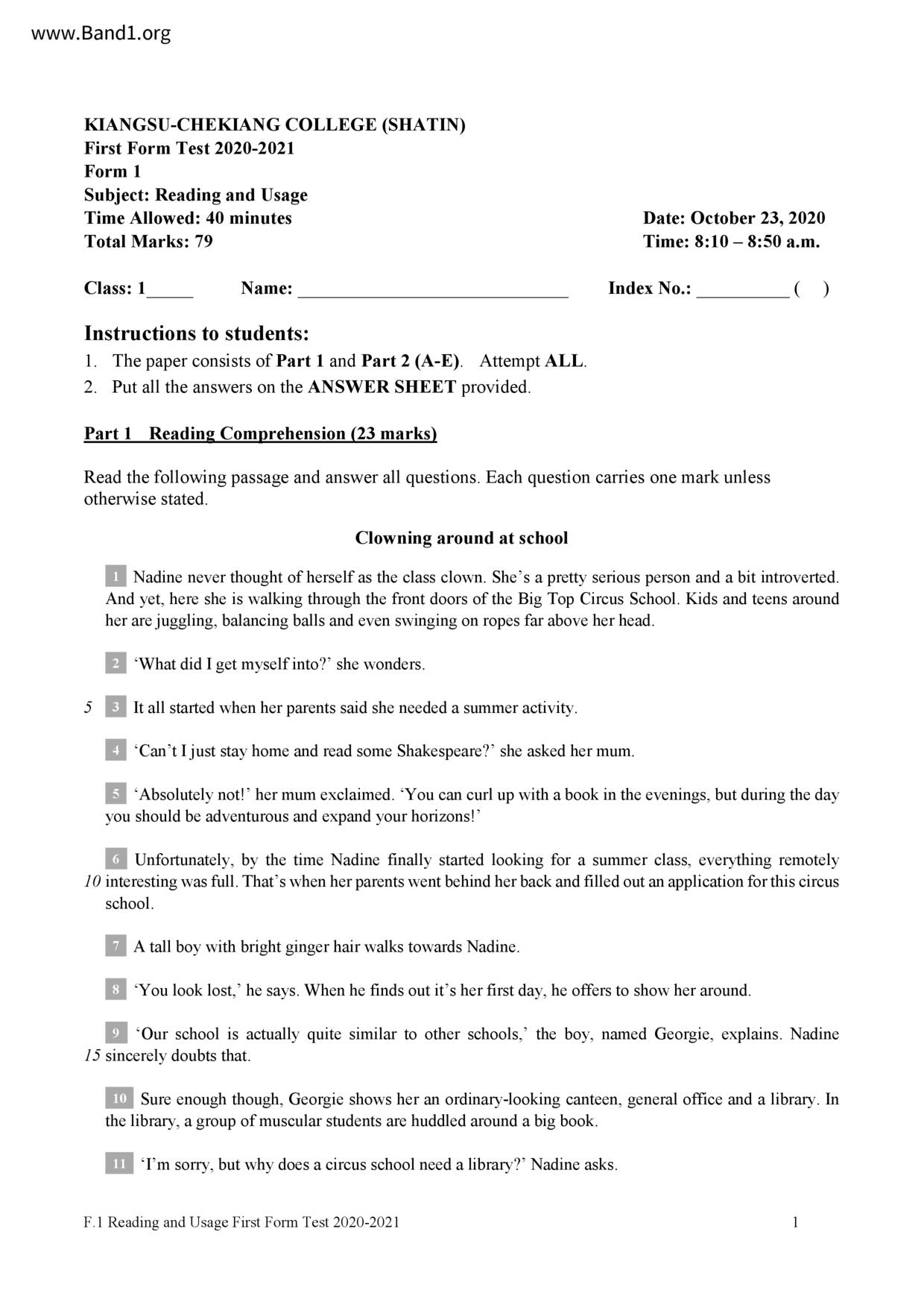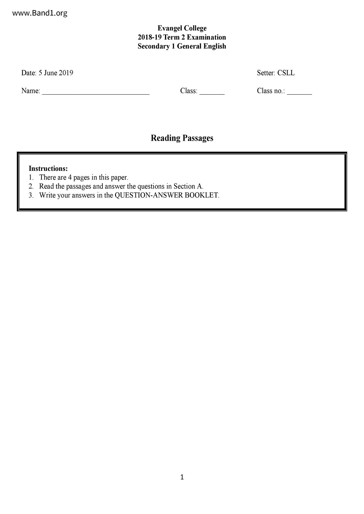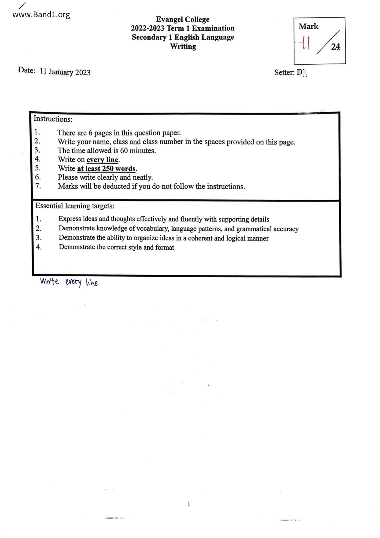 中一 英文 博愛醫院八十週年鄧英喜中學