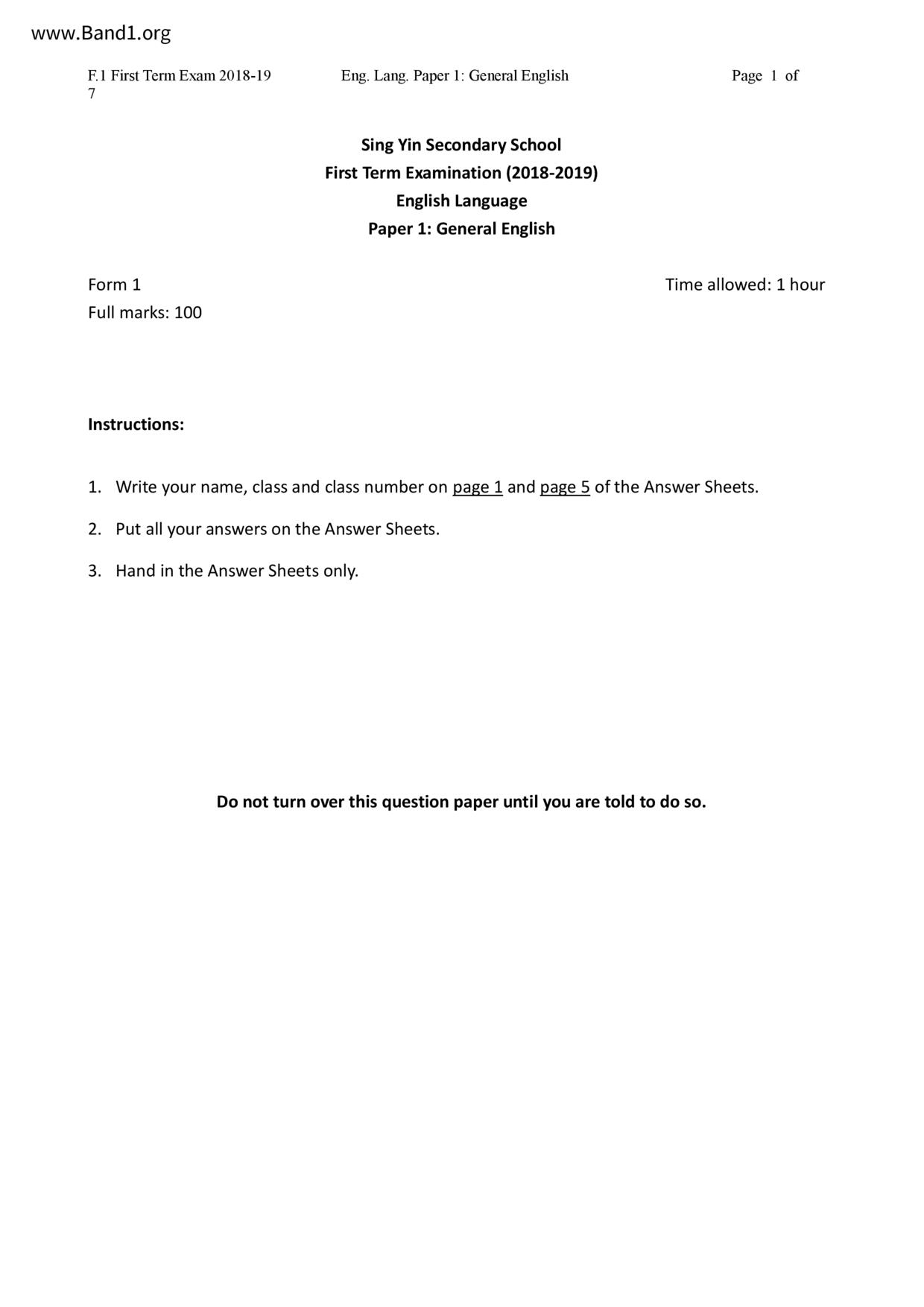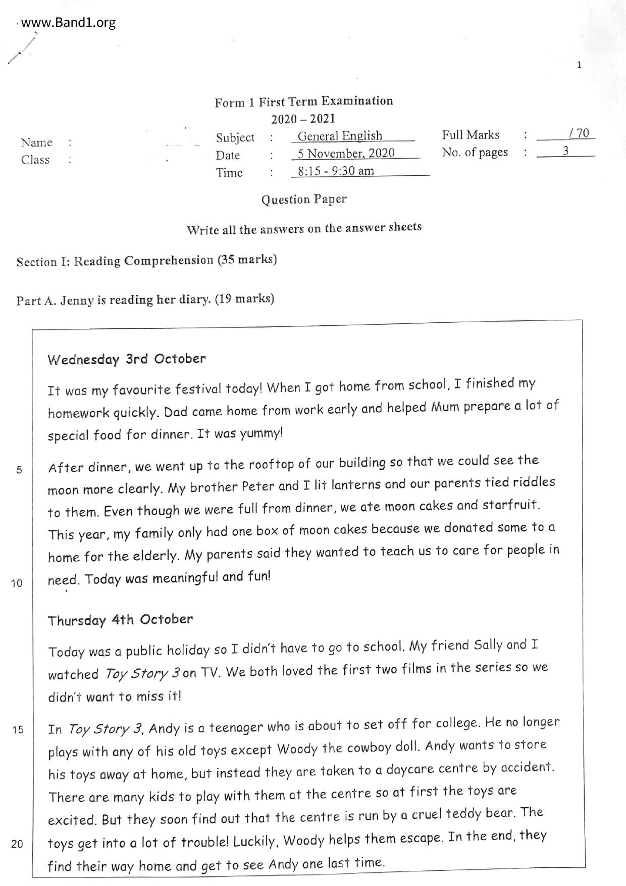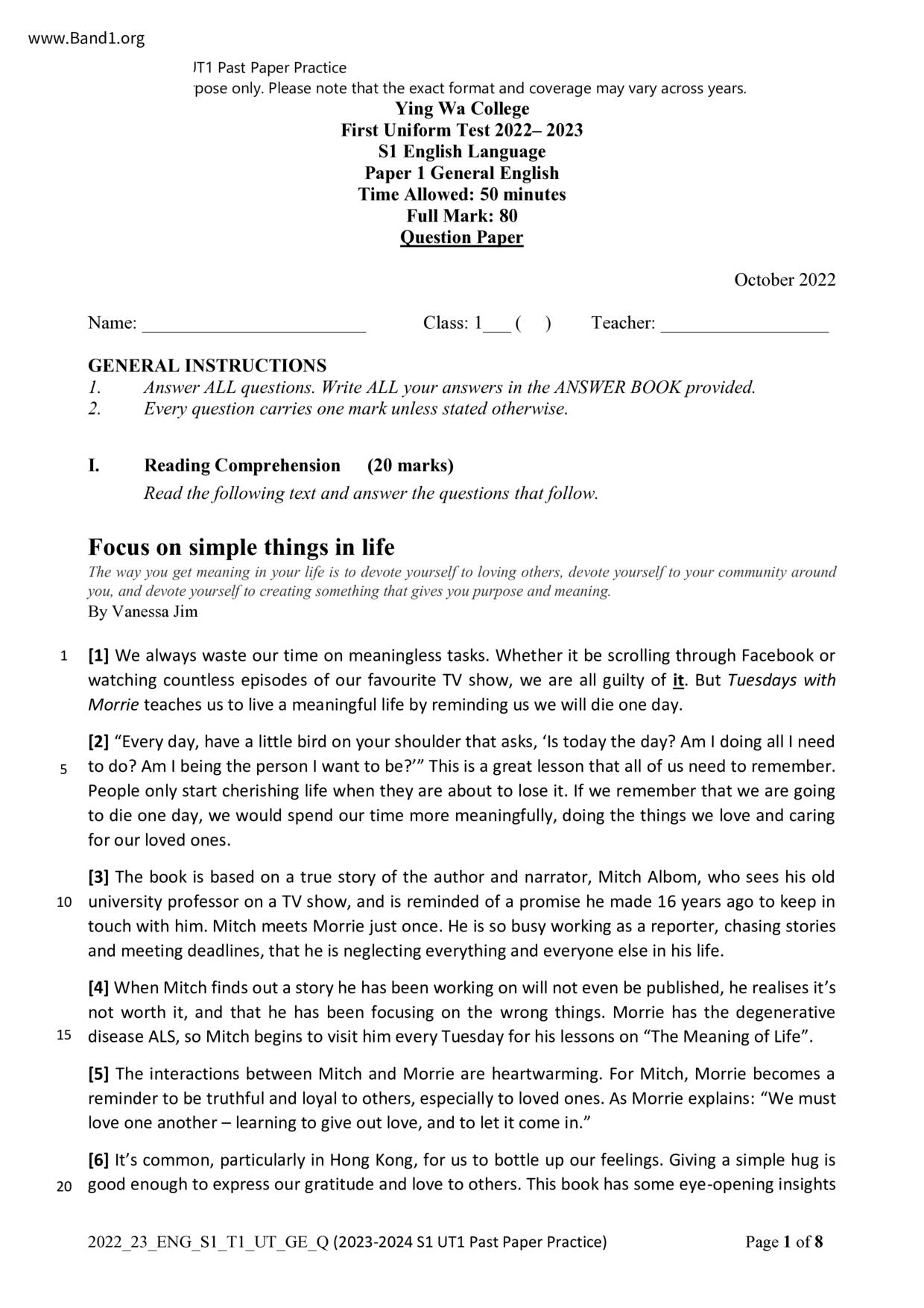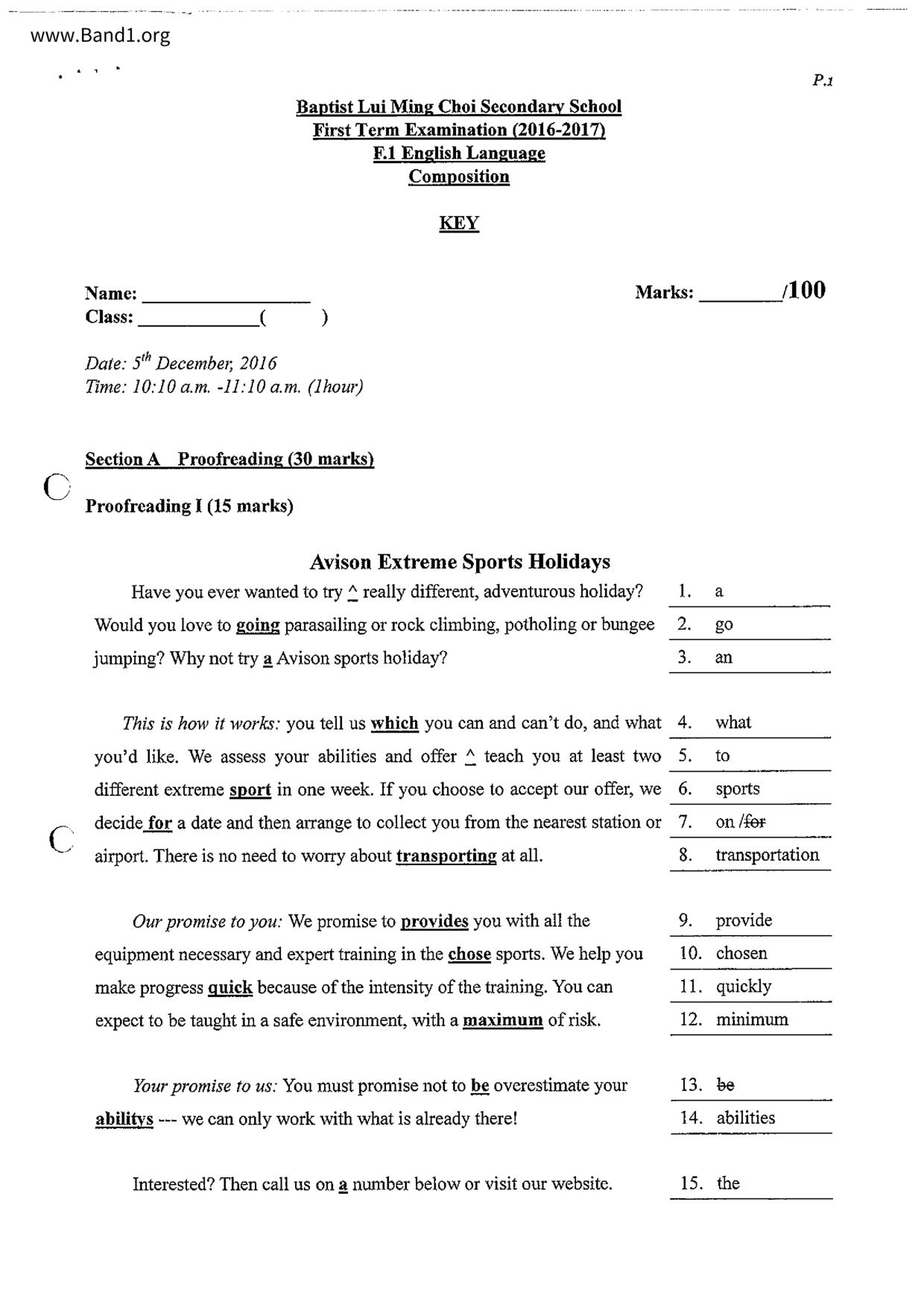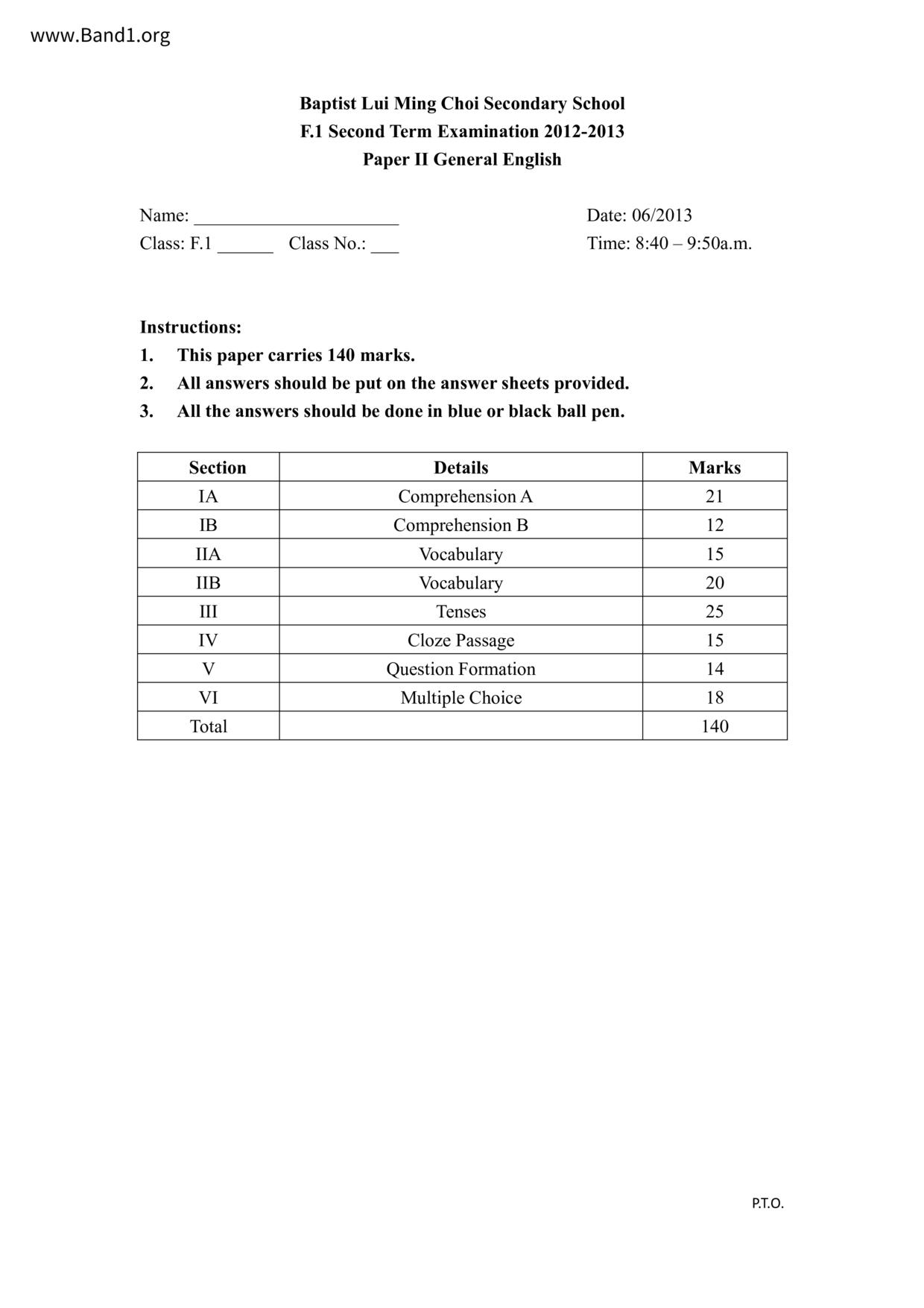 中一 英文 博愛醫院八十週年鄧英喜中學