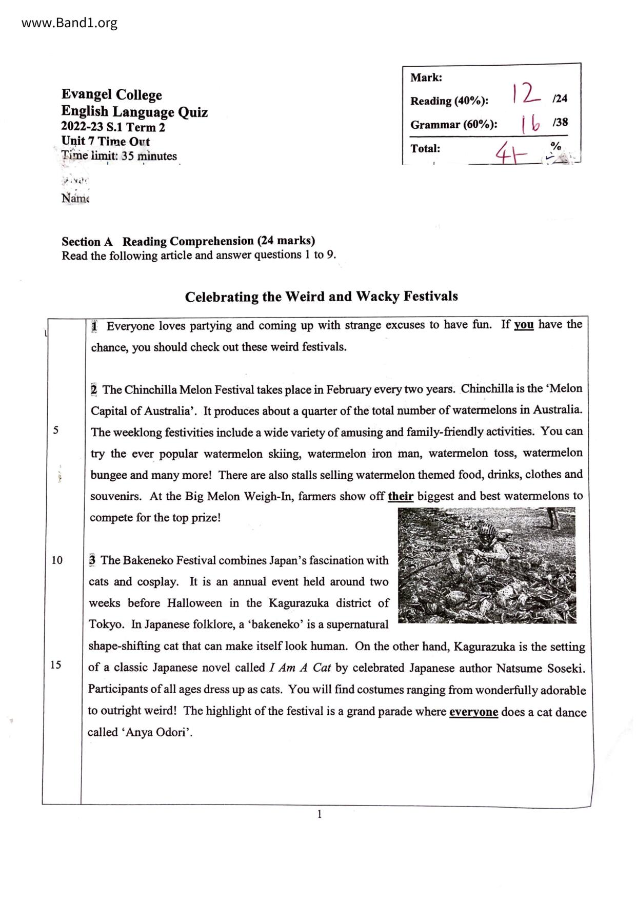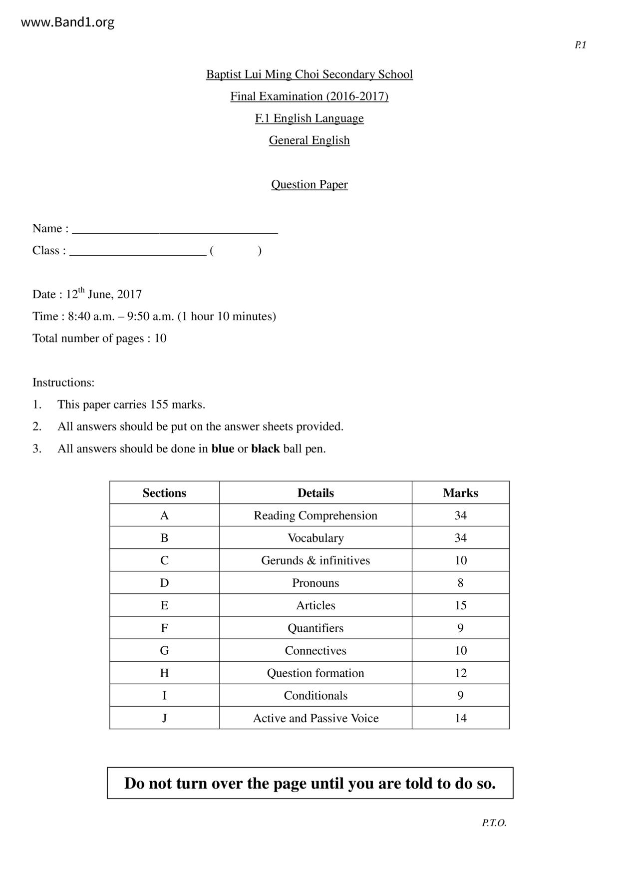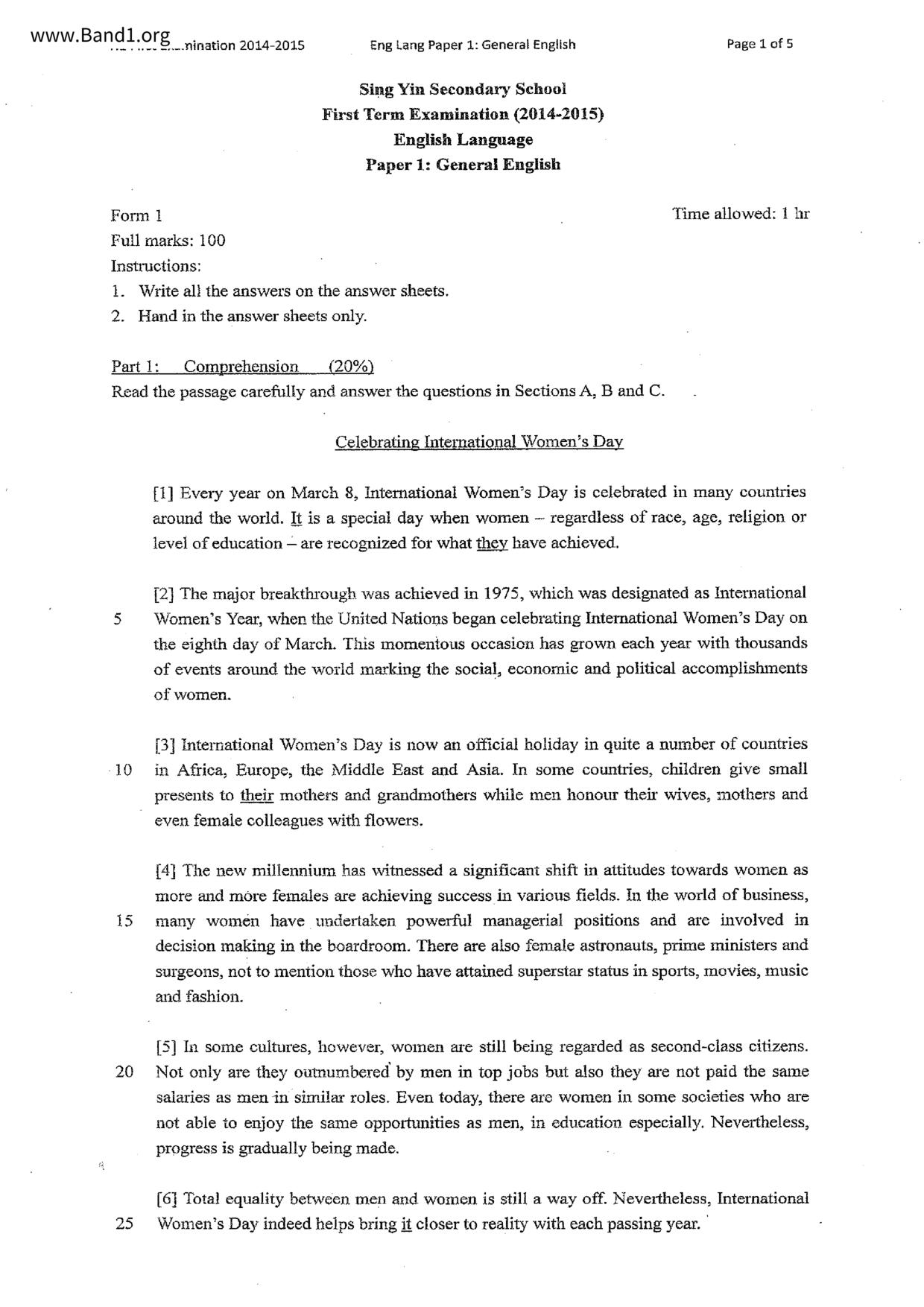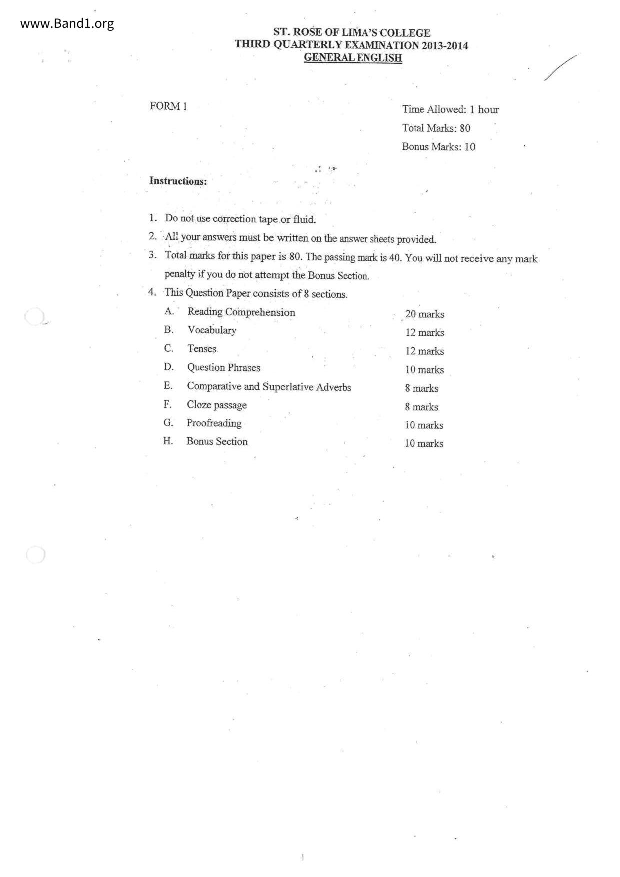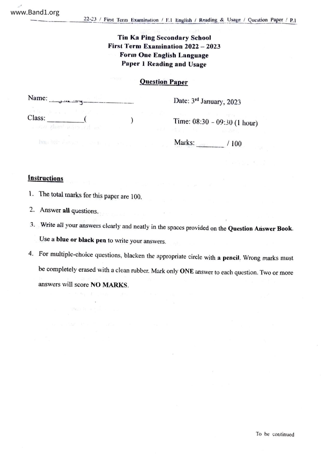 中一 英文 博愛醫院八十週年鄧英喜中學