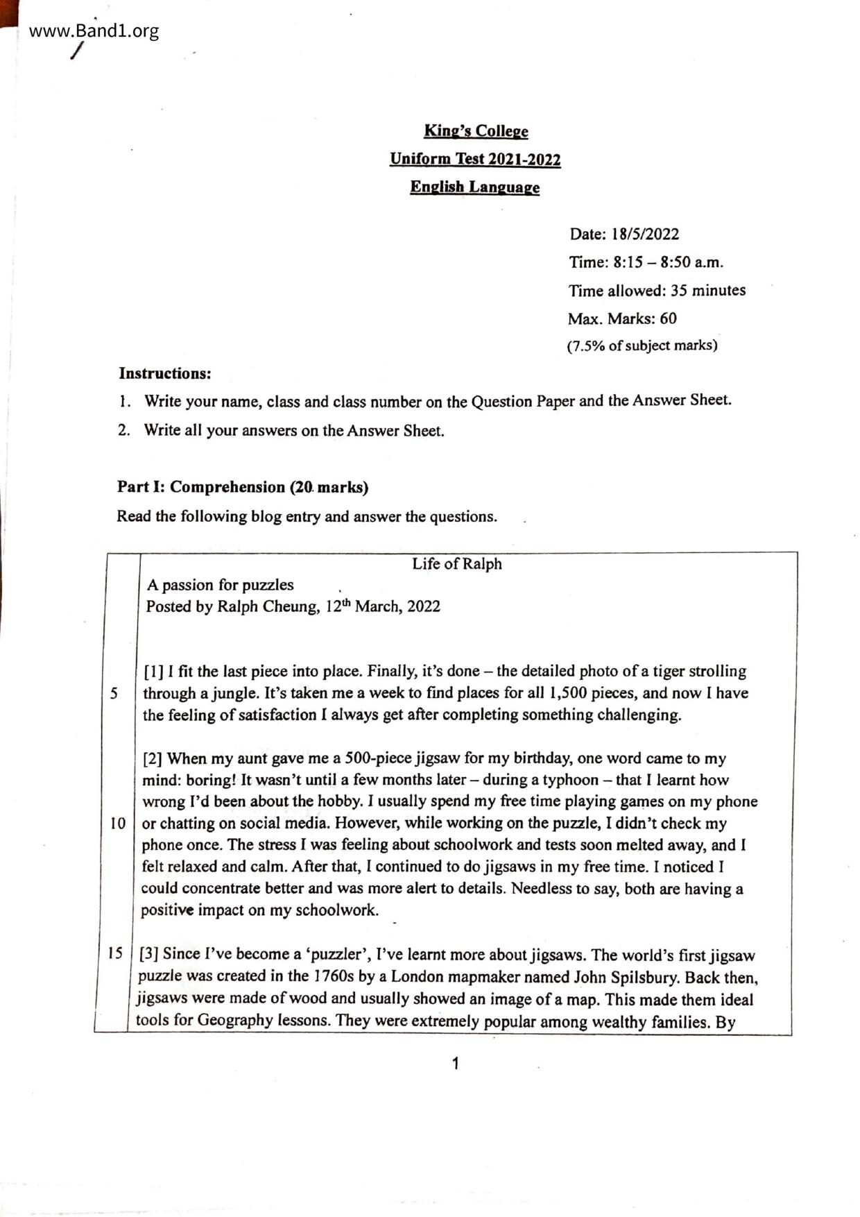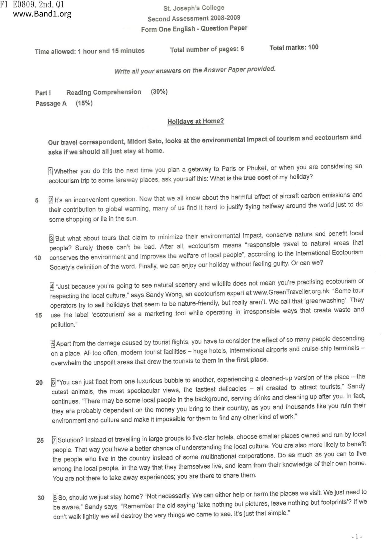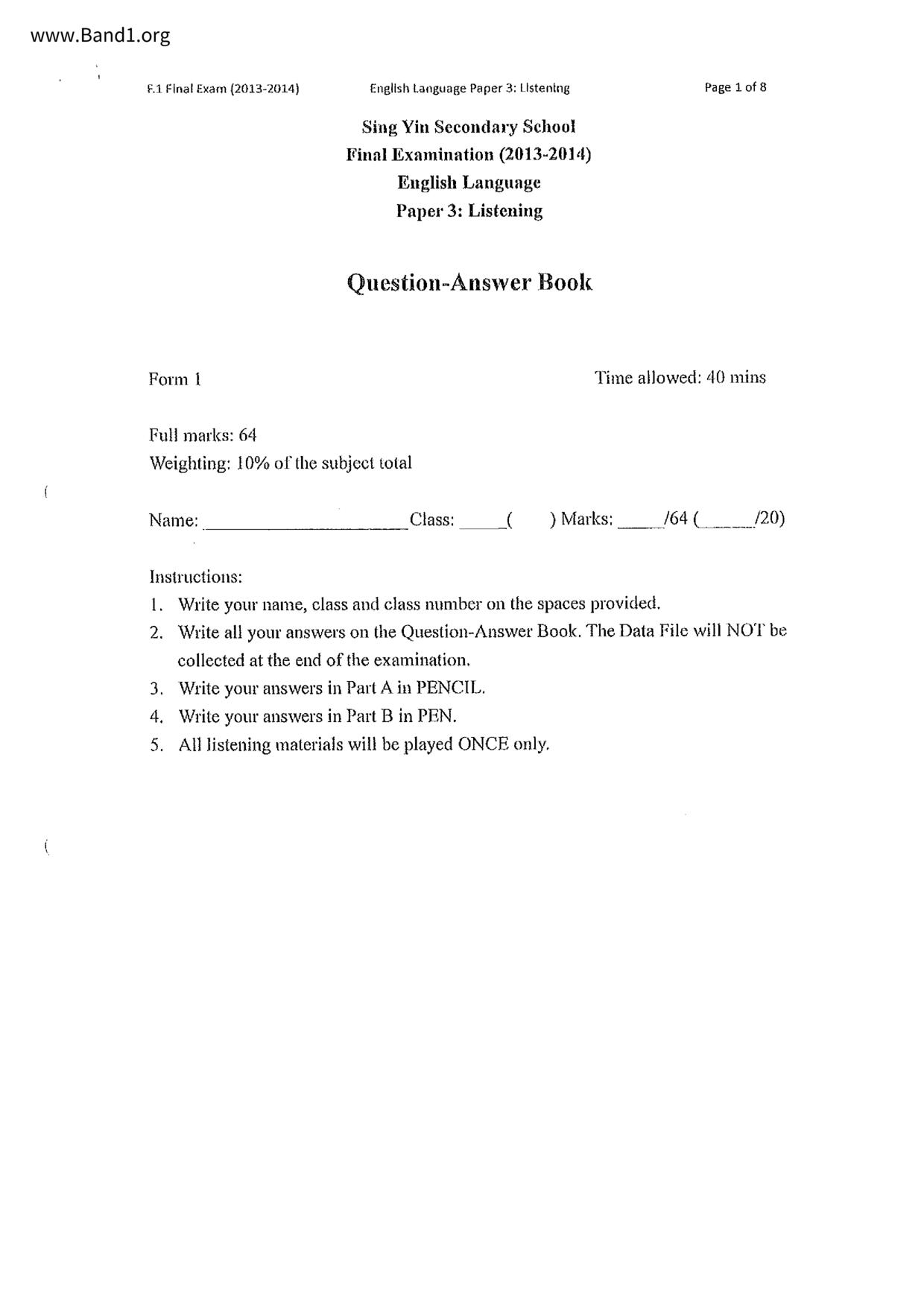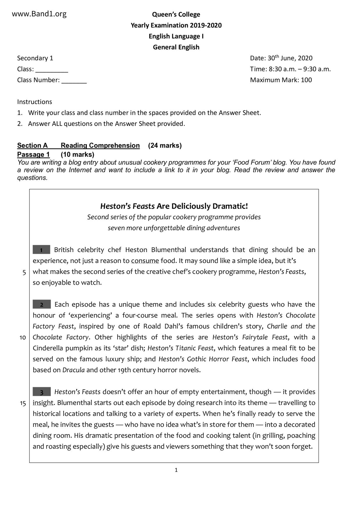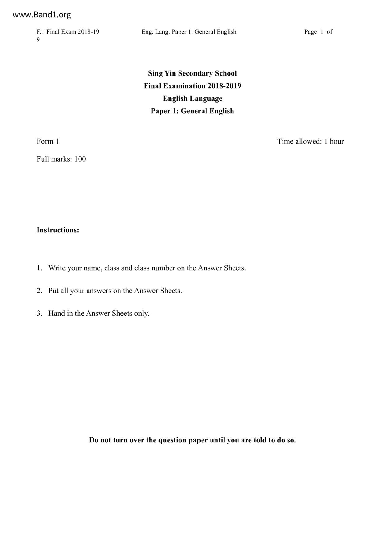 中一 英文 博愛醫院八十週年鄧英喜中學