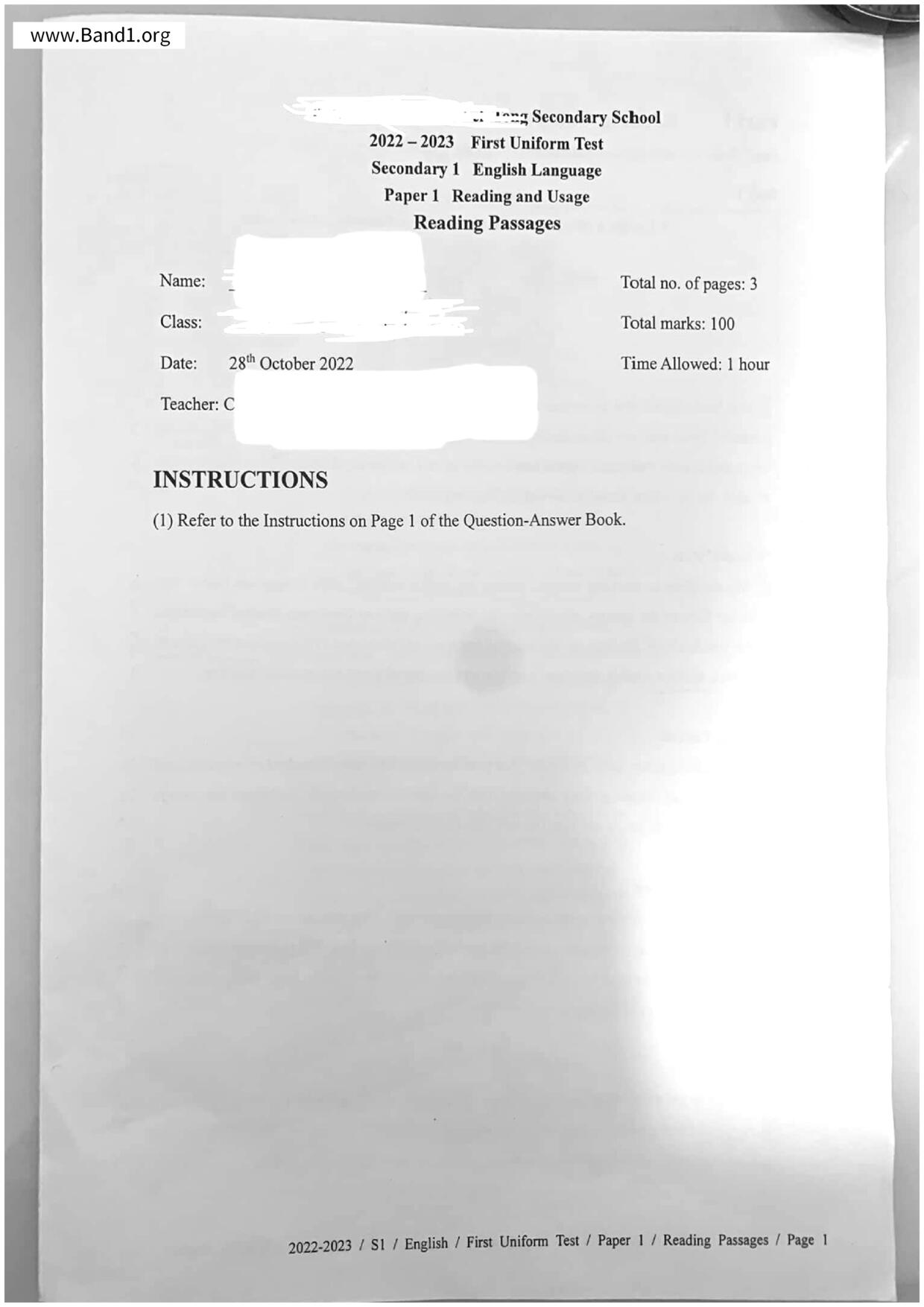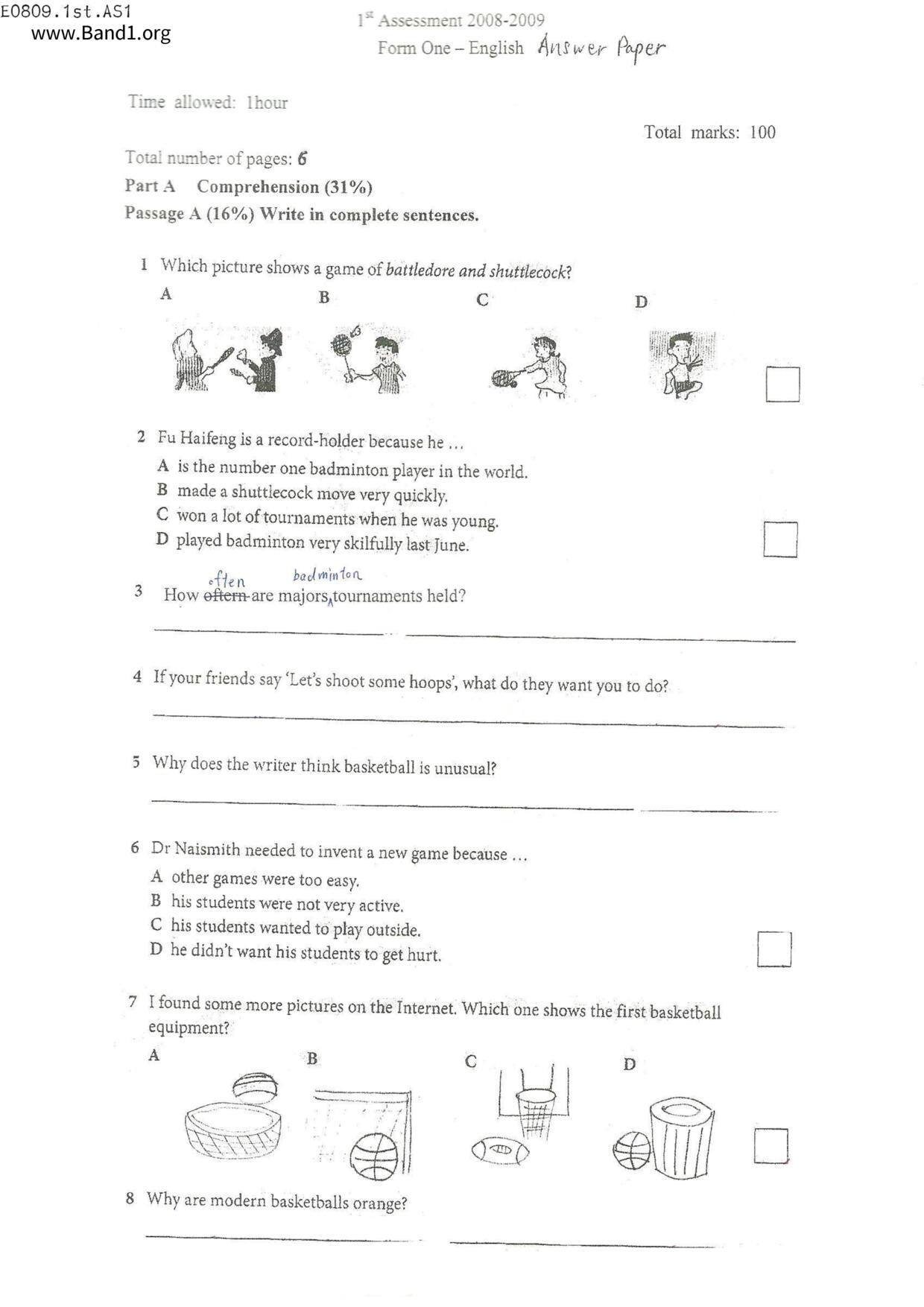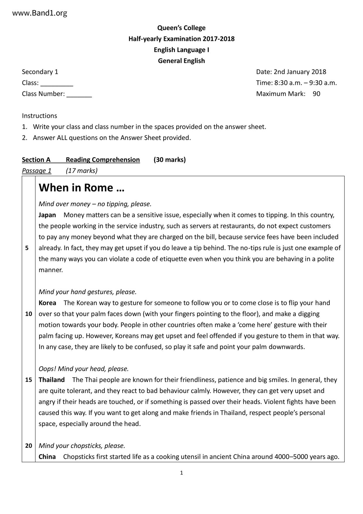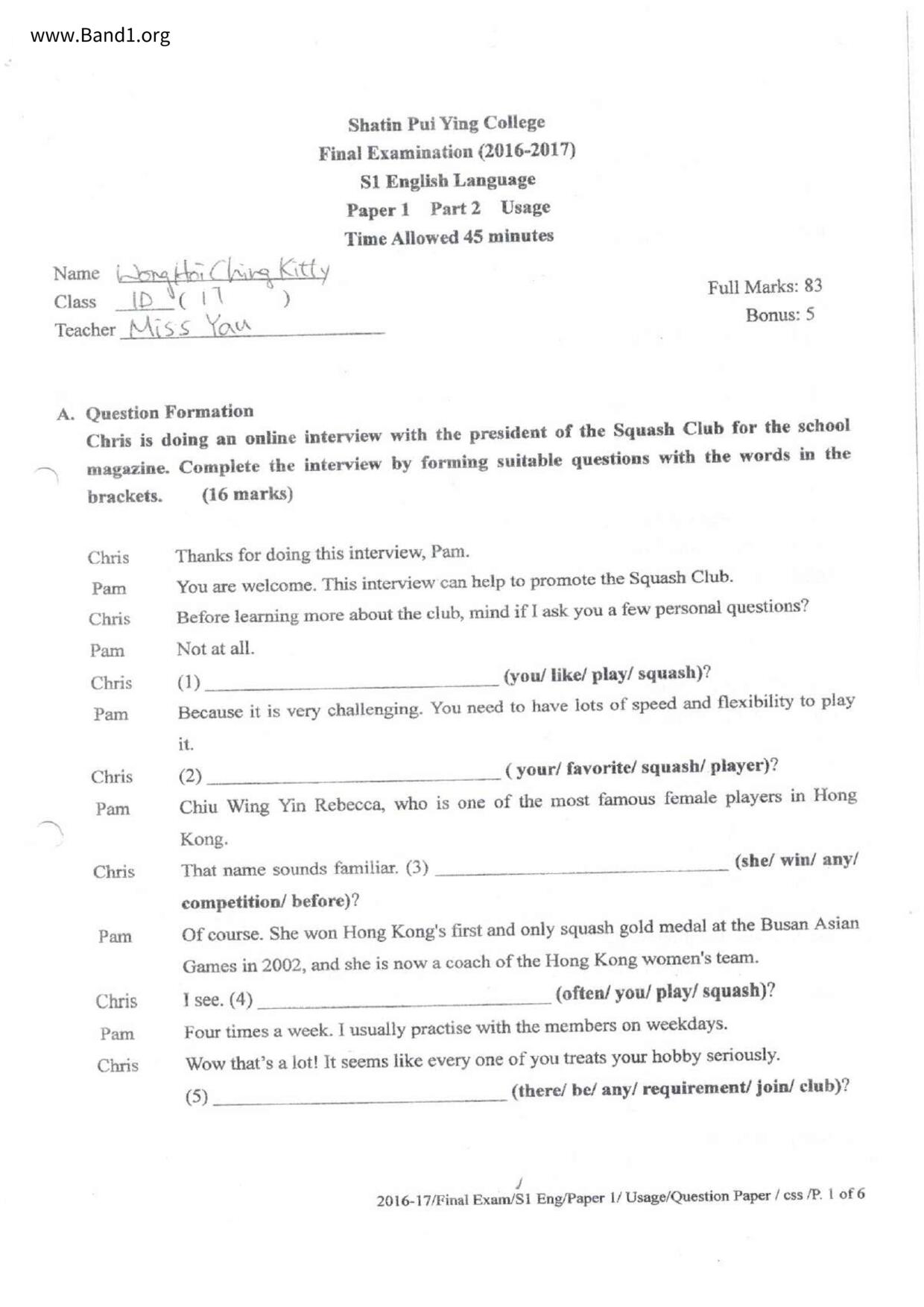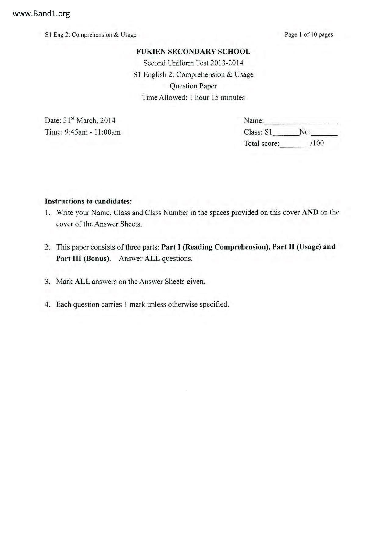 中一 英文 博愛醫院八十週年鄧英喜中學