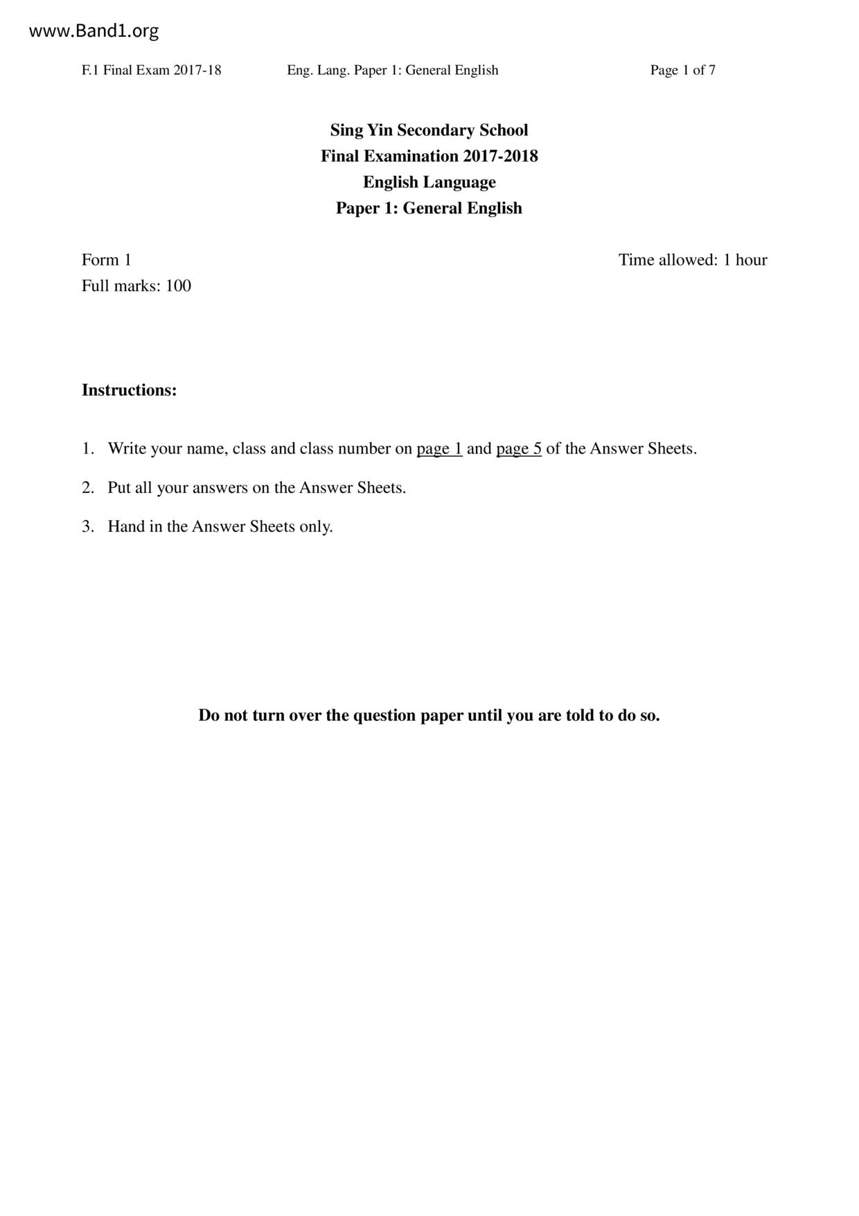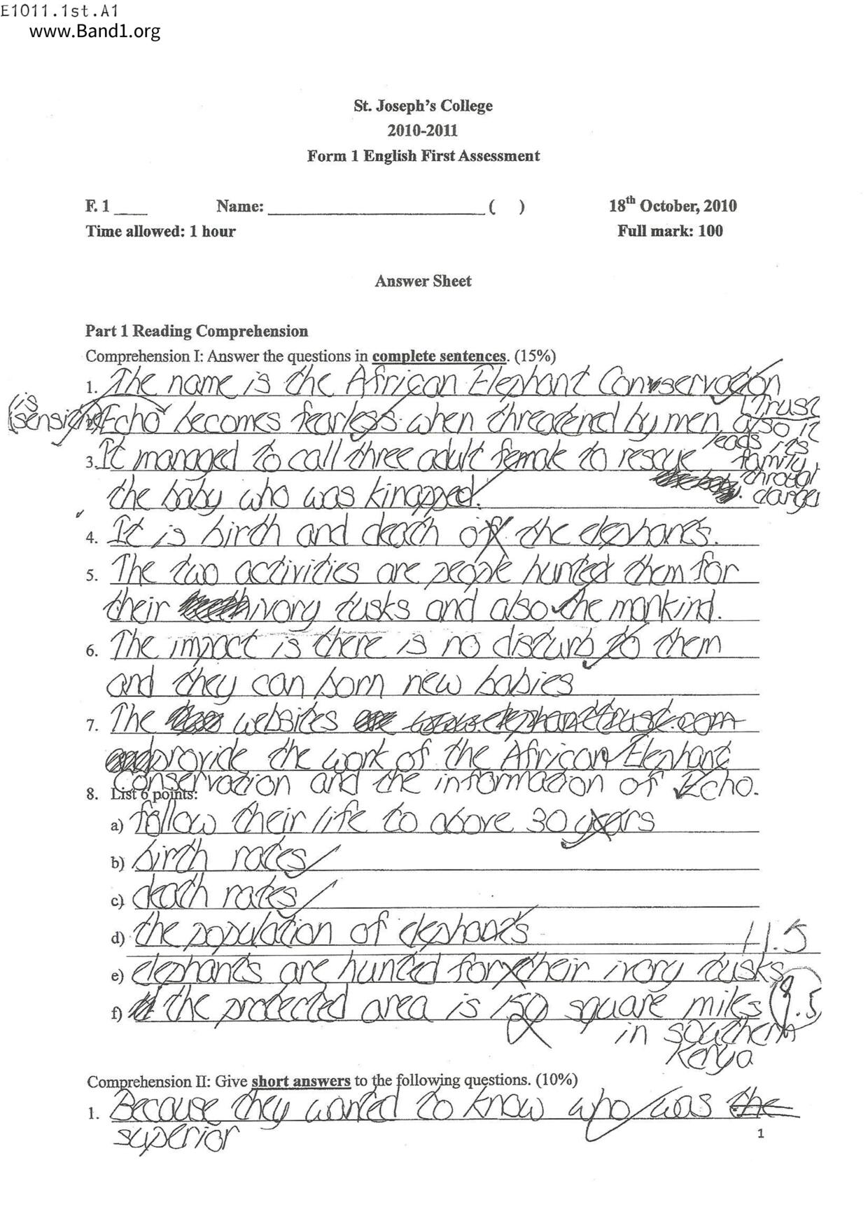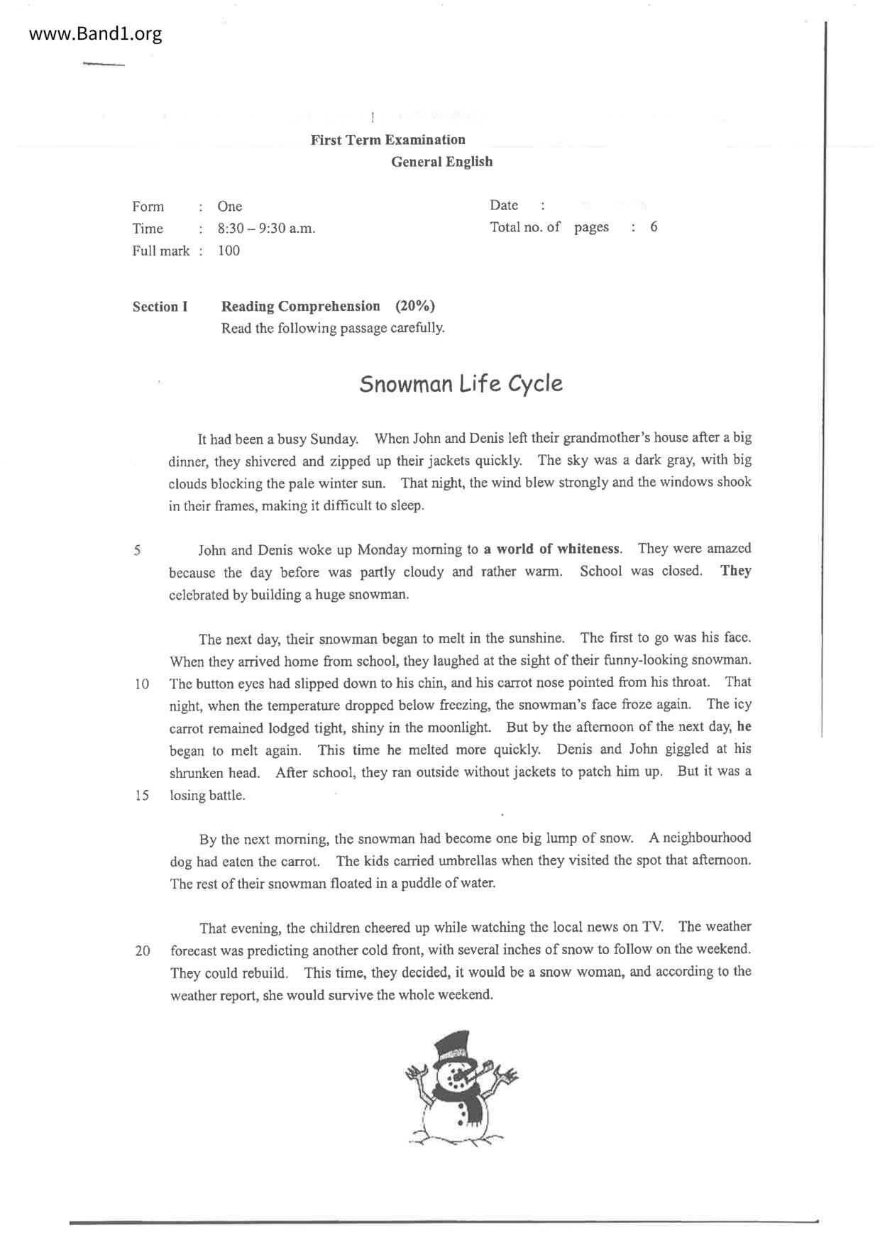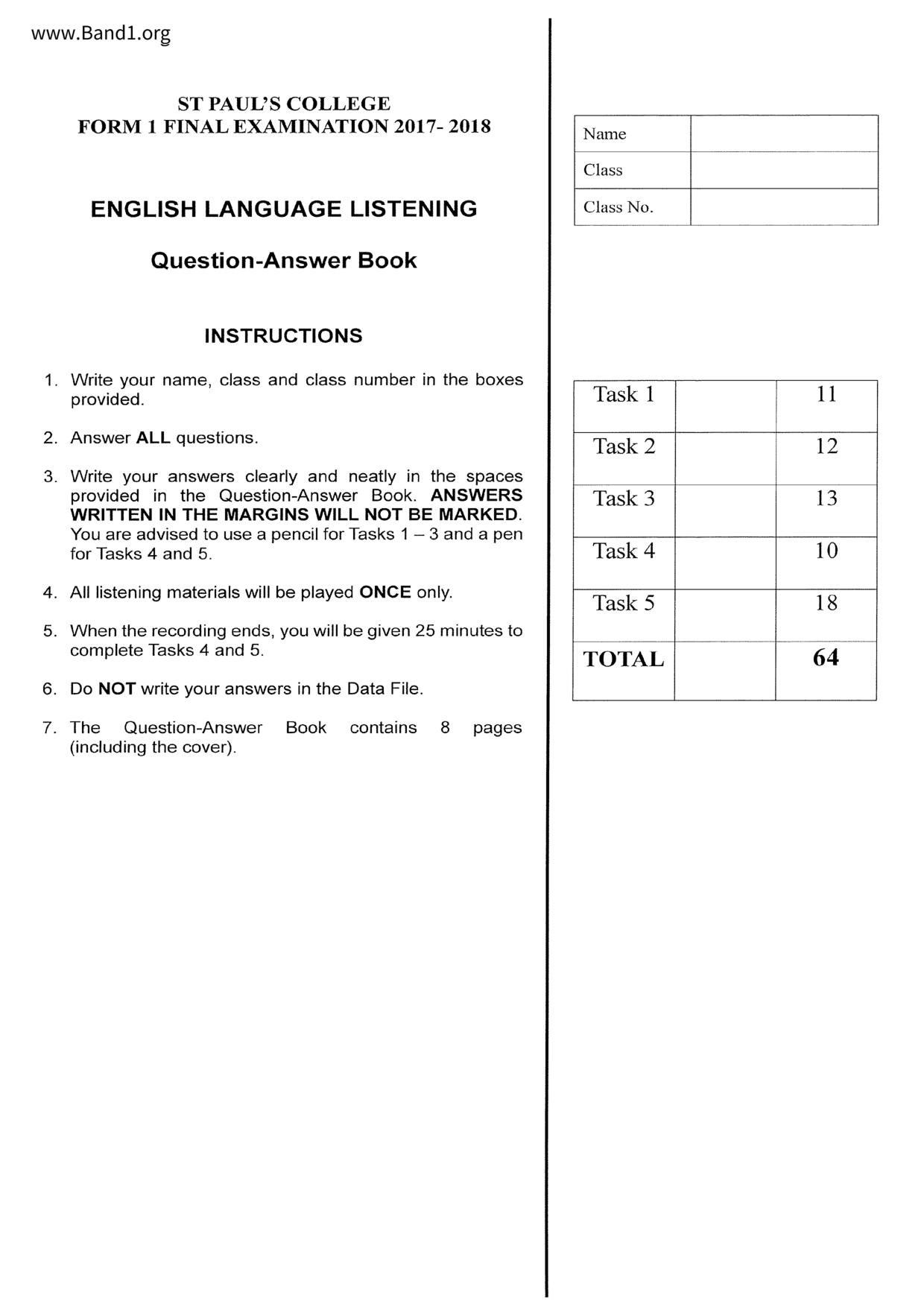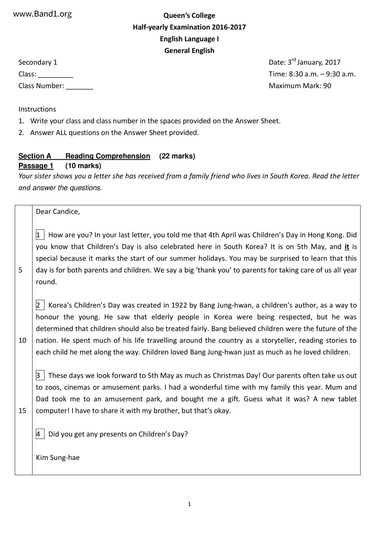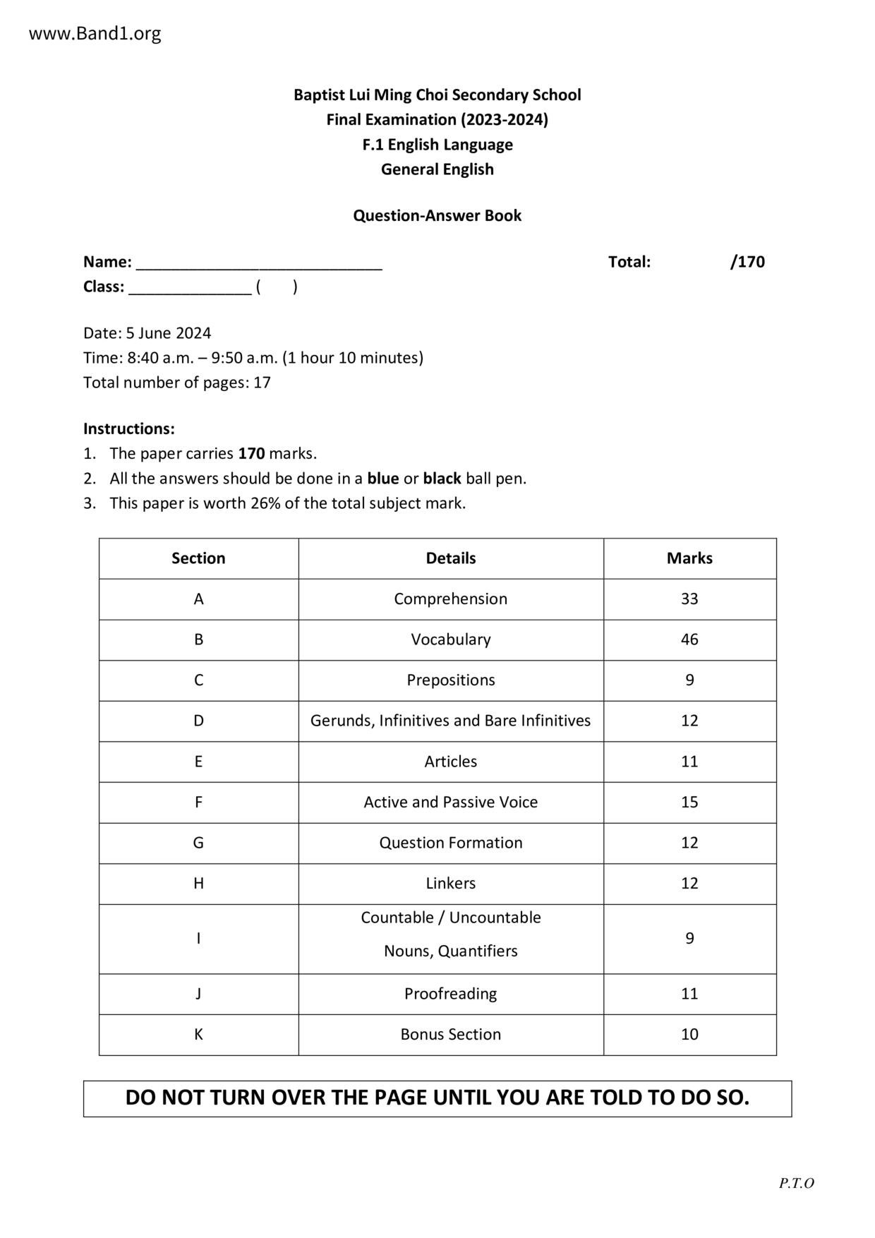 中一 英文 博愛醫院八十週年鄧英喜中學