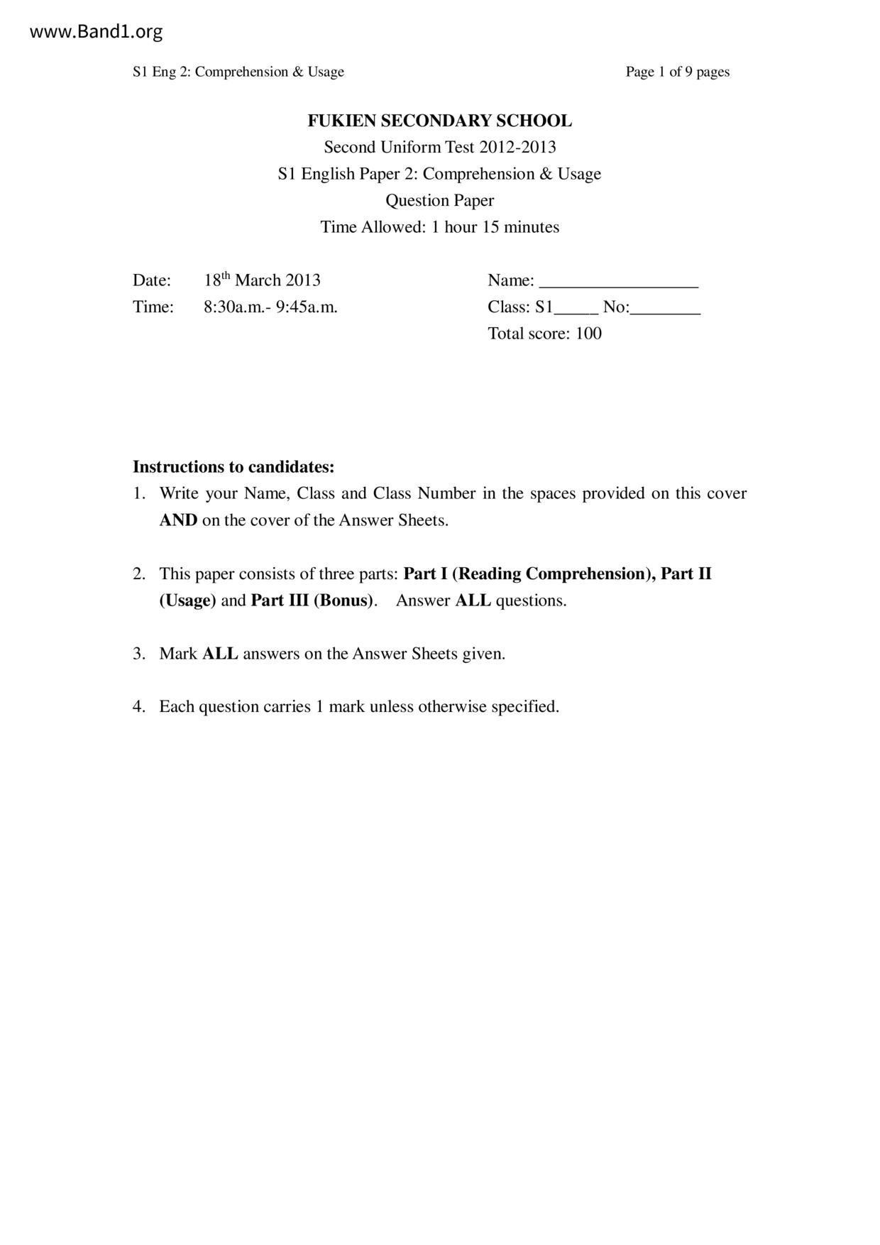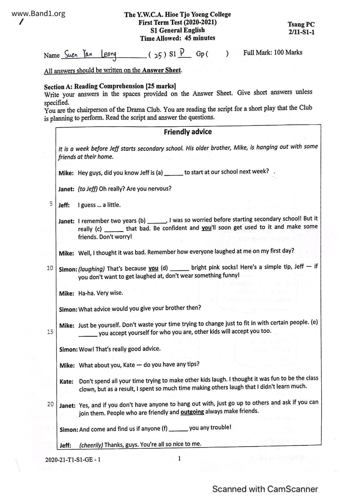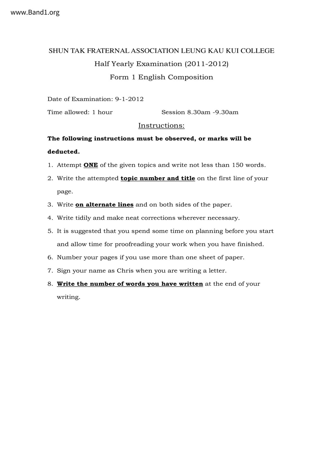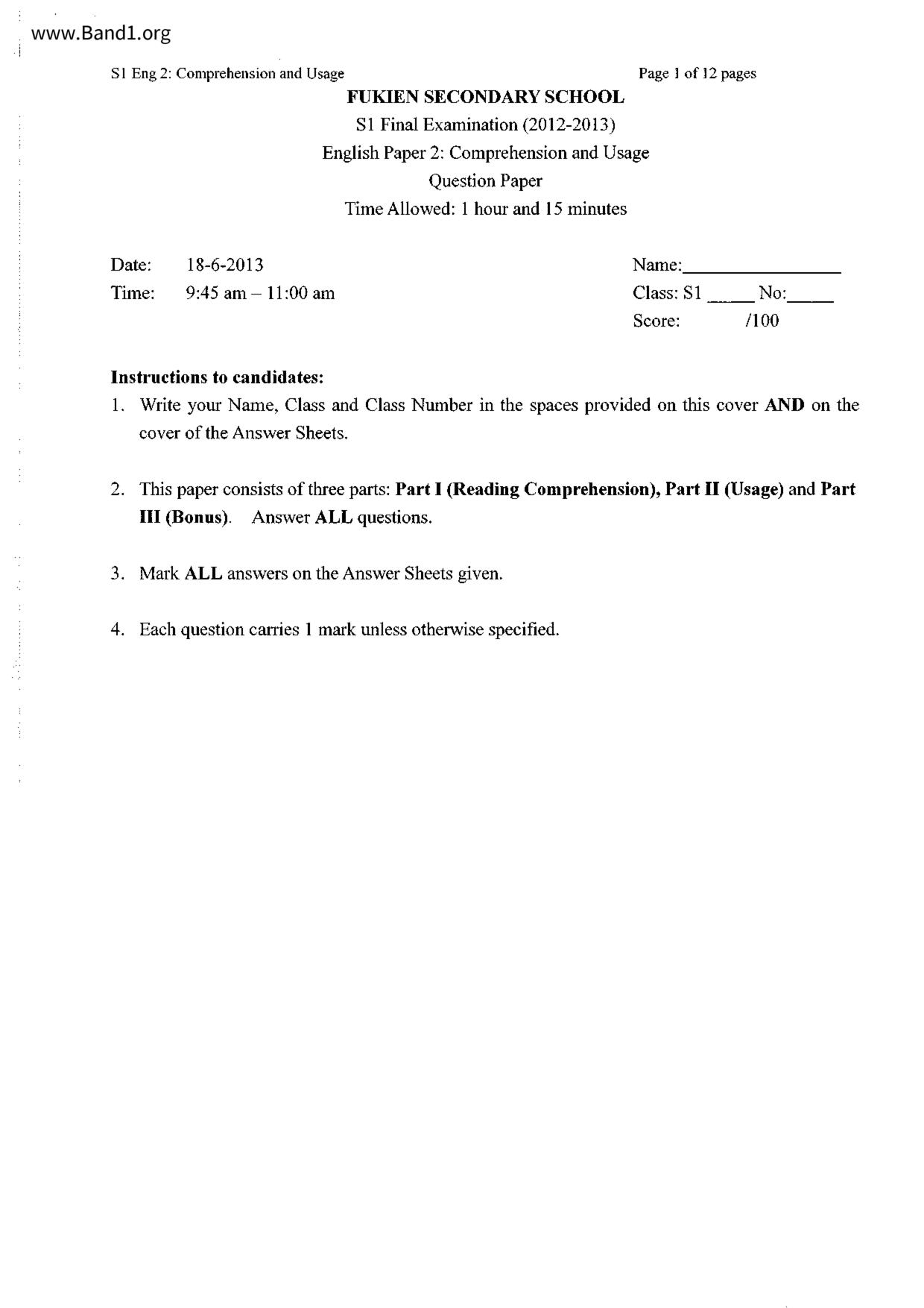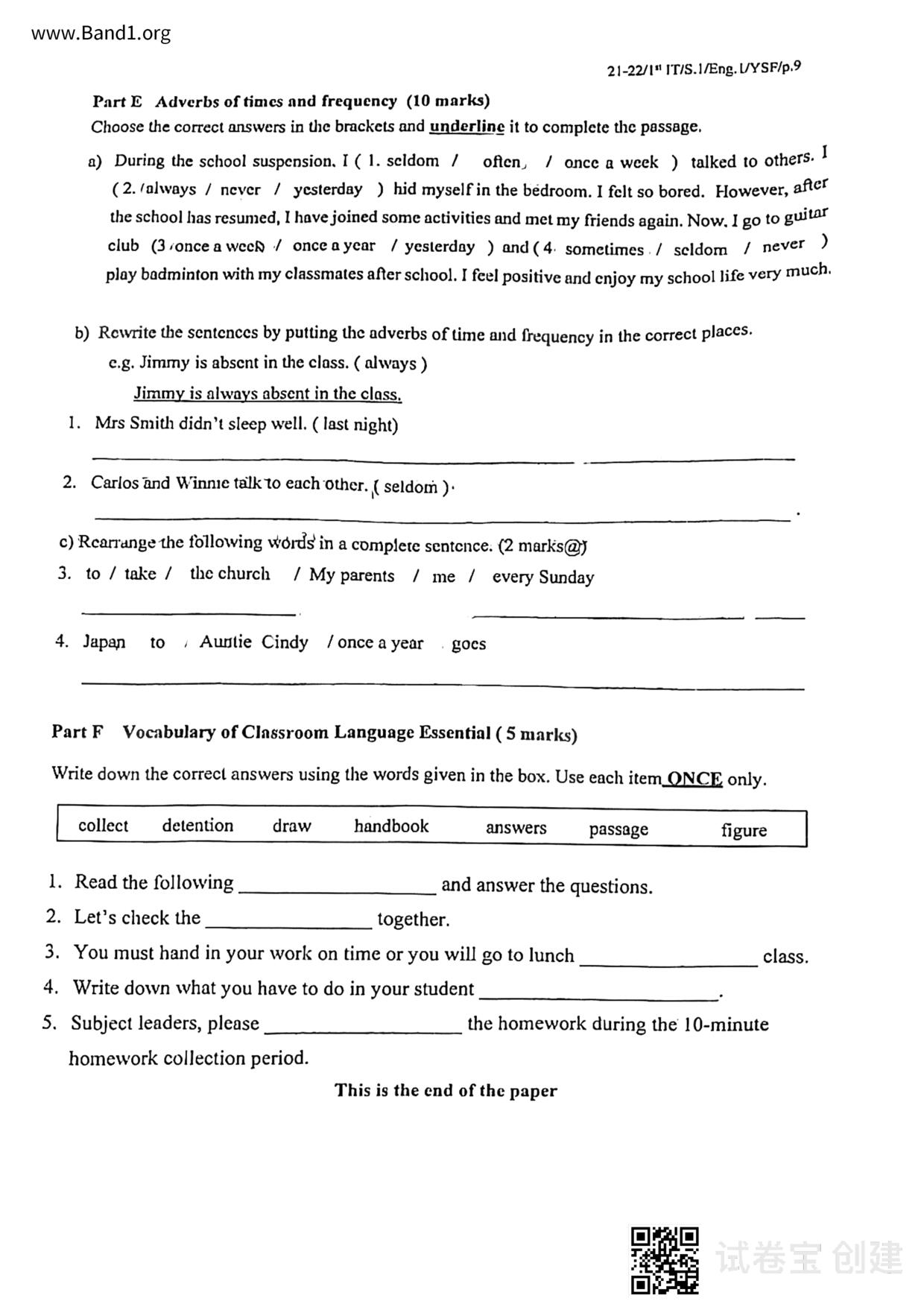 中一 英文 博愛醫院八十週年鄧英喜中學