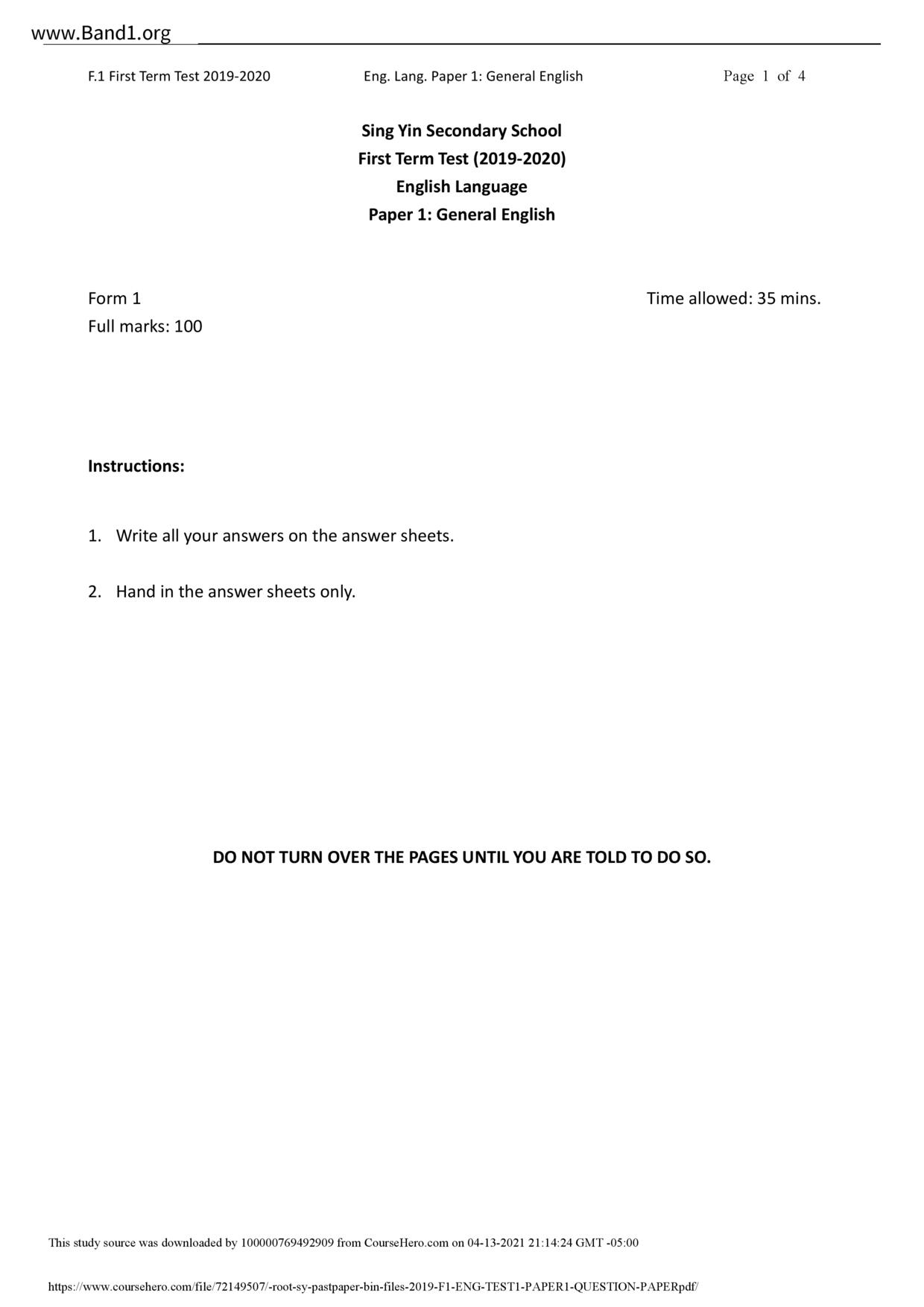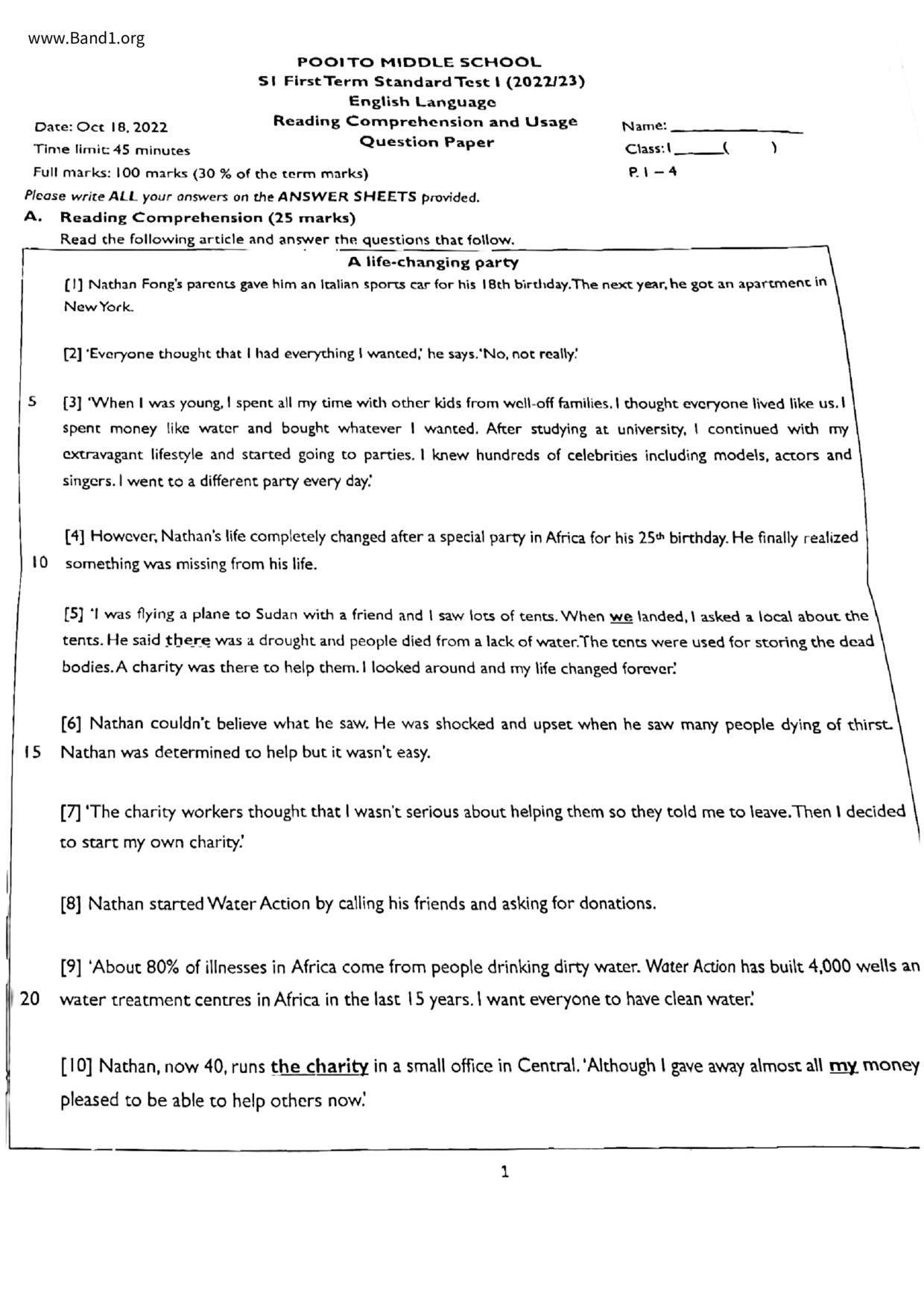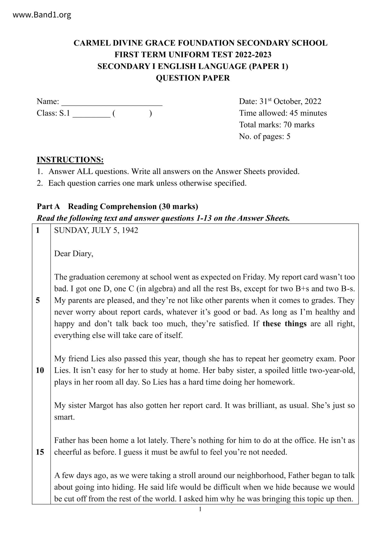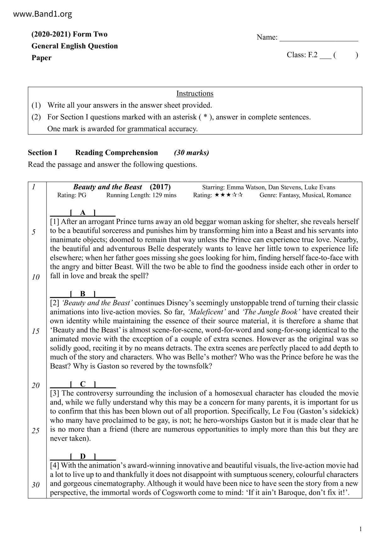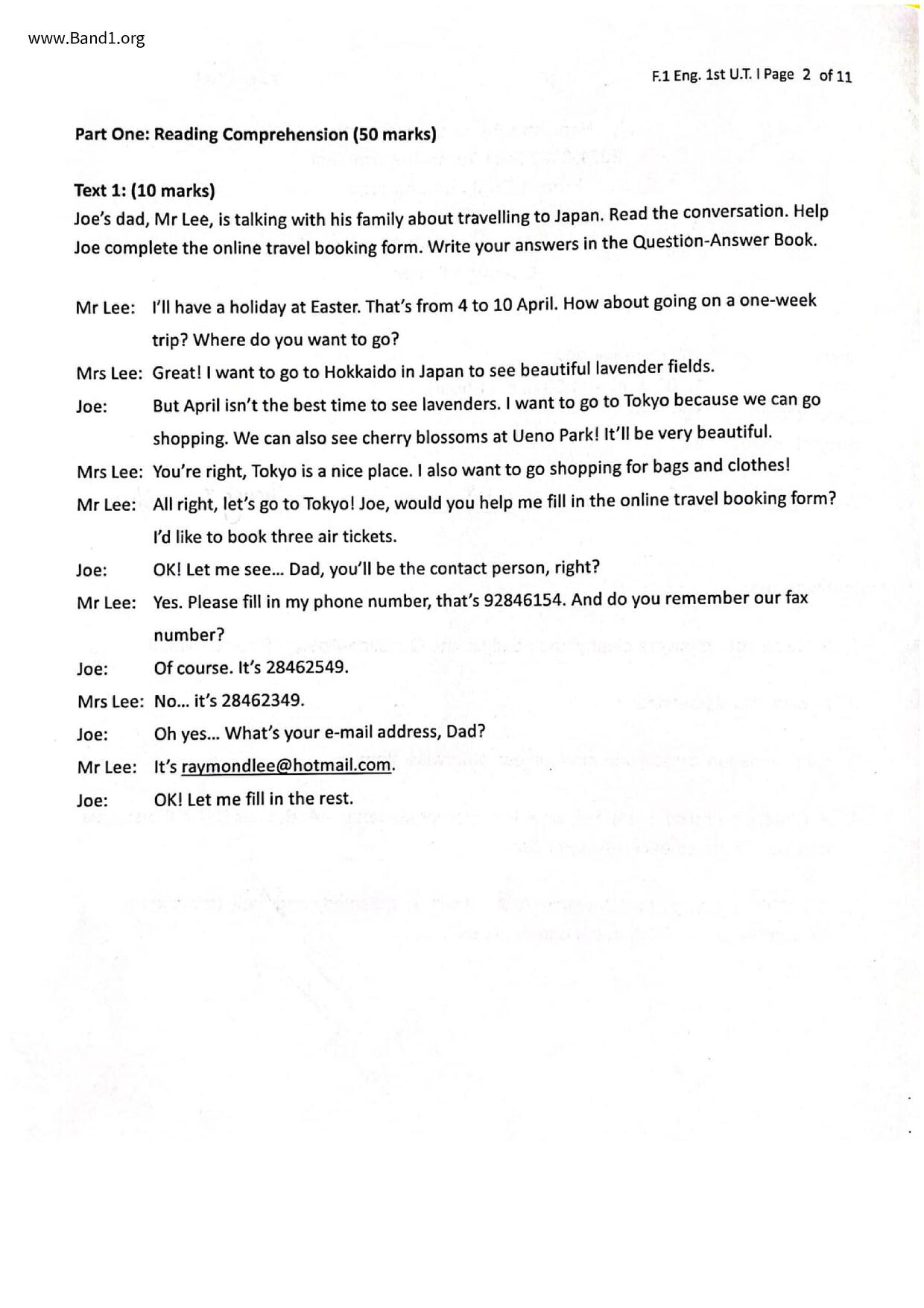 中一 英文 博愛醫院八十週年鄧英喜中學