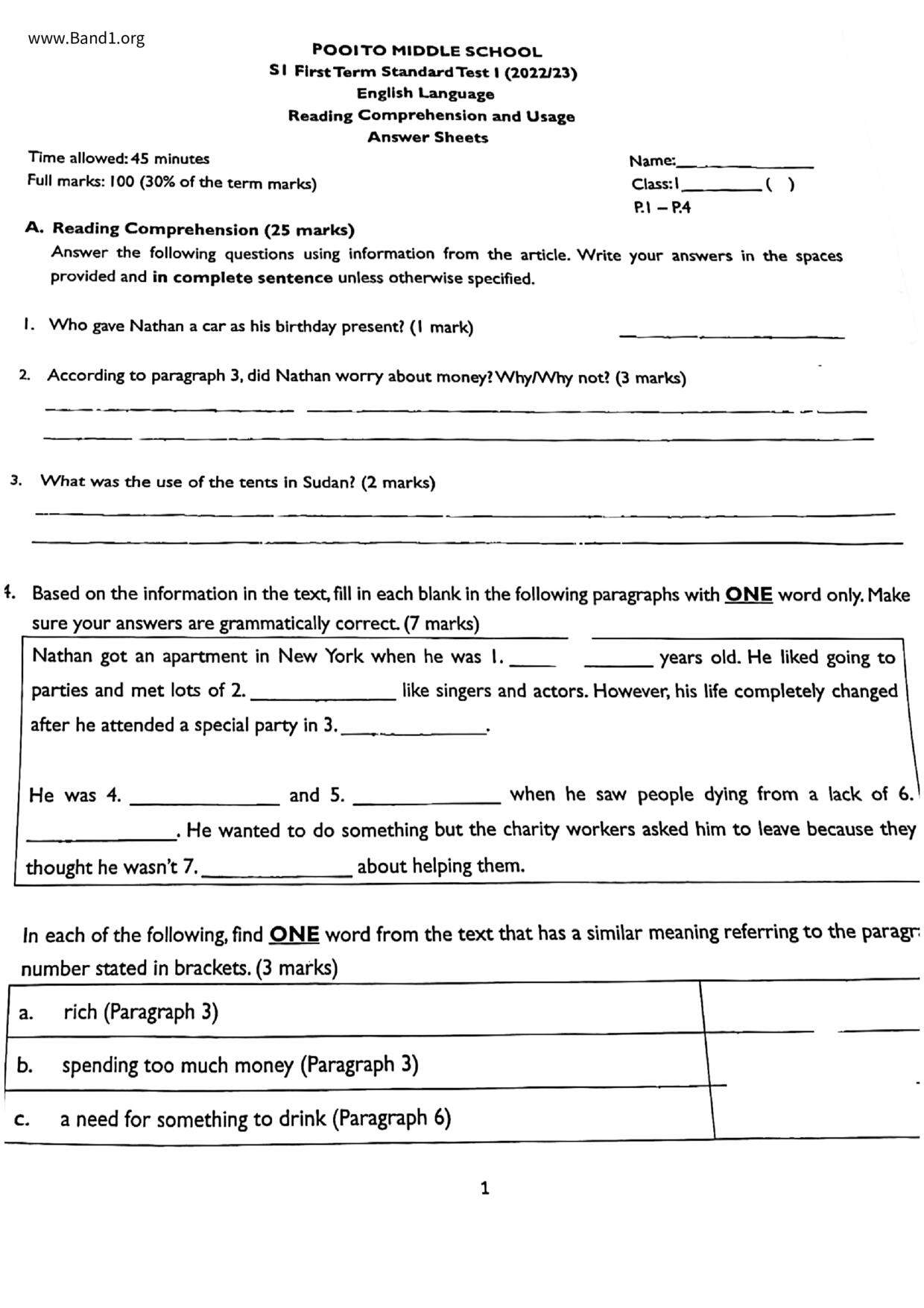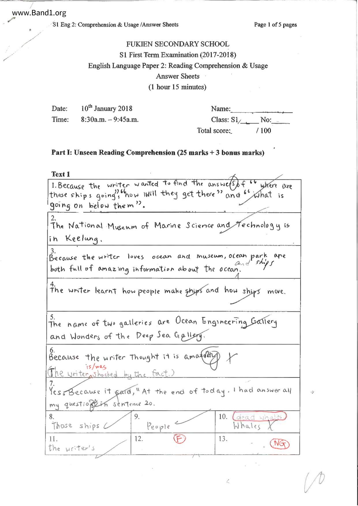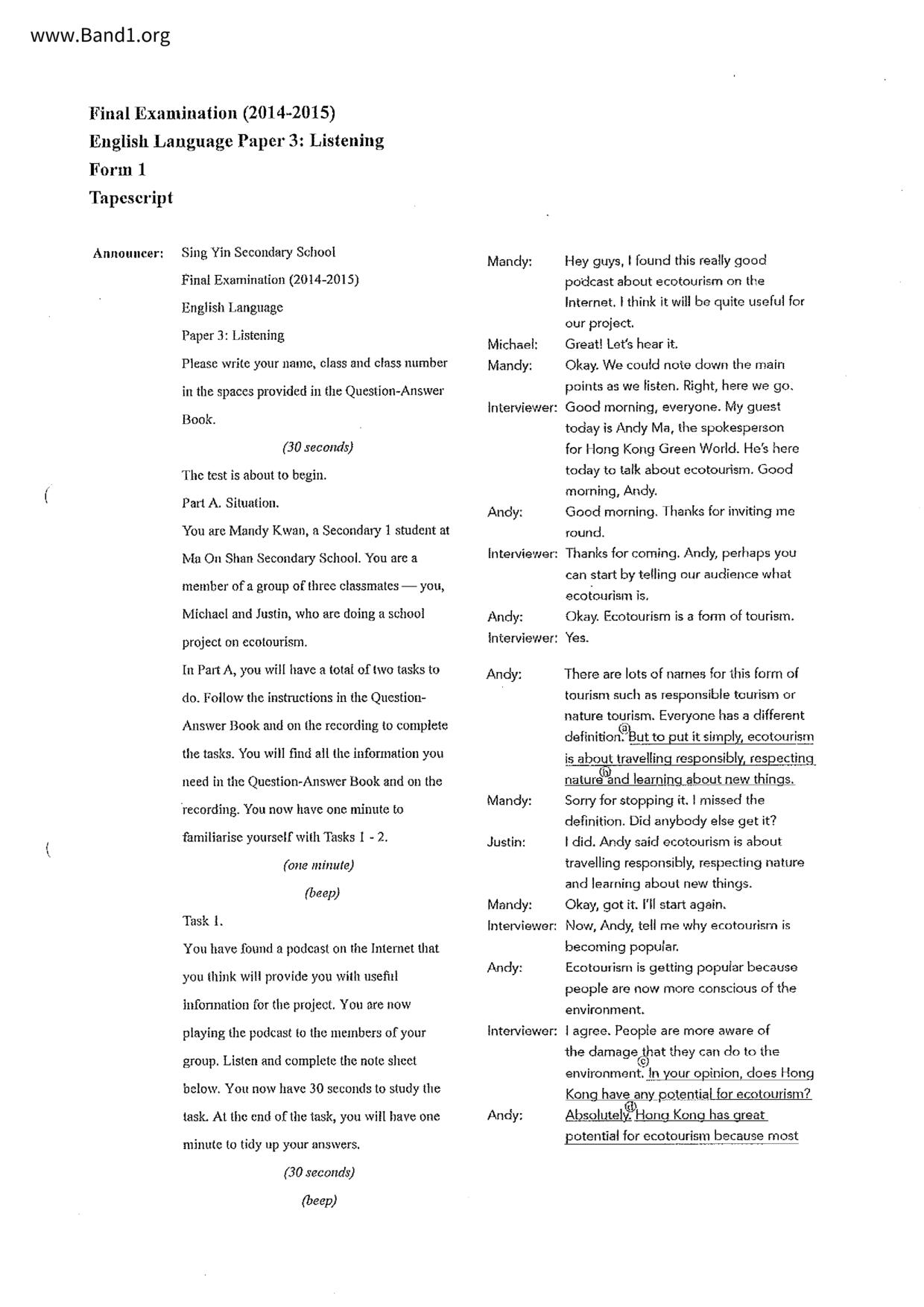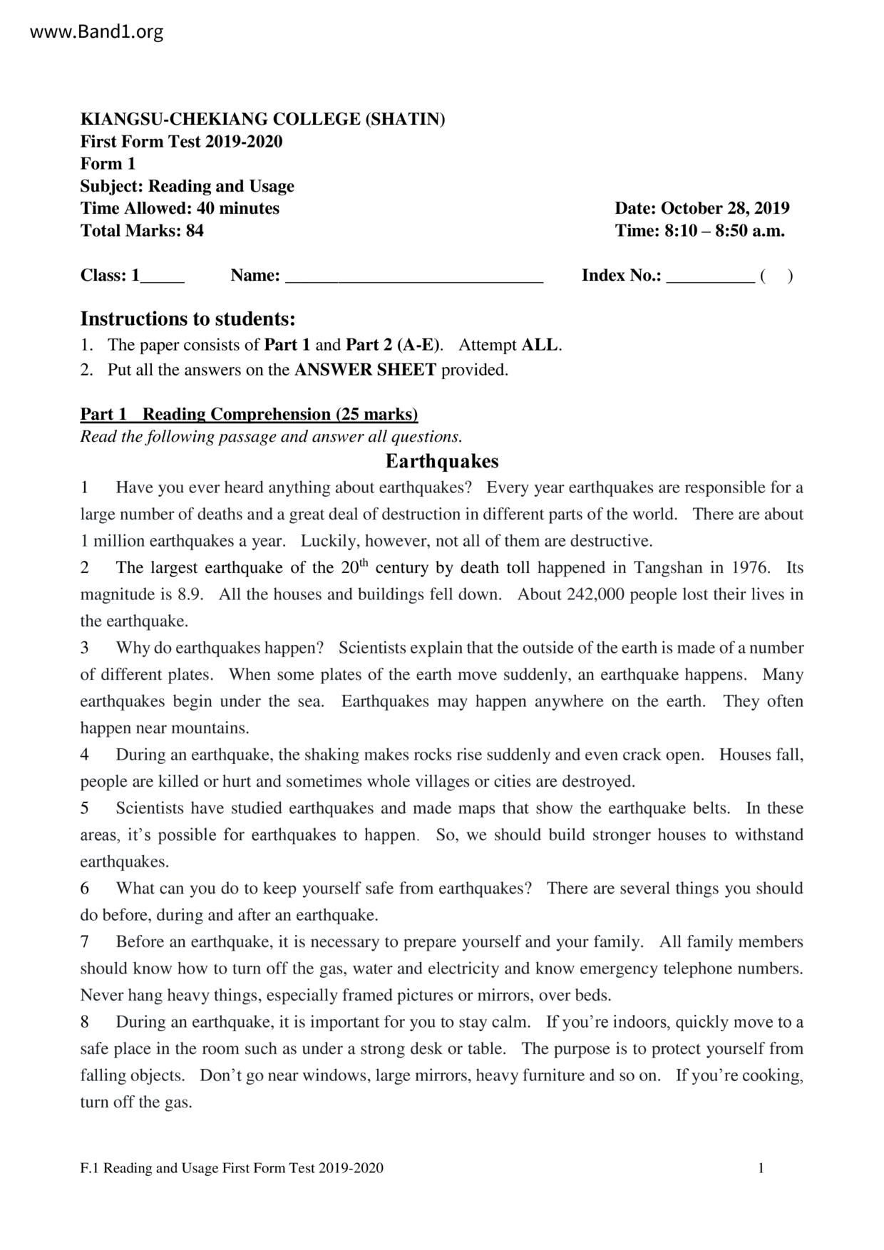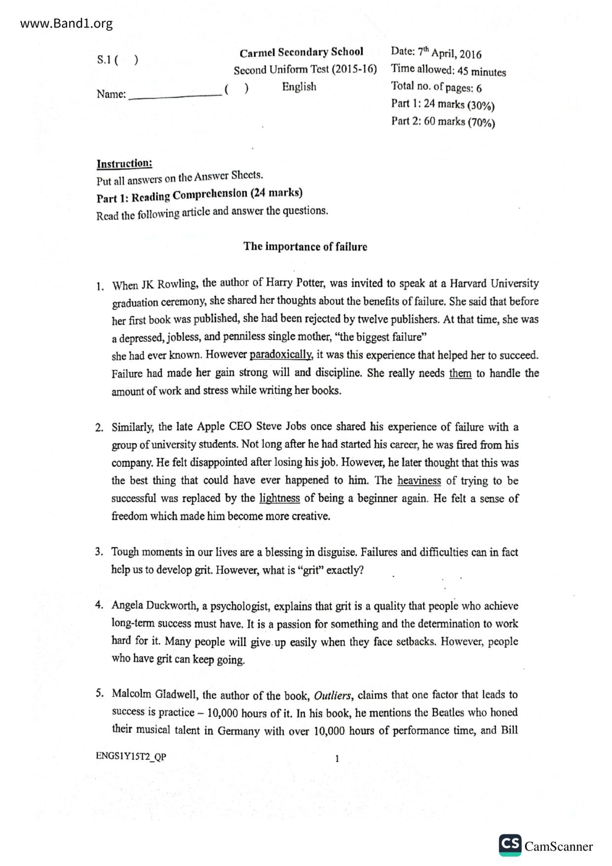 中一 英文 博愛醫院八十週年鄧英喜中學