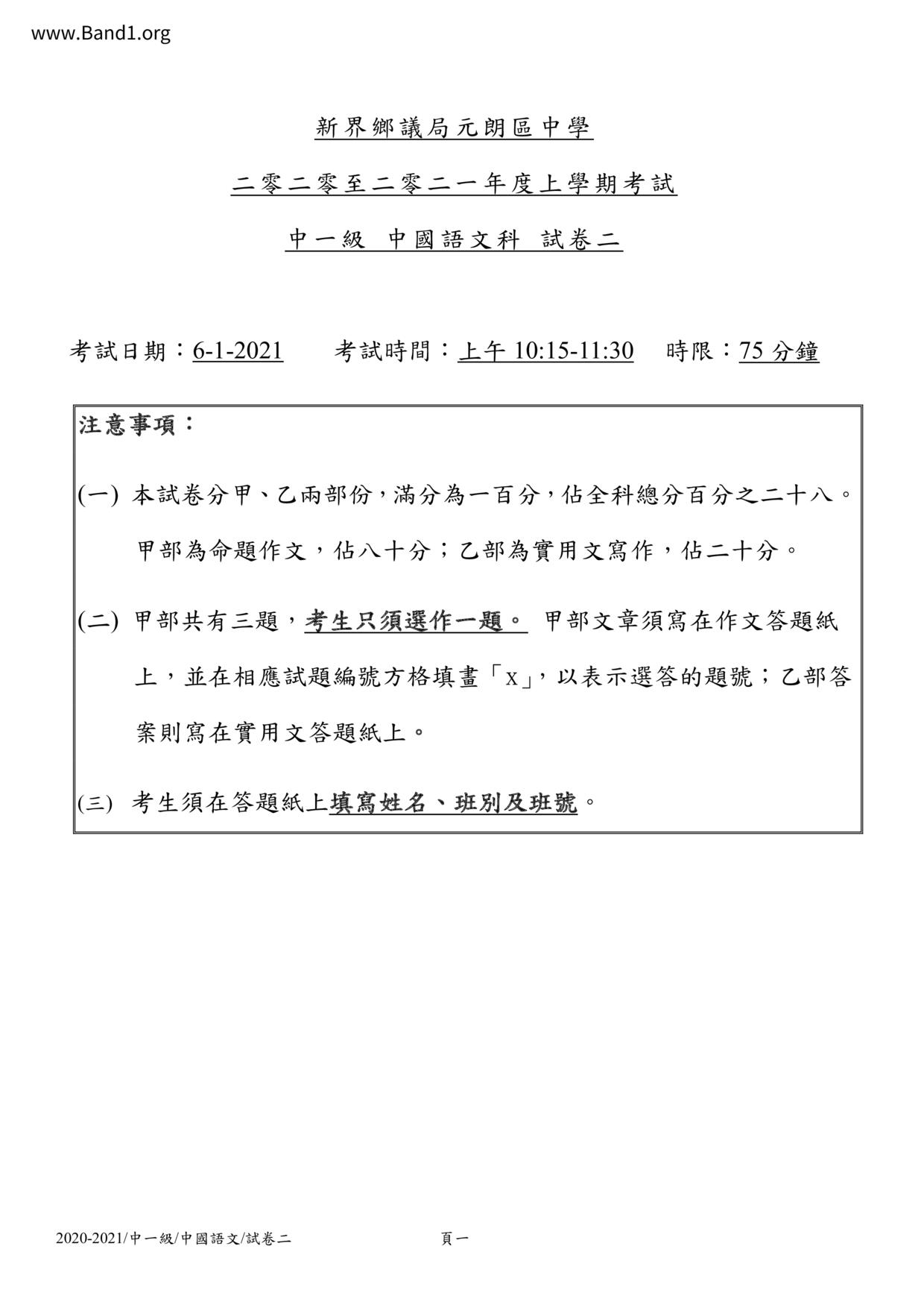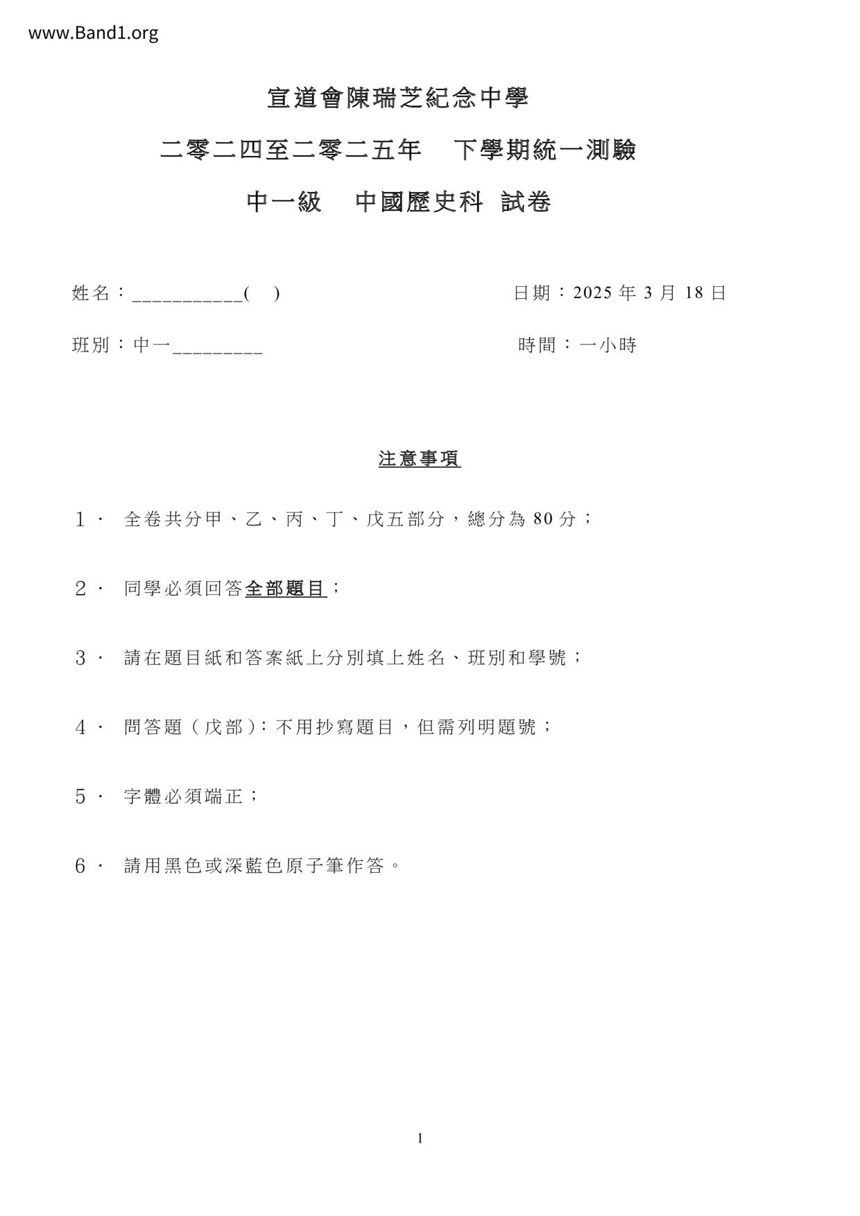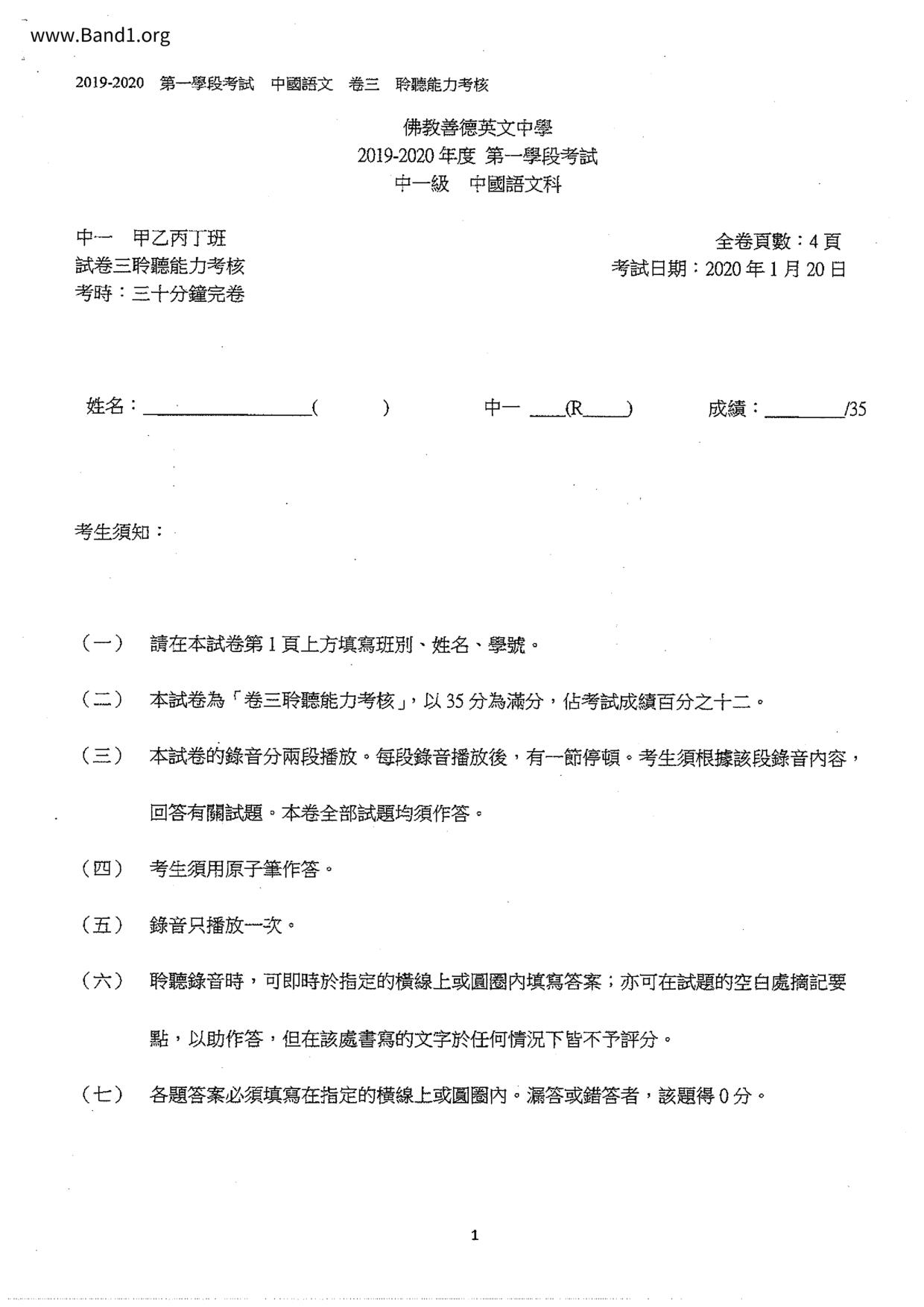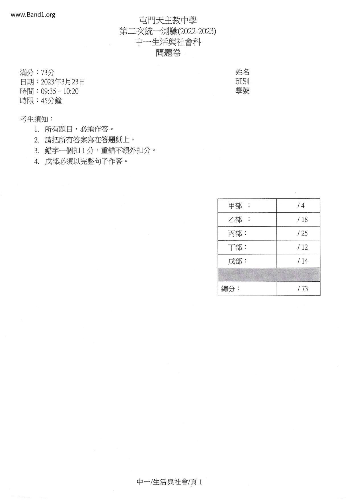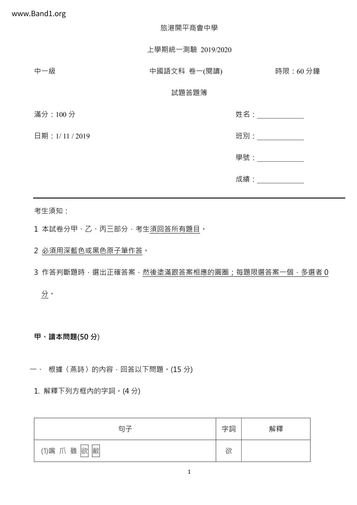 中一 其他科目 香港道教聯合會圓玄學院第一中學