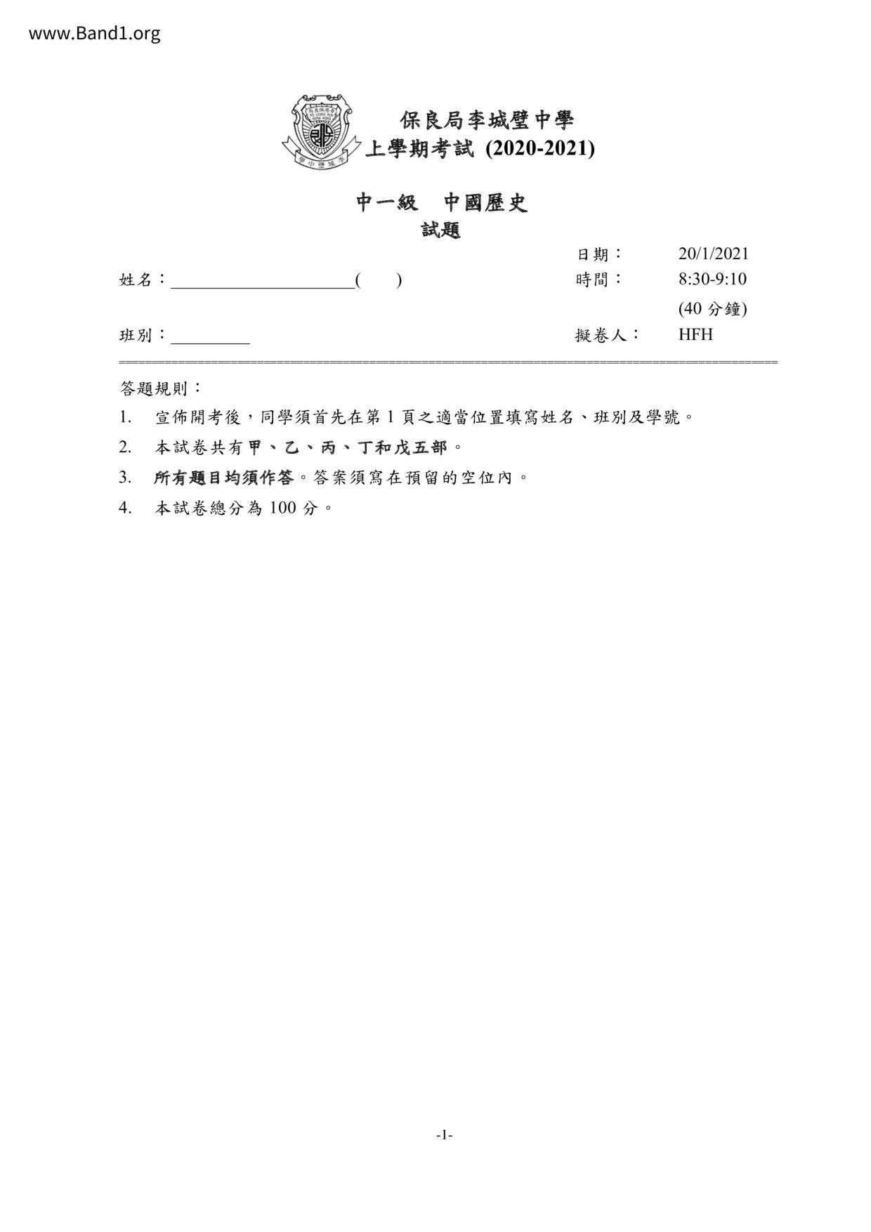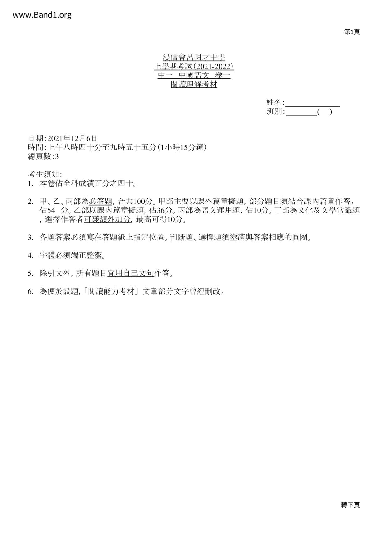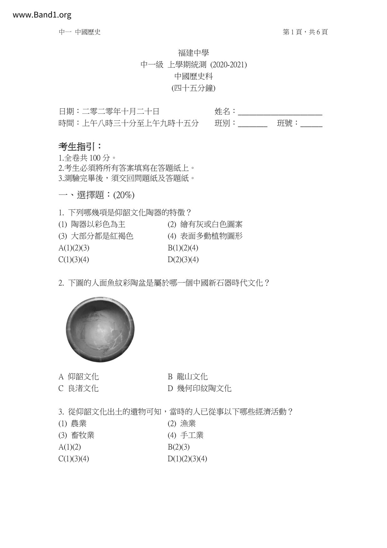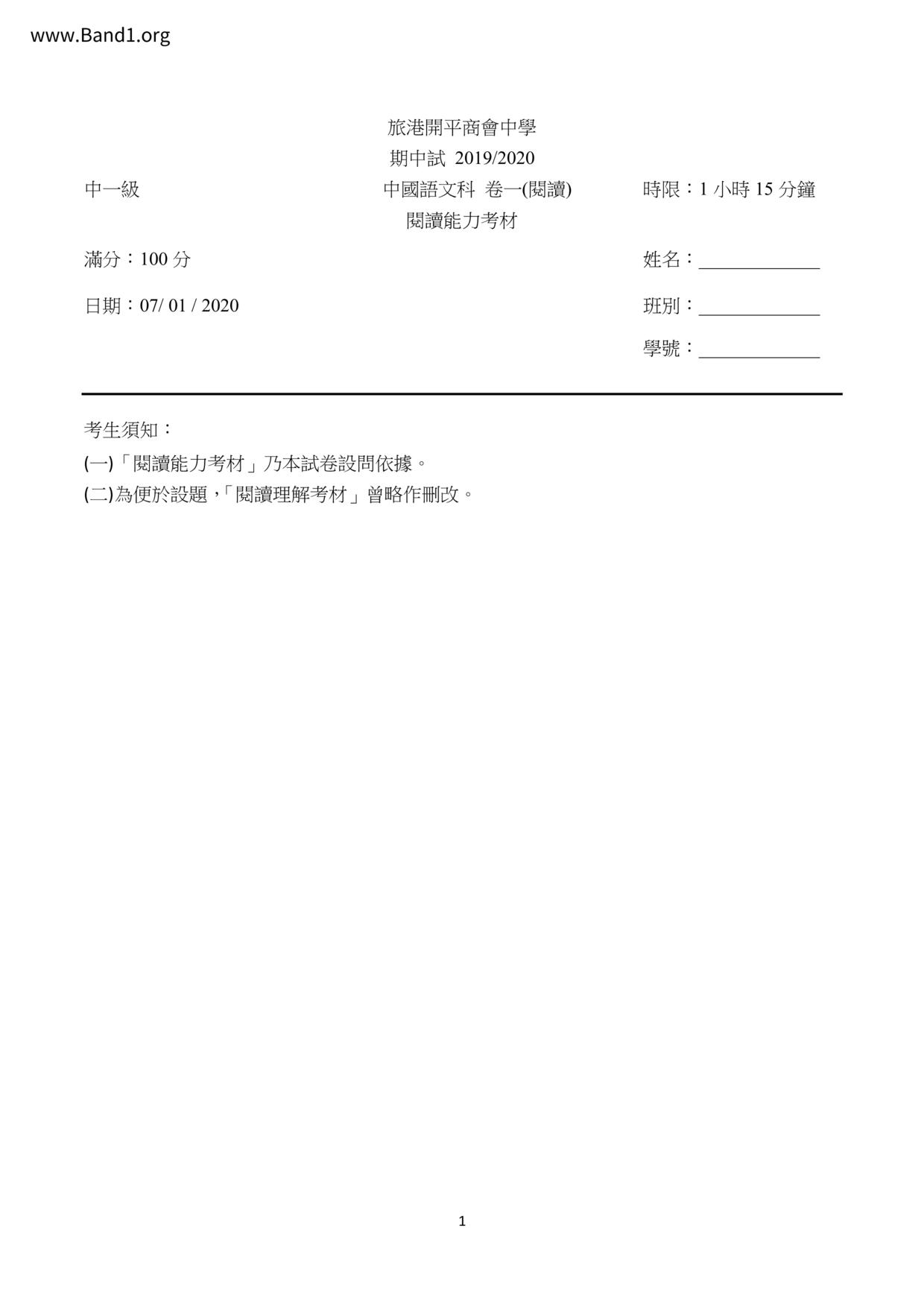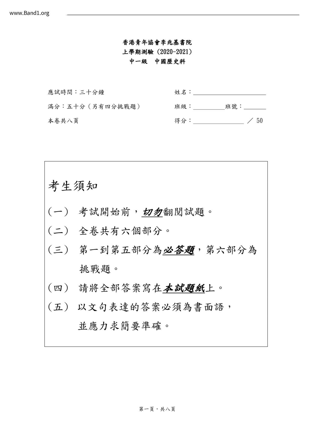 中一 其他科目 香港道教聯合會圓玄學院第一中學