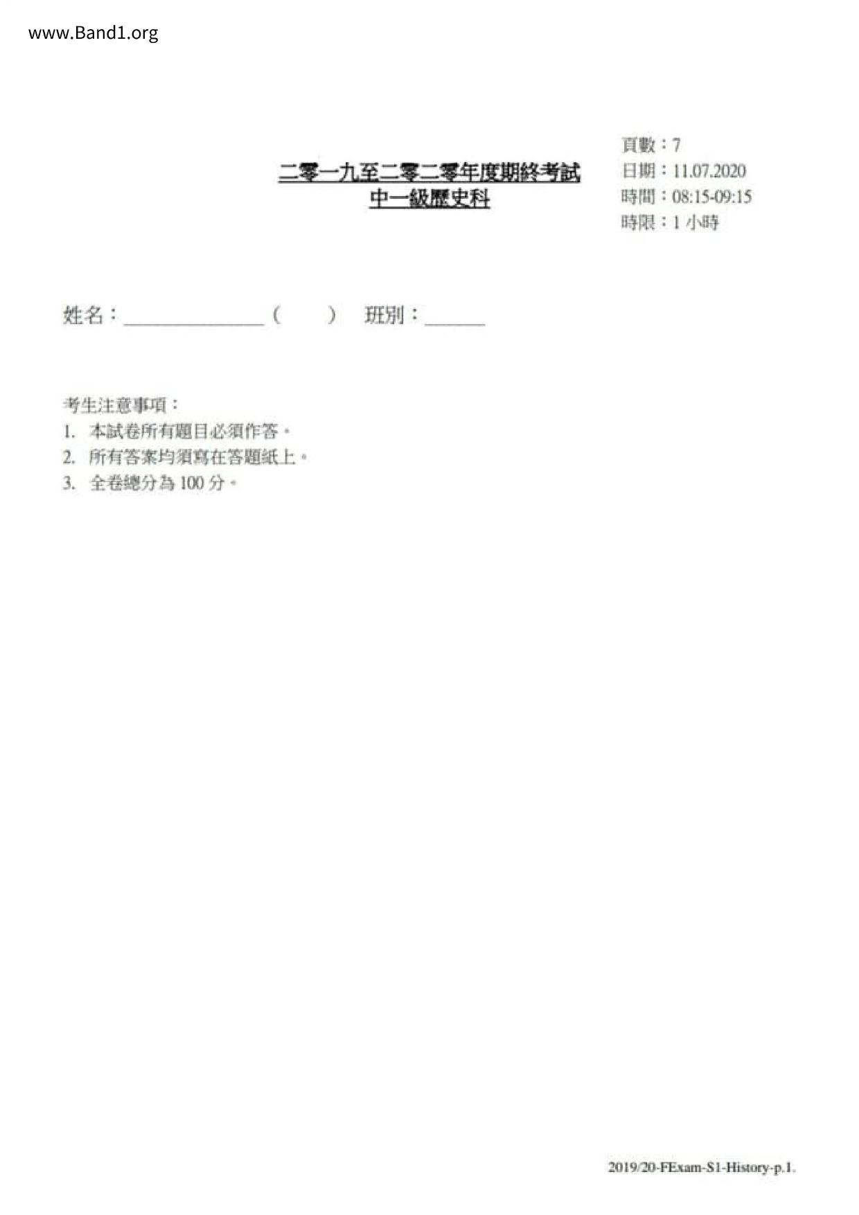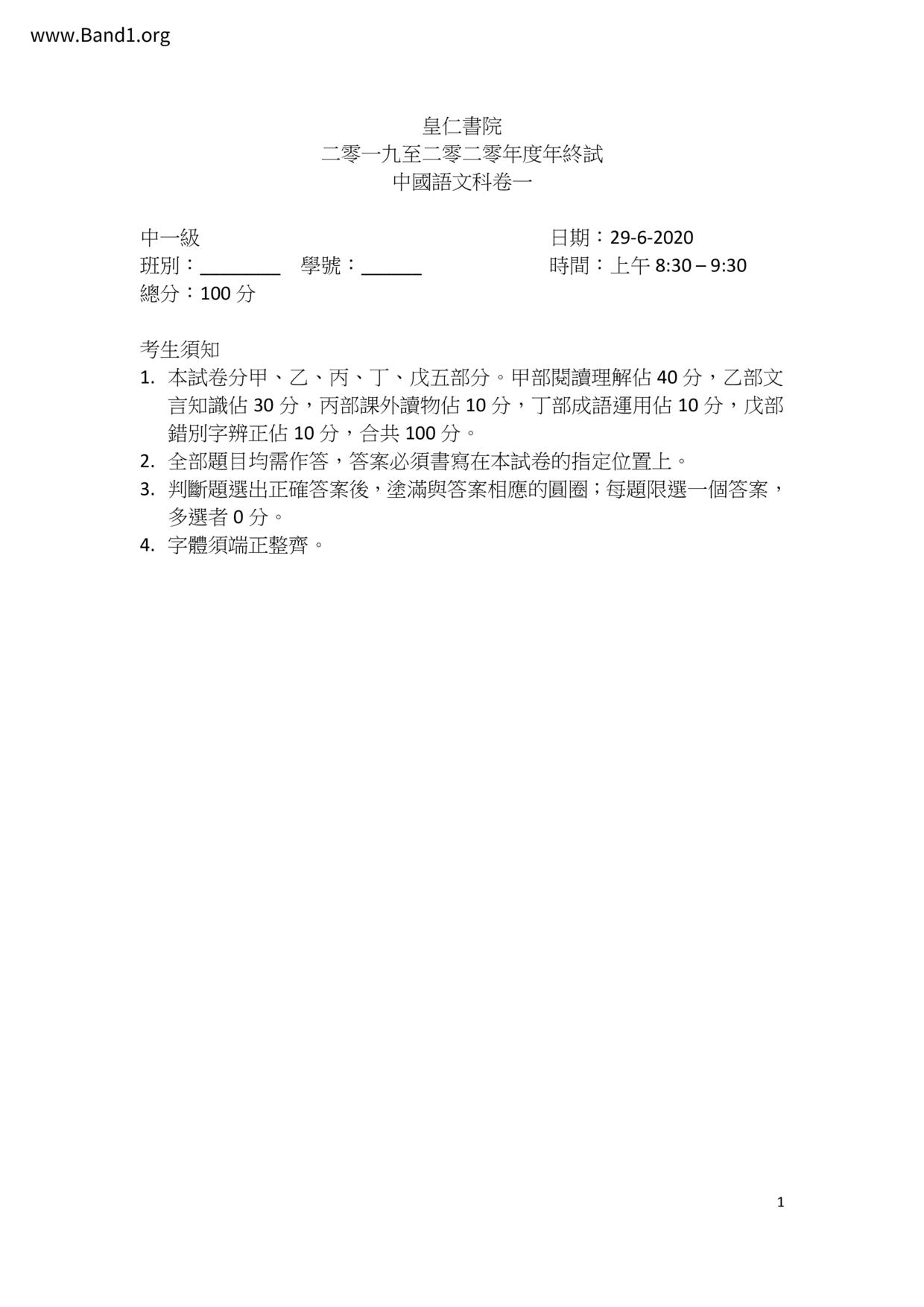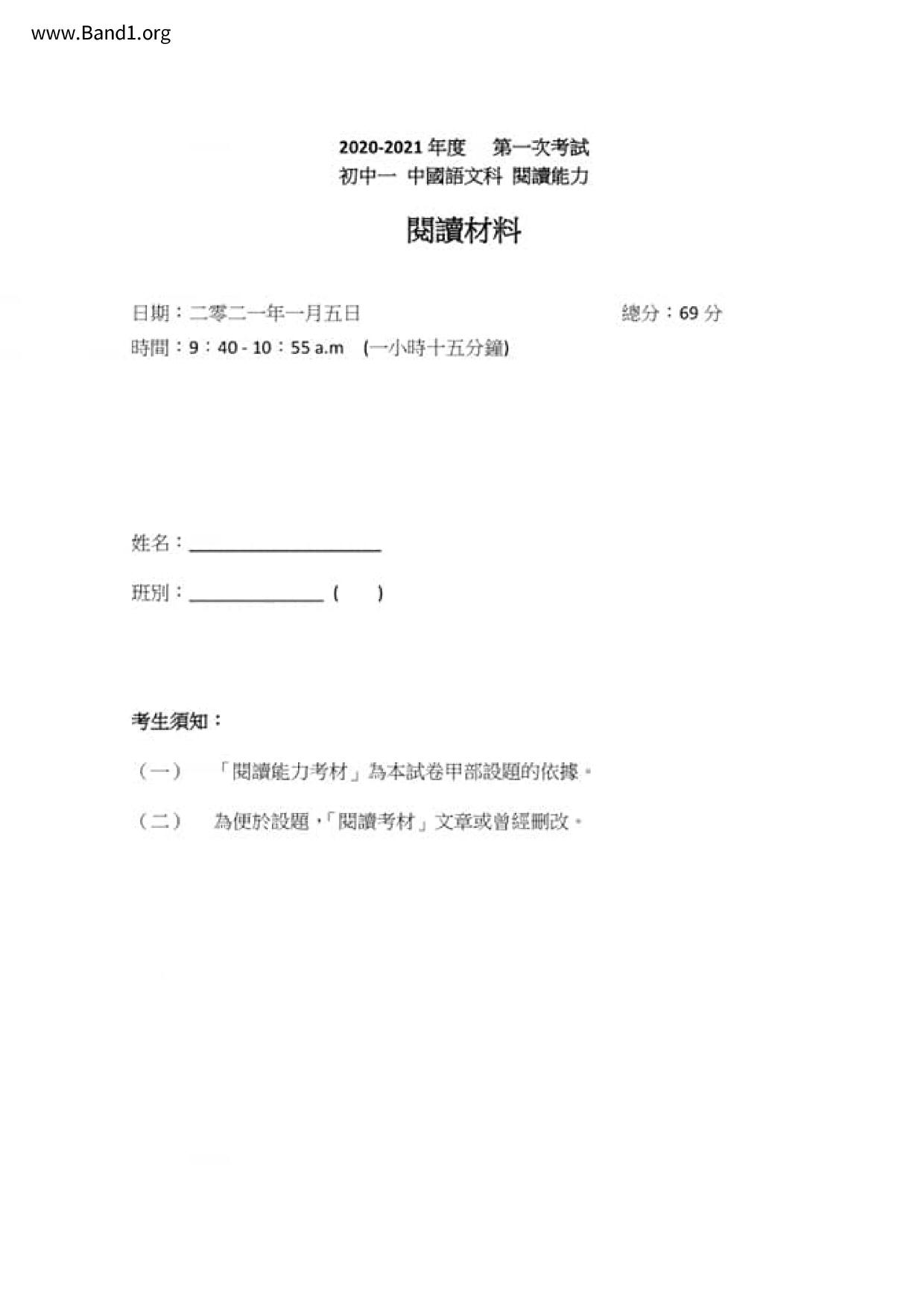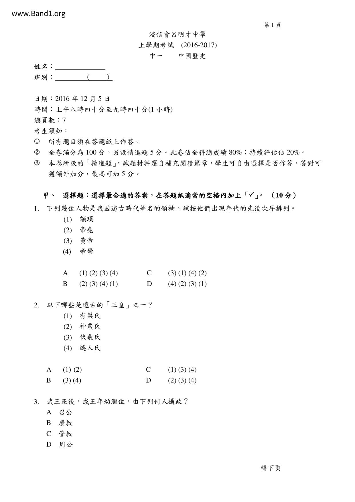 中一 其他科目 香港道教聯合會圓玄學院第一中學