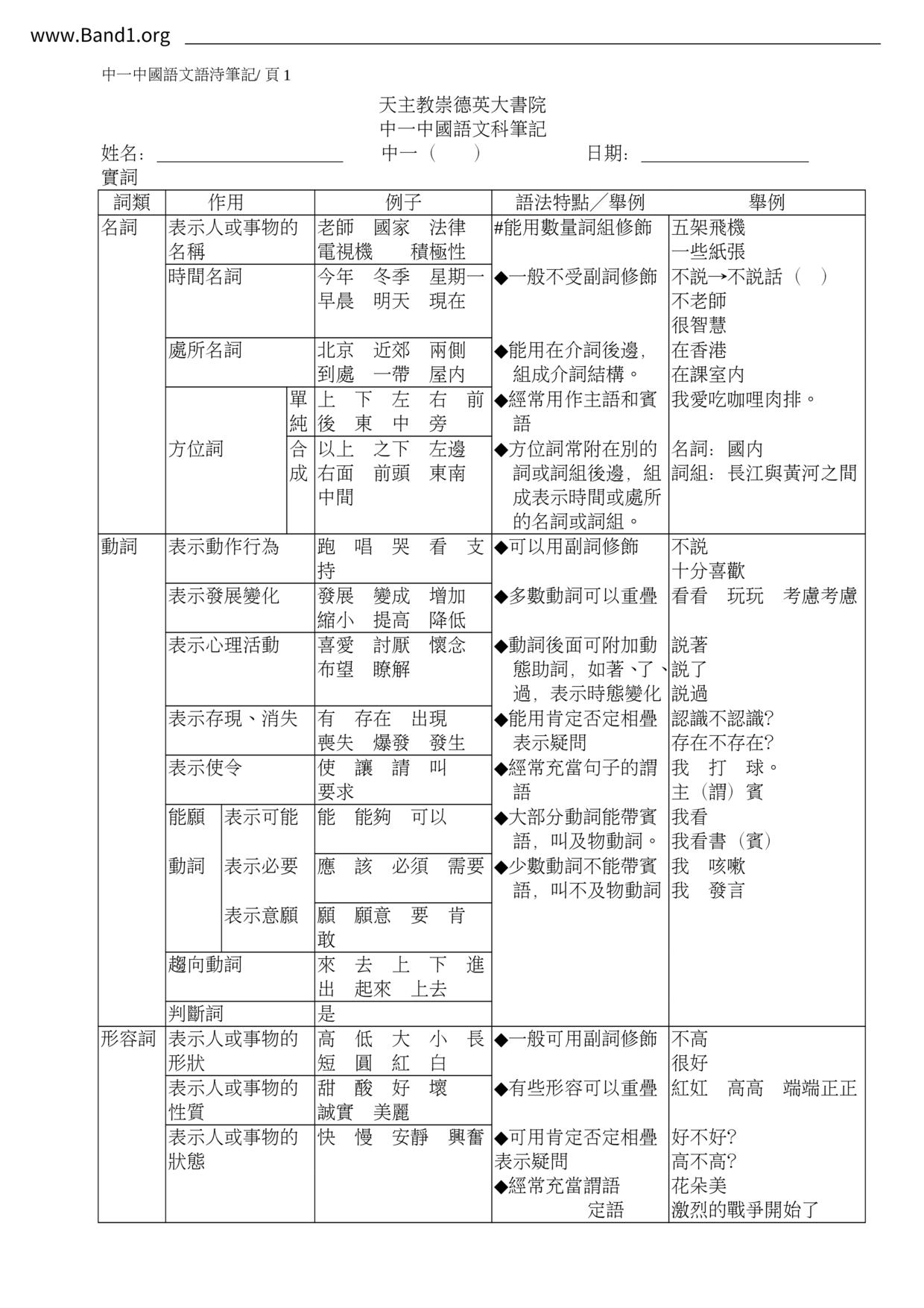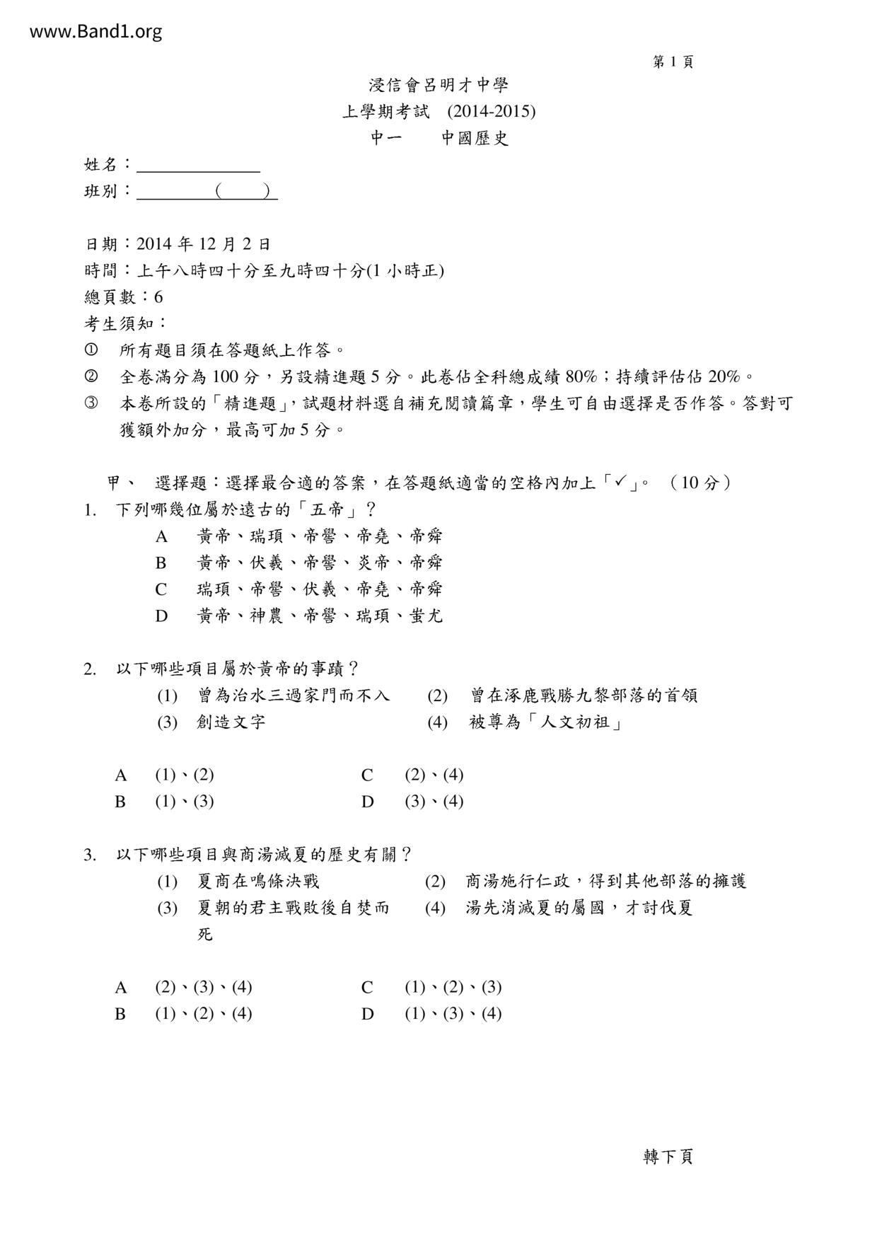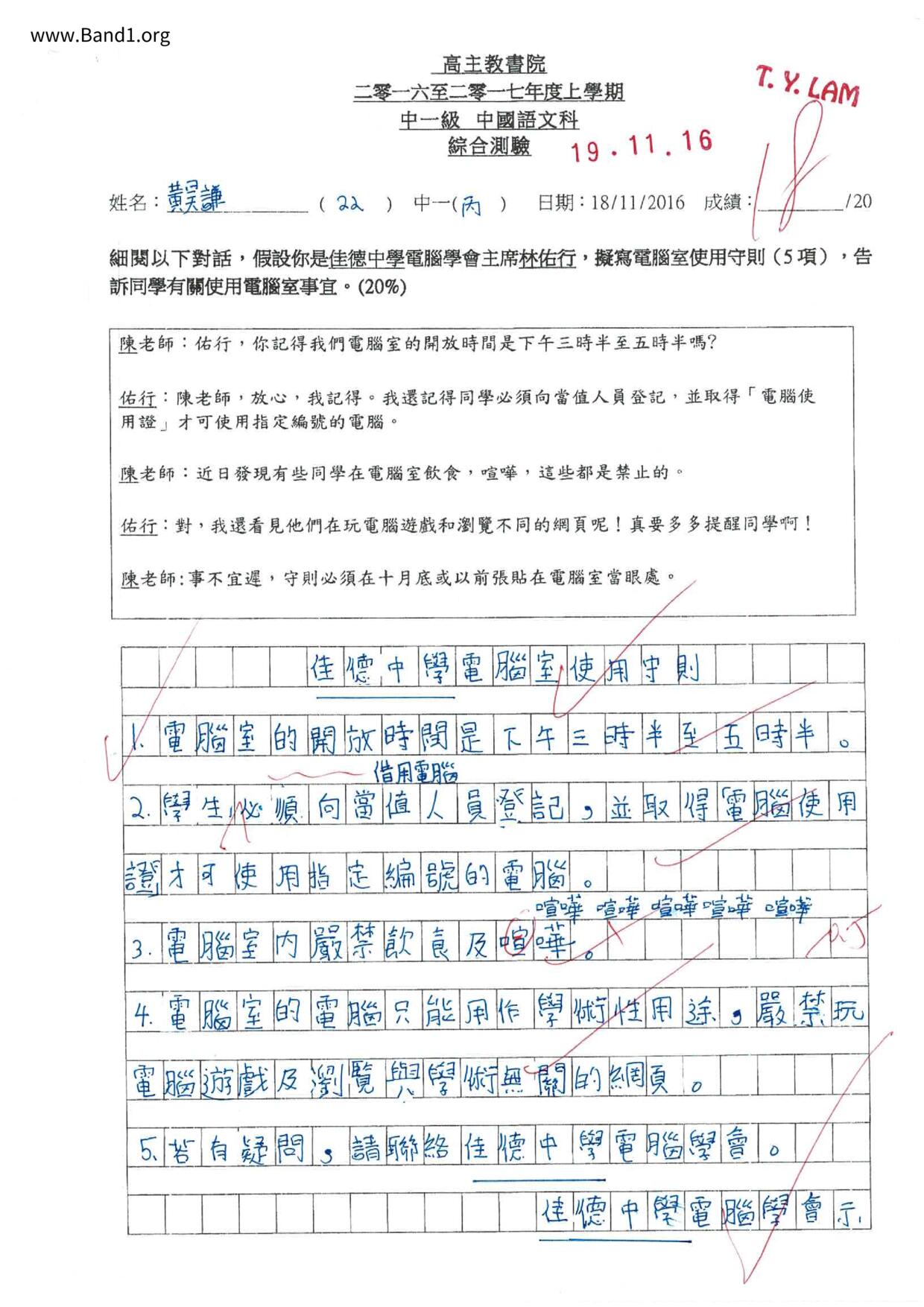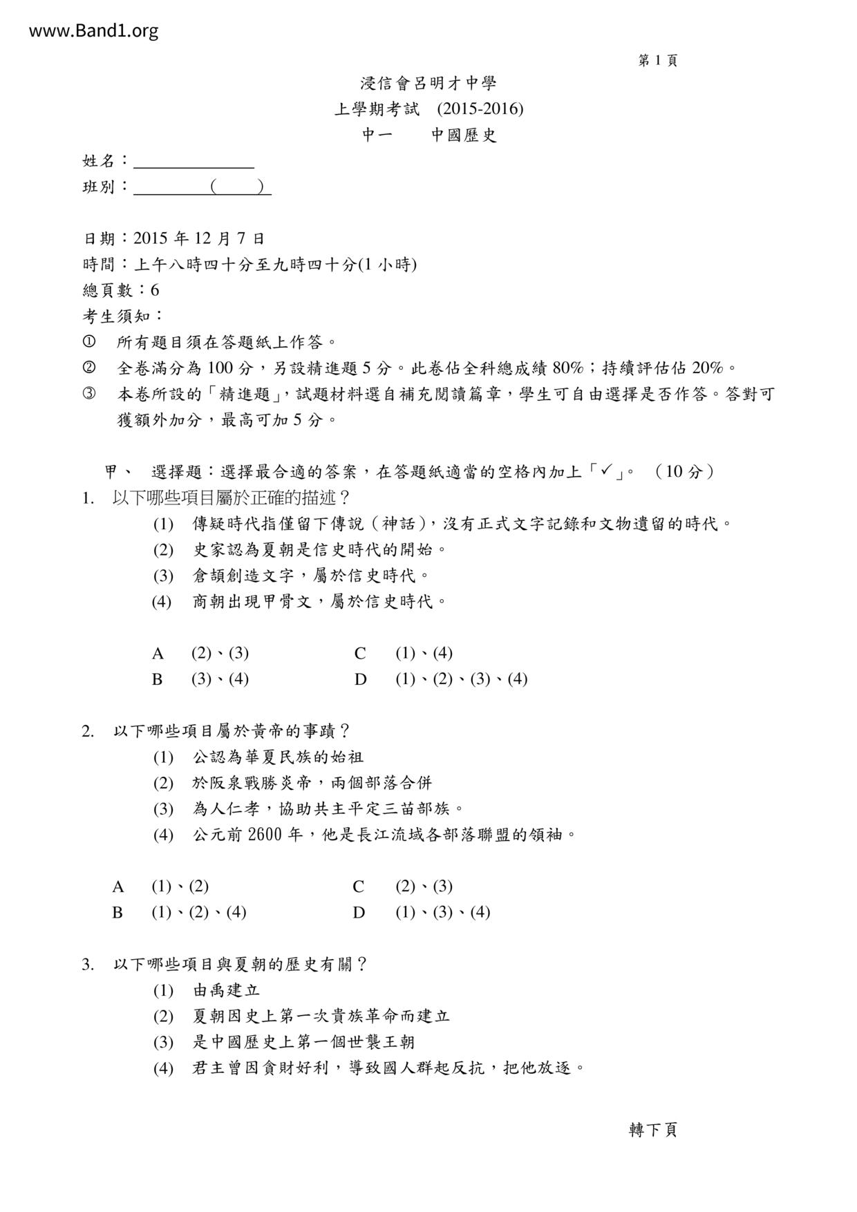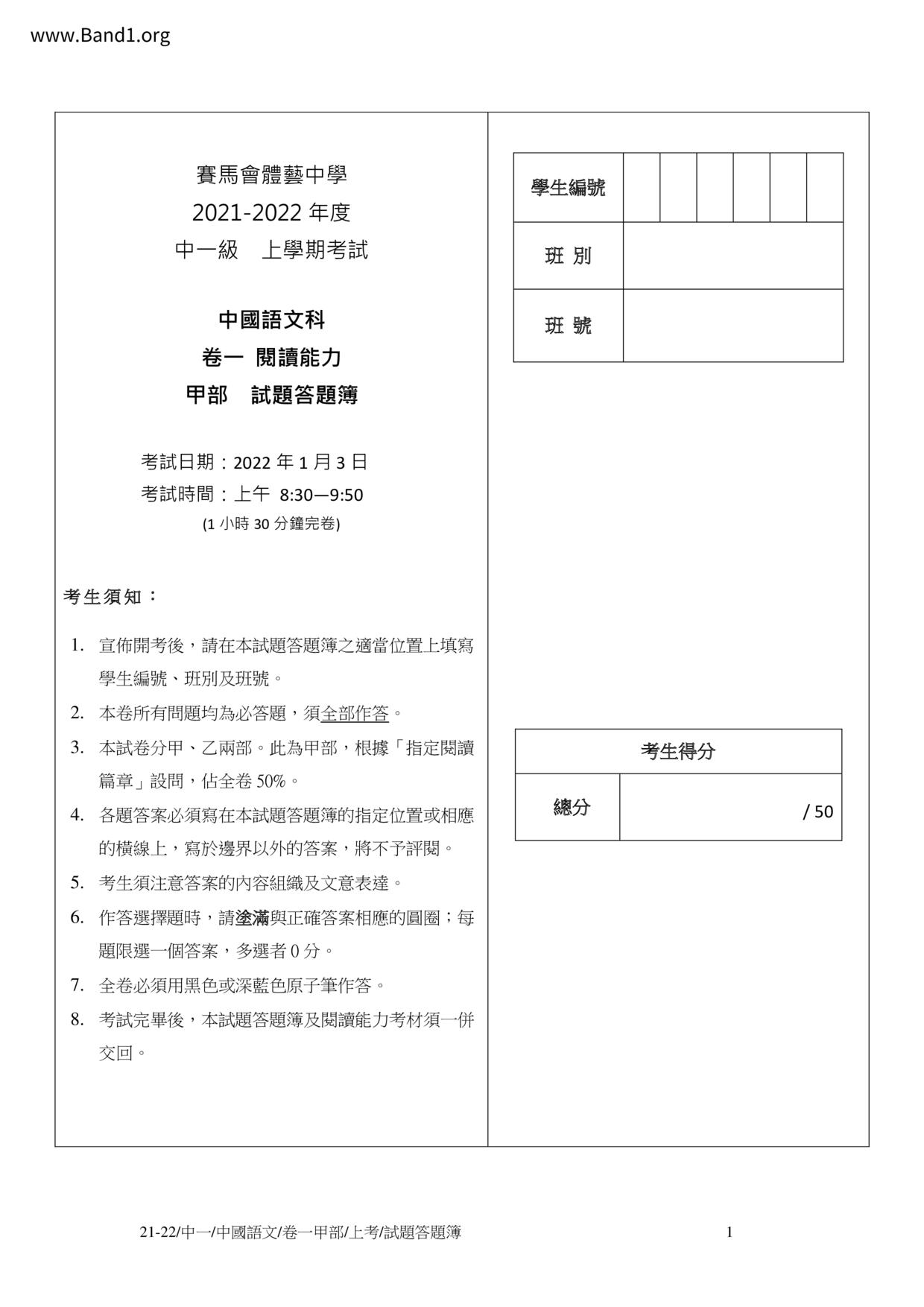 中一 其他科目 香港道教聯合會圓玄學院第一中學