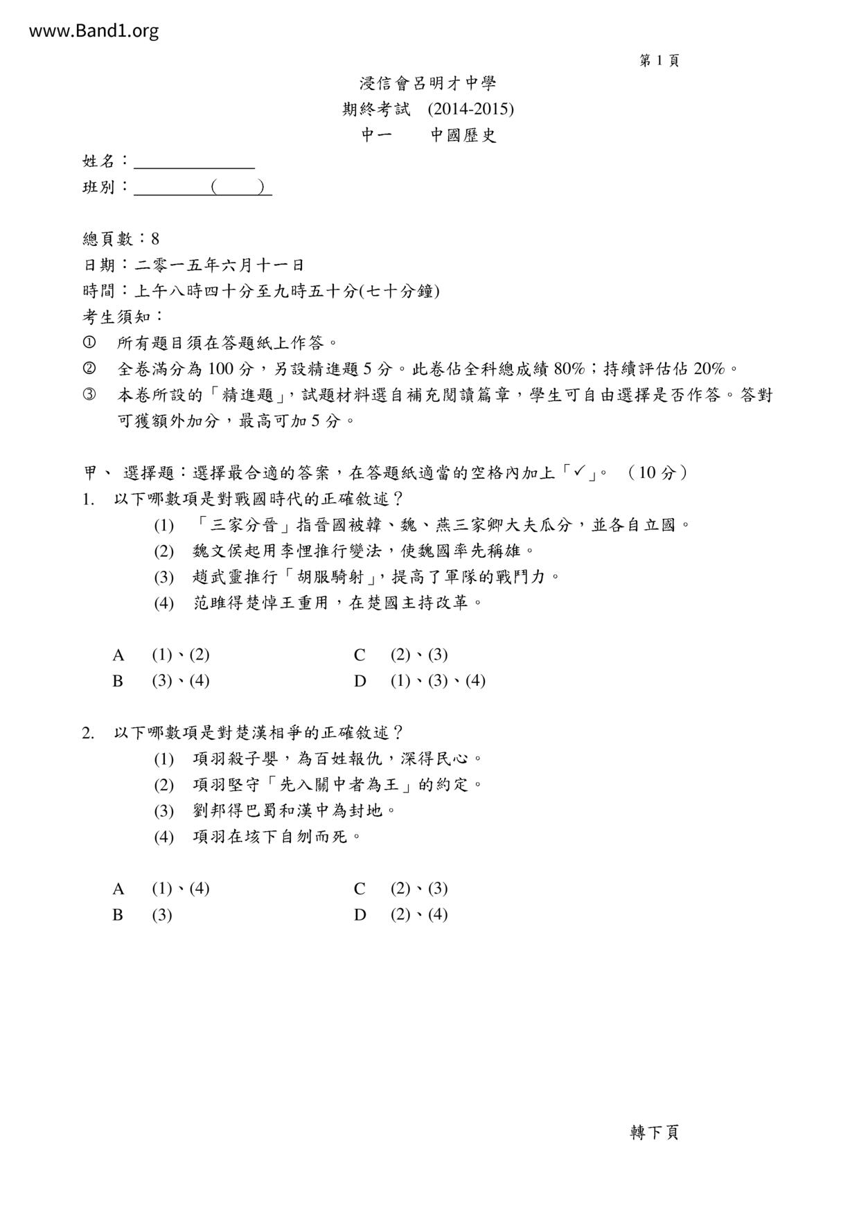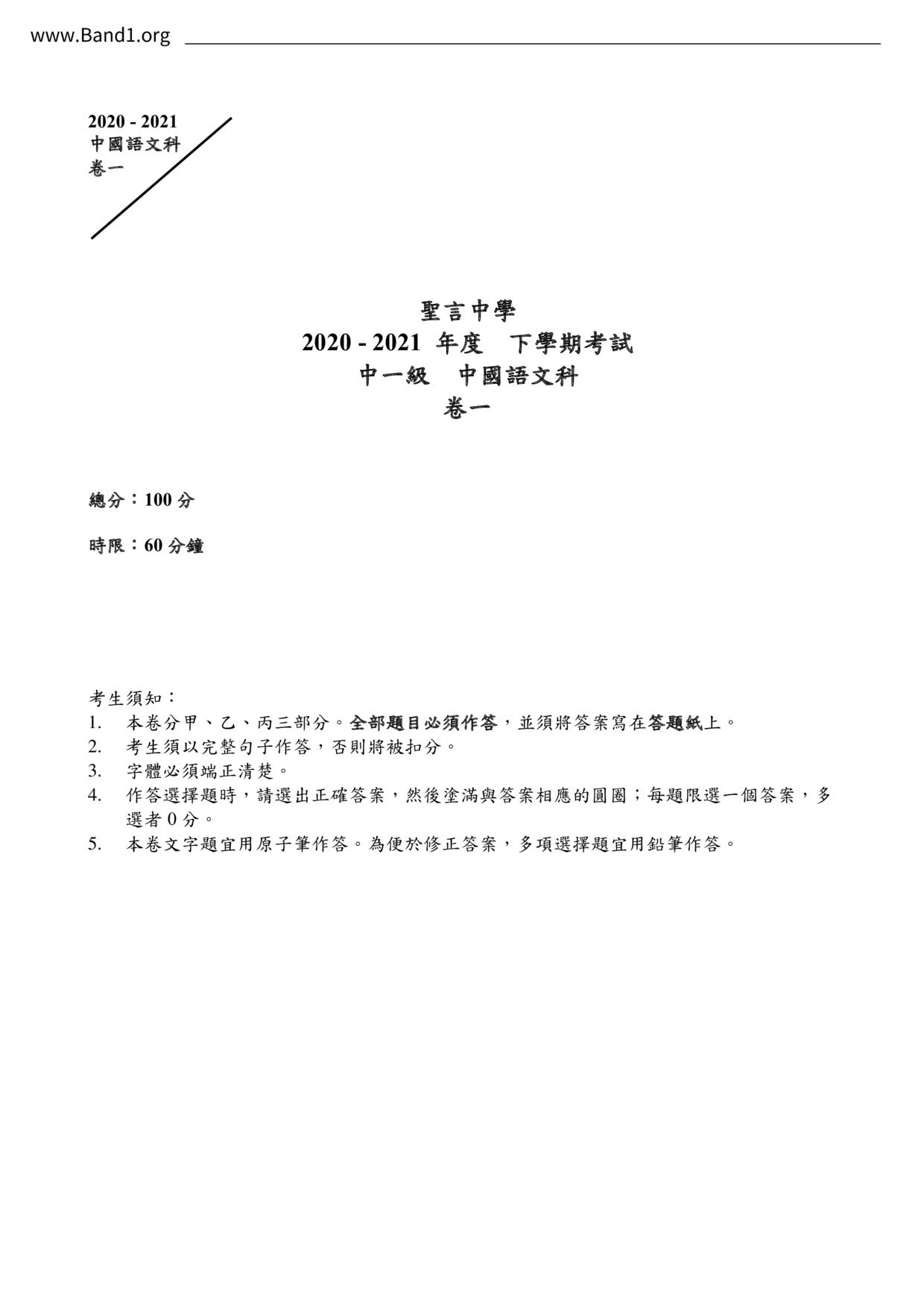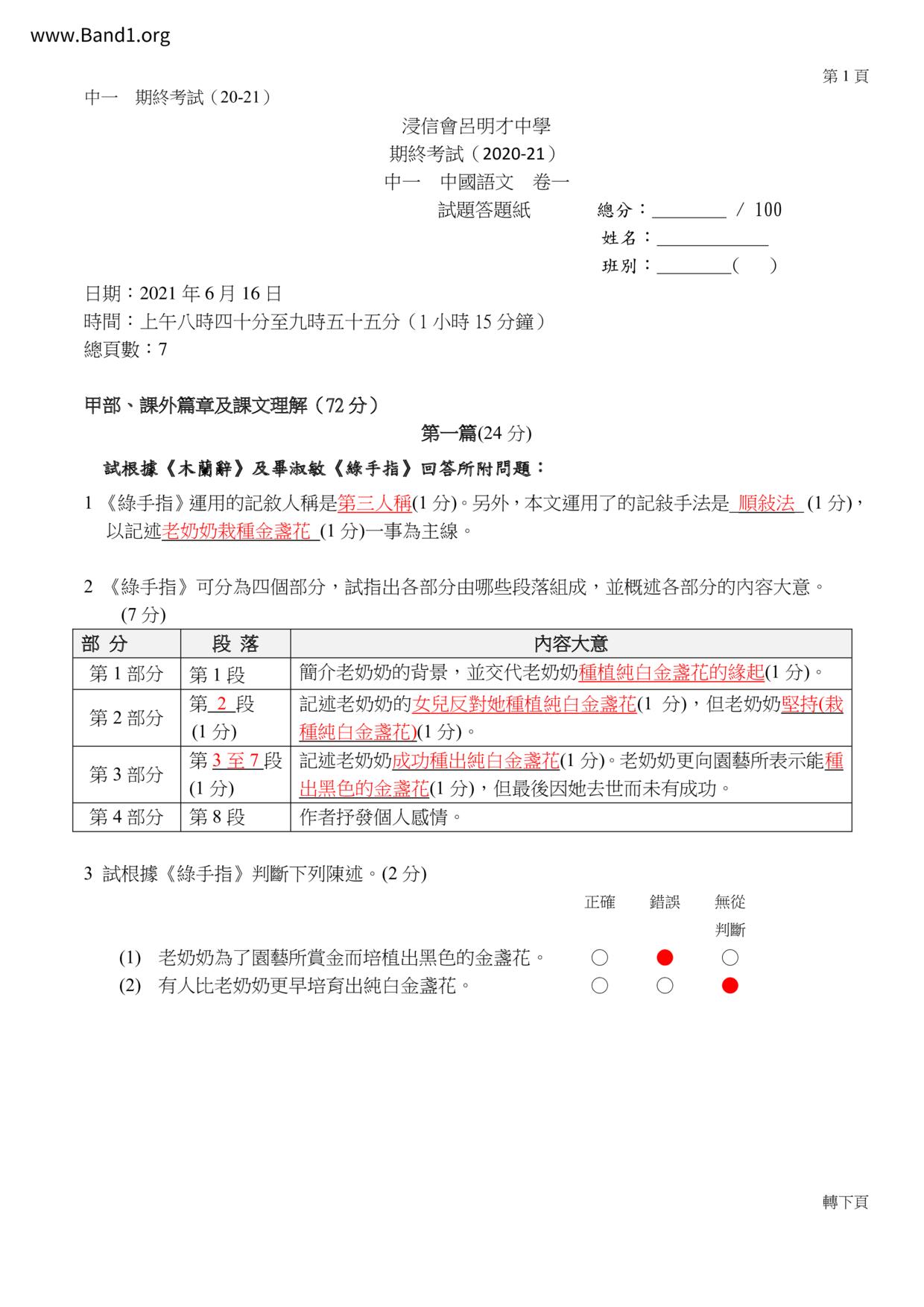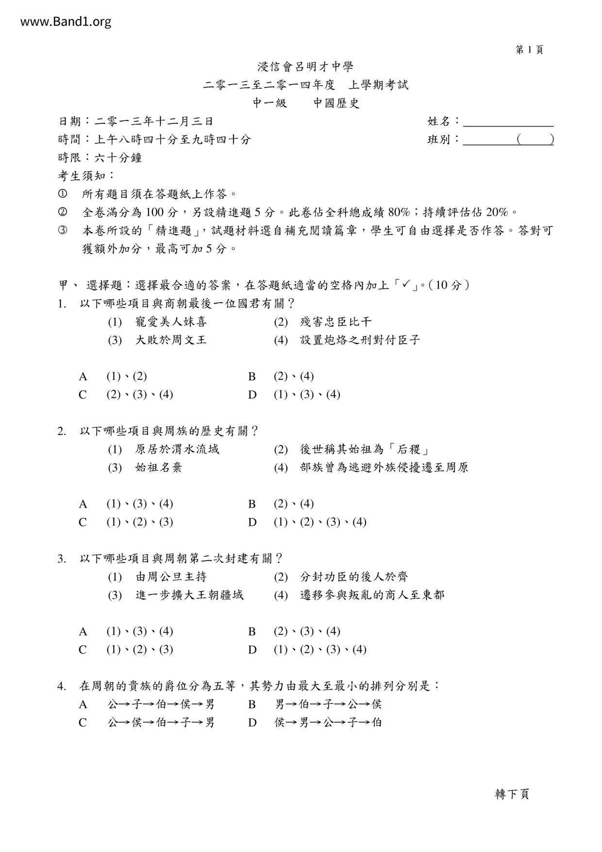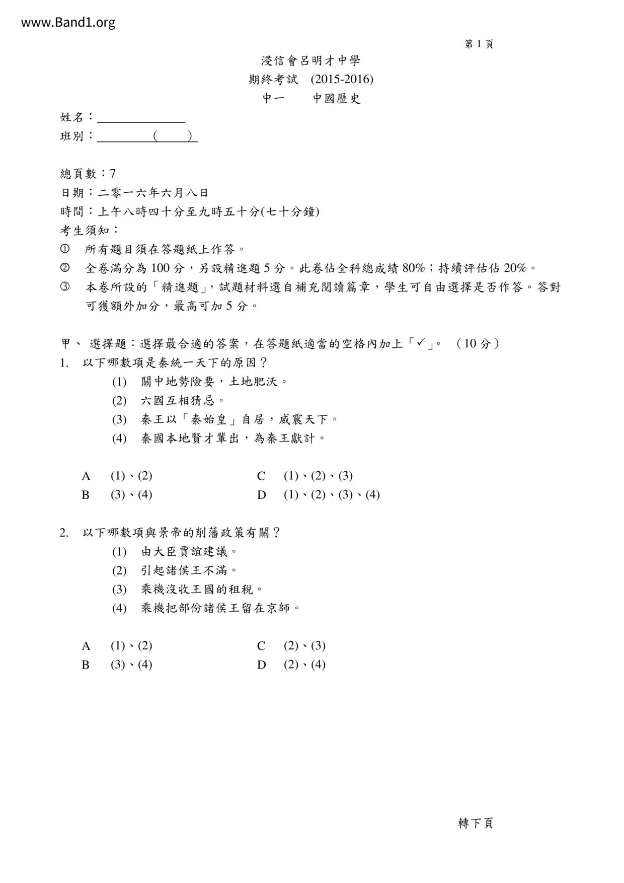 中一 其他科目 香港道教聯合會圓玄學院第一中學