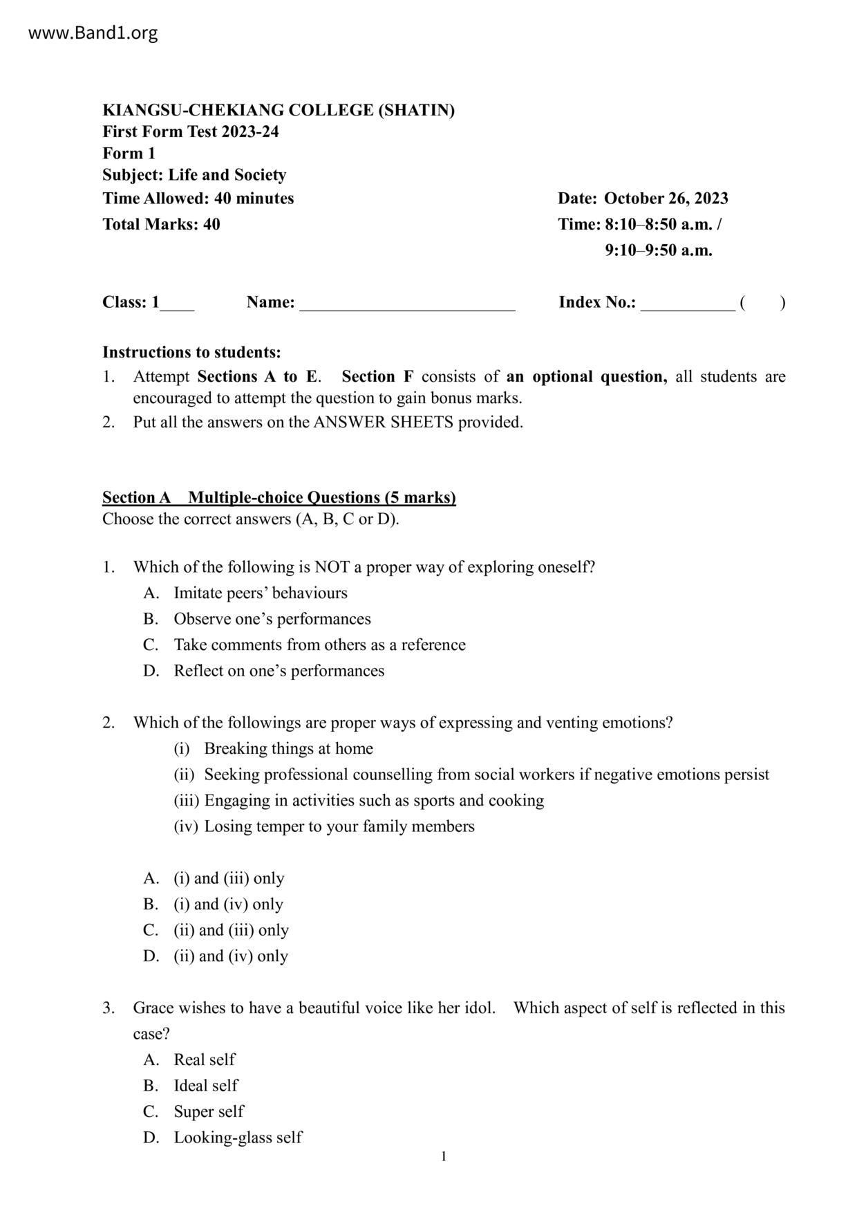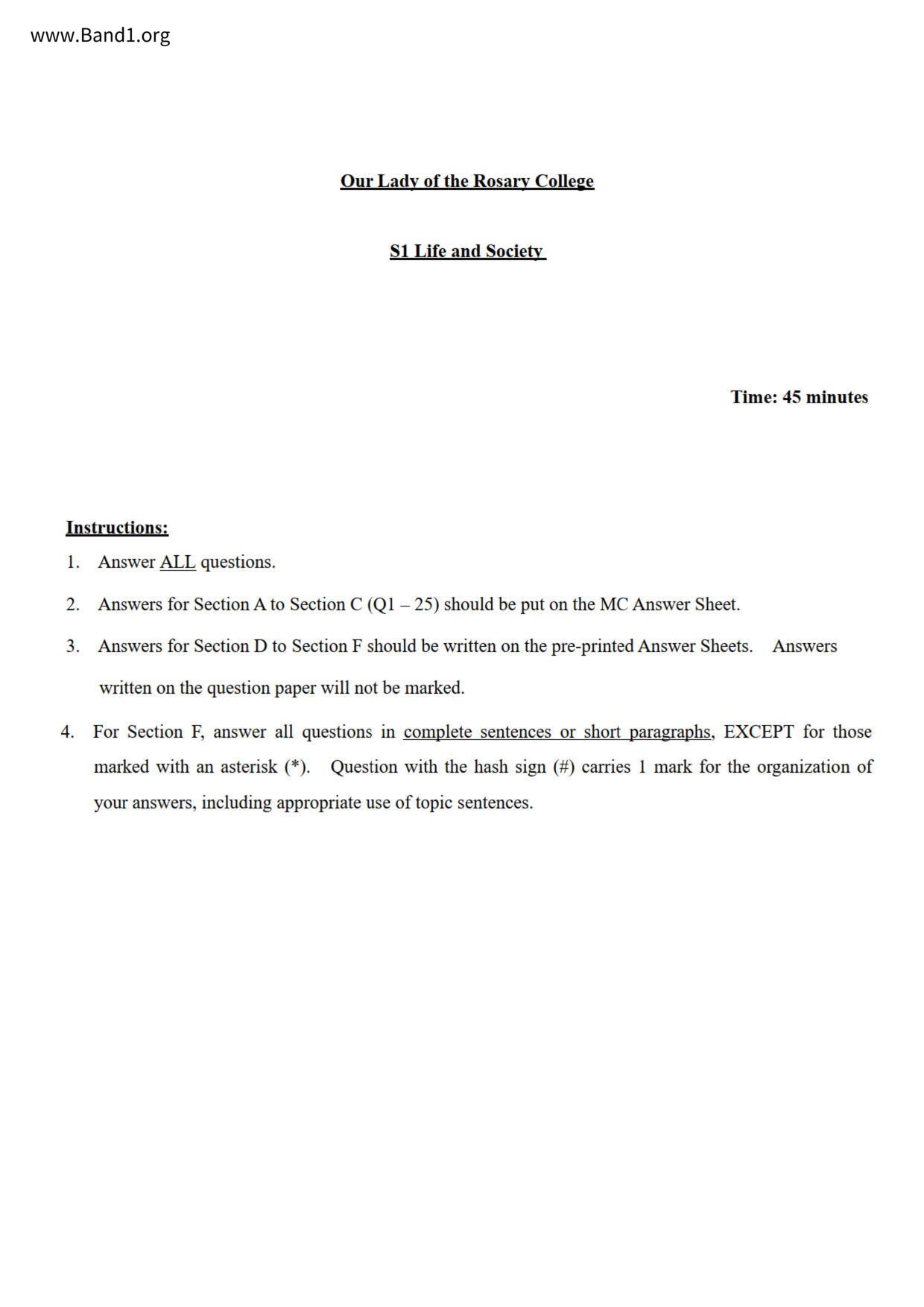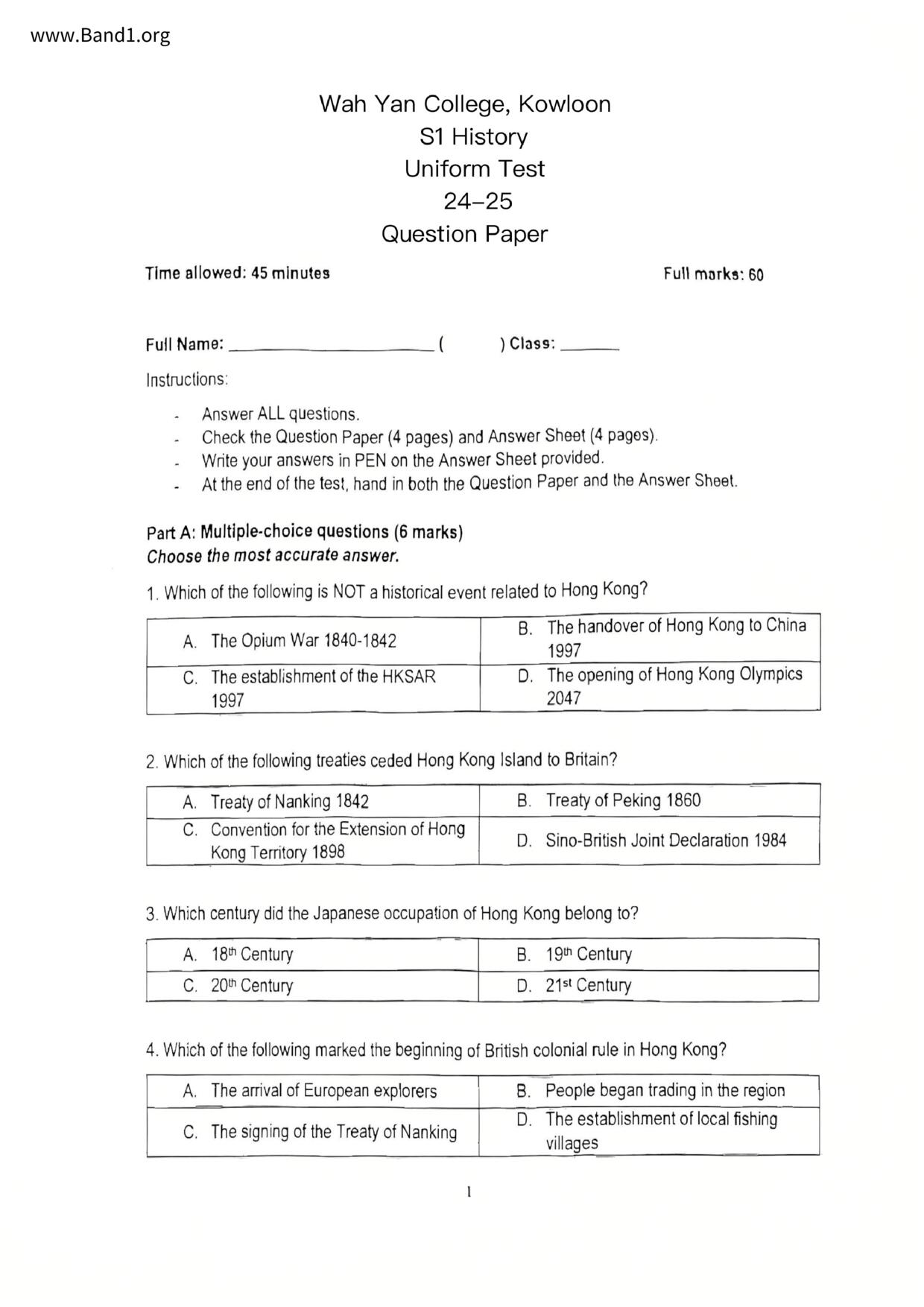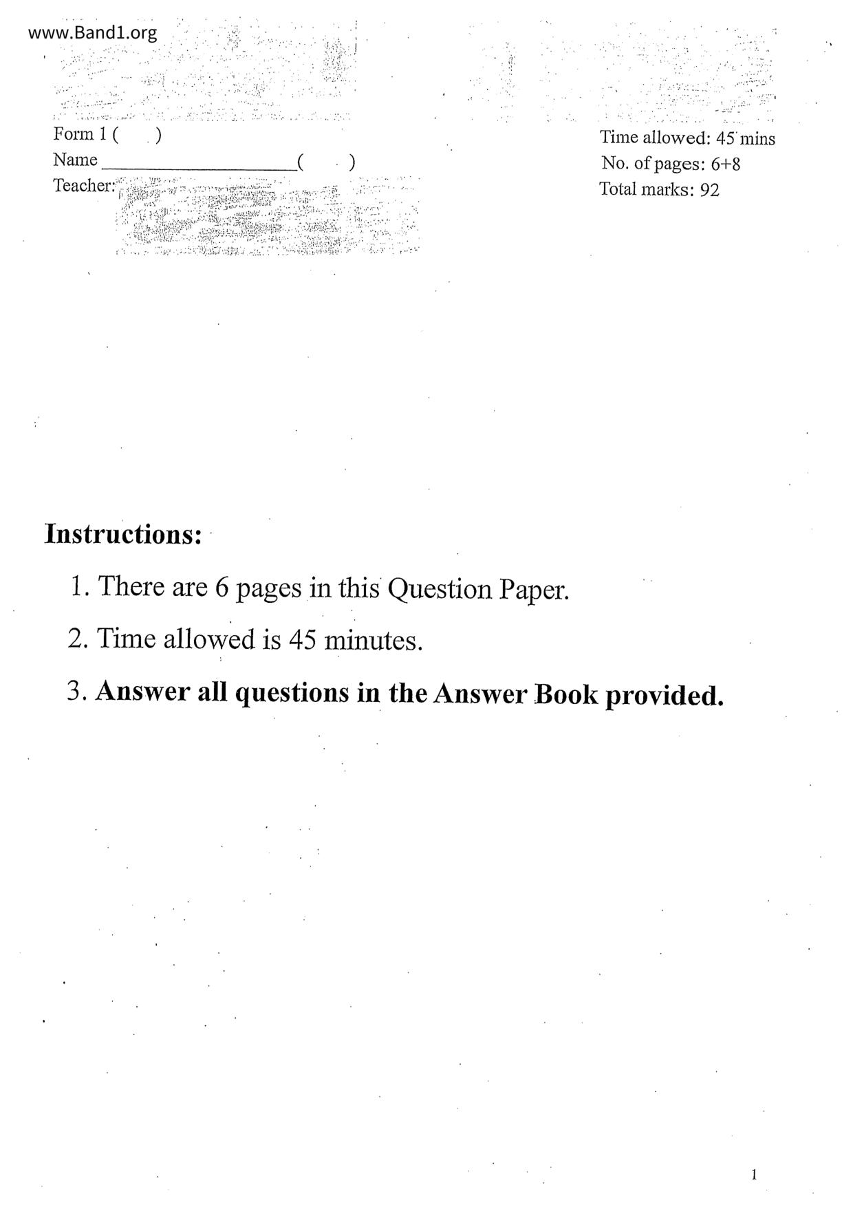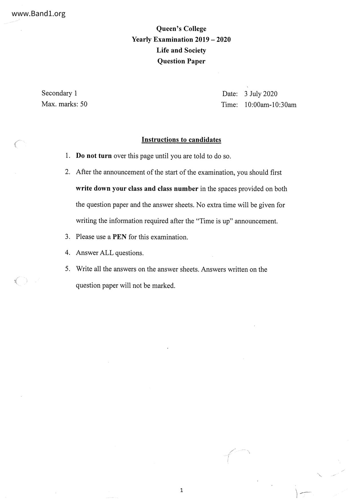 中一 其他科目 香港道教聯合會圓玄學院第一中學