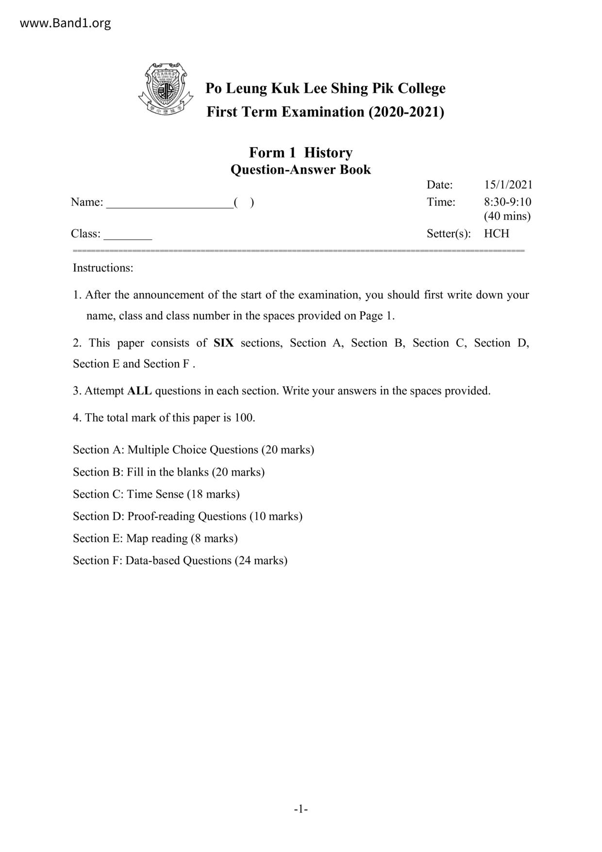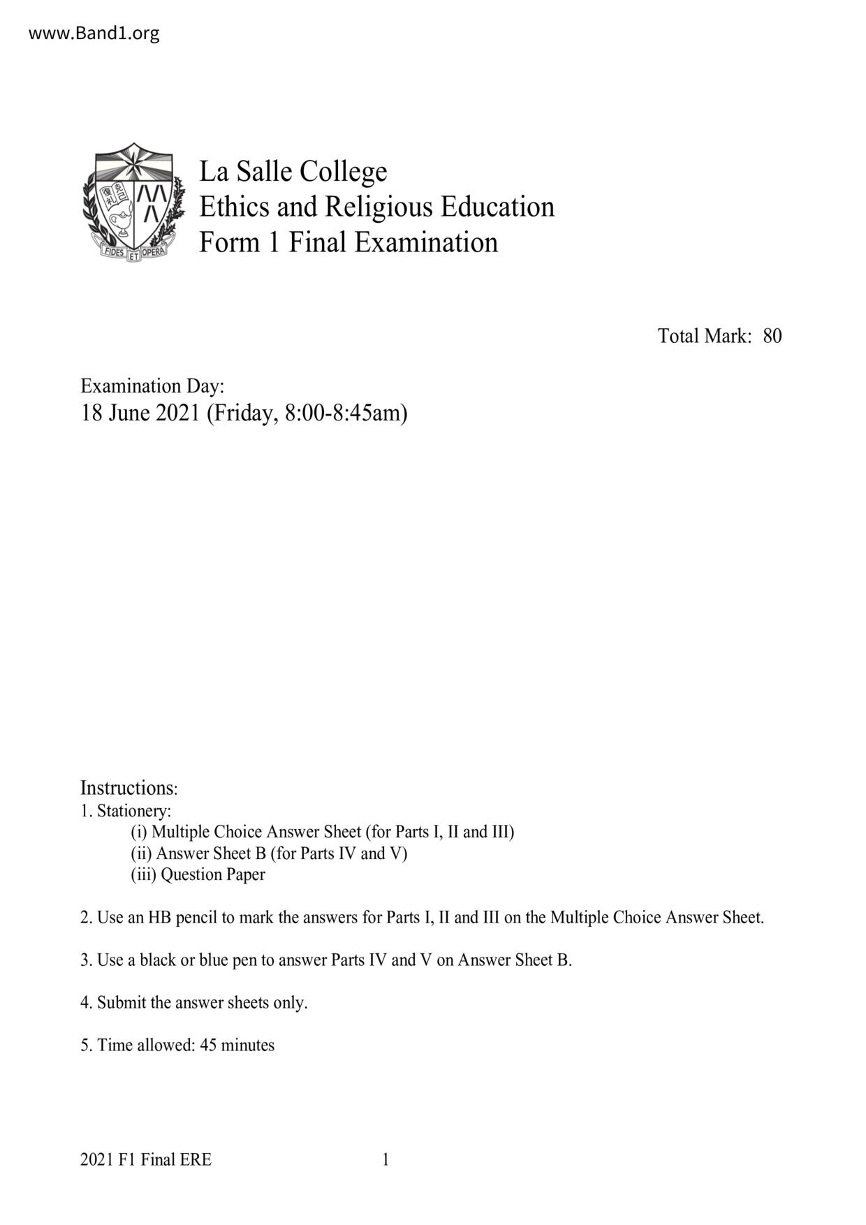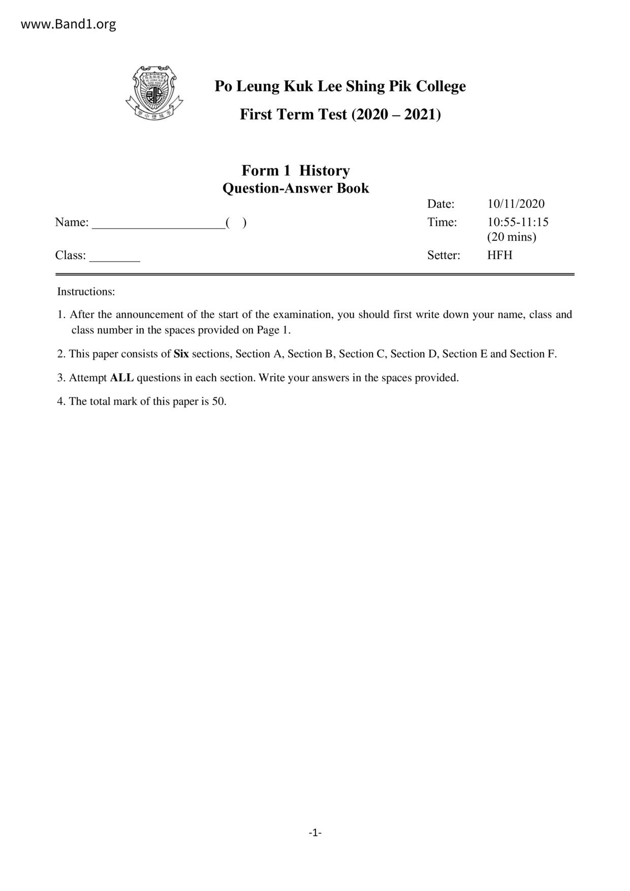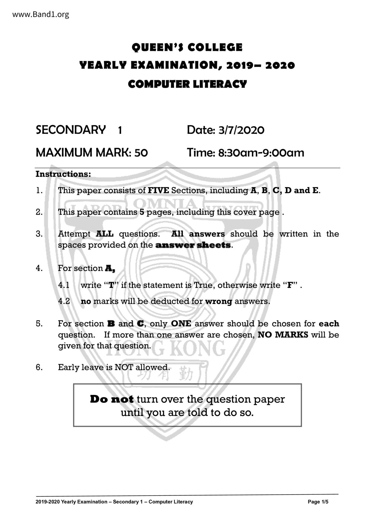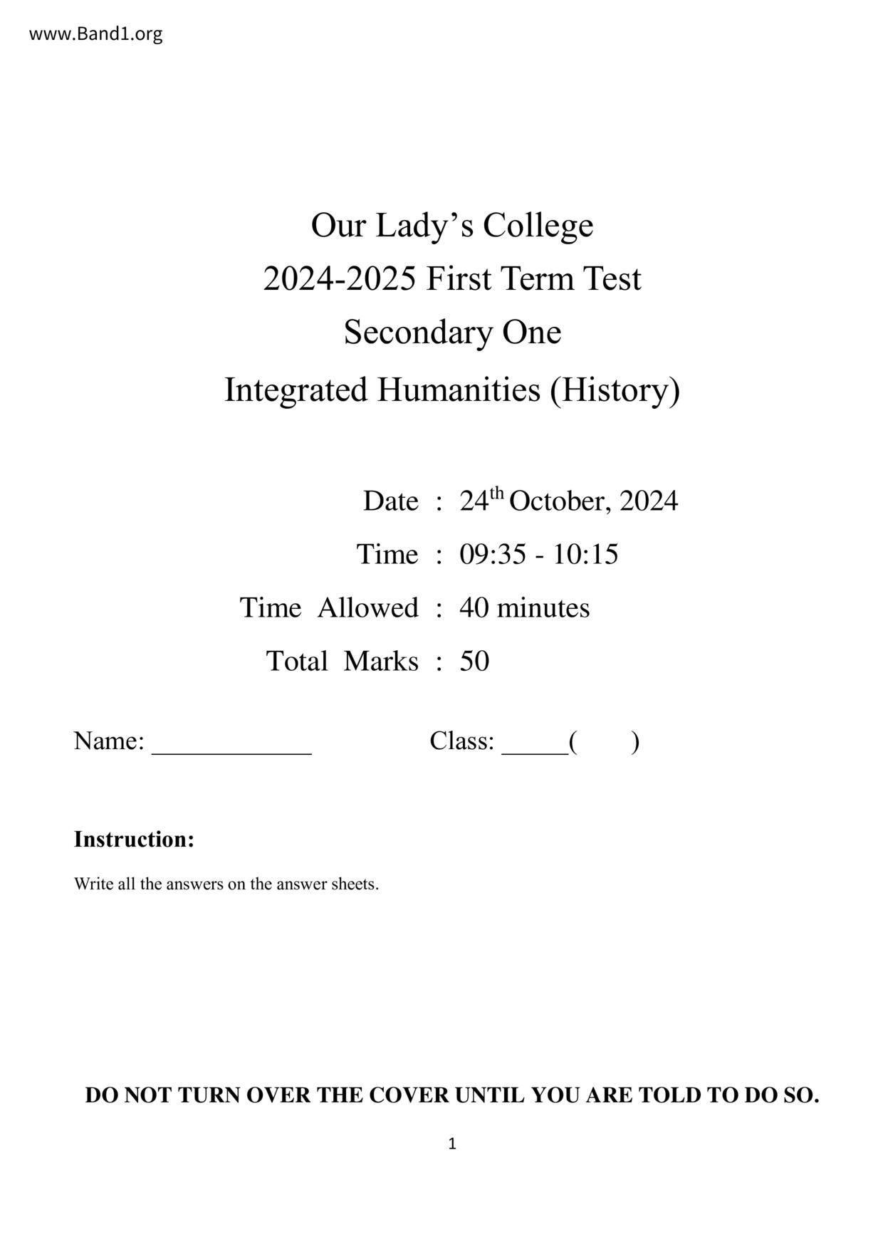 中一 其他科目 香港道教聯合會圓玄學院第一中學