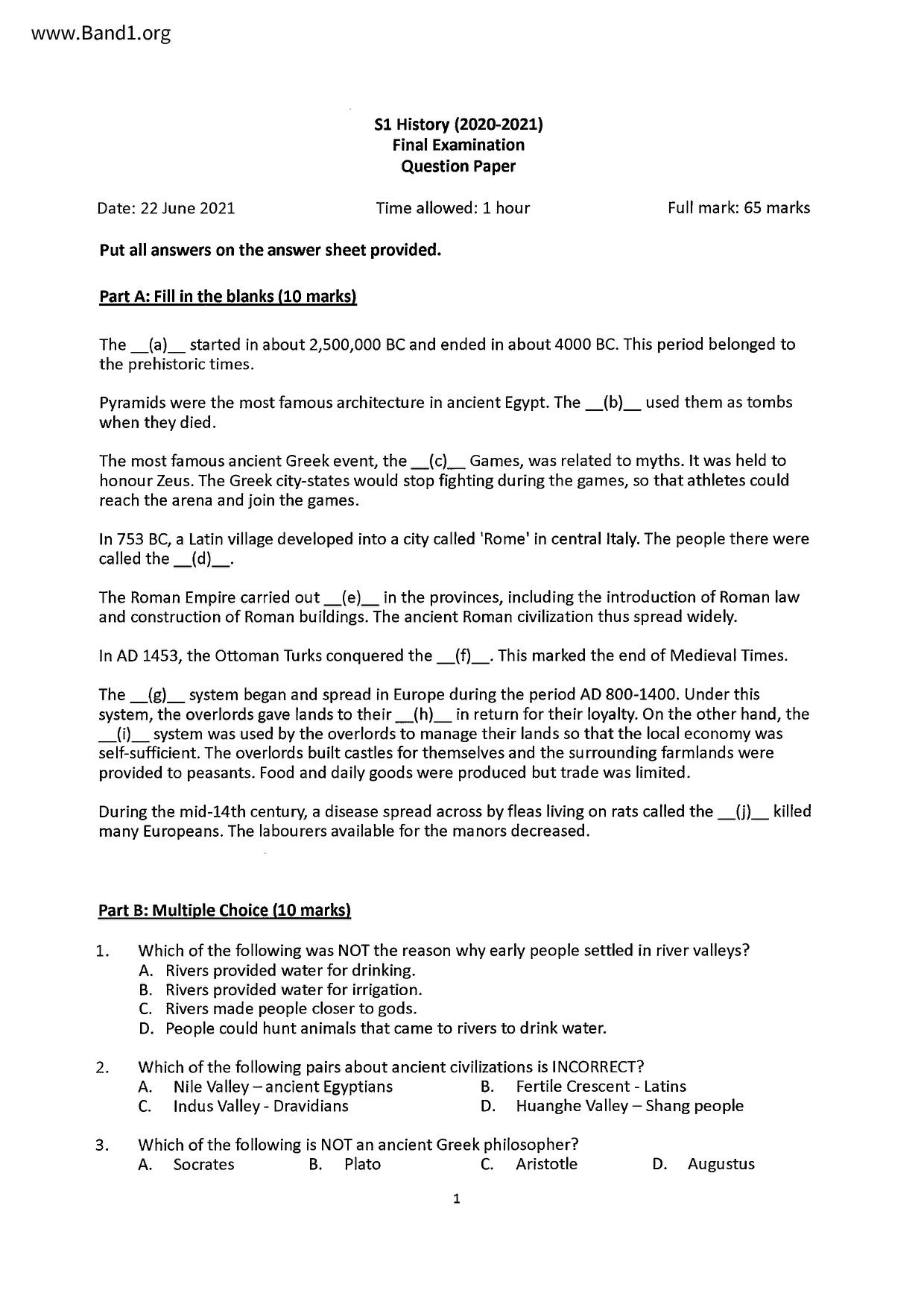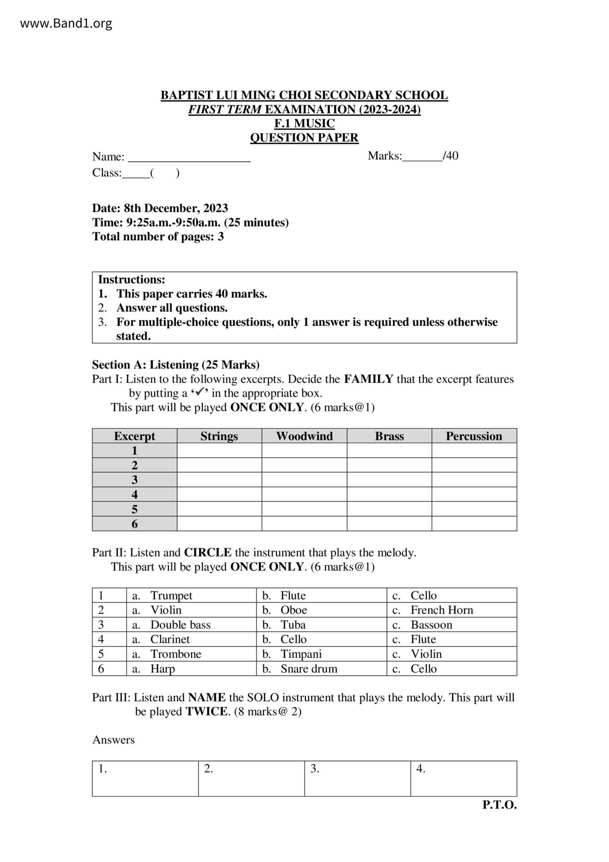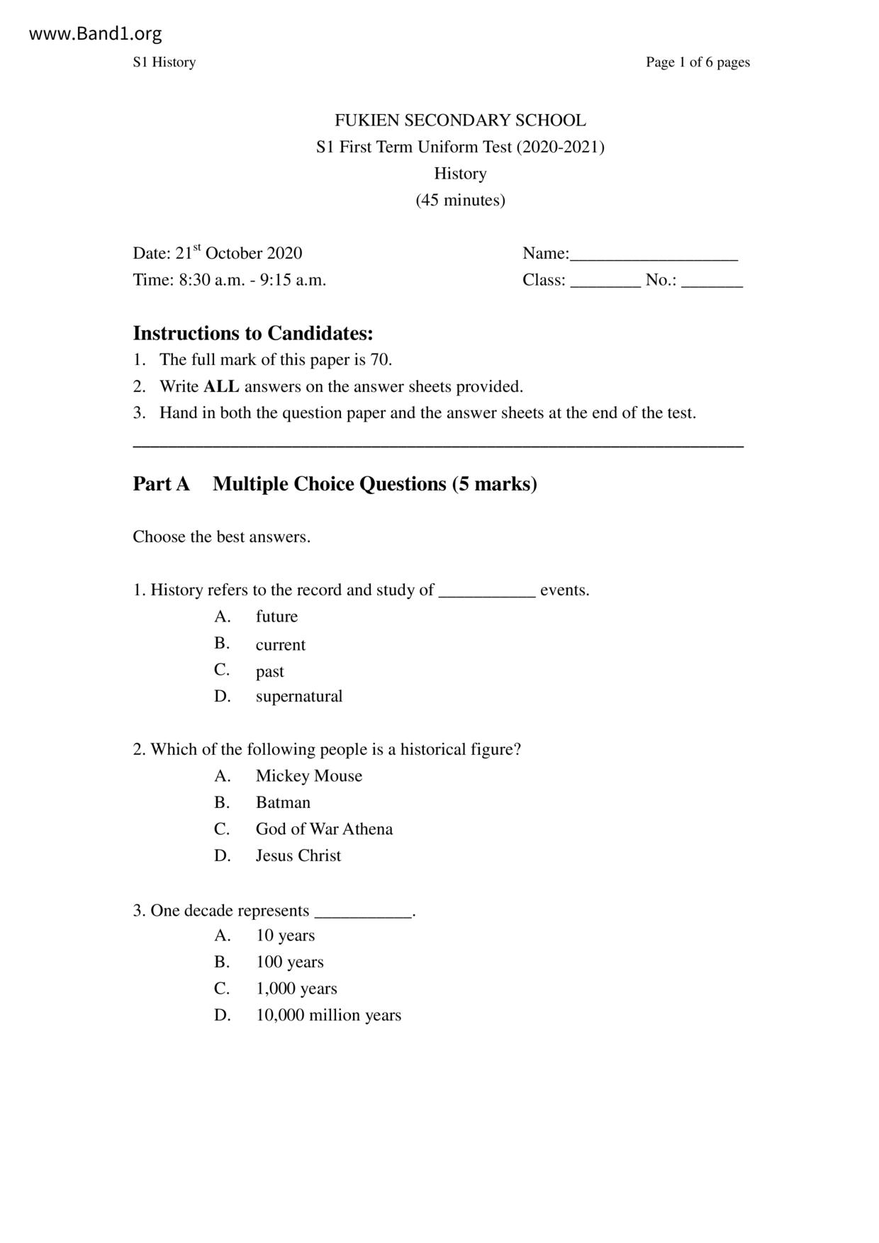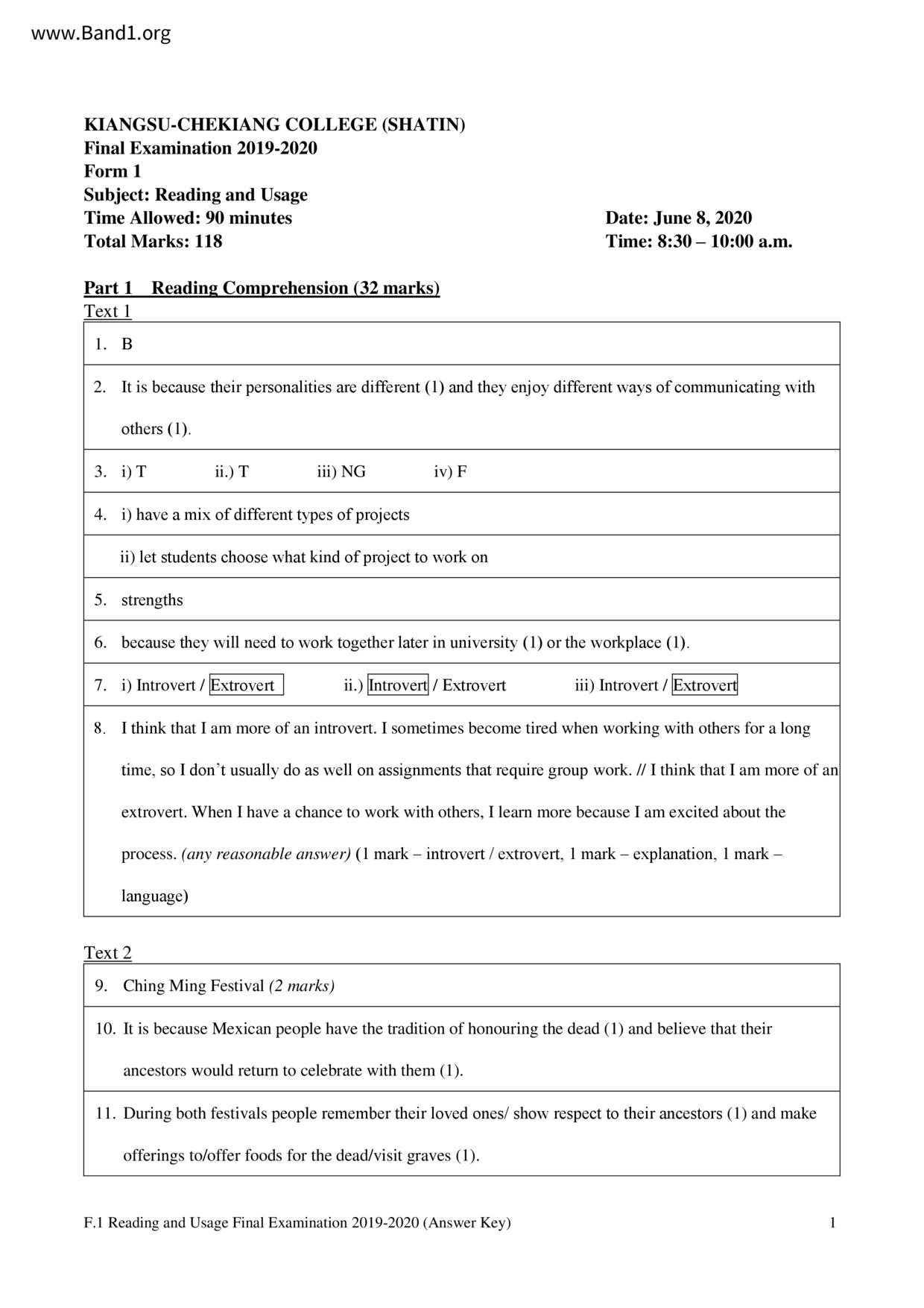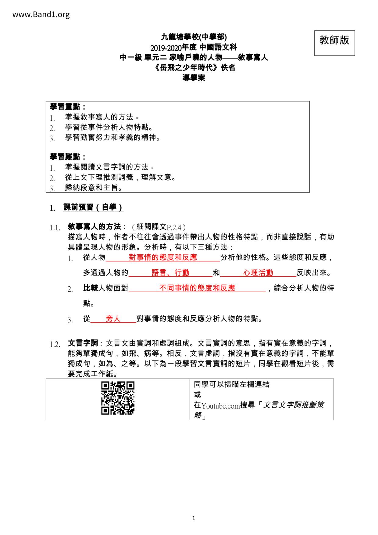 中一 其他科目 香港道教聯合會圓玄學院第一中學
