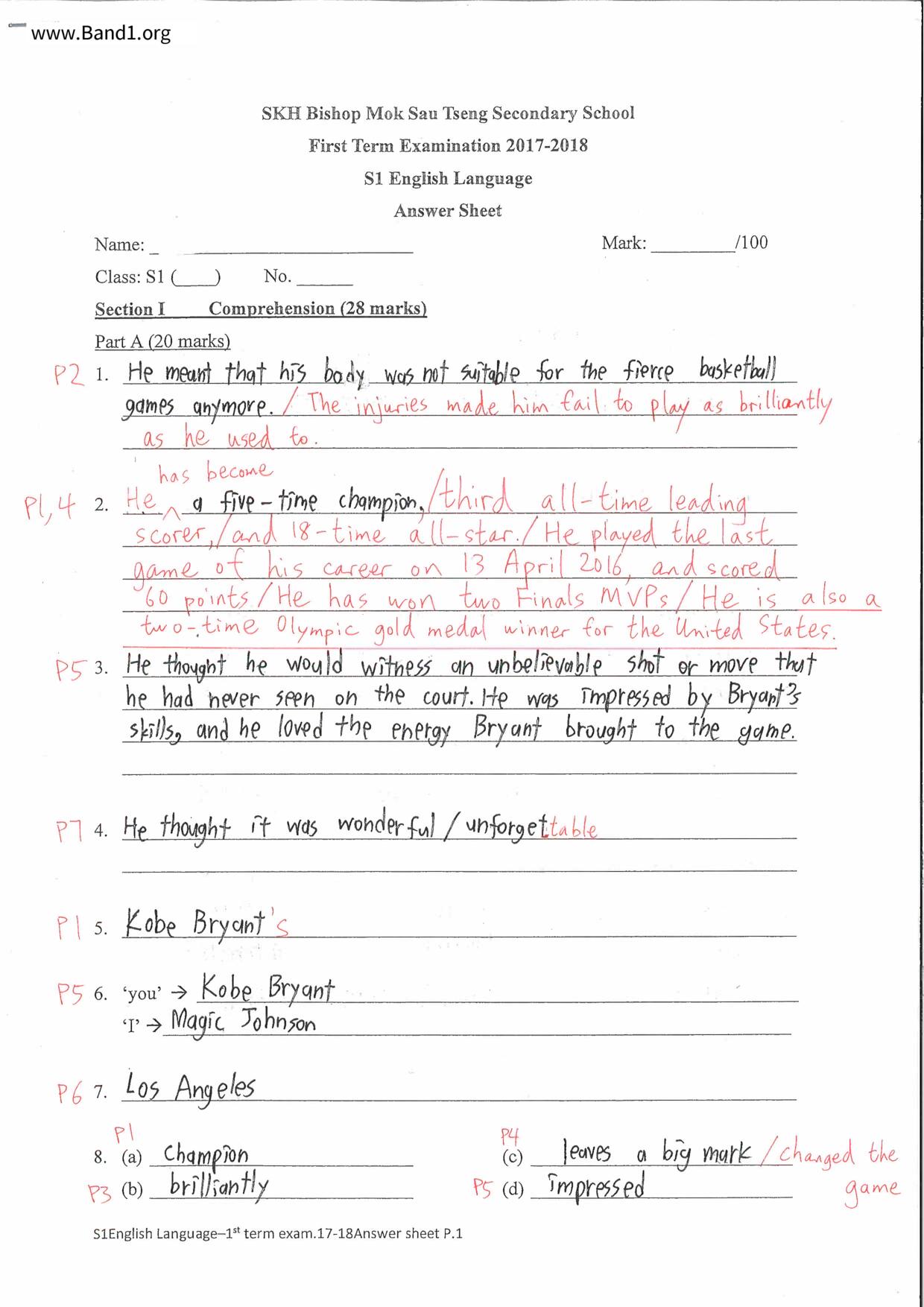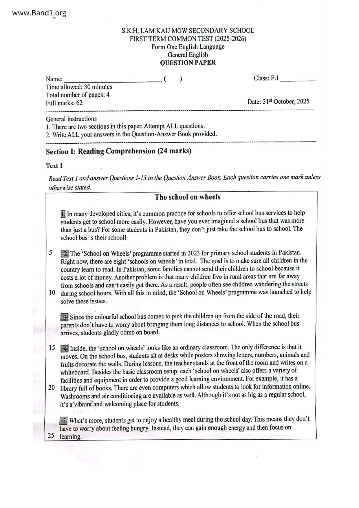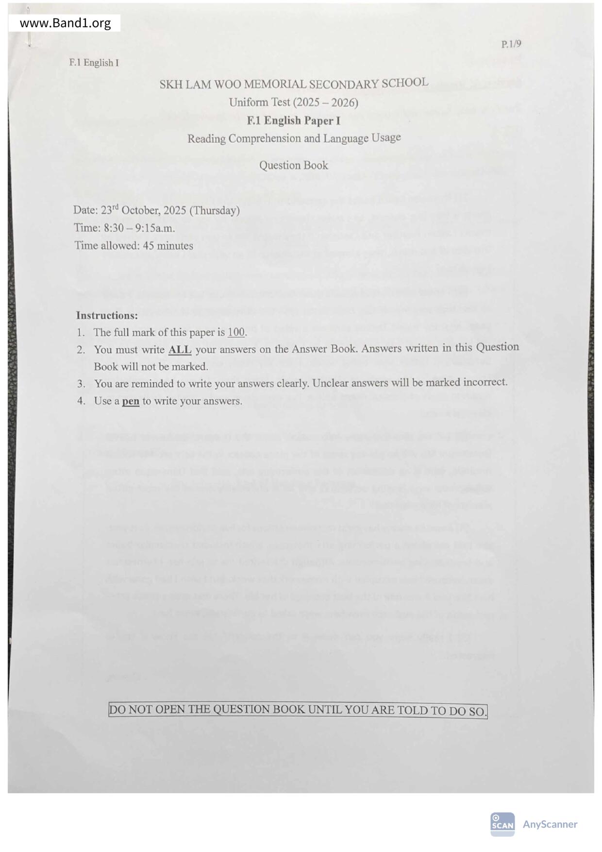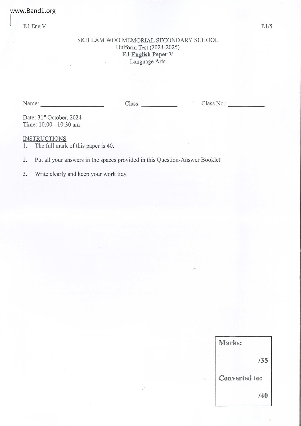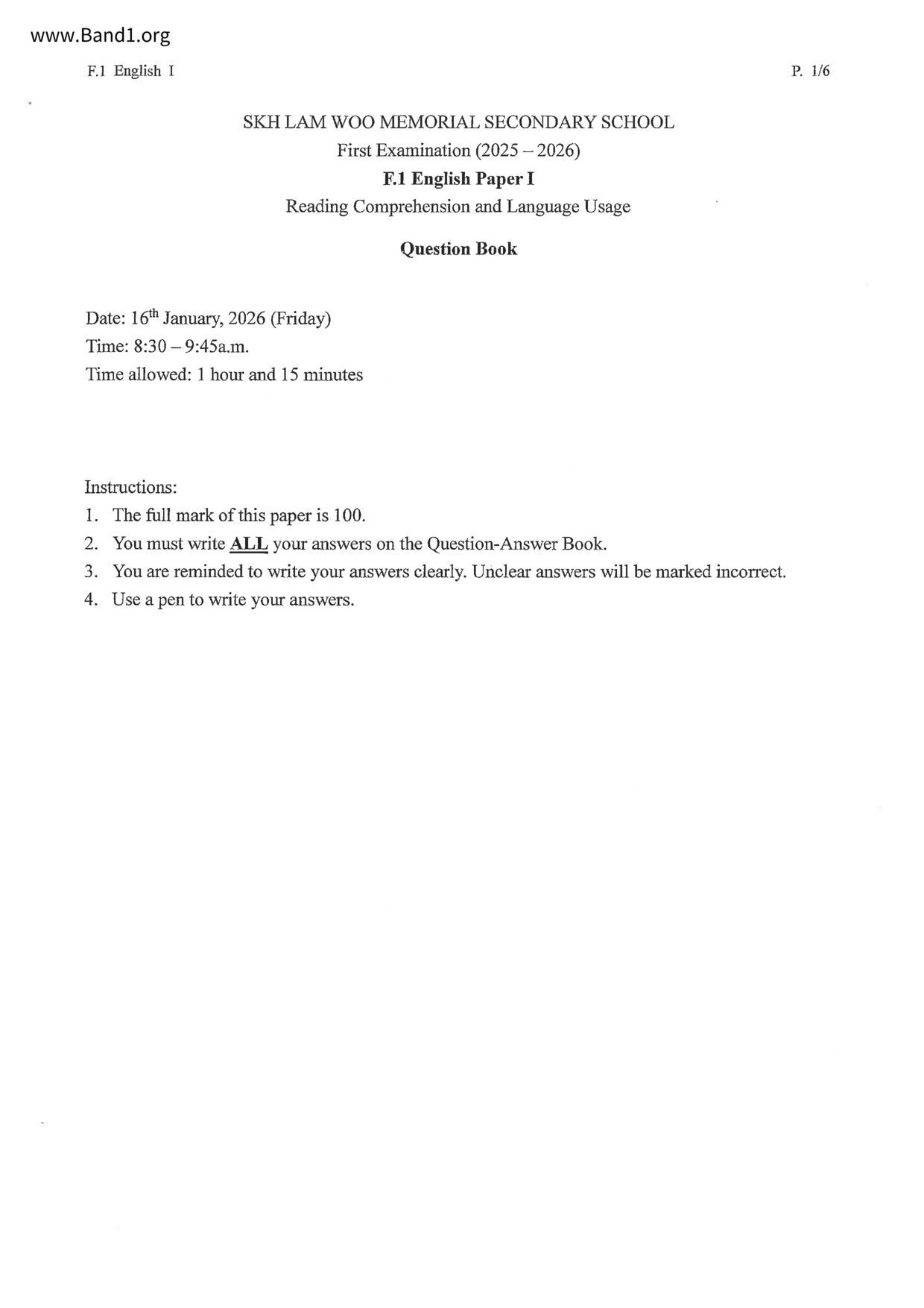 中一 英文 SKH Lam Woo Memorial Secondary School