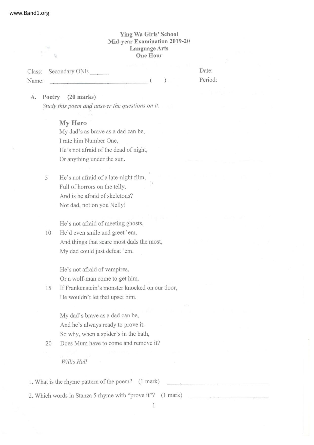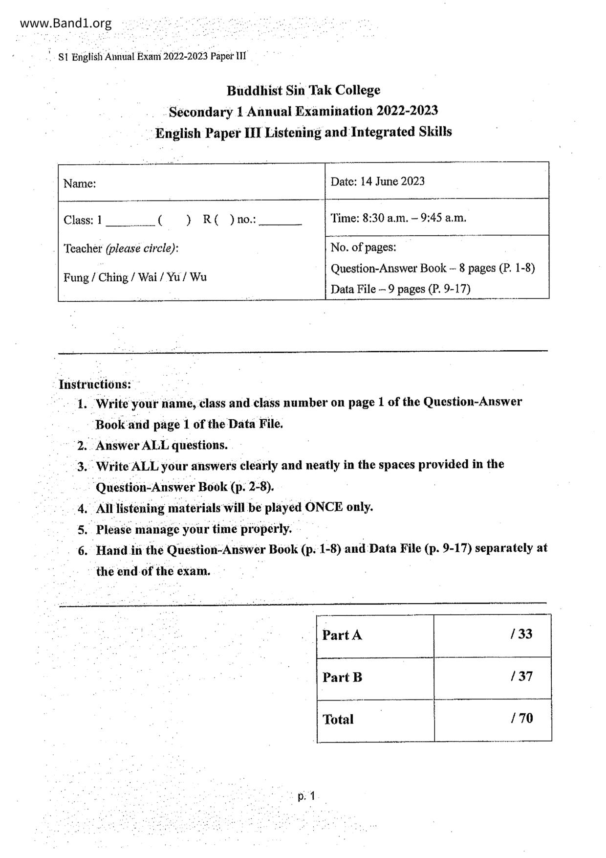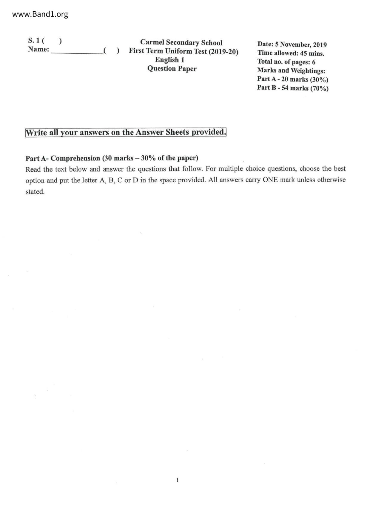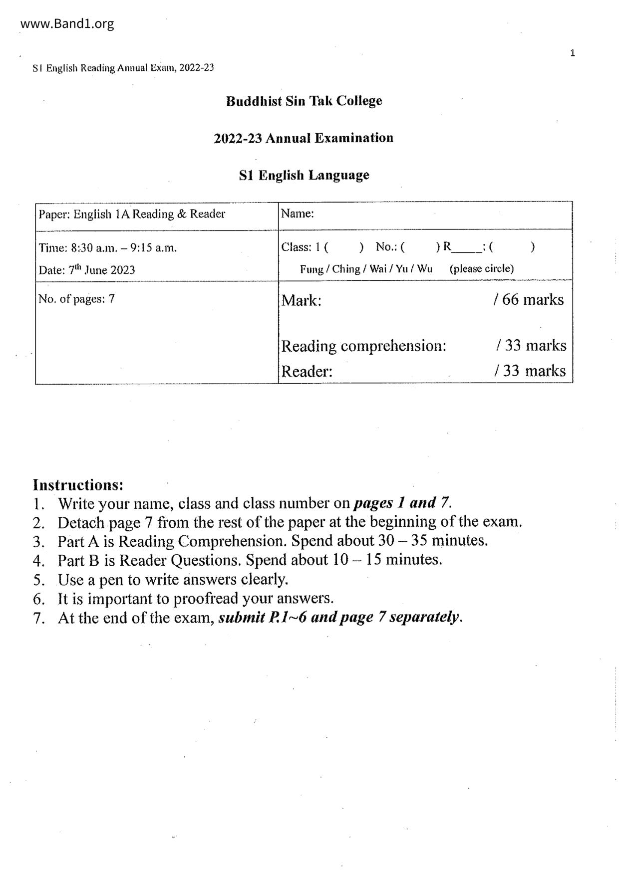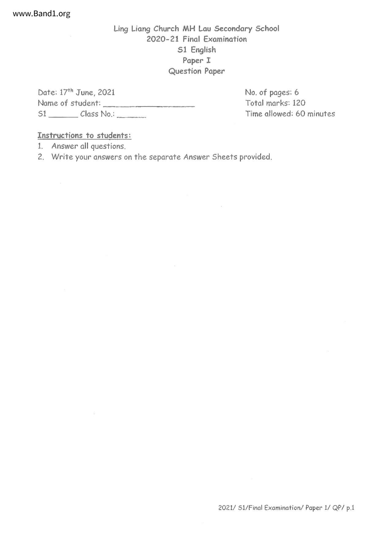 中一 英文 SKH Lam Woo Memorial Secondary School