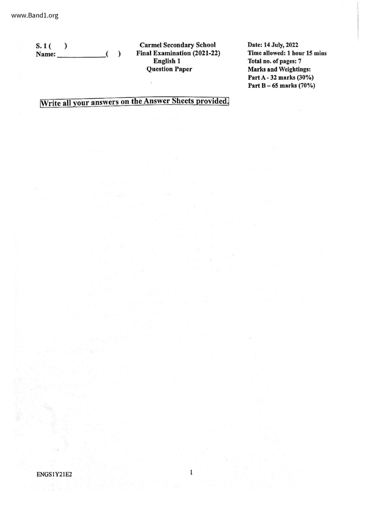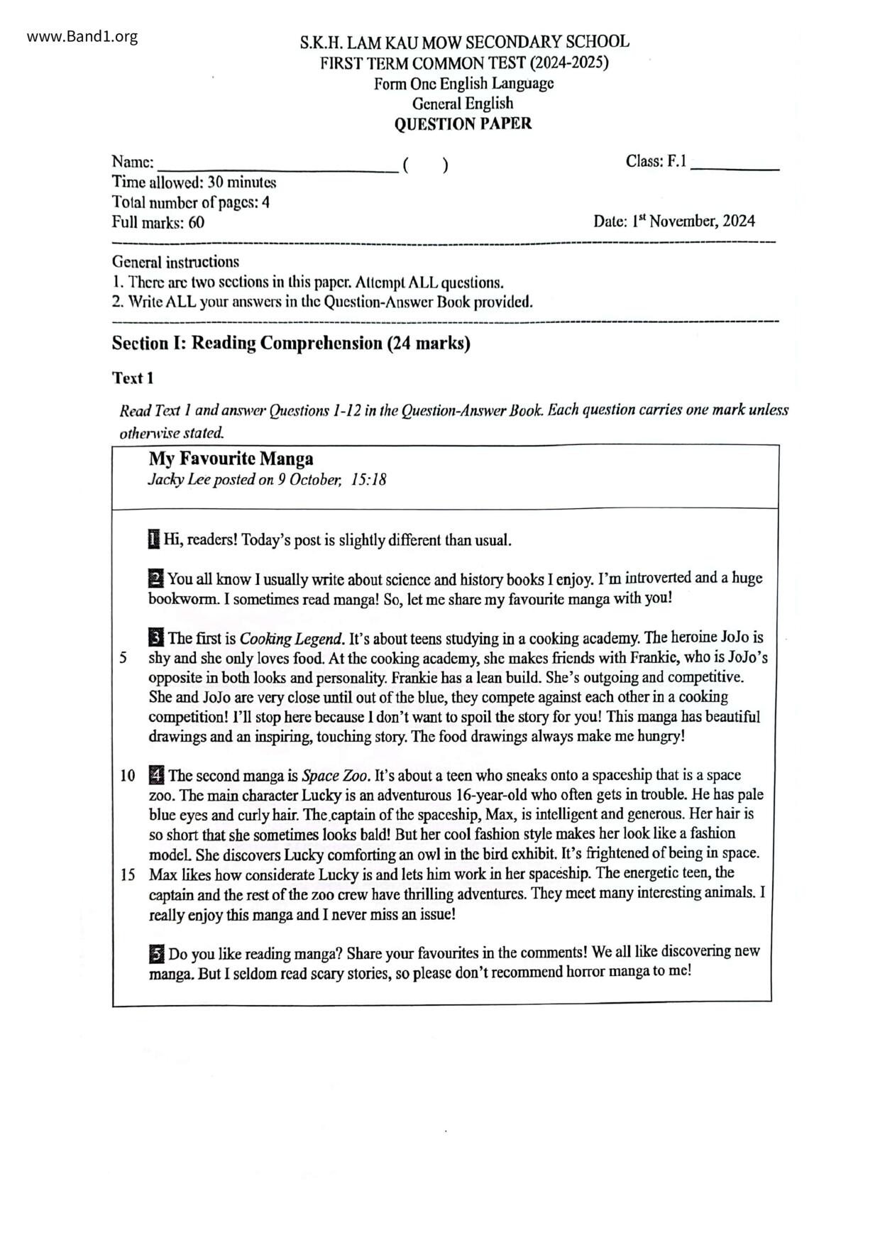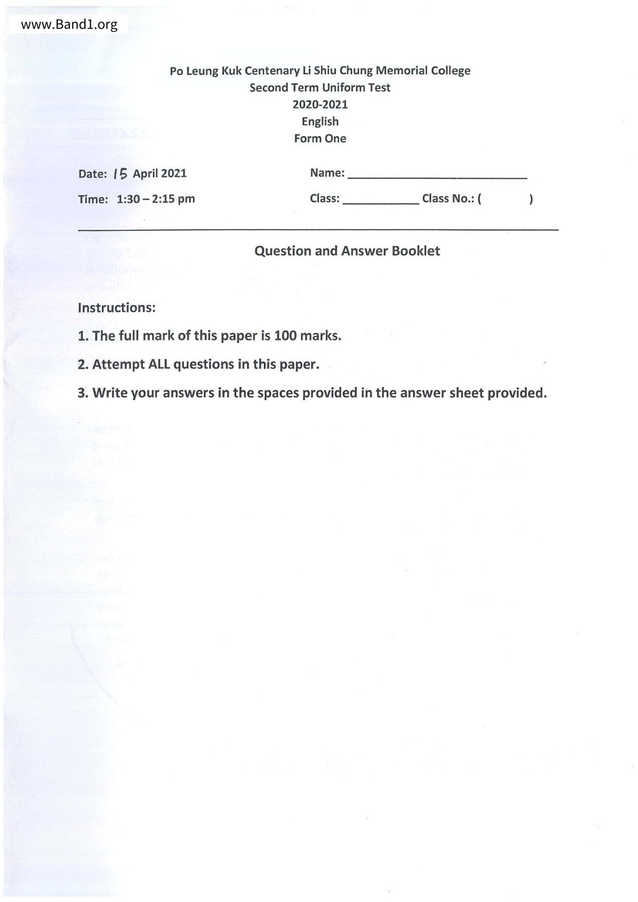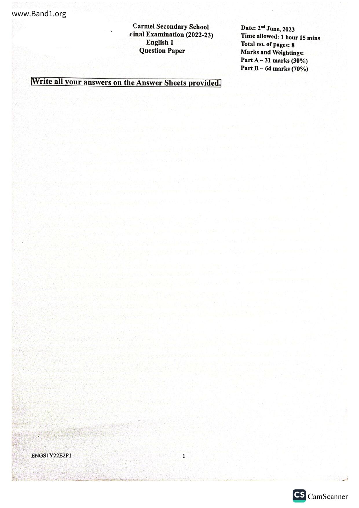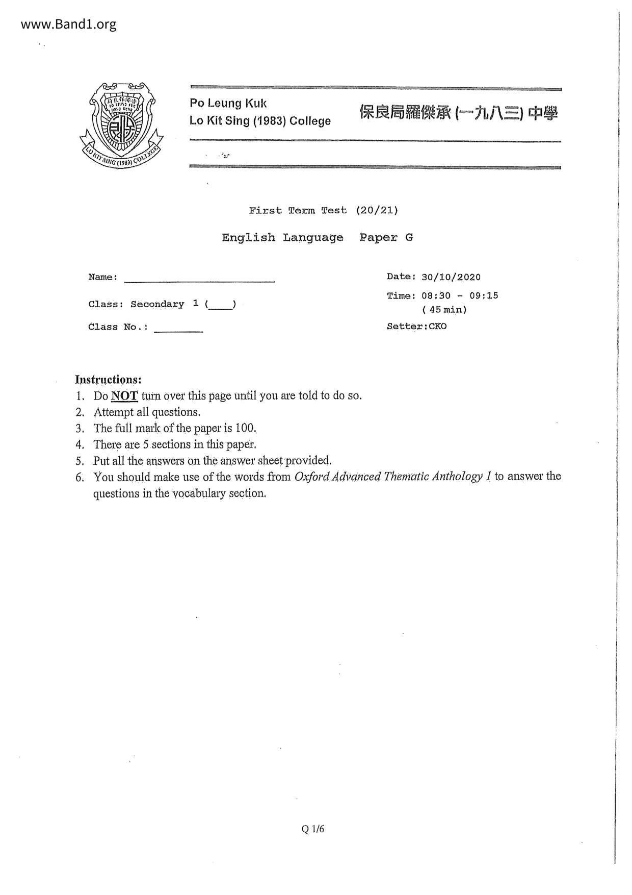 中一 英文 SKH Lam Woo Memorial Secondary School