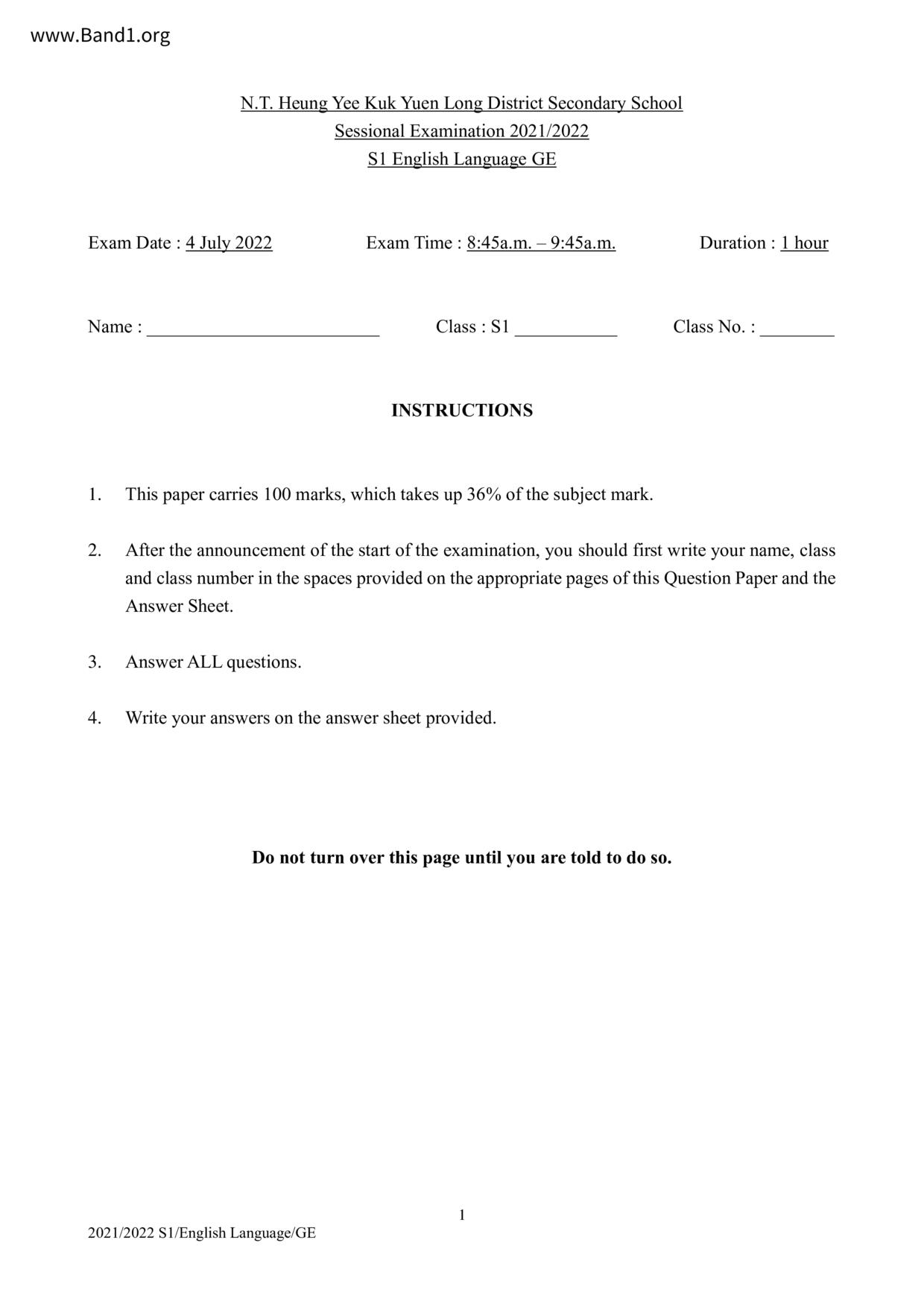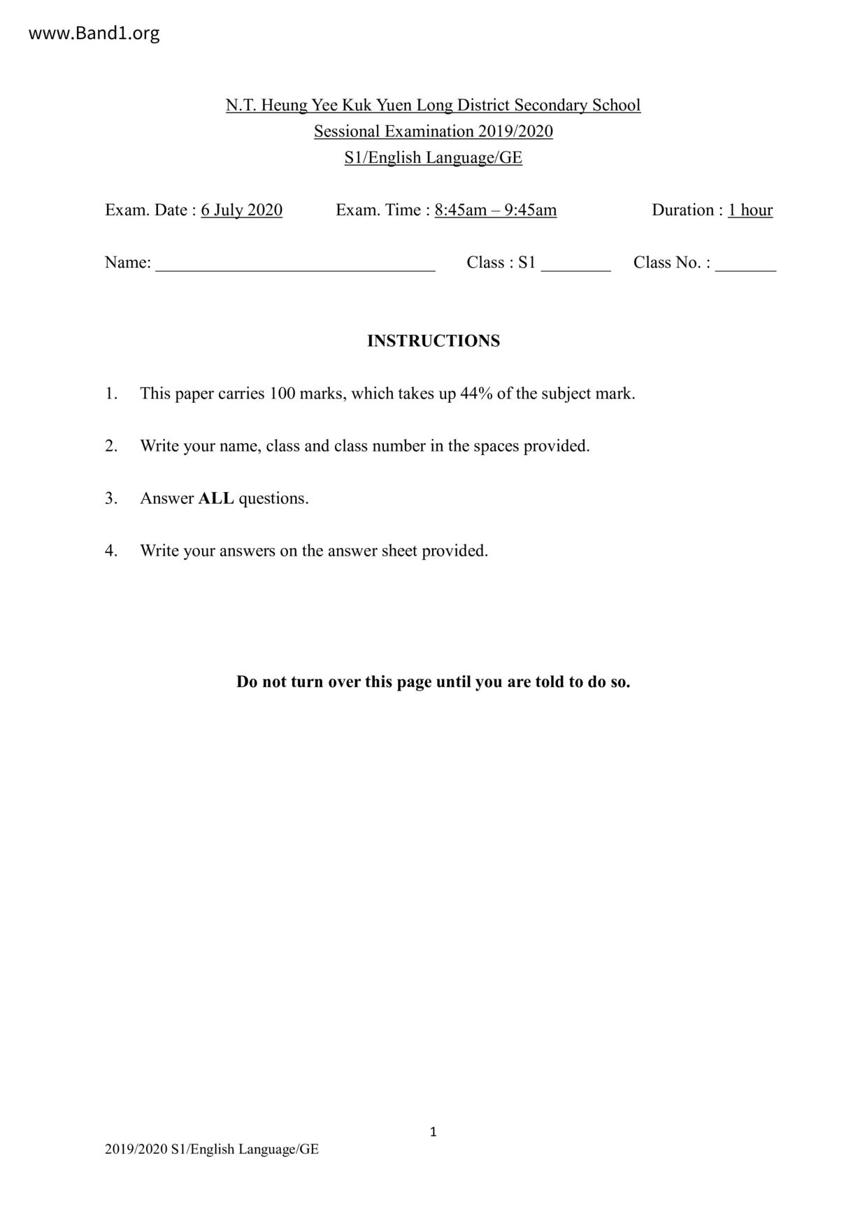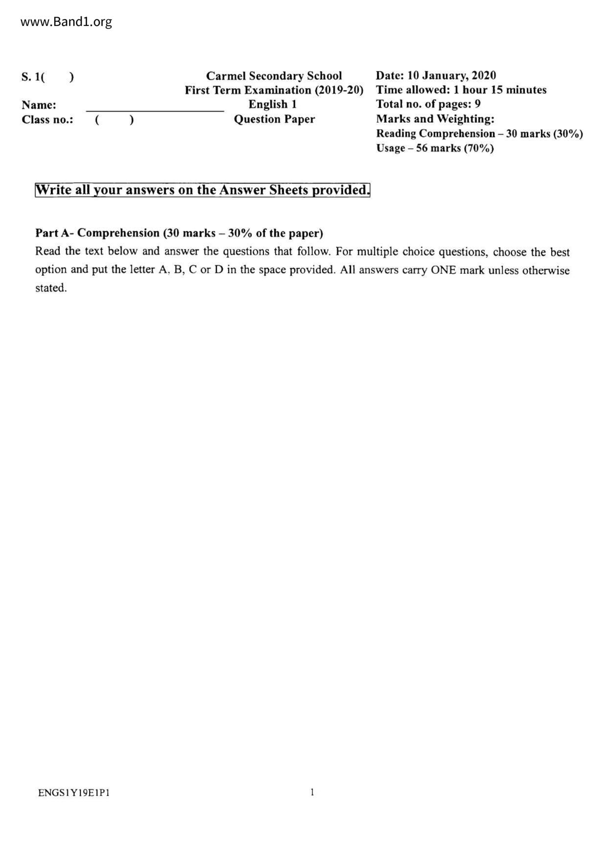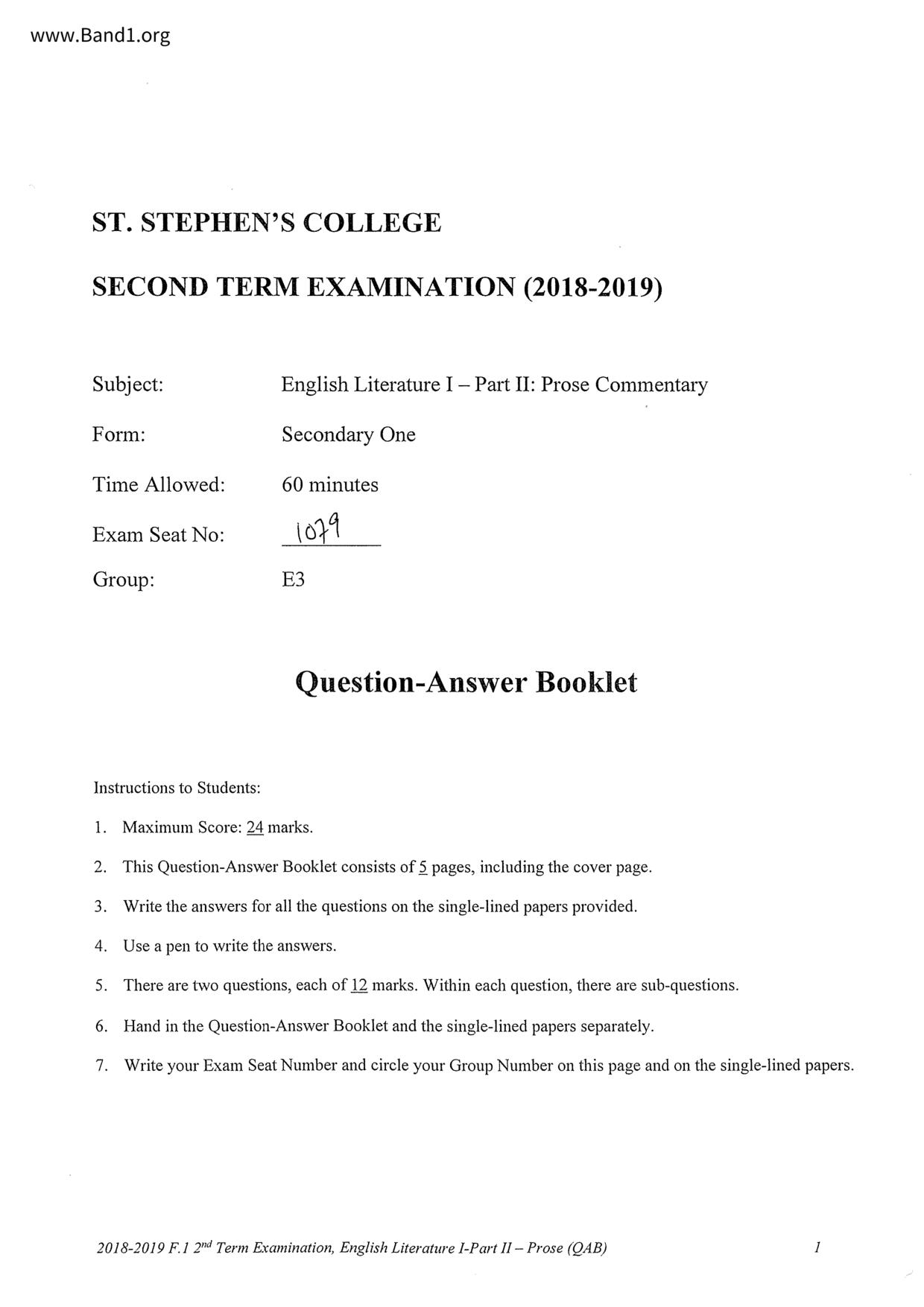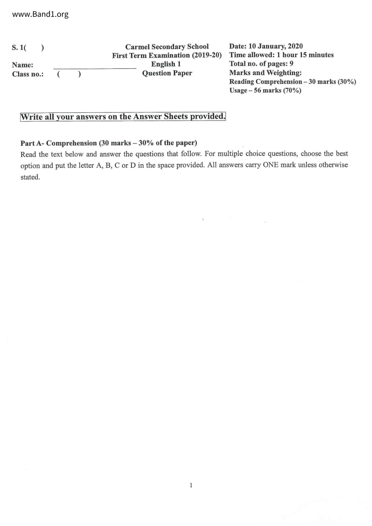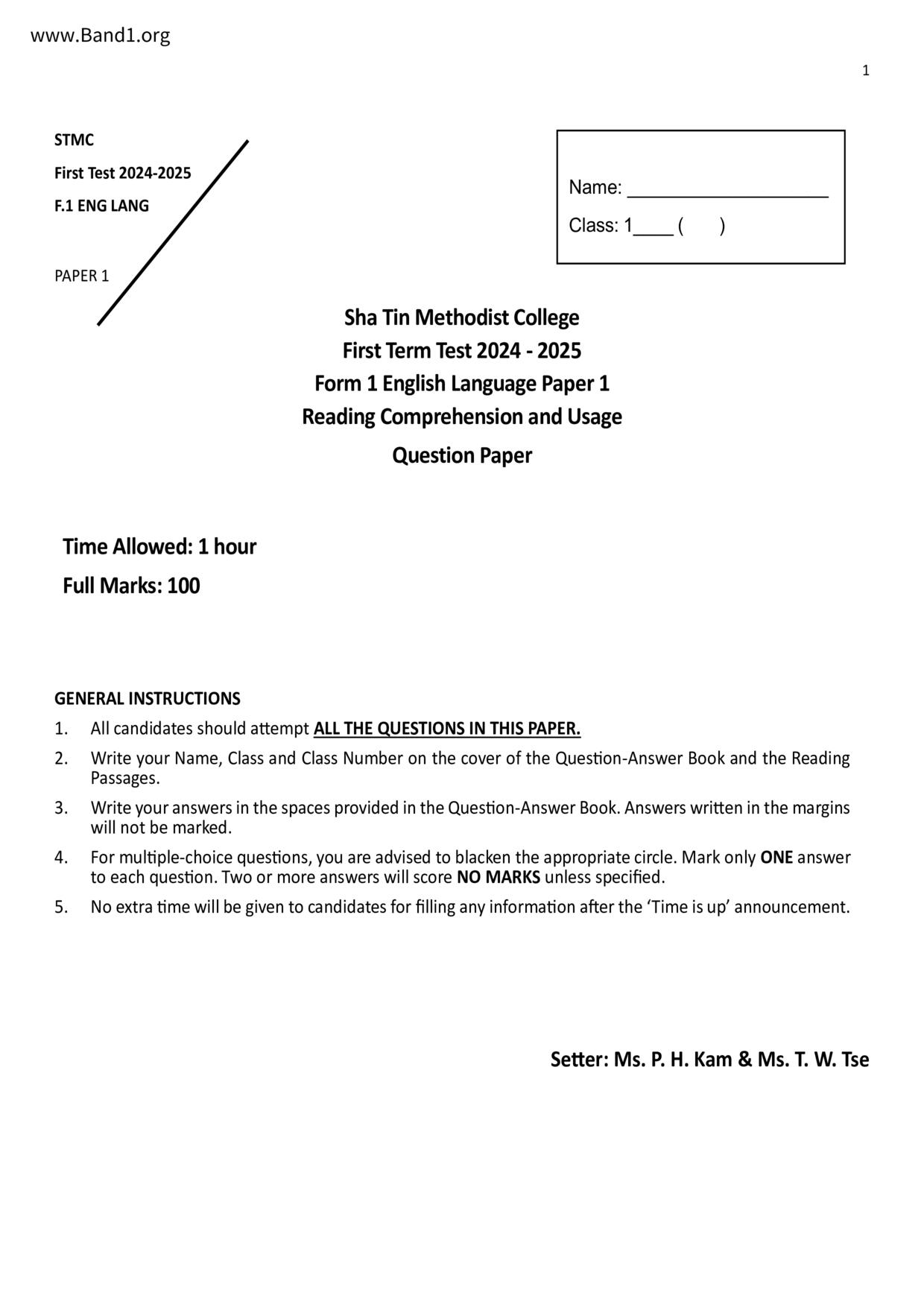 中一 英文 SKH Lam Woo Memorial Secondary School