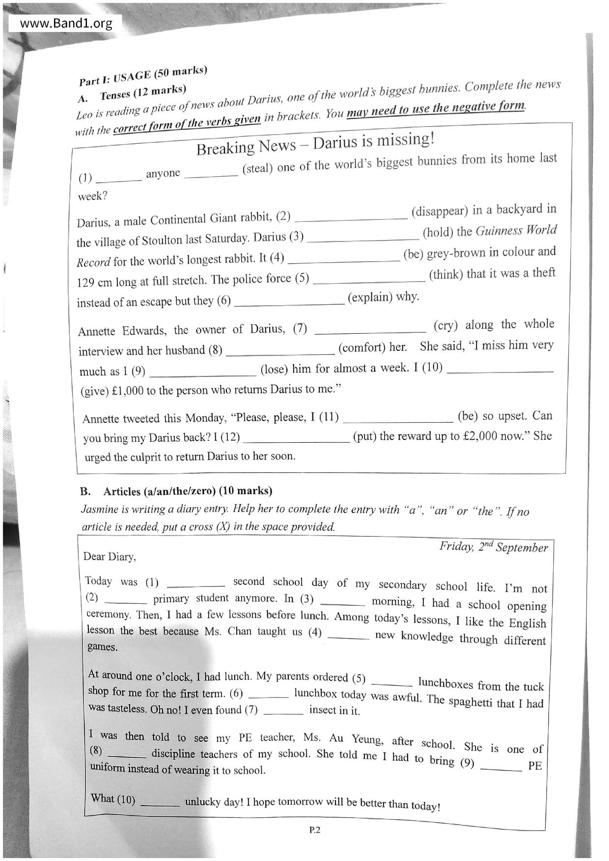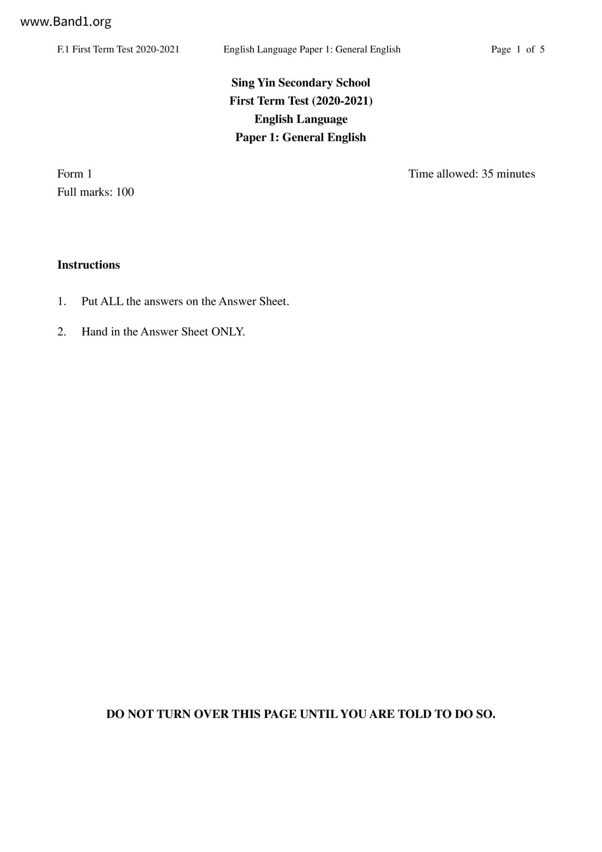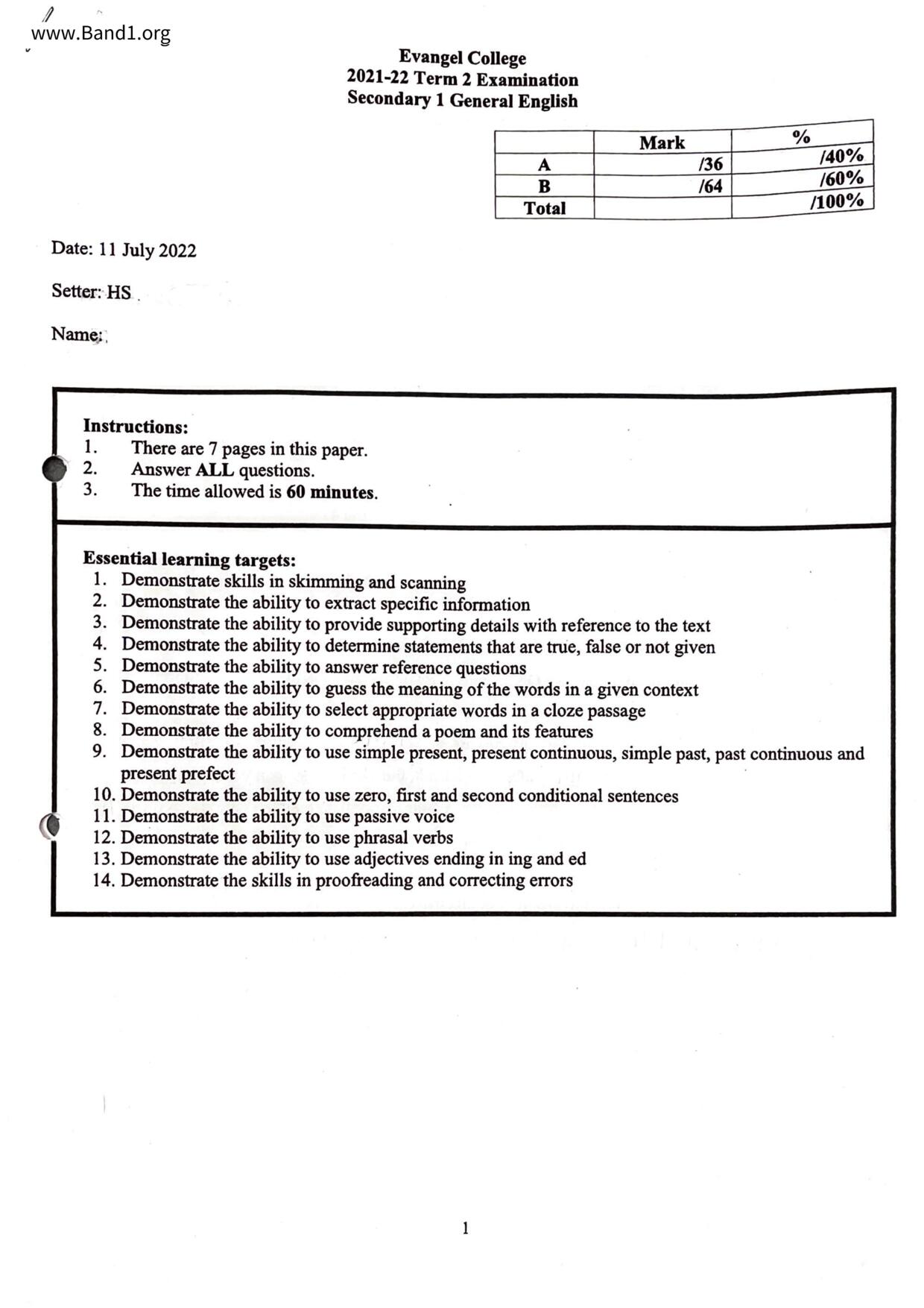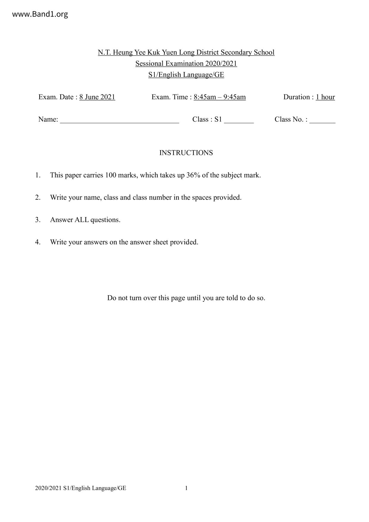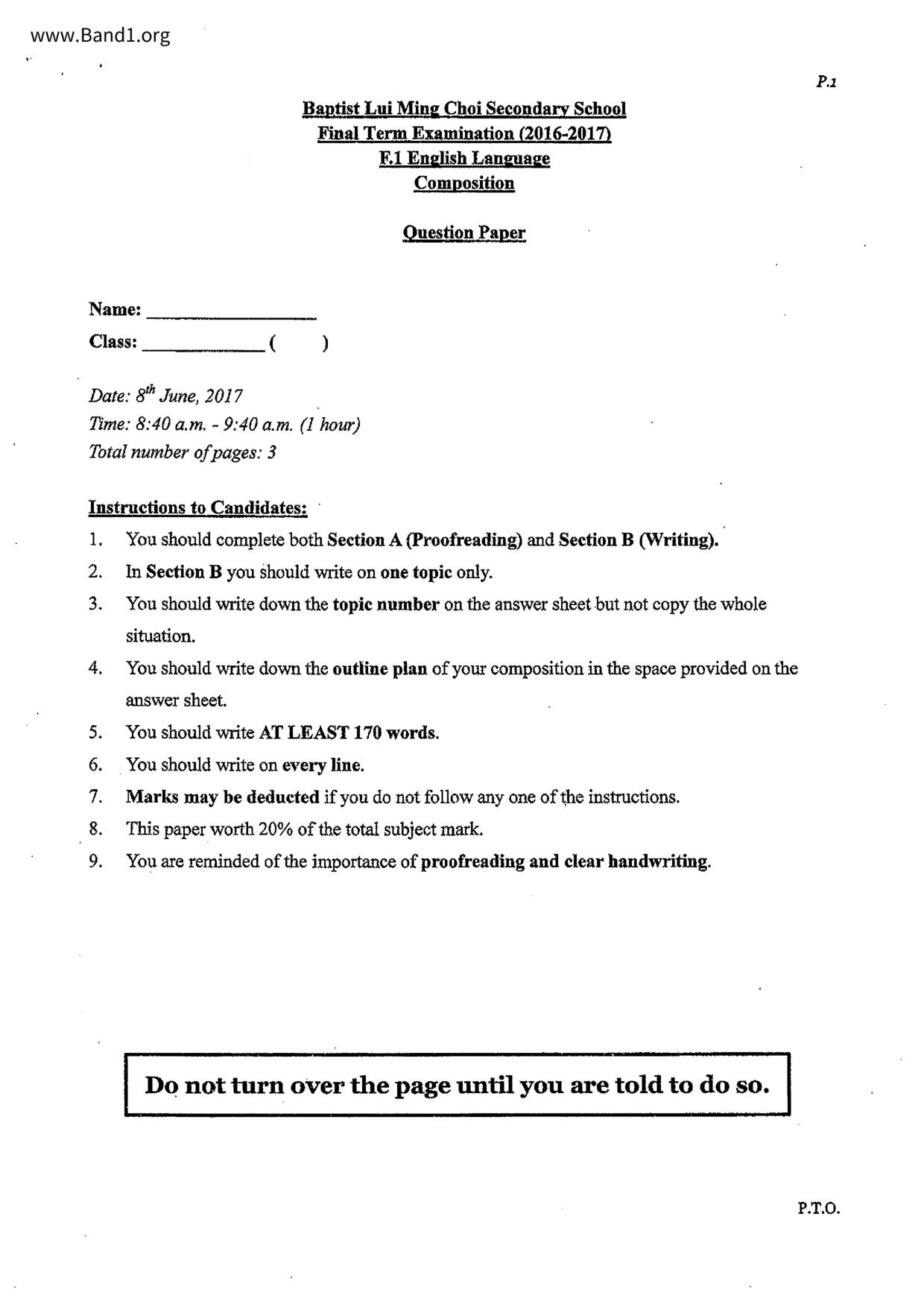 中一 英文 SKH Lam Woo Memorial Secondary School