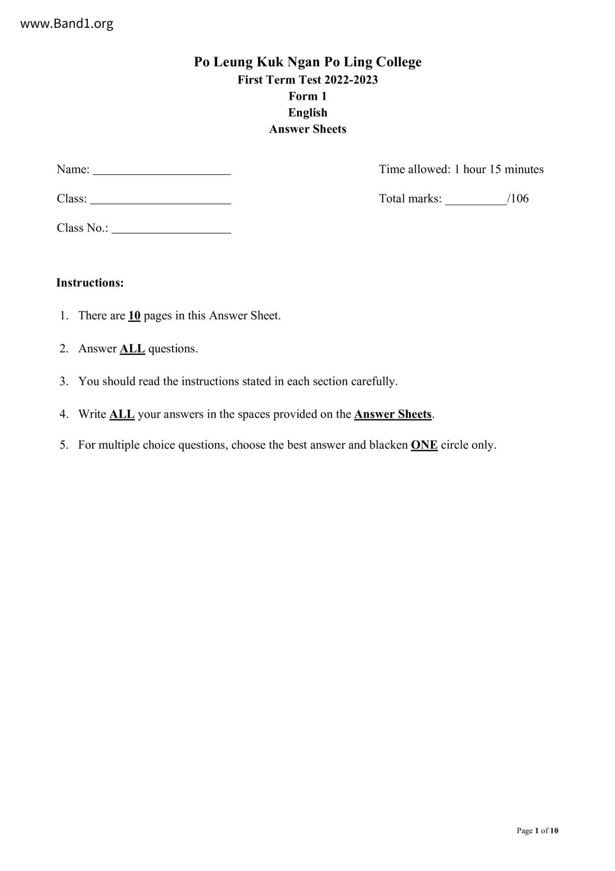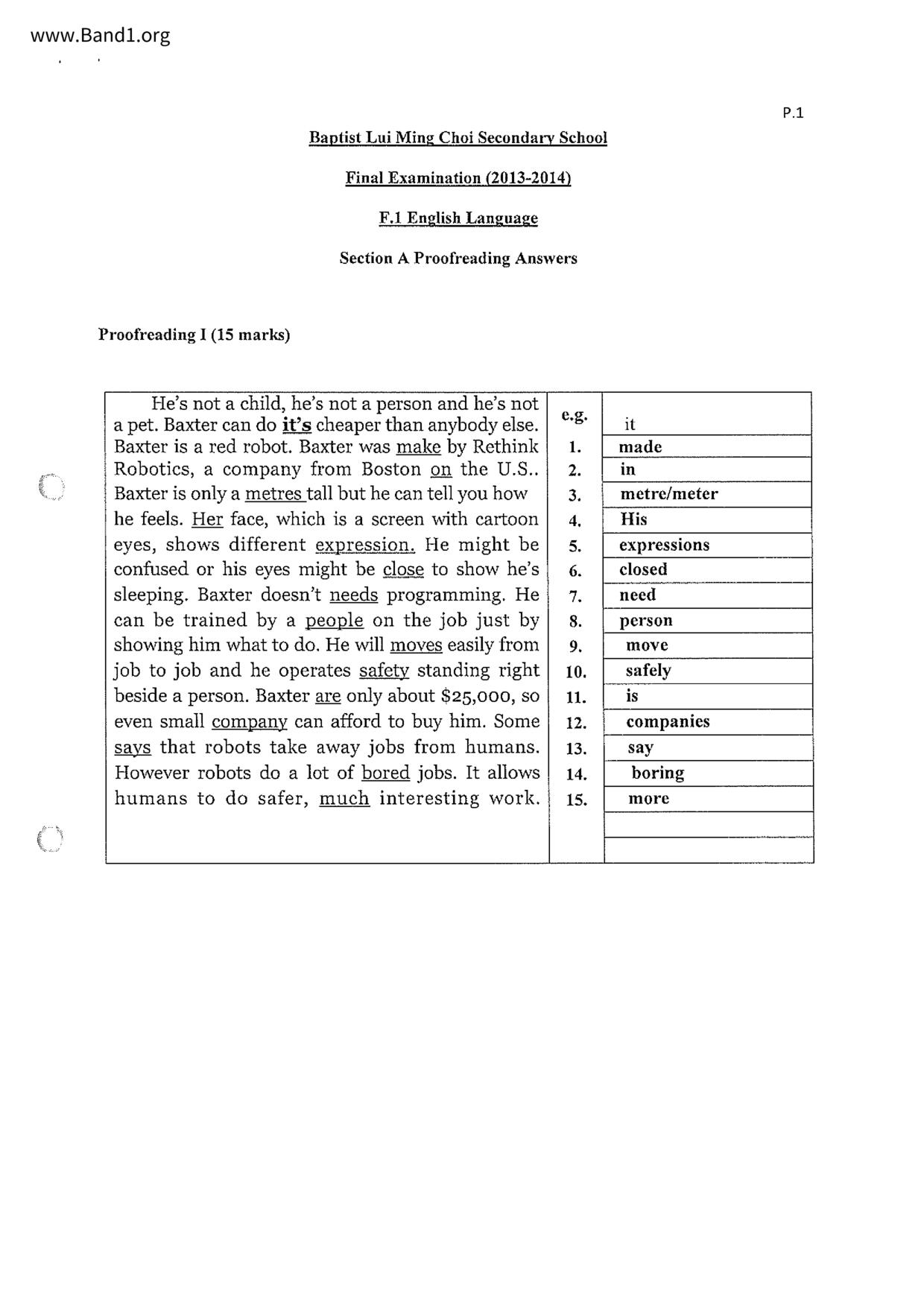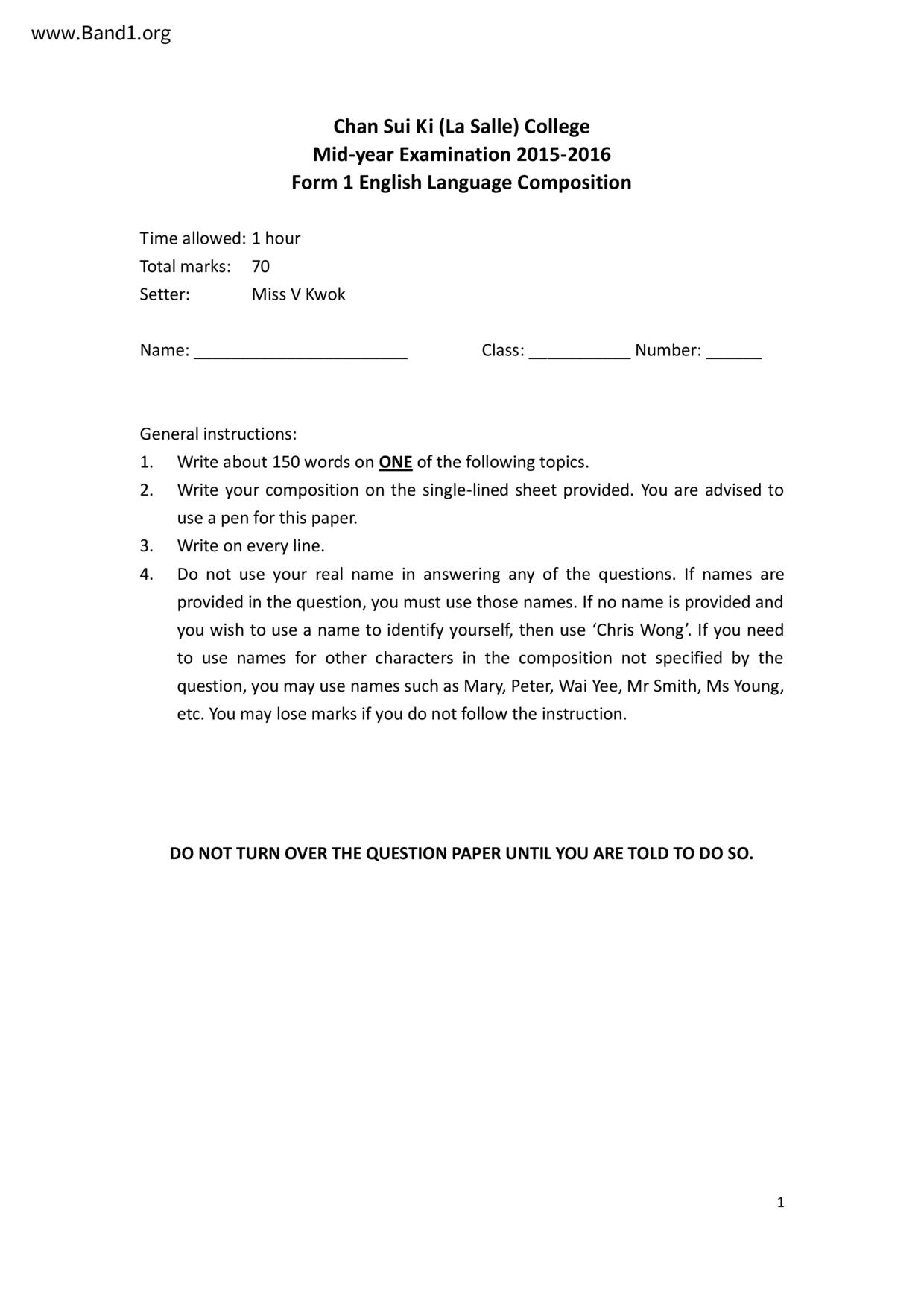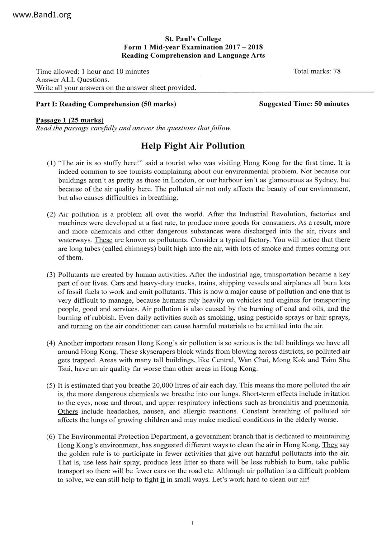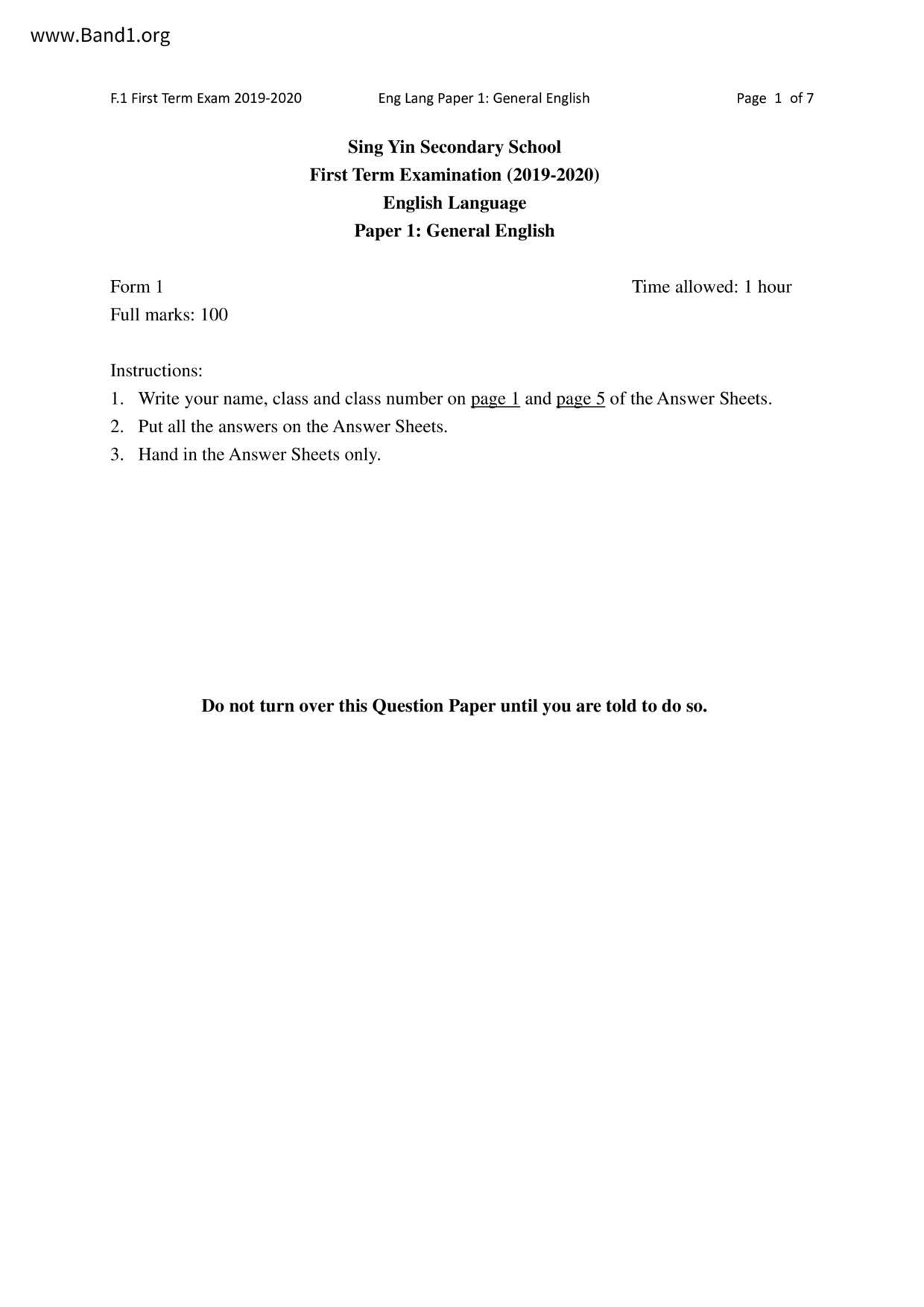 中一 英文 SKH Lam Woo Memorial Secondary School