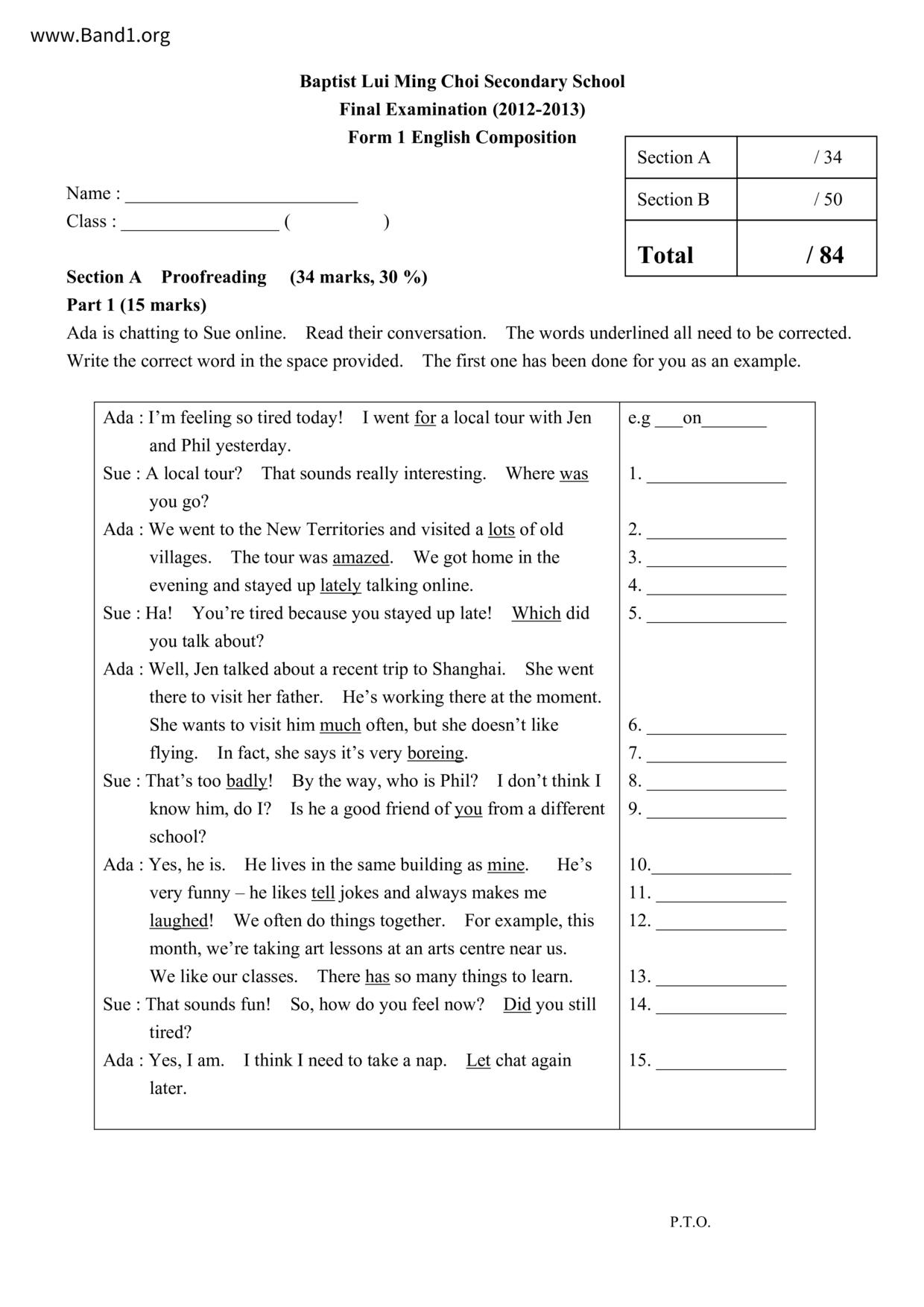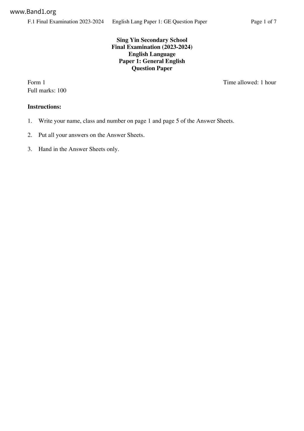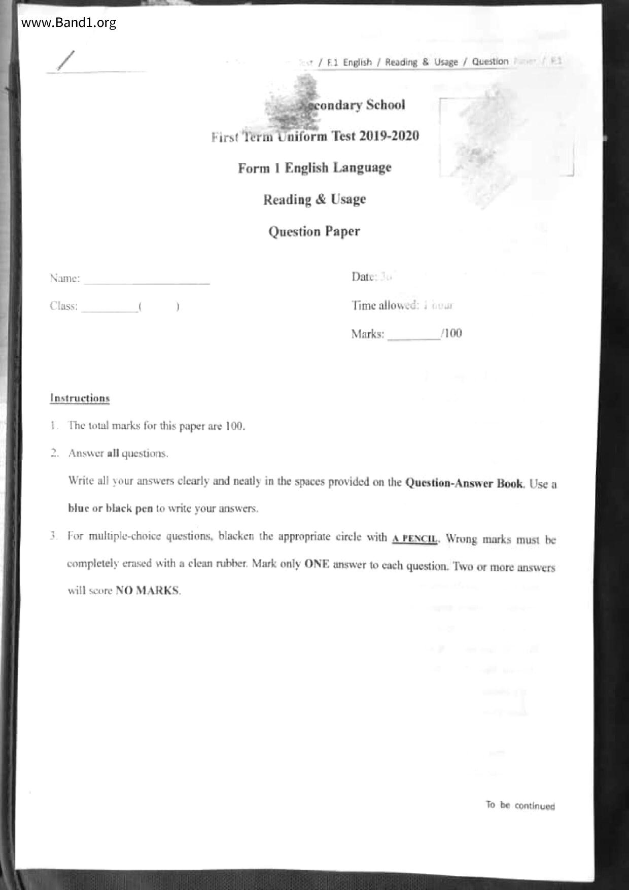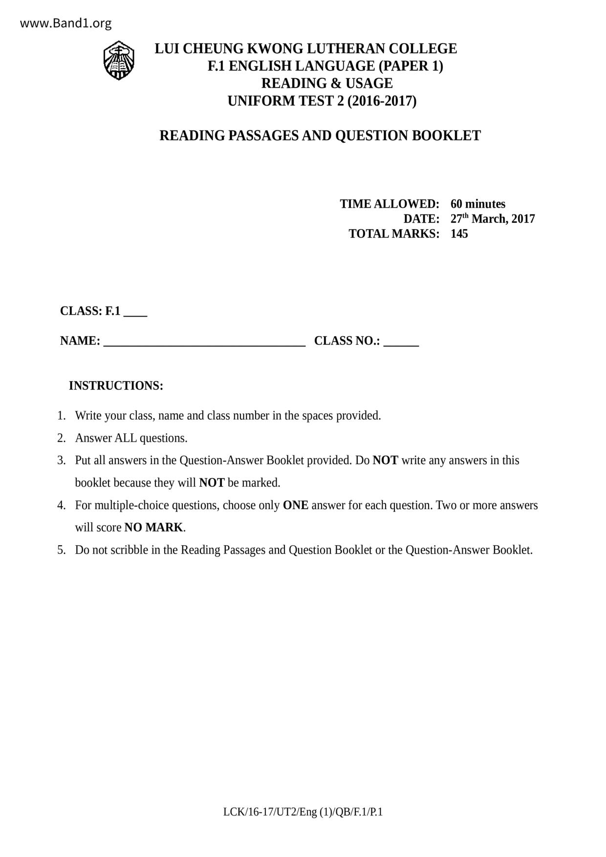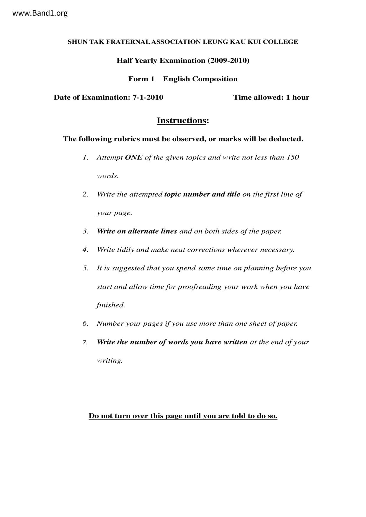 中一 英文 SKH Lam Woo Memorial Secondary School