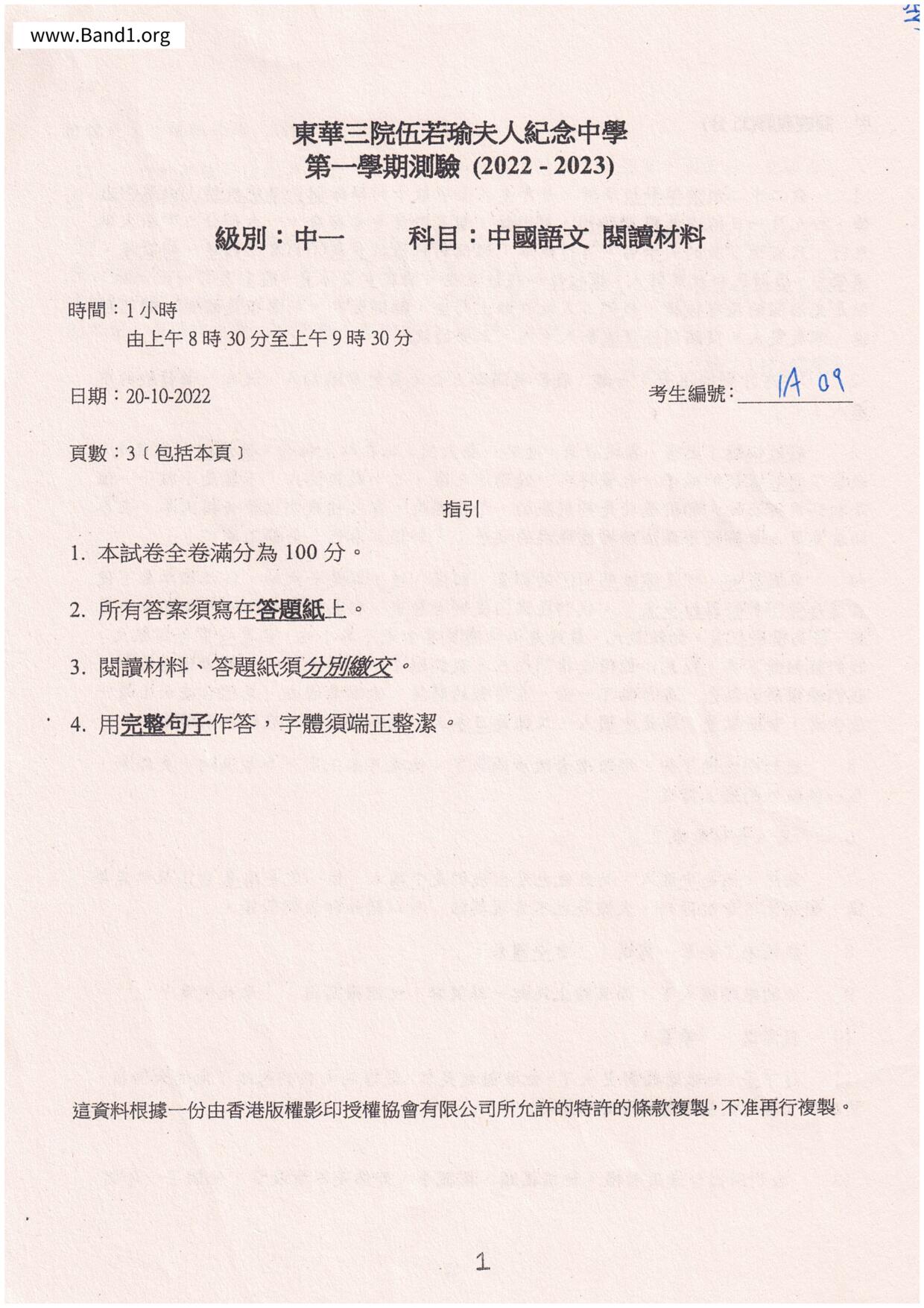 中一 中文 東華三院伍若瑜夫人紀念中學