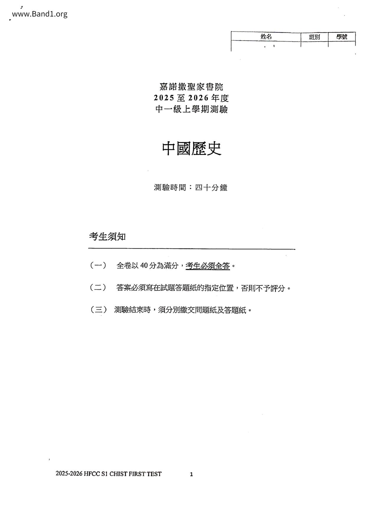 中一 中史 (F1 Chinese History)