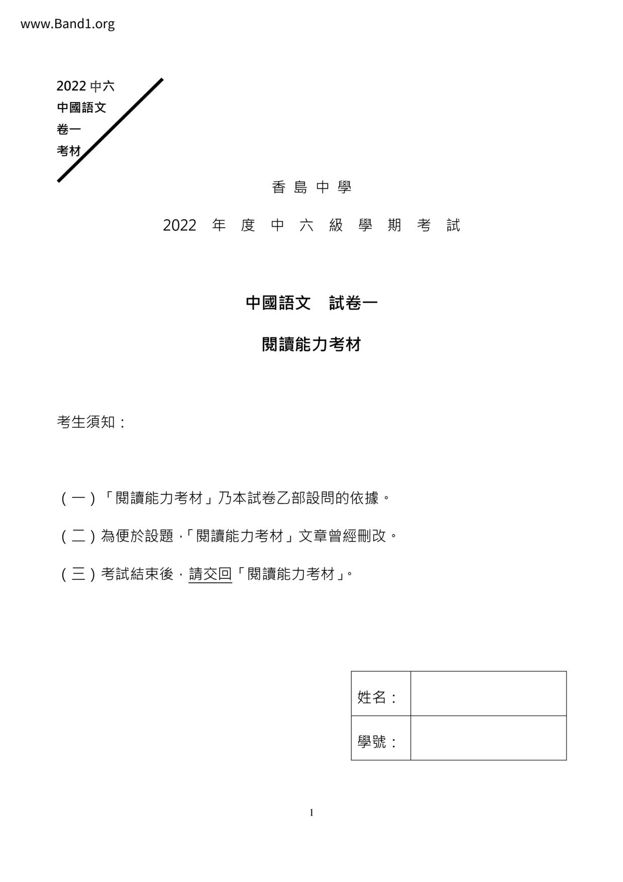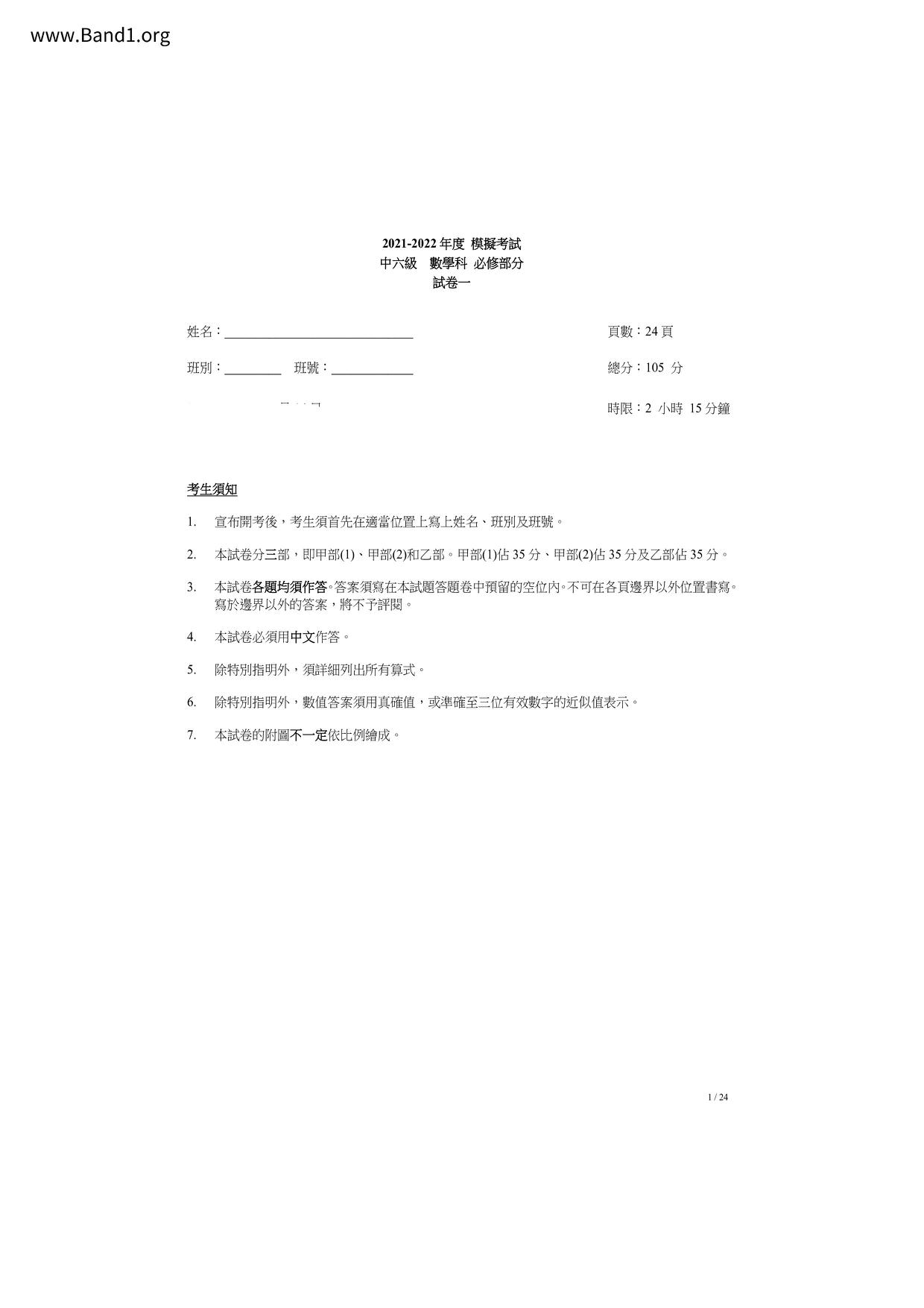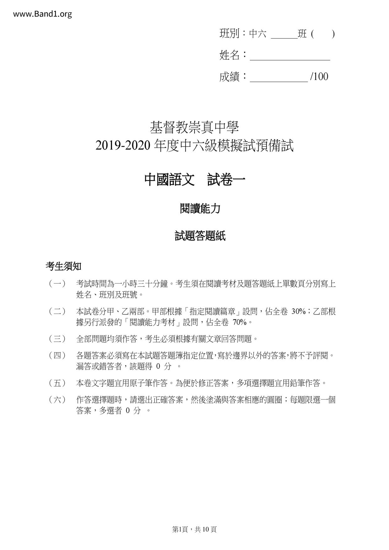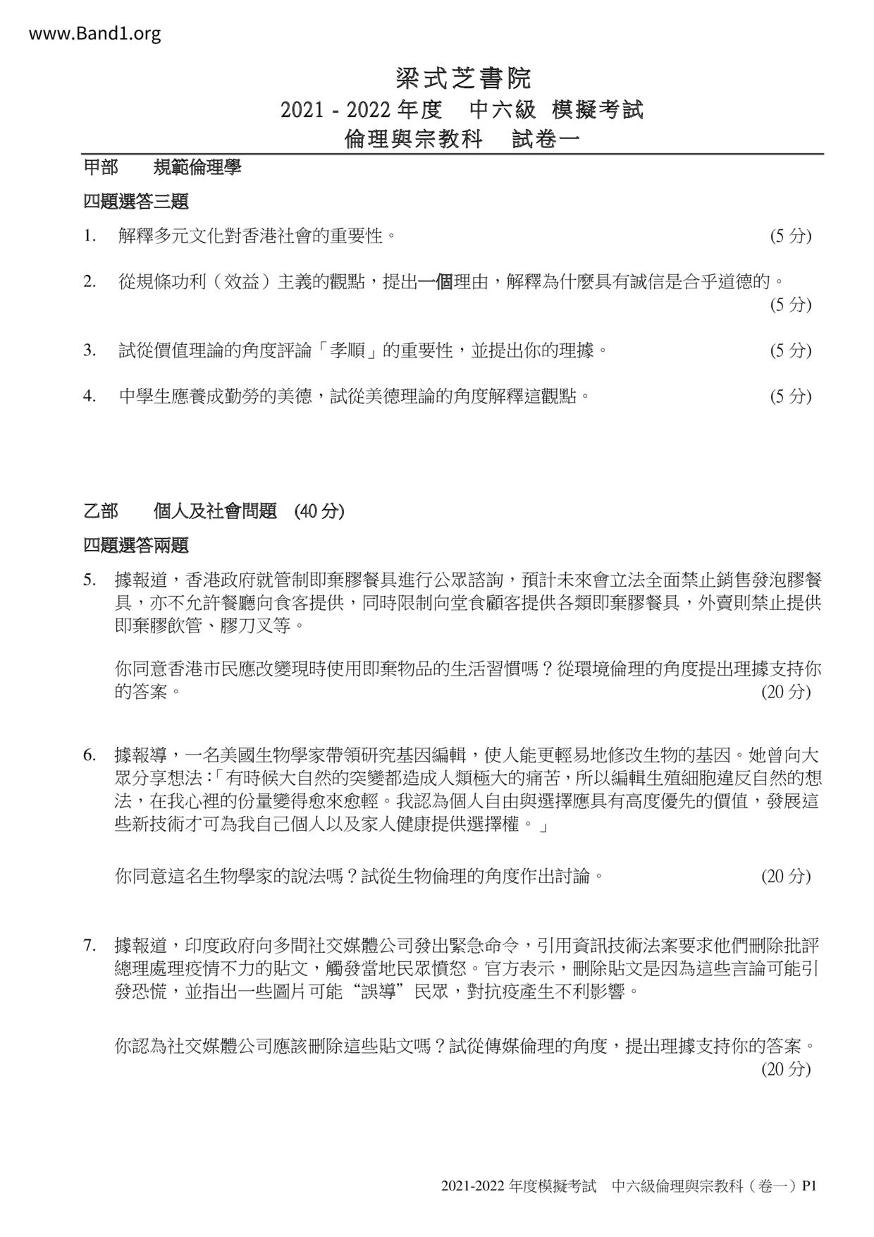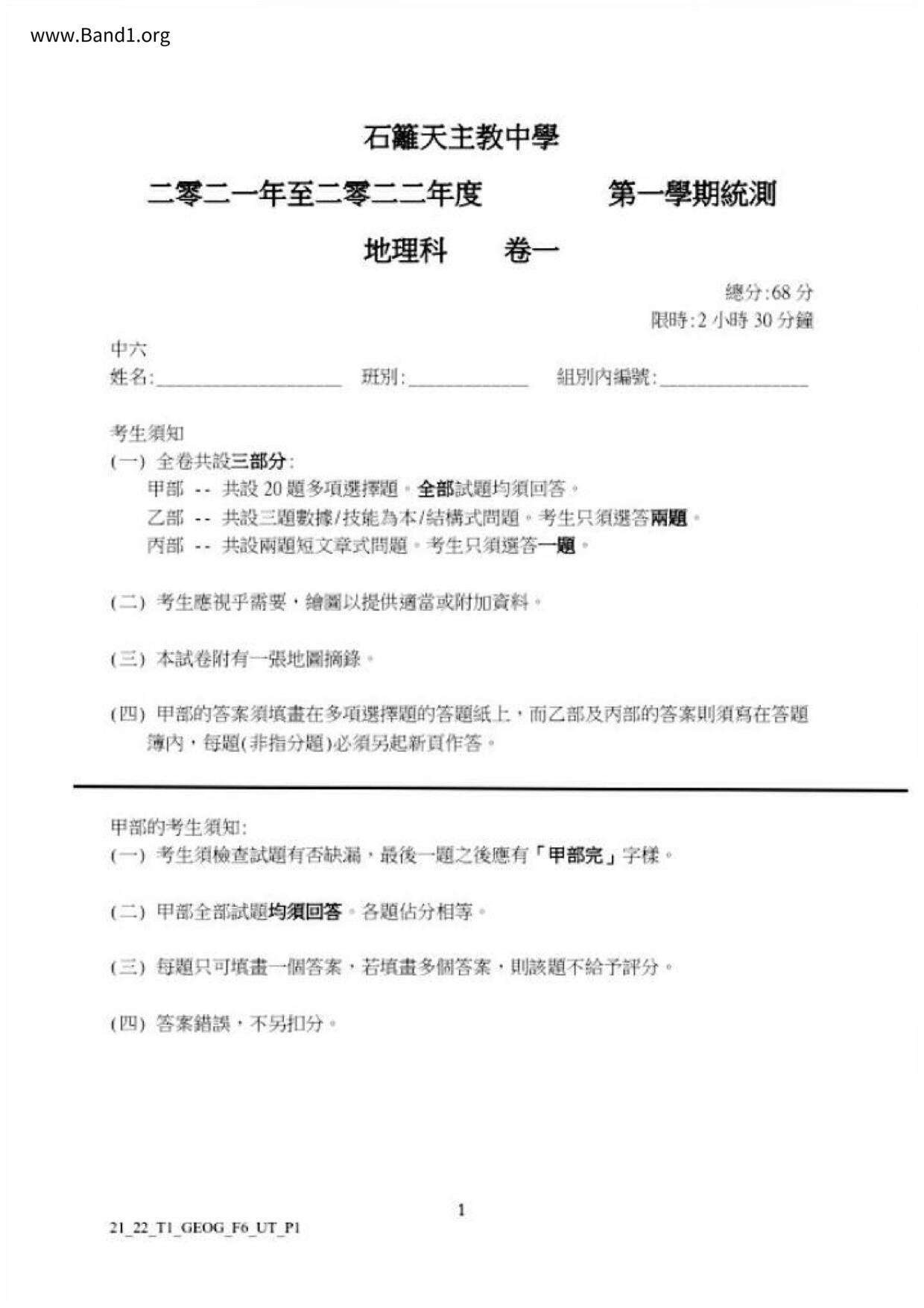 香港 中六 各科 (HK F6) 試卷 pdf