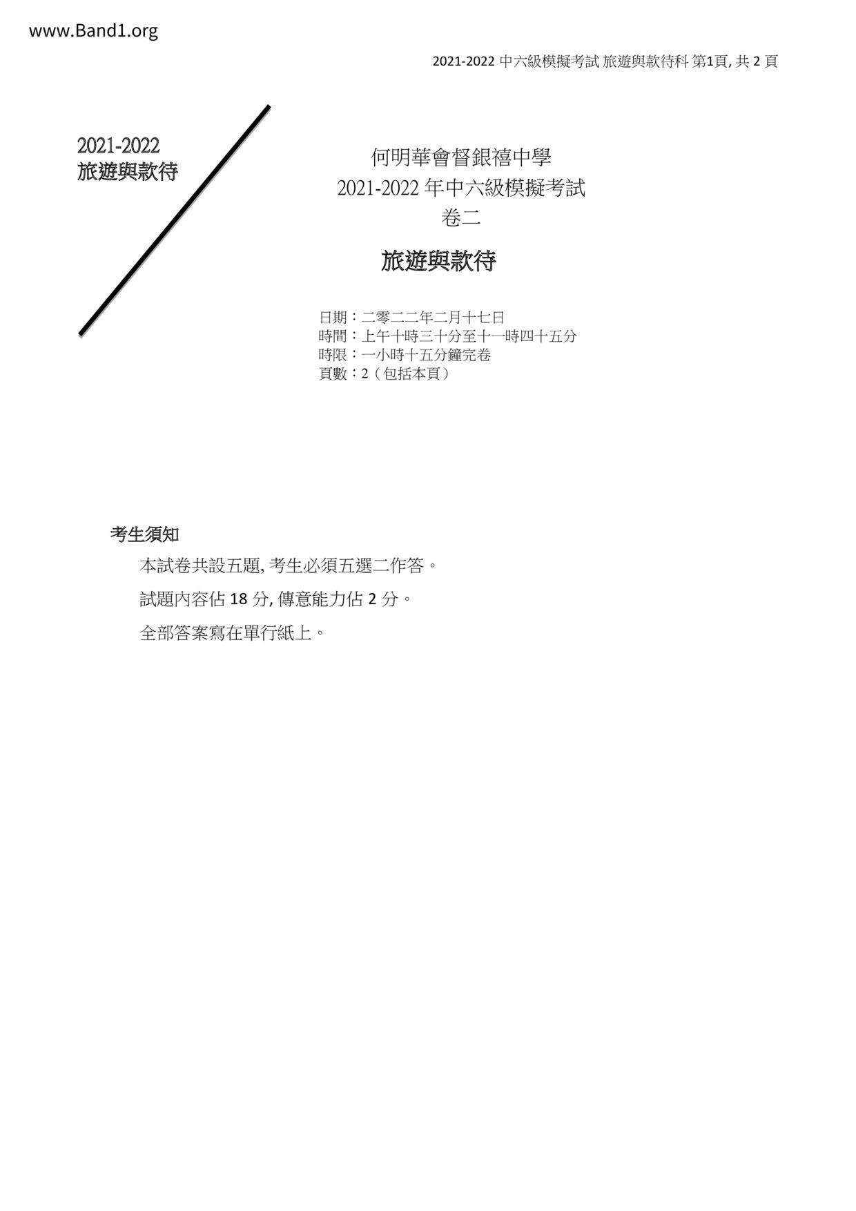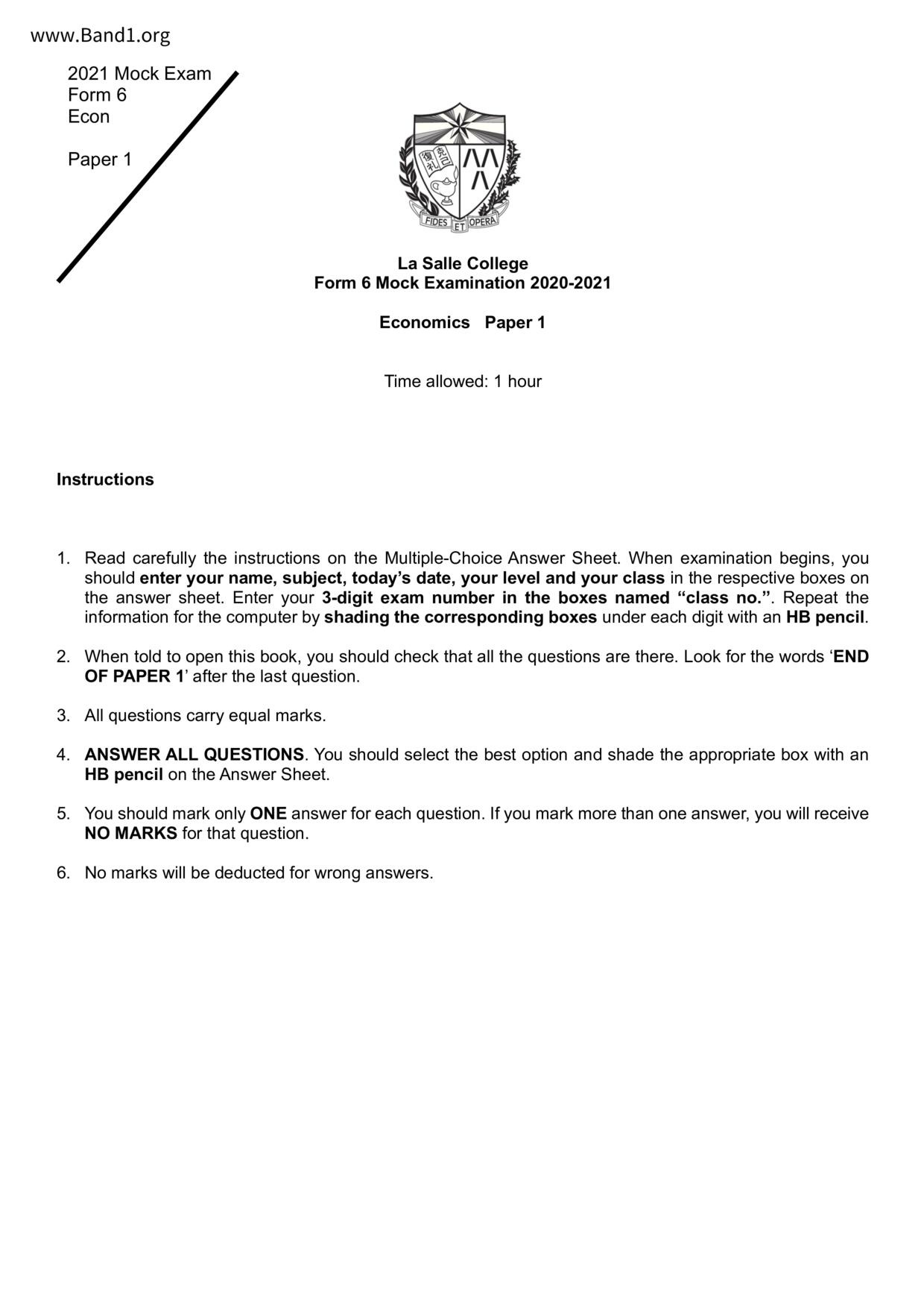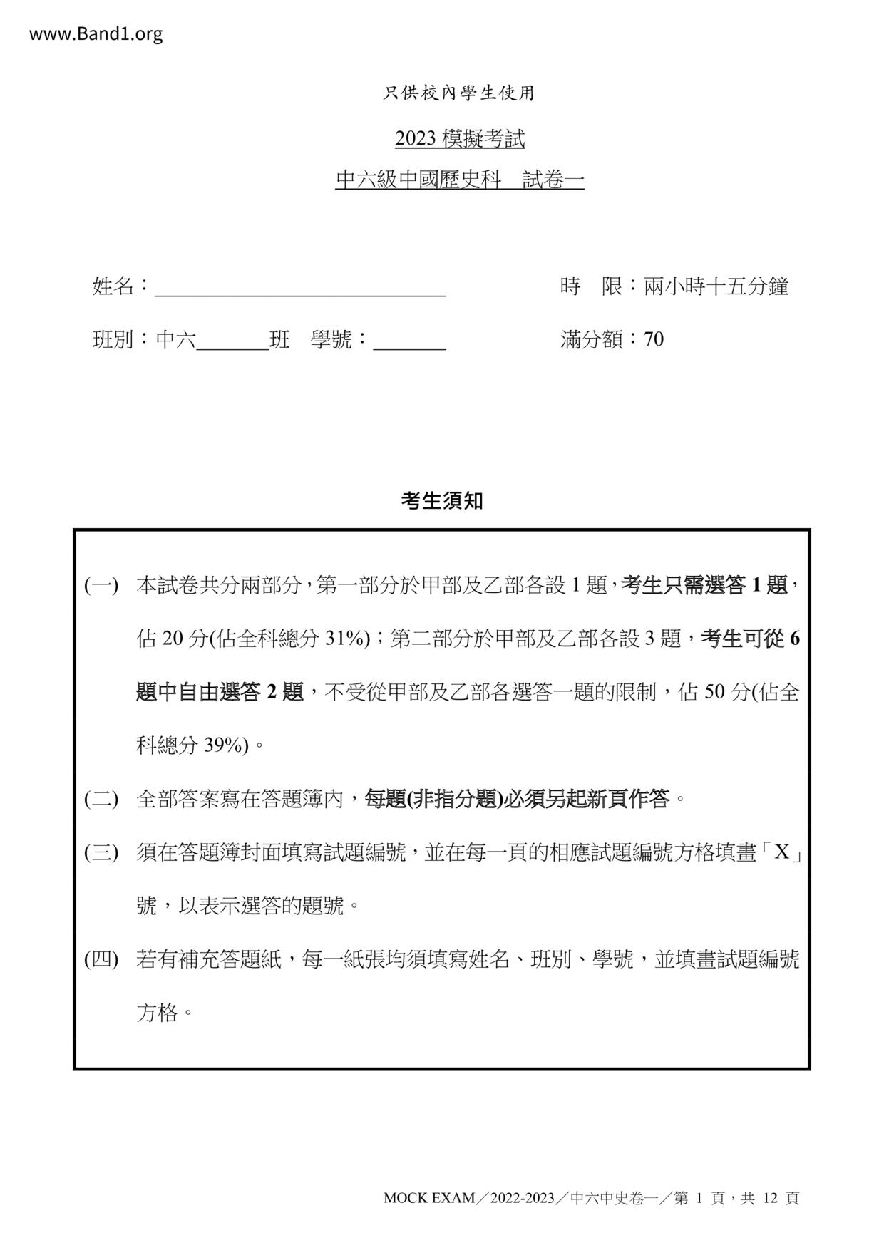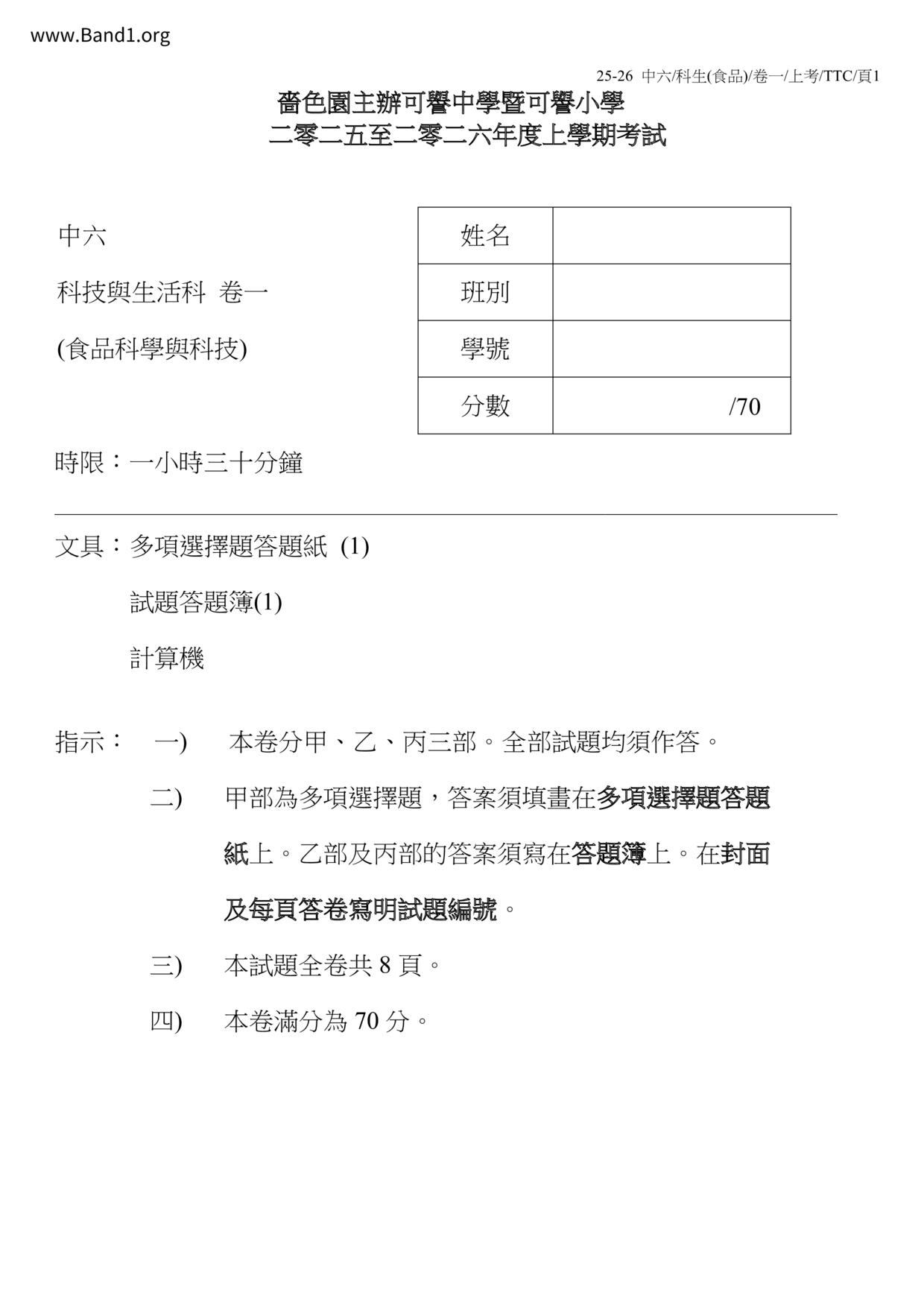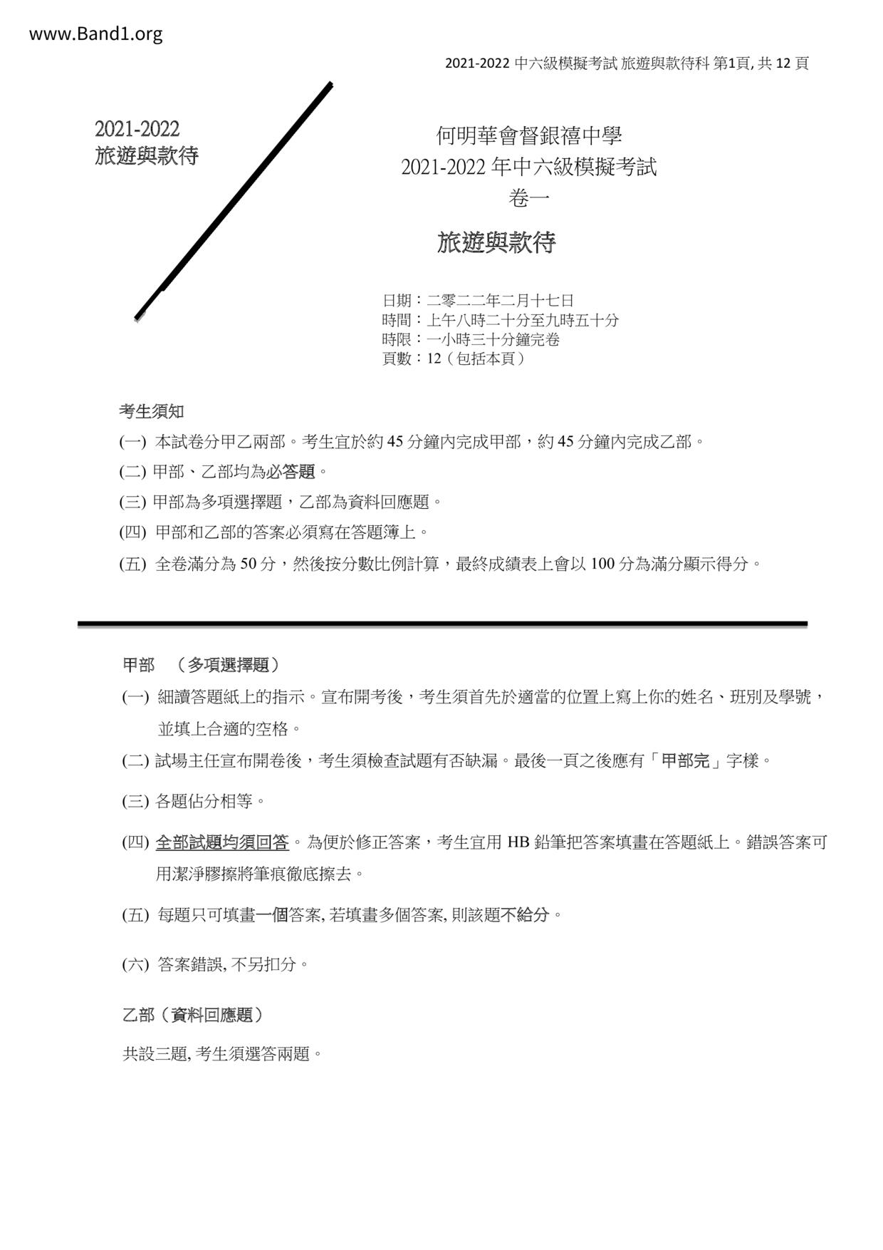 香港 中六 各科 (HK F6) 試卷 pdf