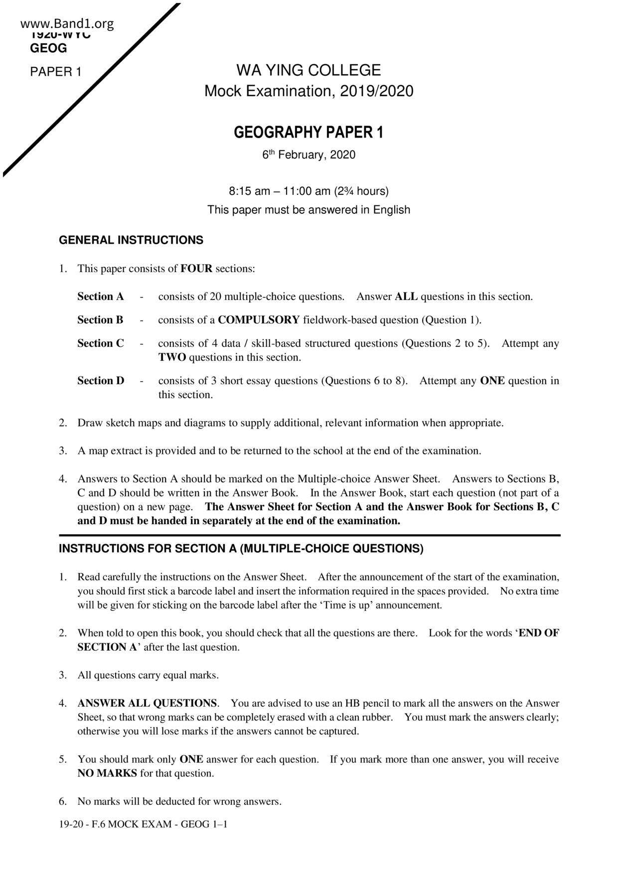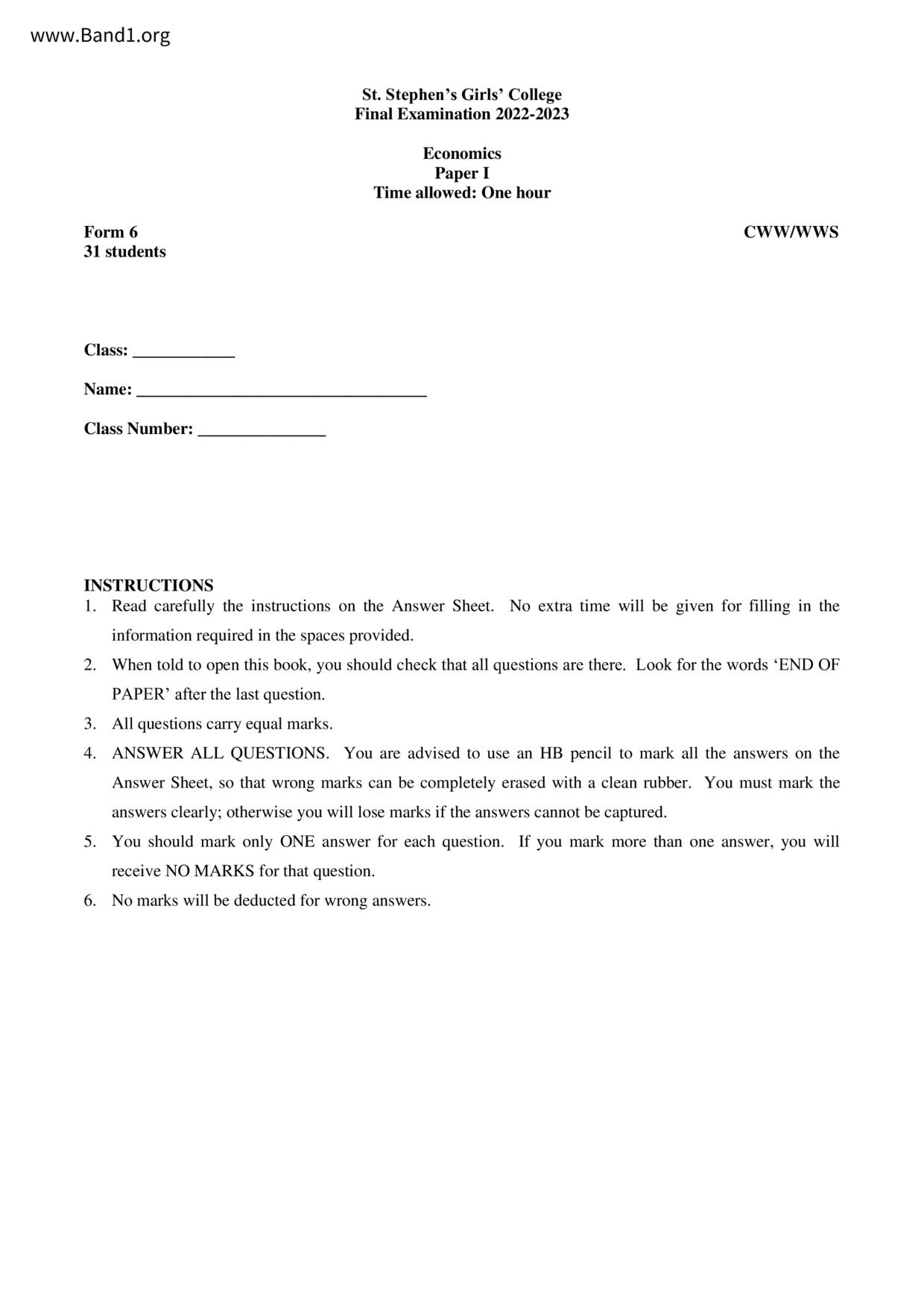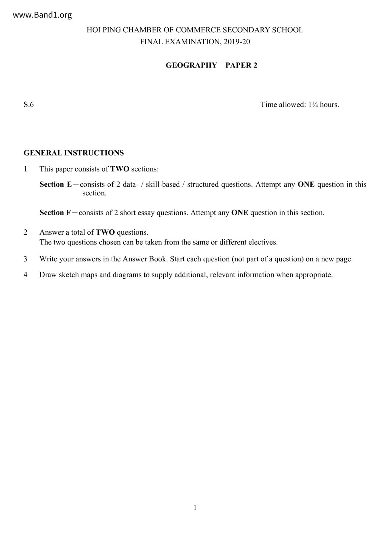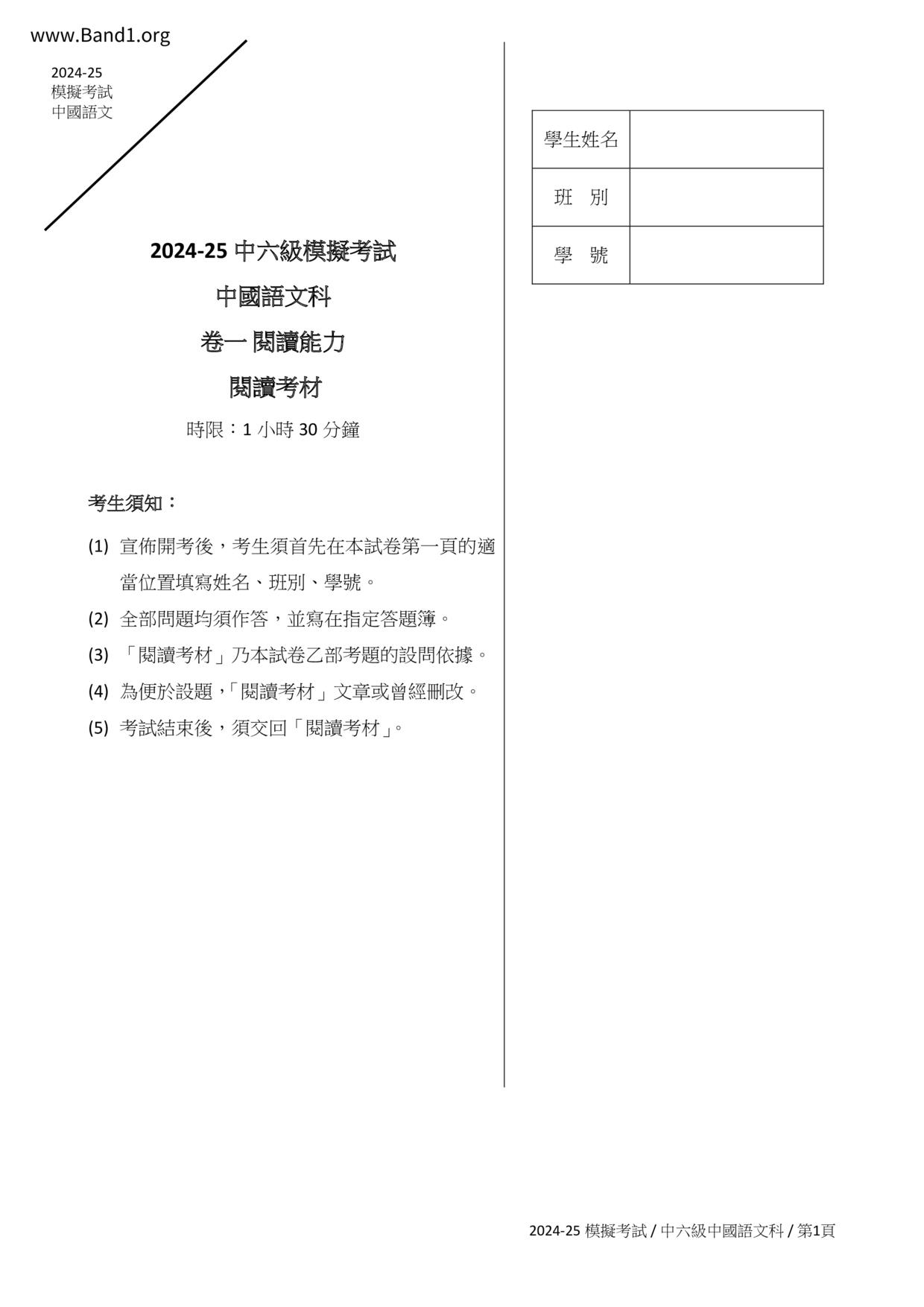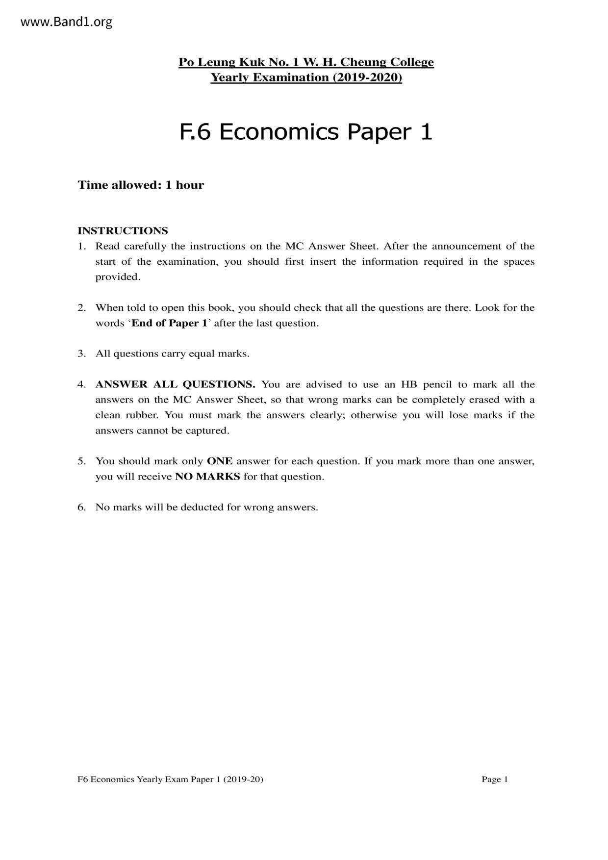 香港 中六 各科 (HK F6) 試卷 pdf