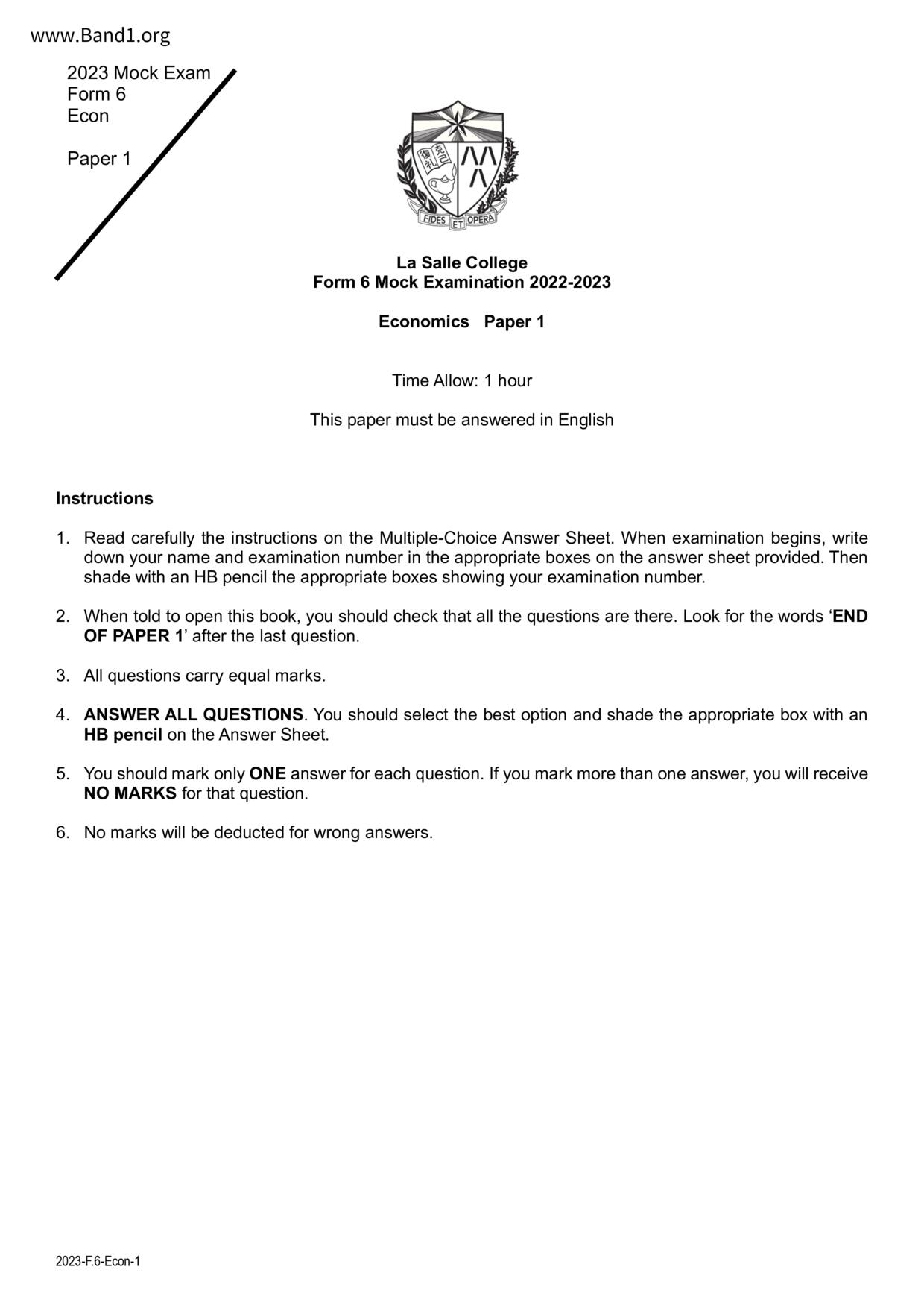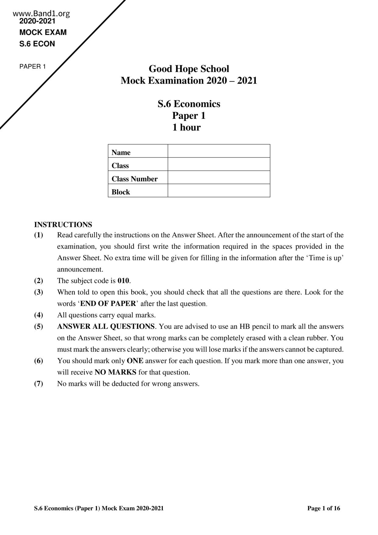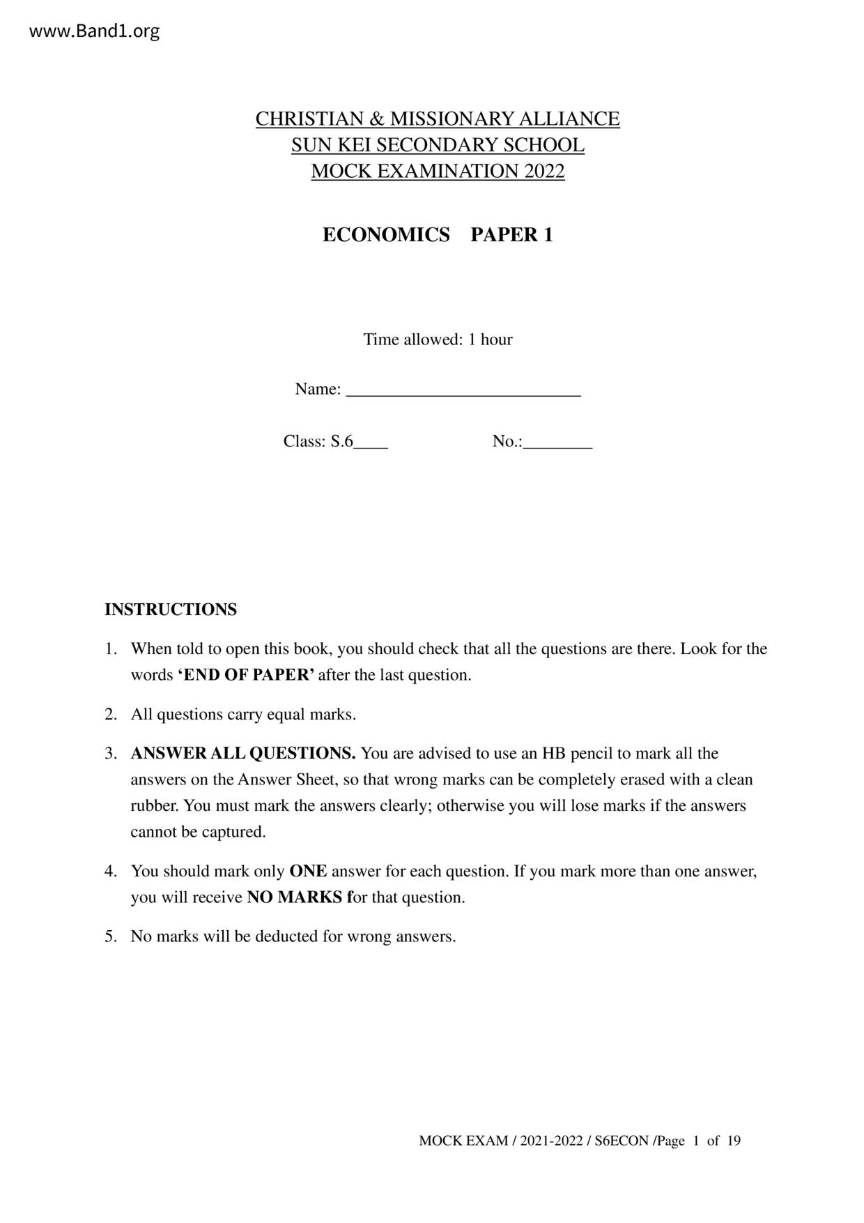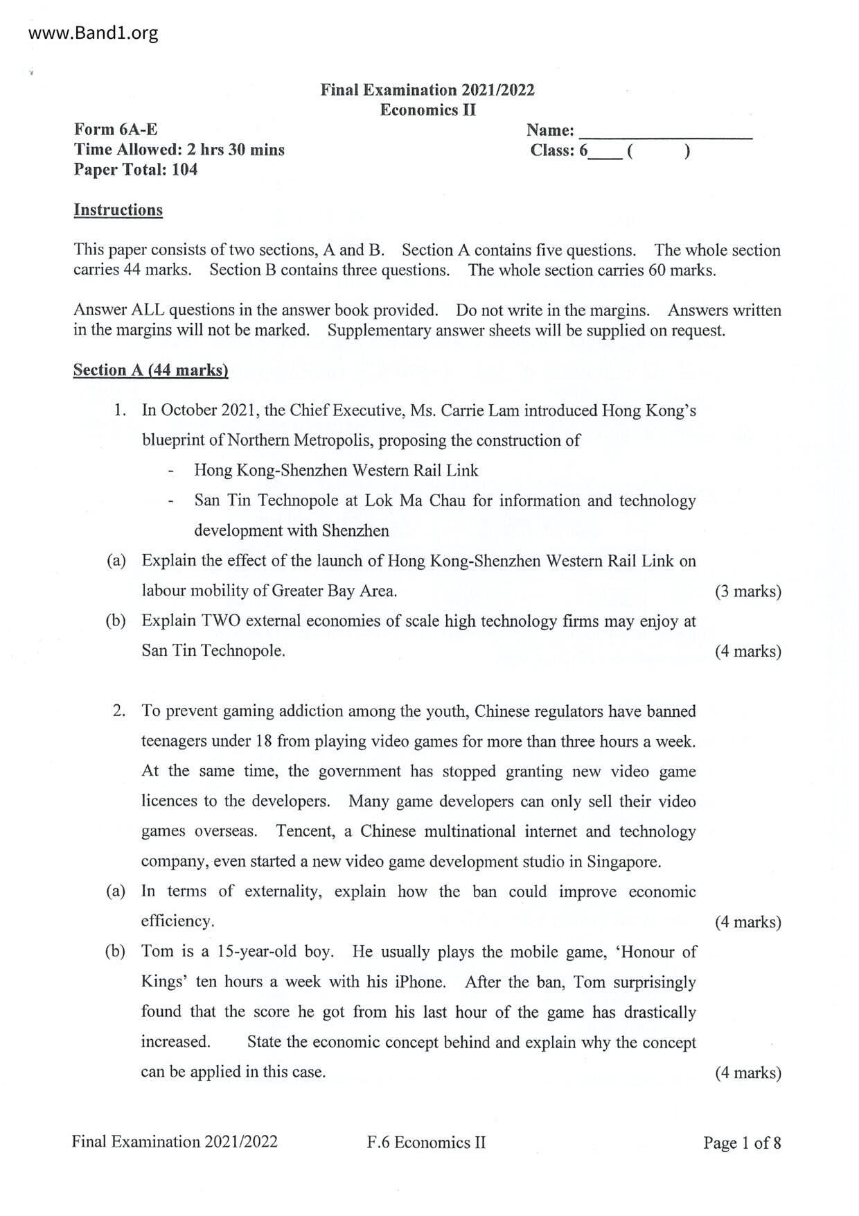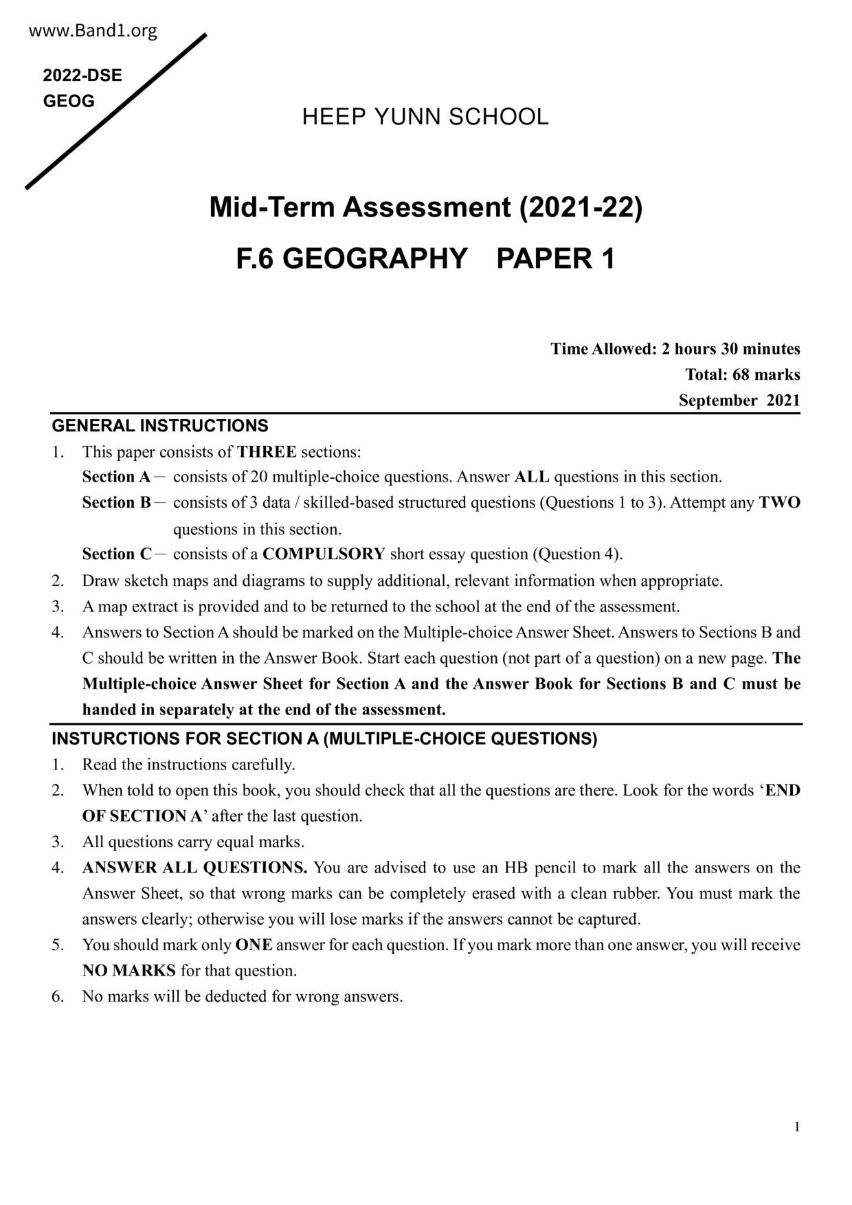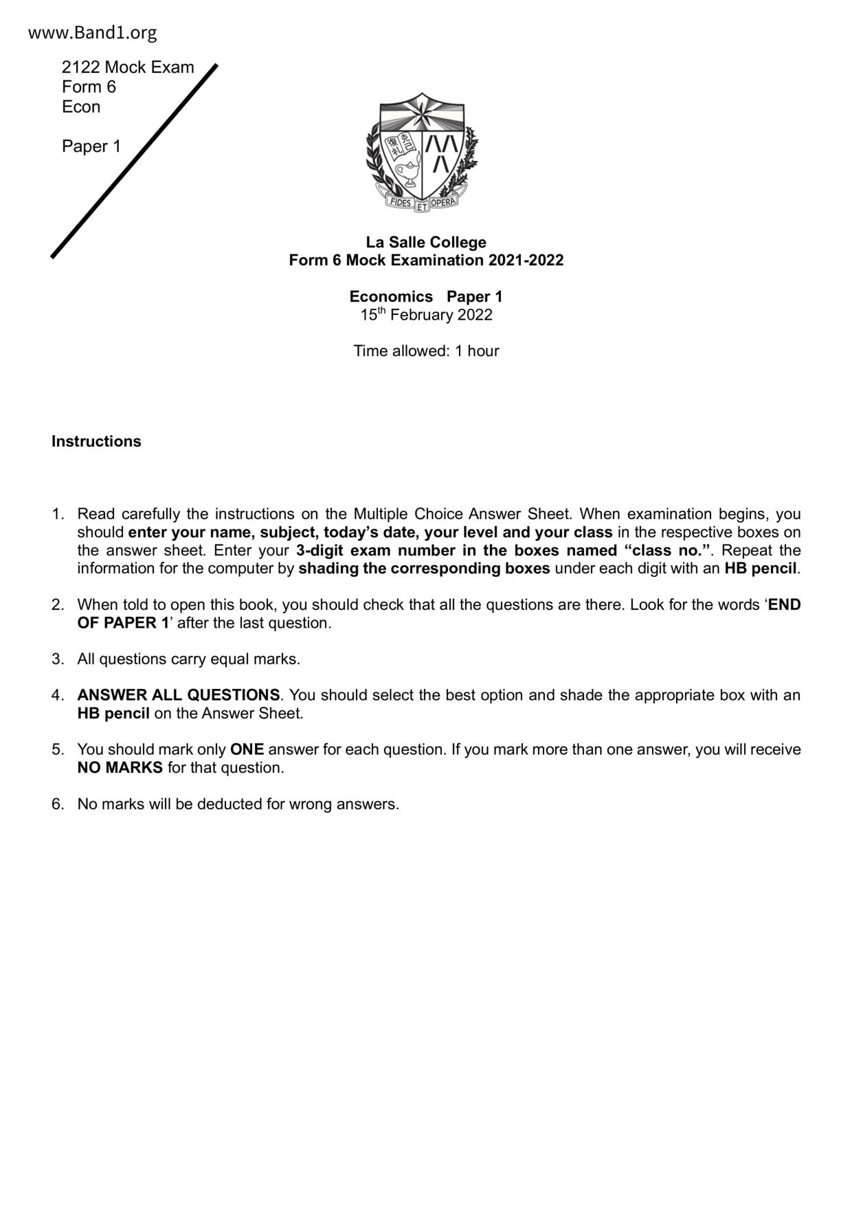 香港 中六 各科 (HK F6) 試卷 pdf
