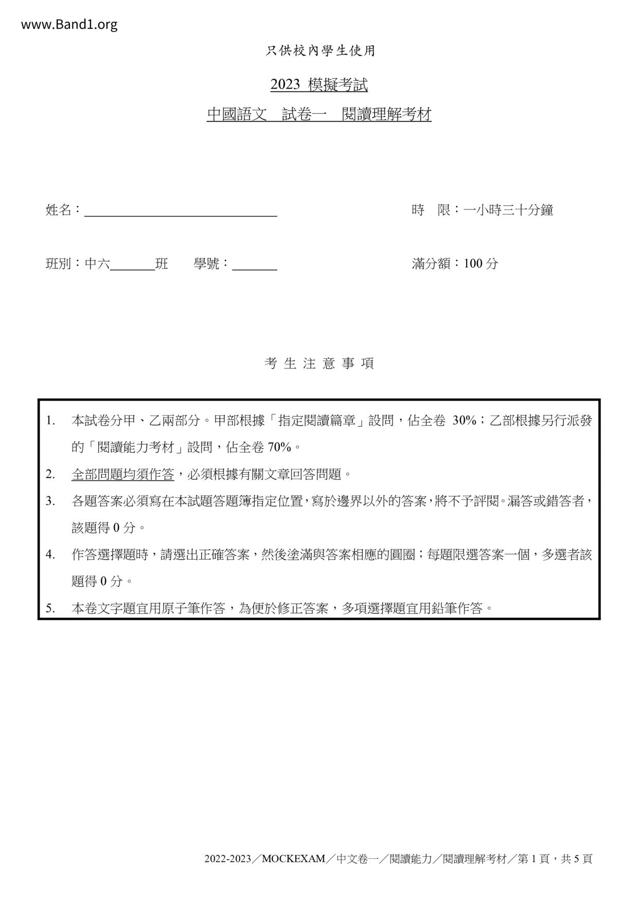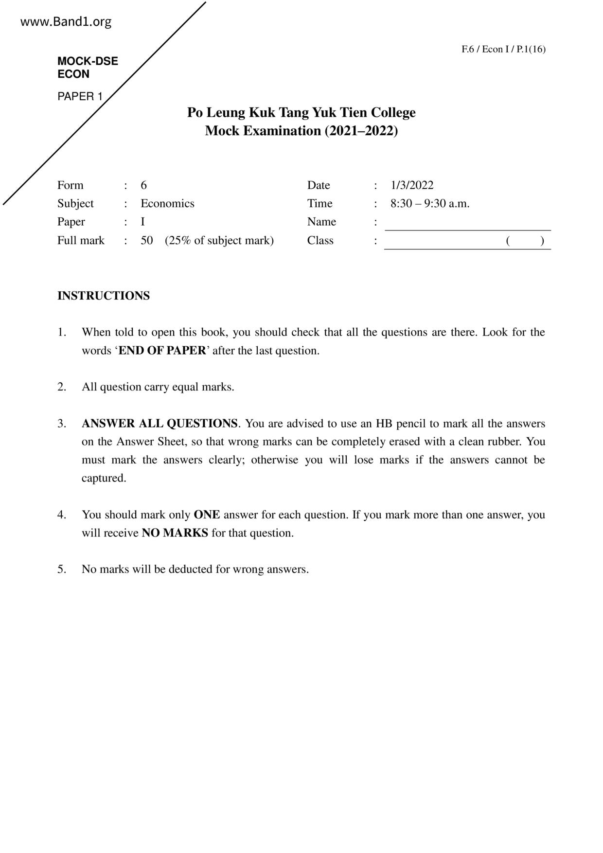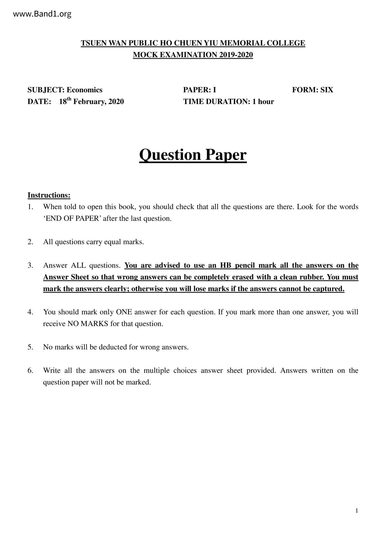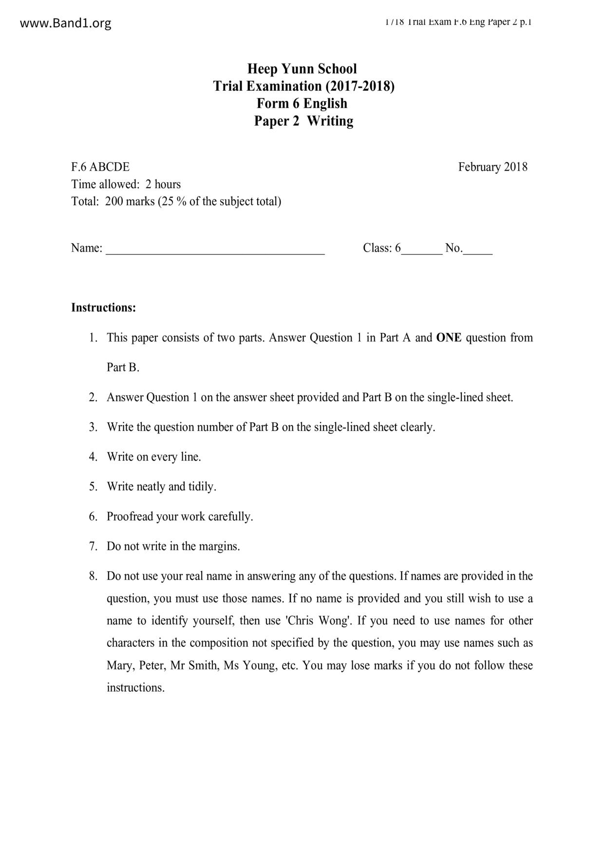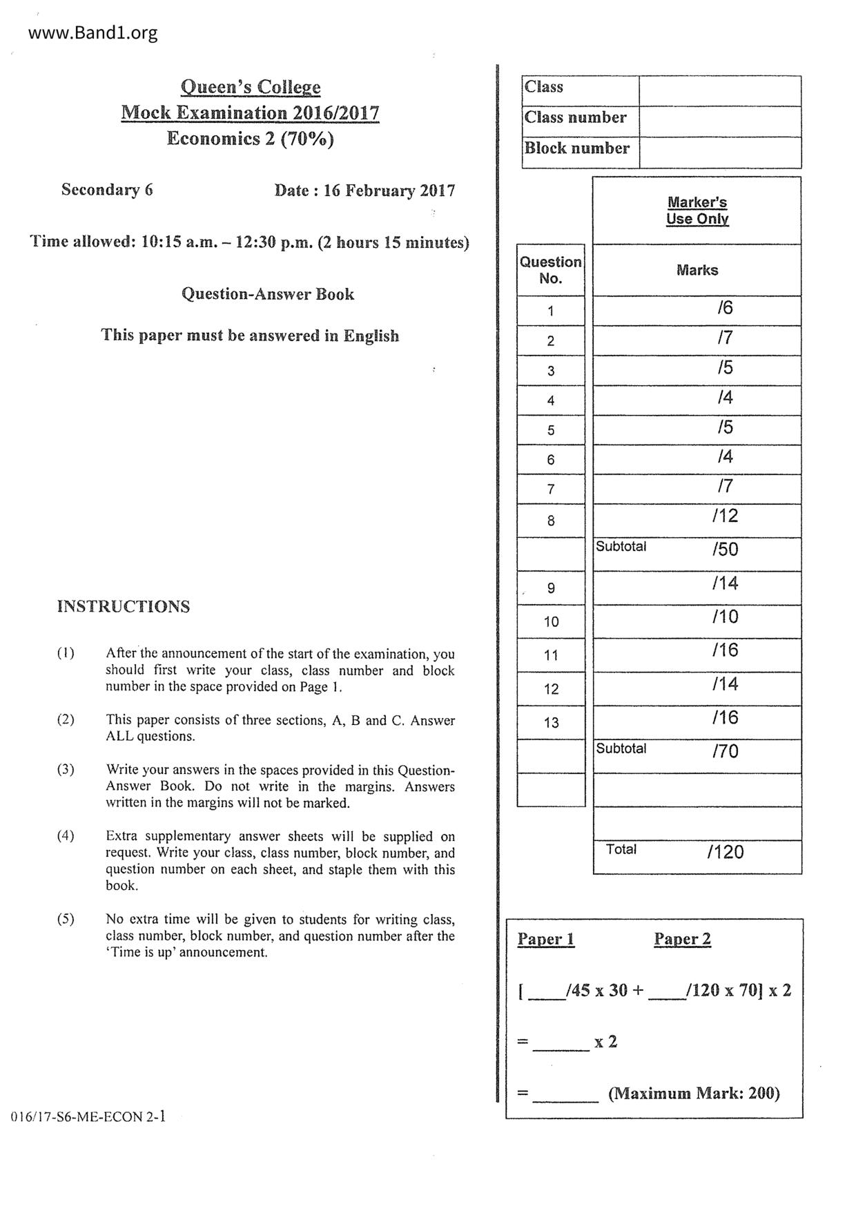 香港 中六 各科 (HK F6) 試卷 pdf