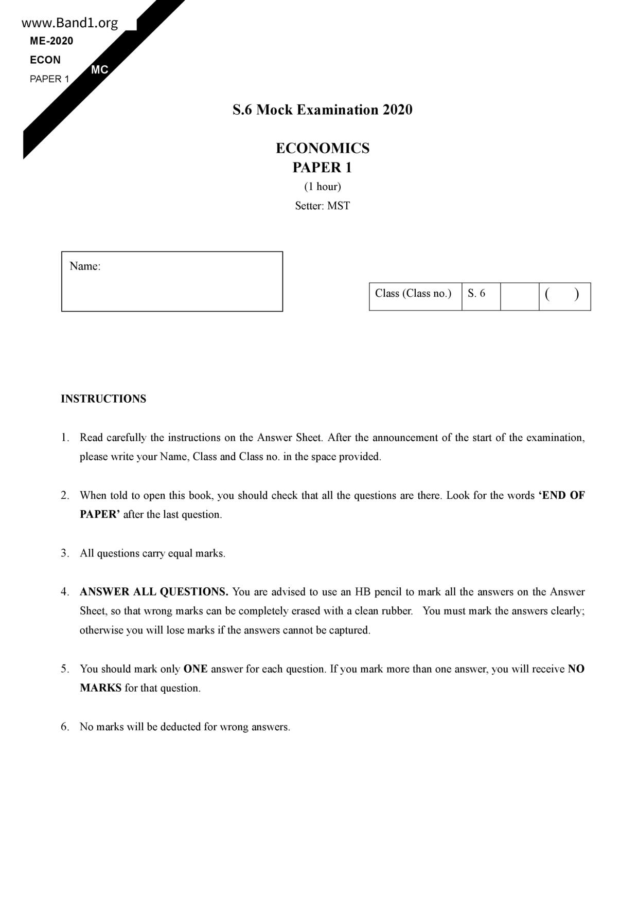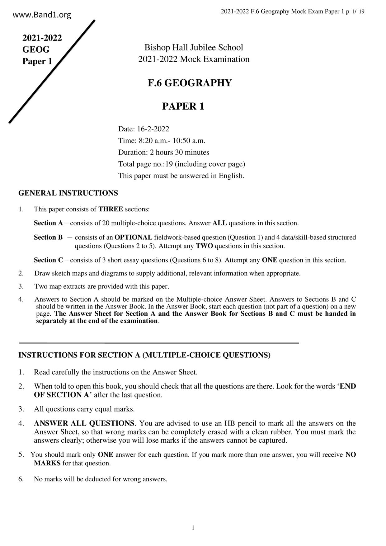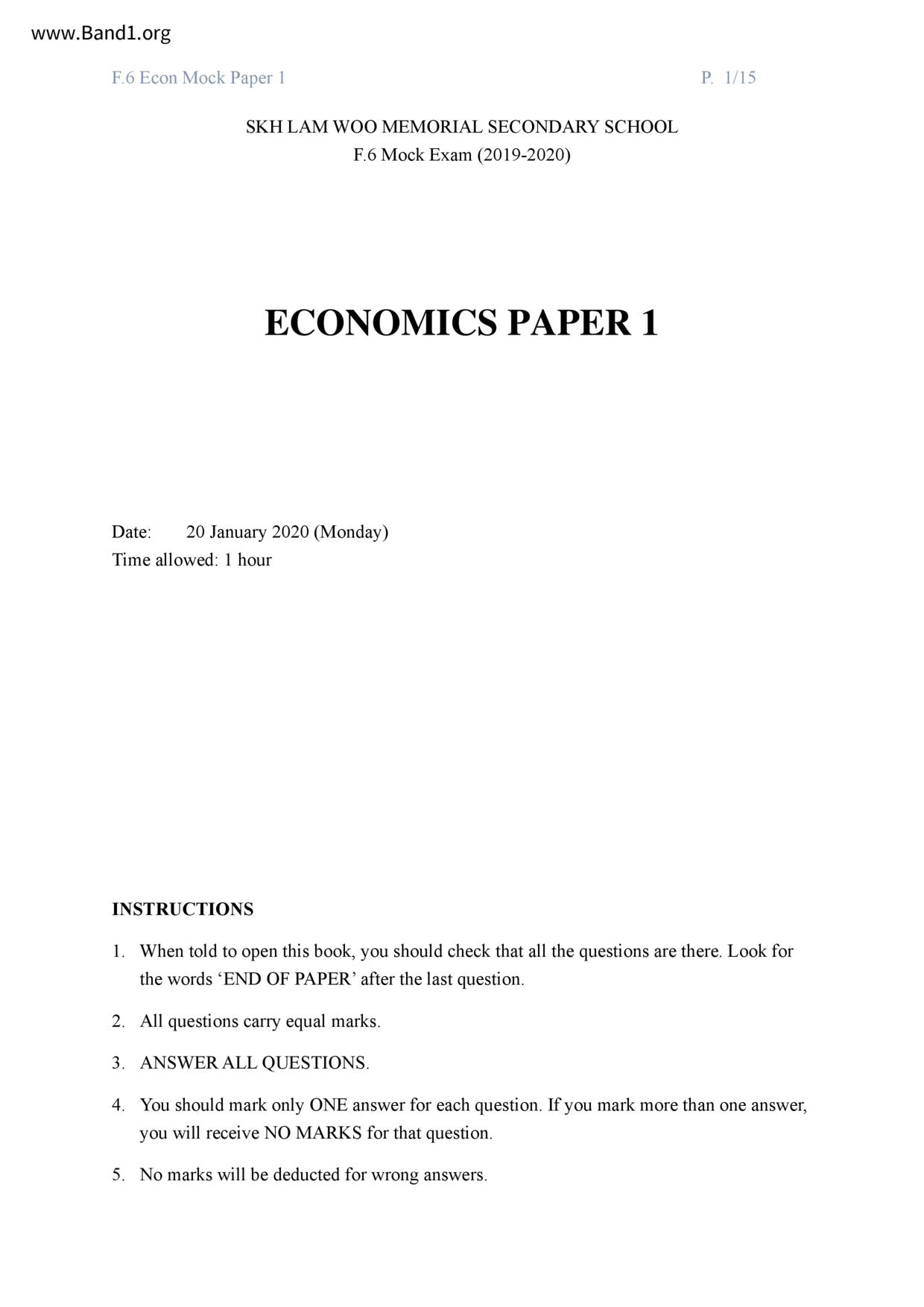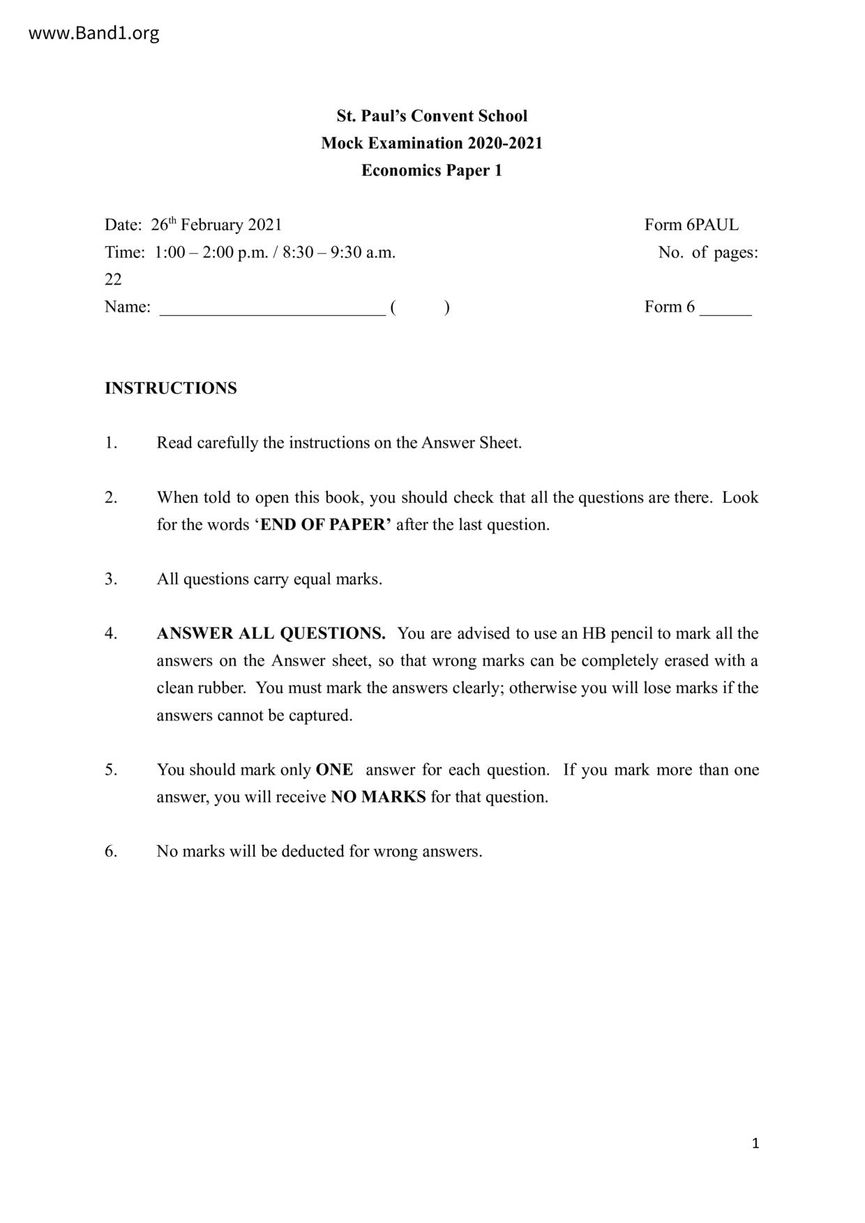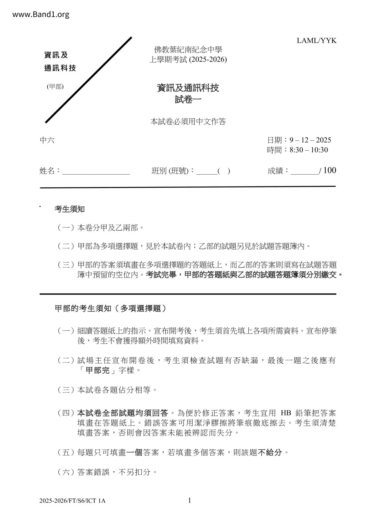 香港 中六 各科 (HK F6) 試卷 pdf