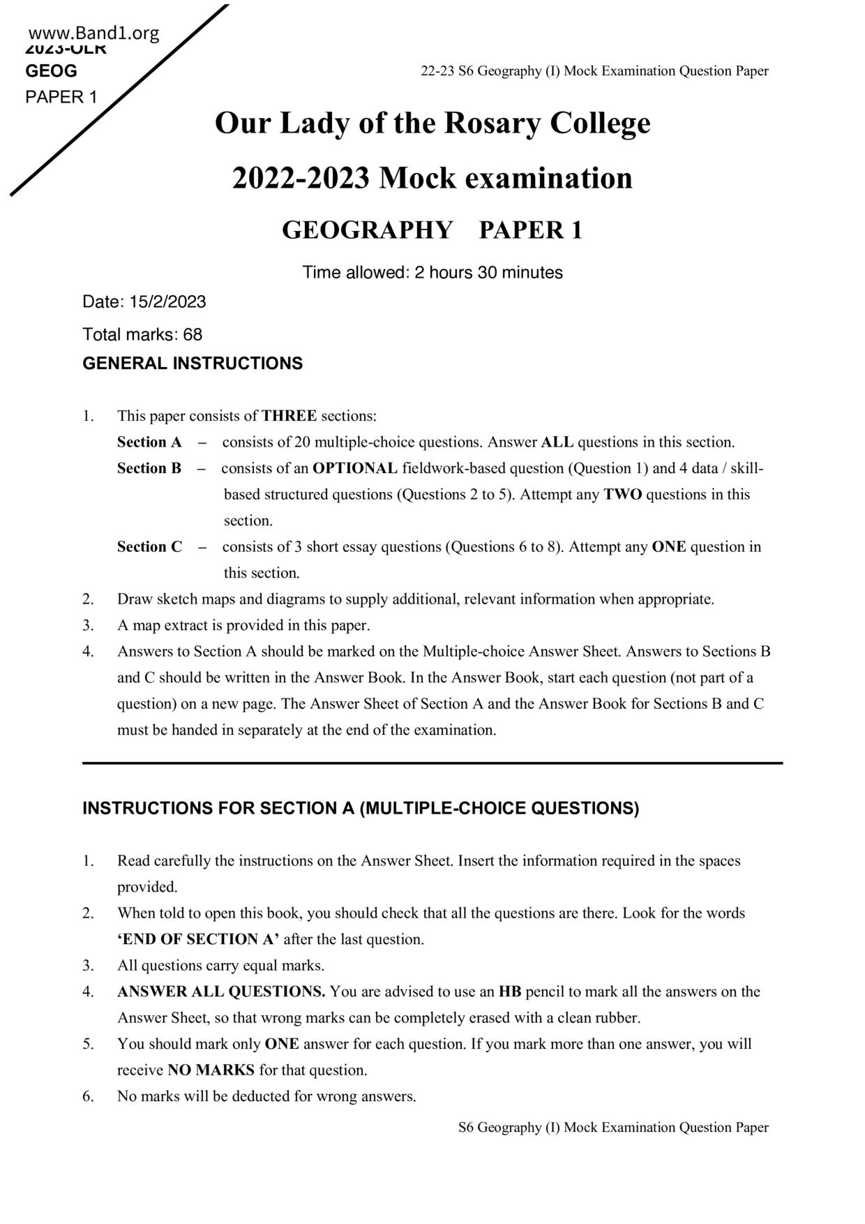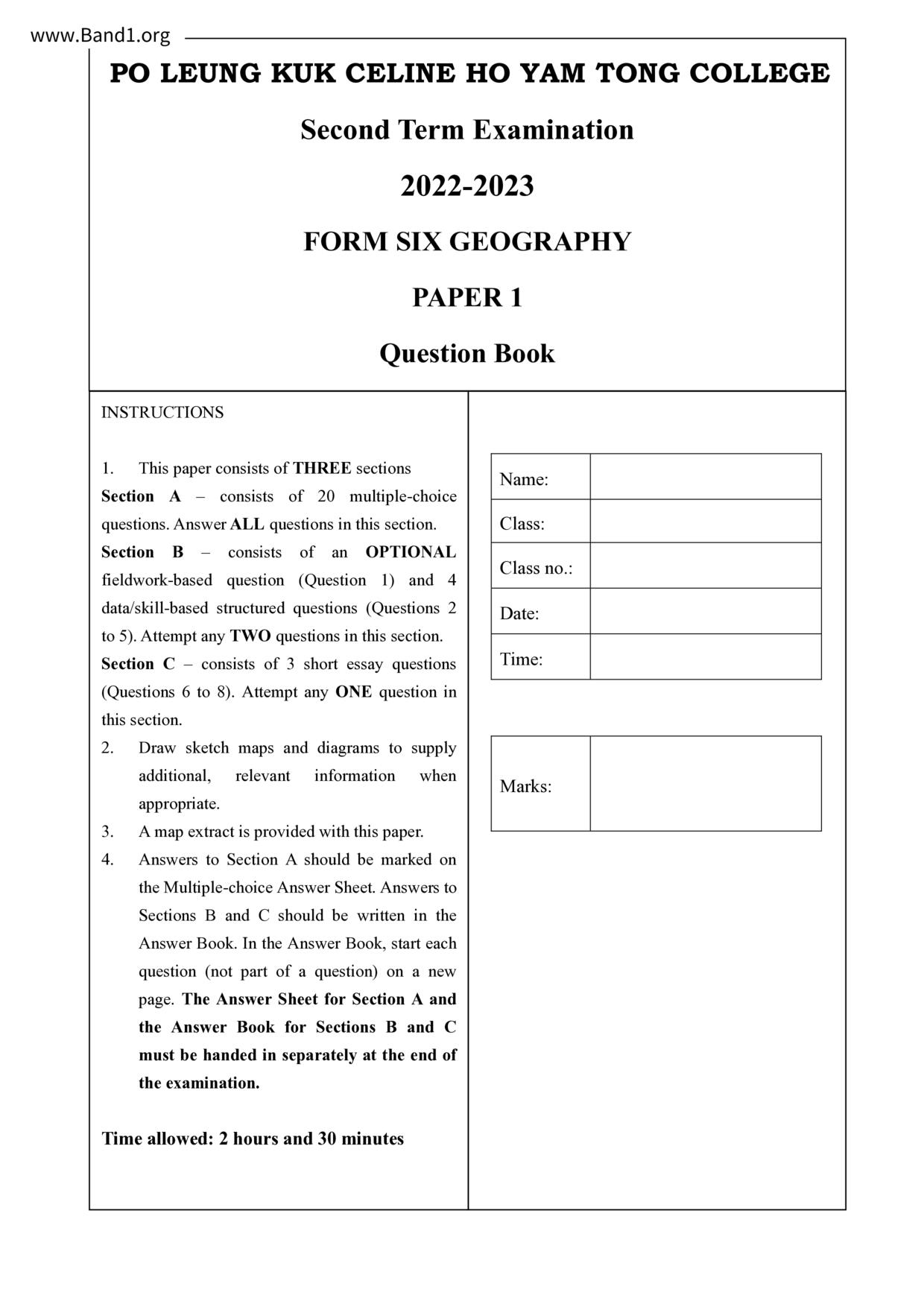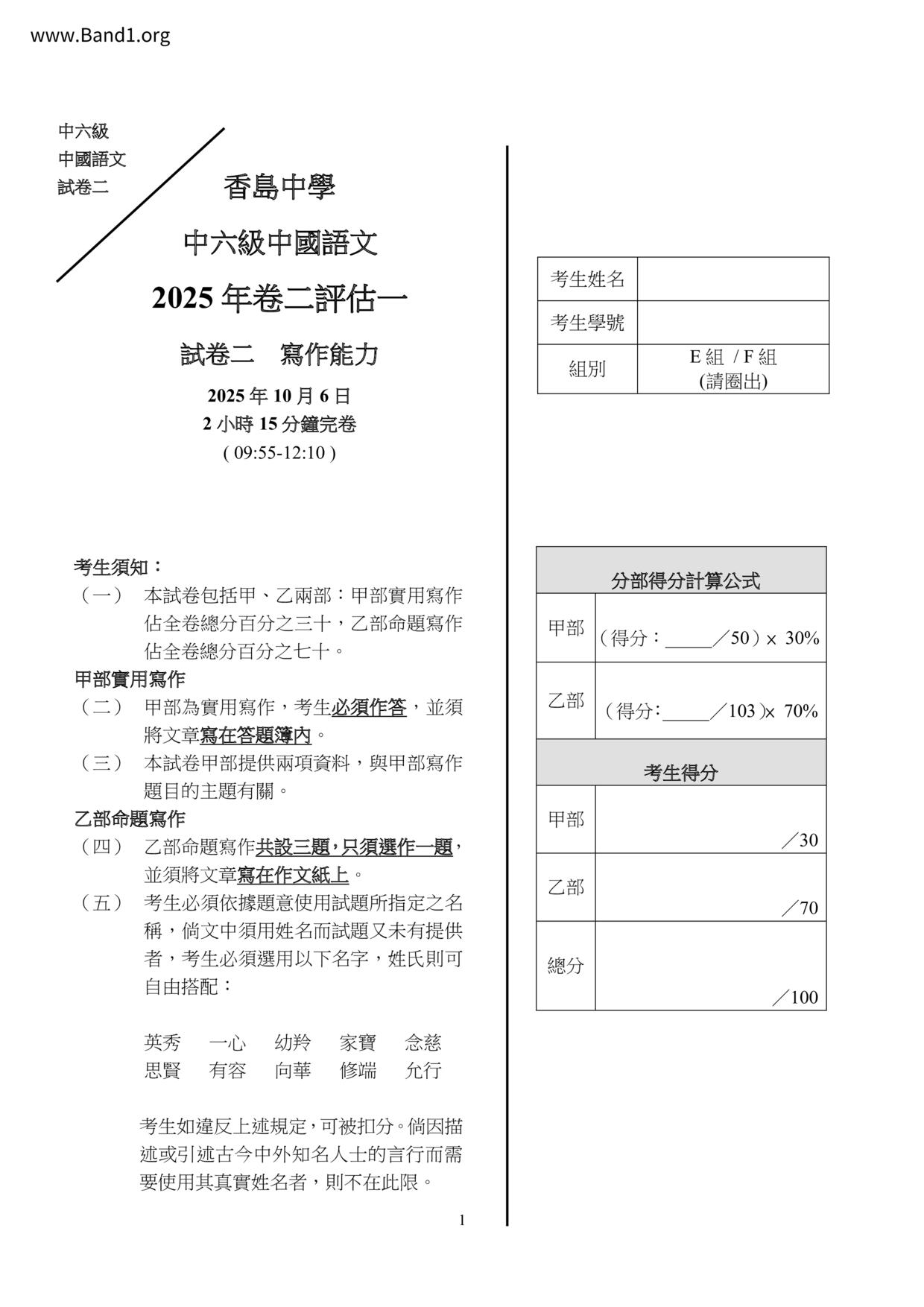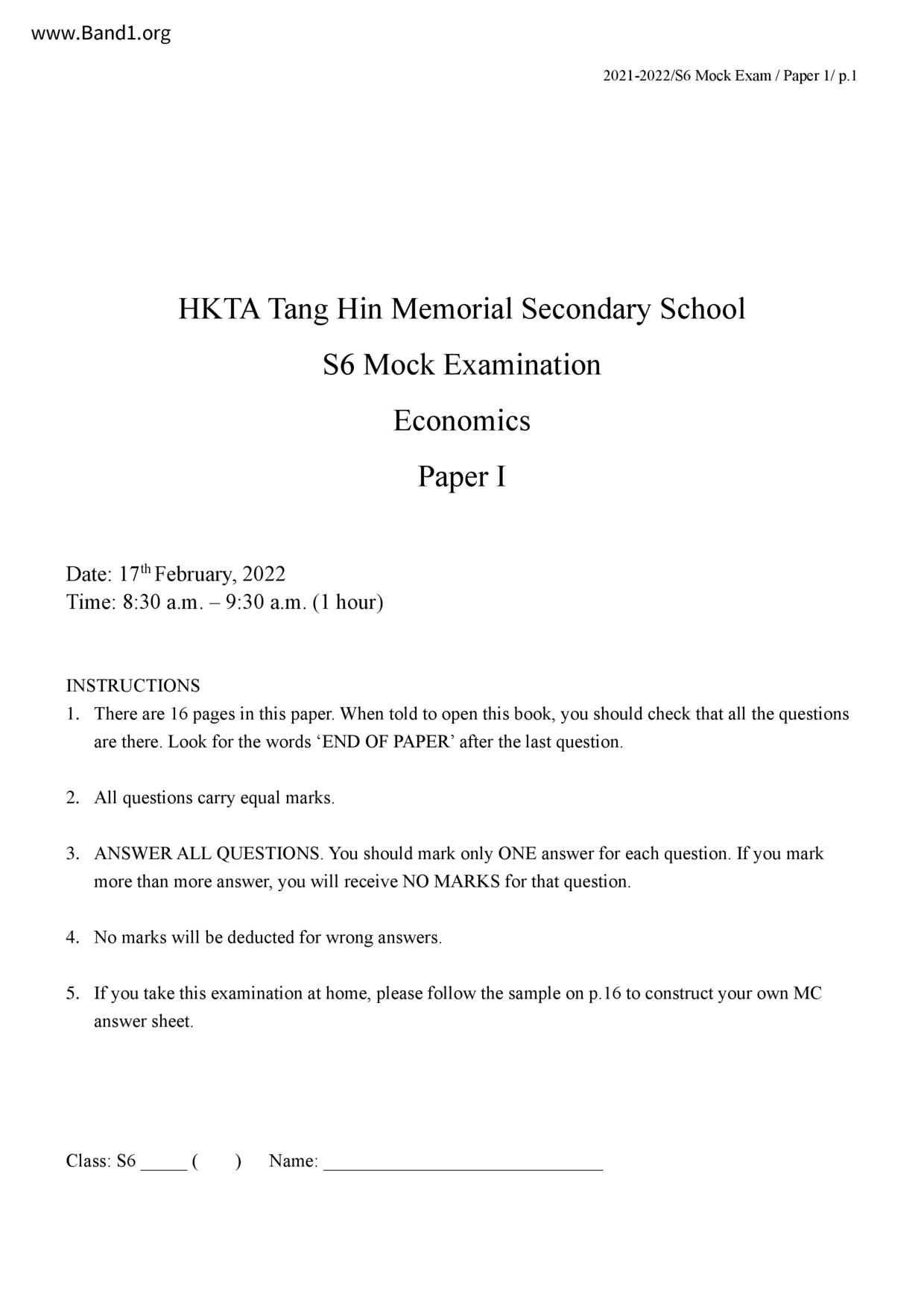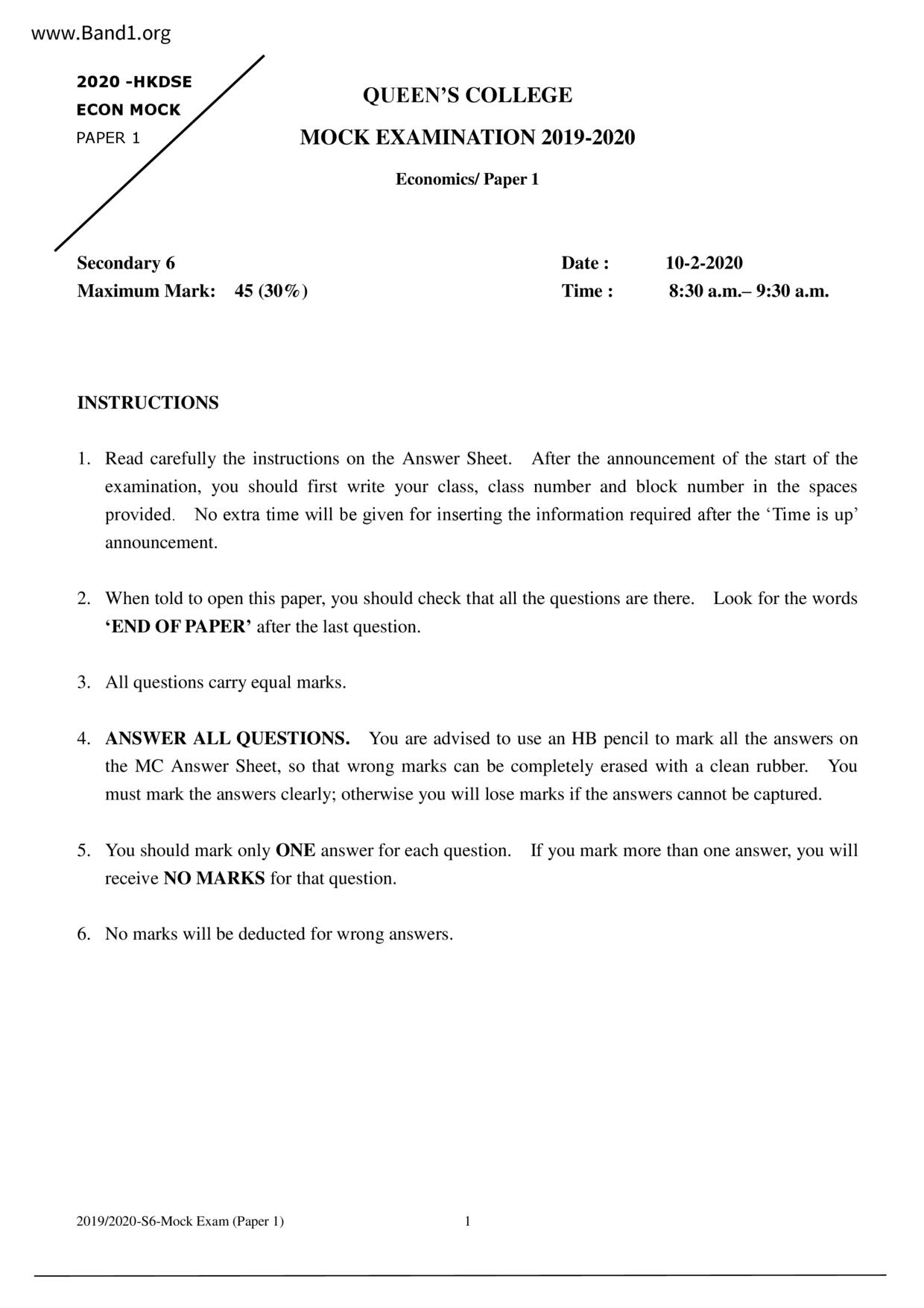 香港 中六 各科 (HK F6) 試卷 pdf