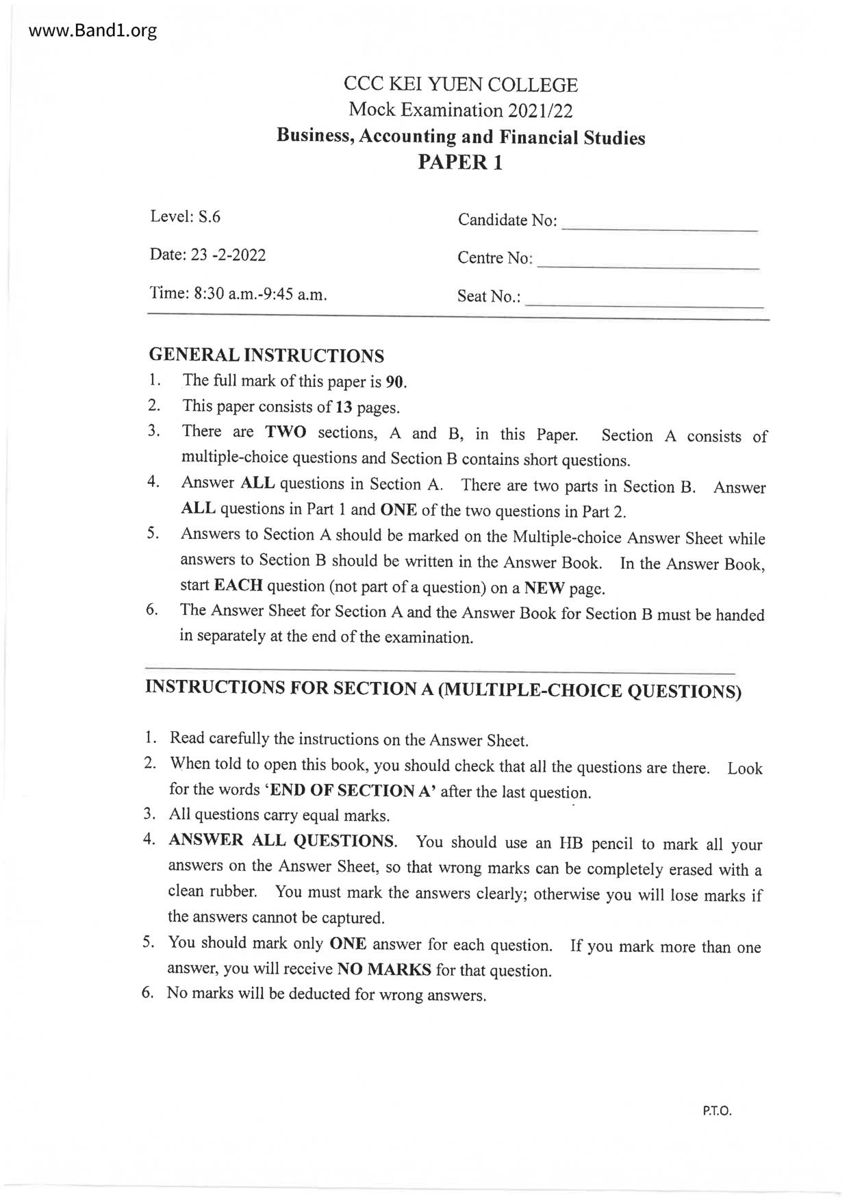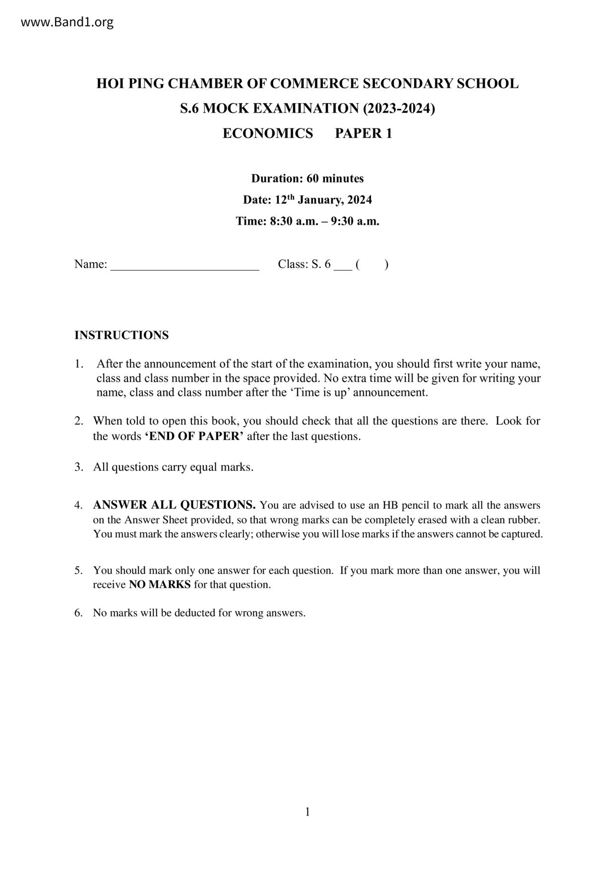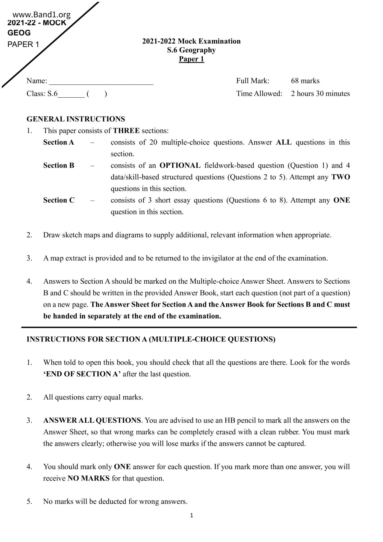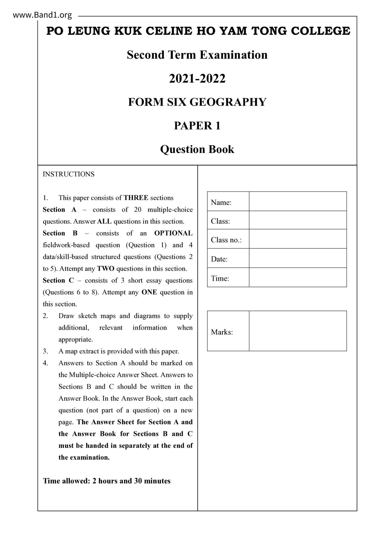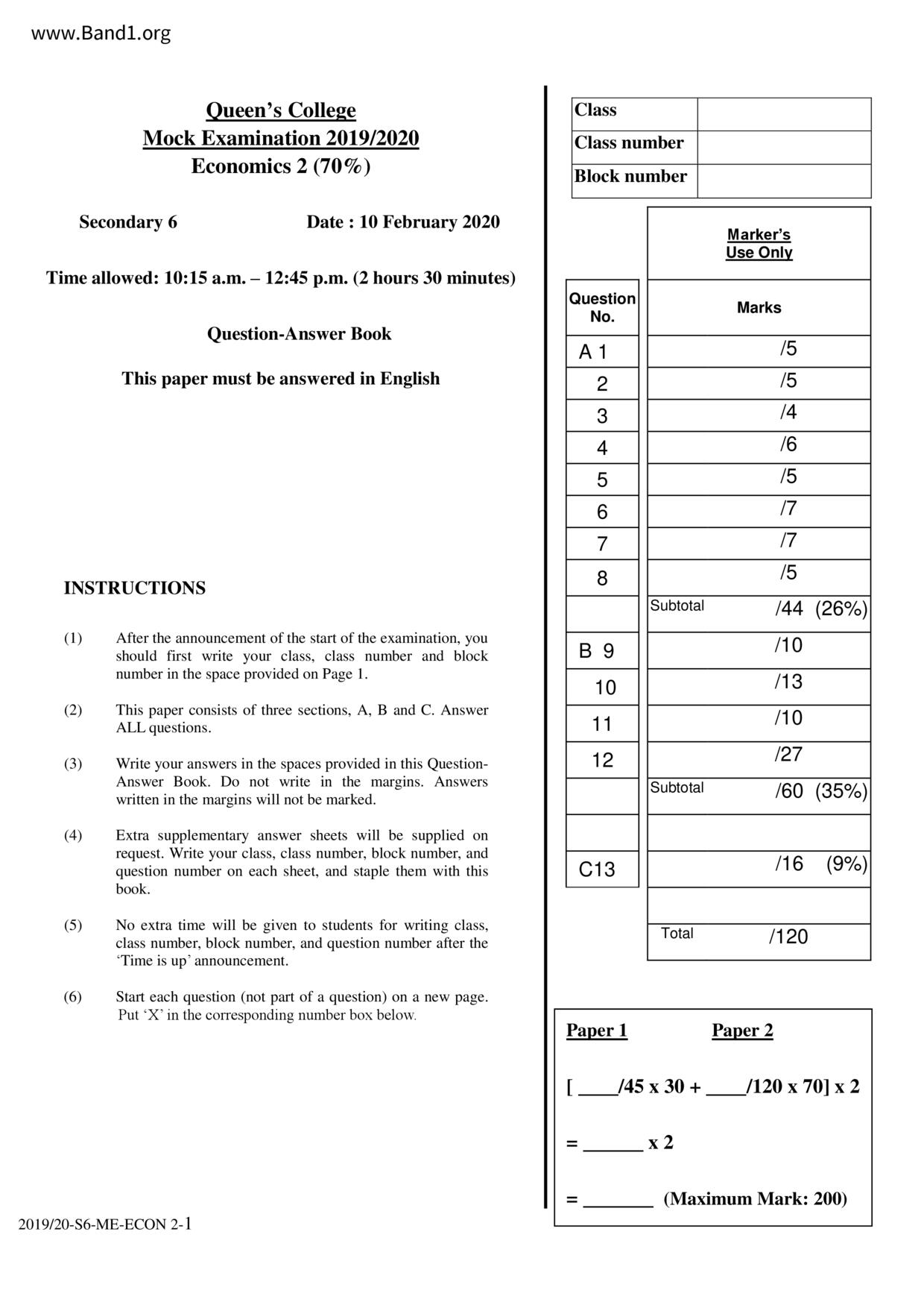 香港 中六 各科 (HK F6) 試卷 pdf