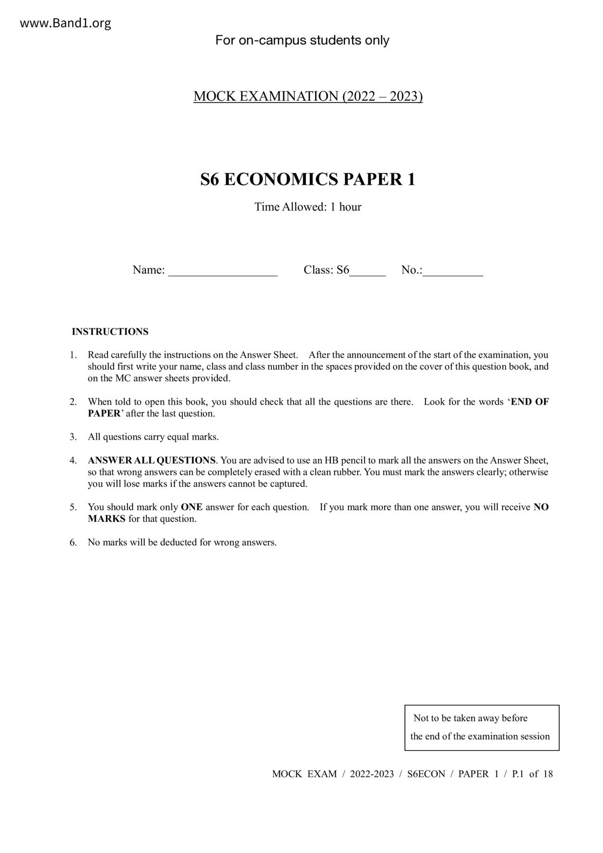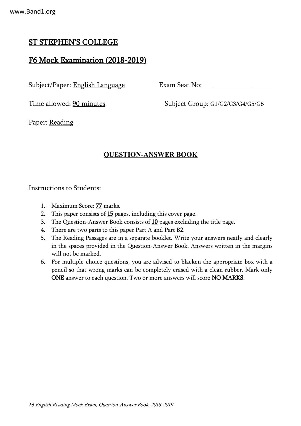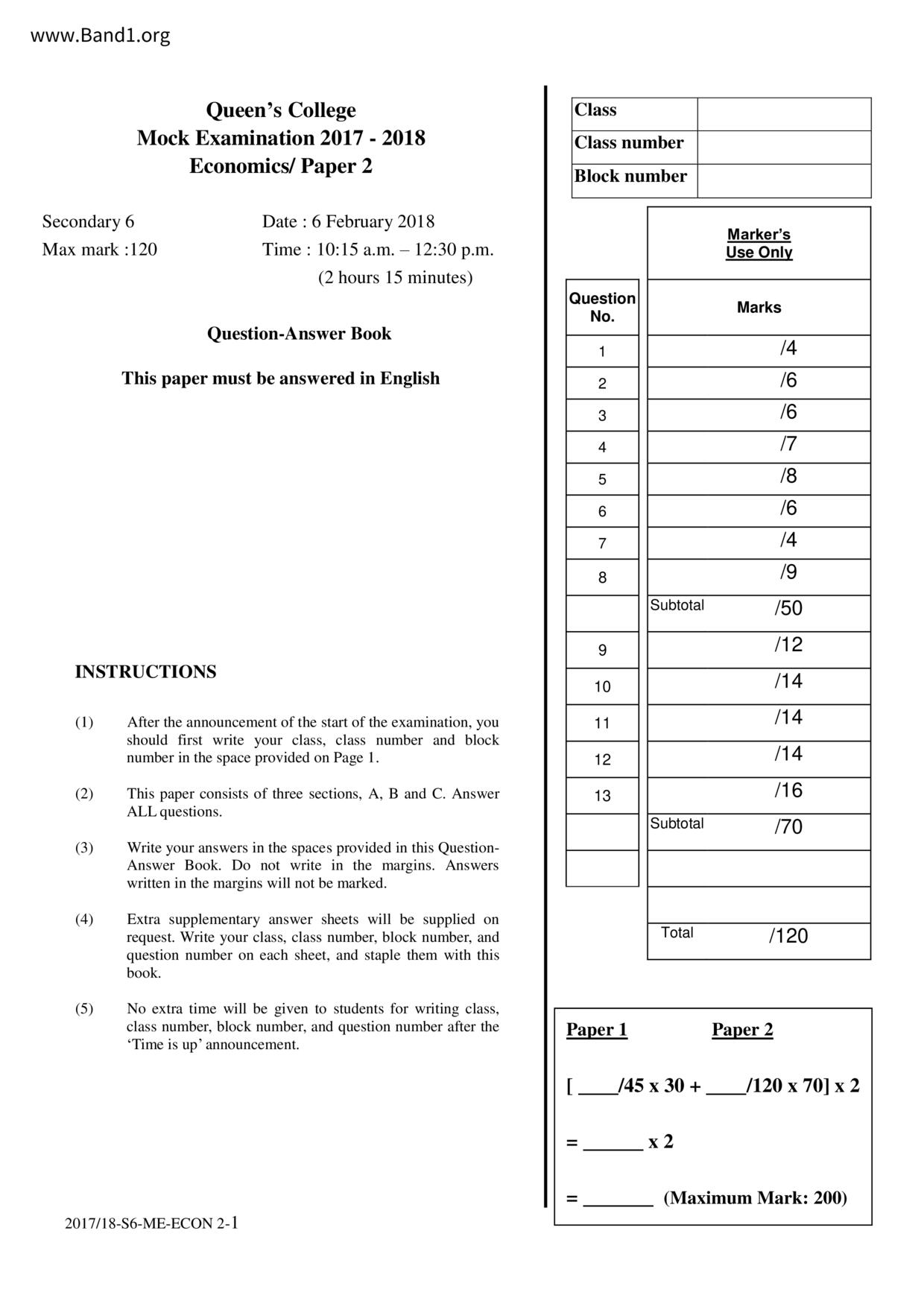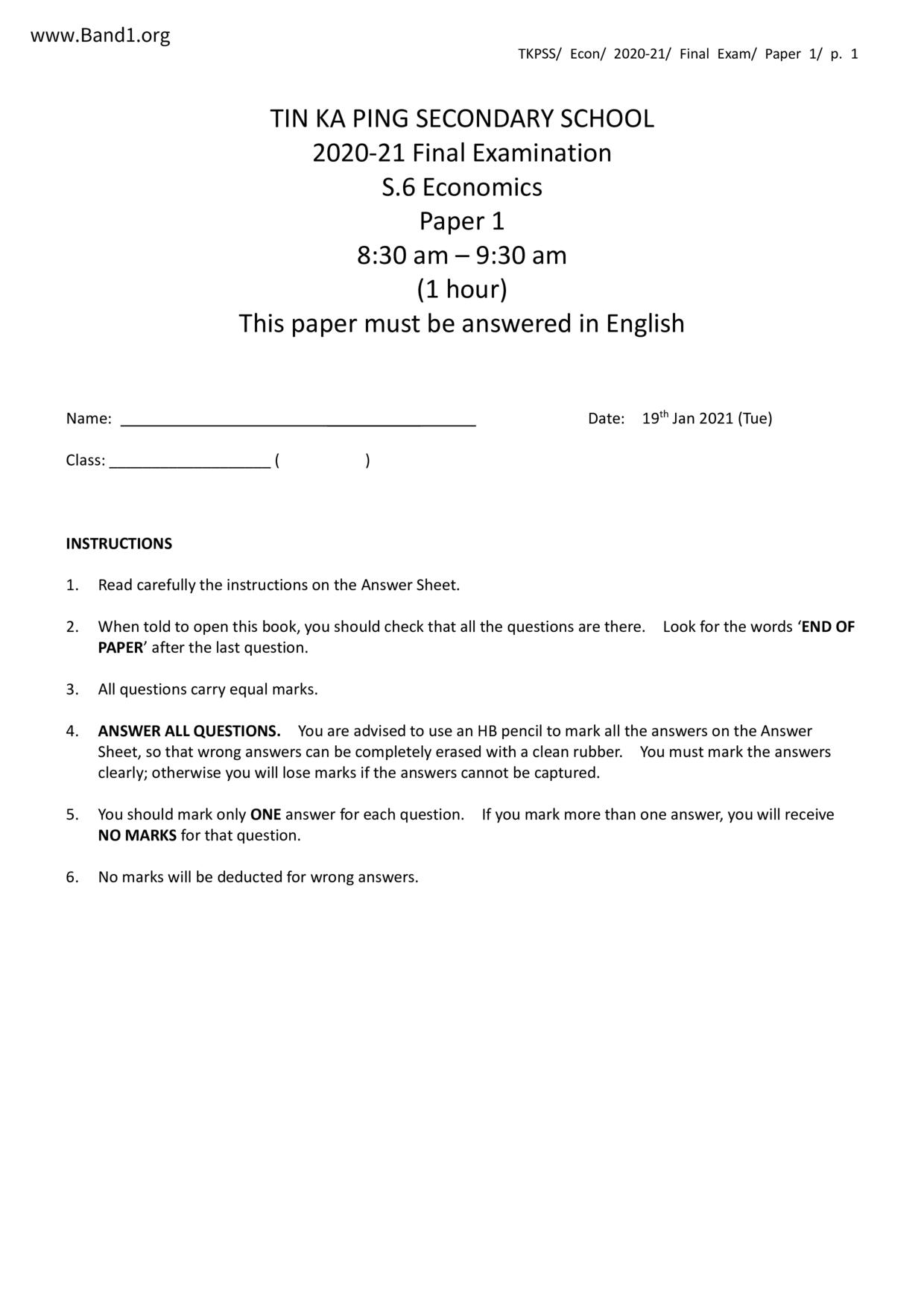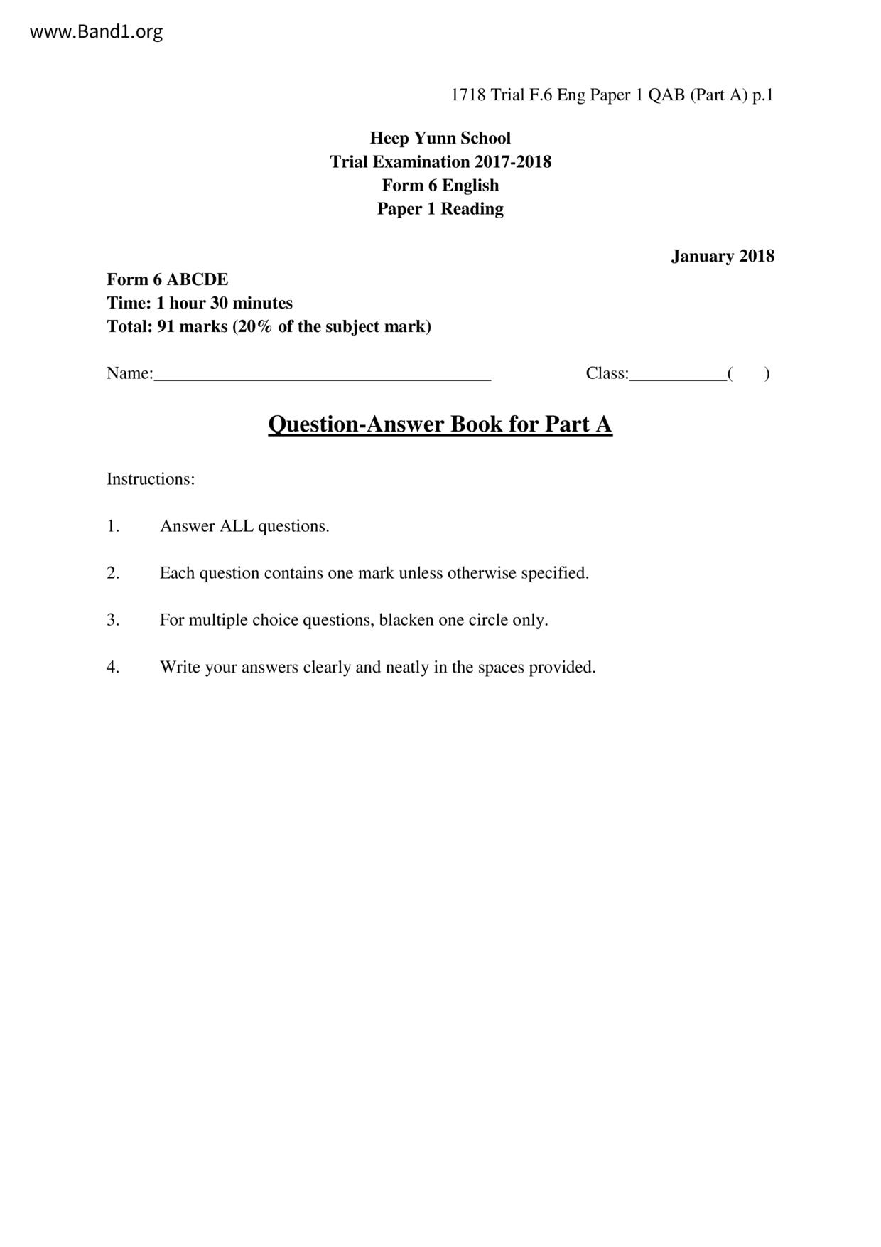 香港 中六 各科 (HK F6) 試卷 pdf
